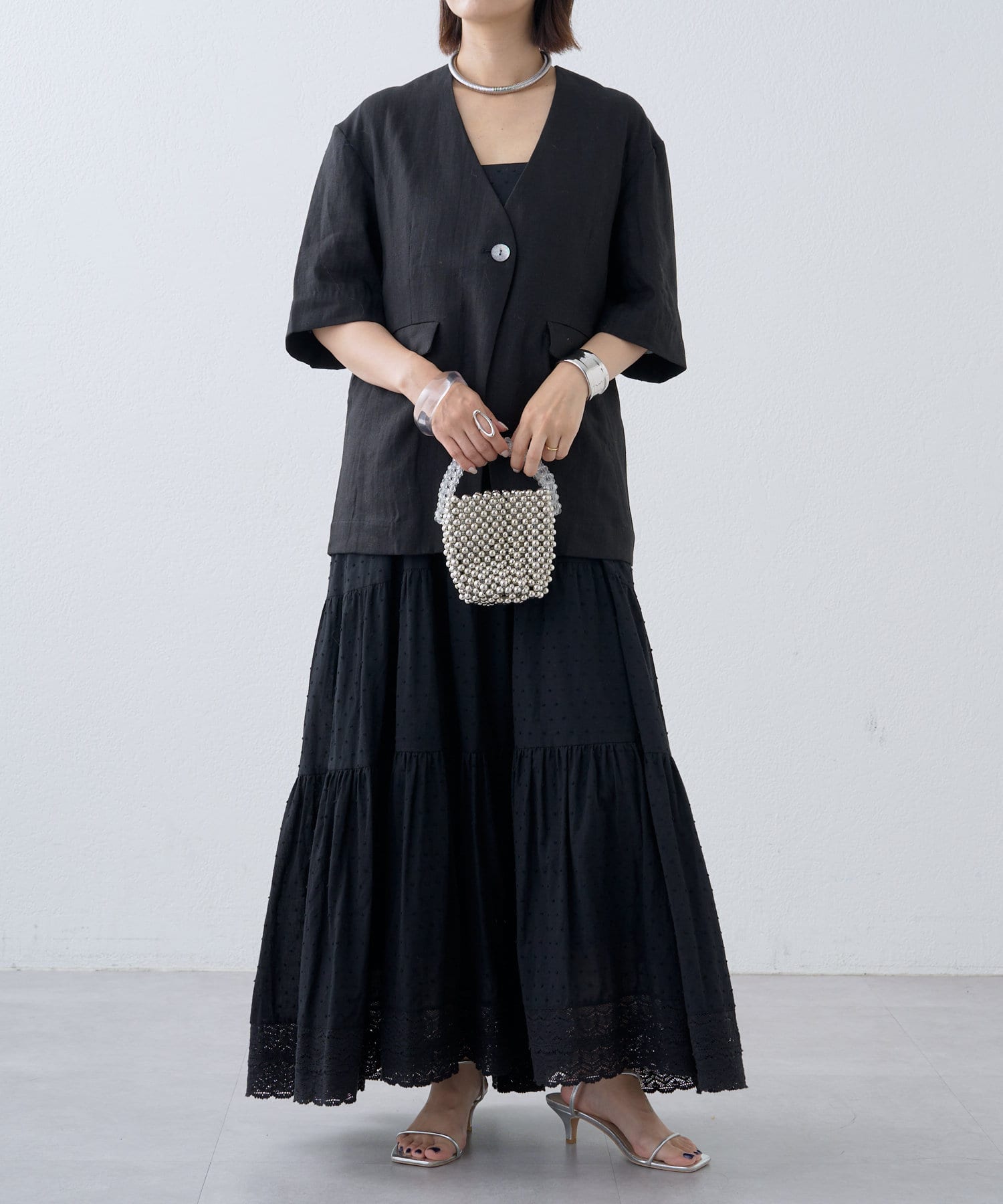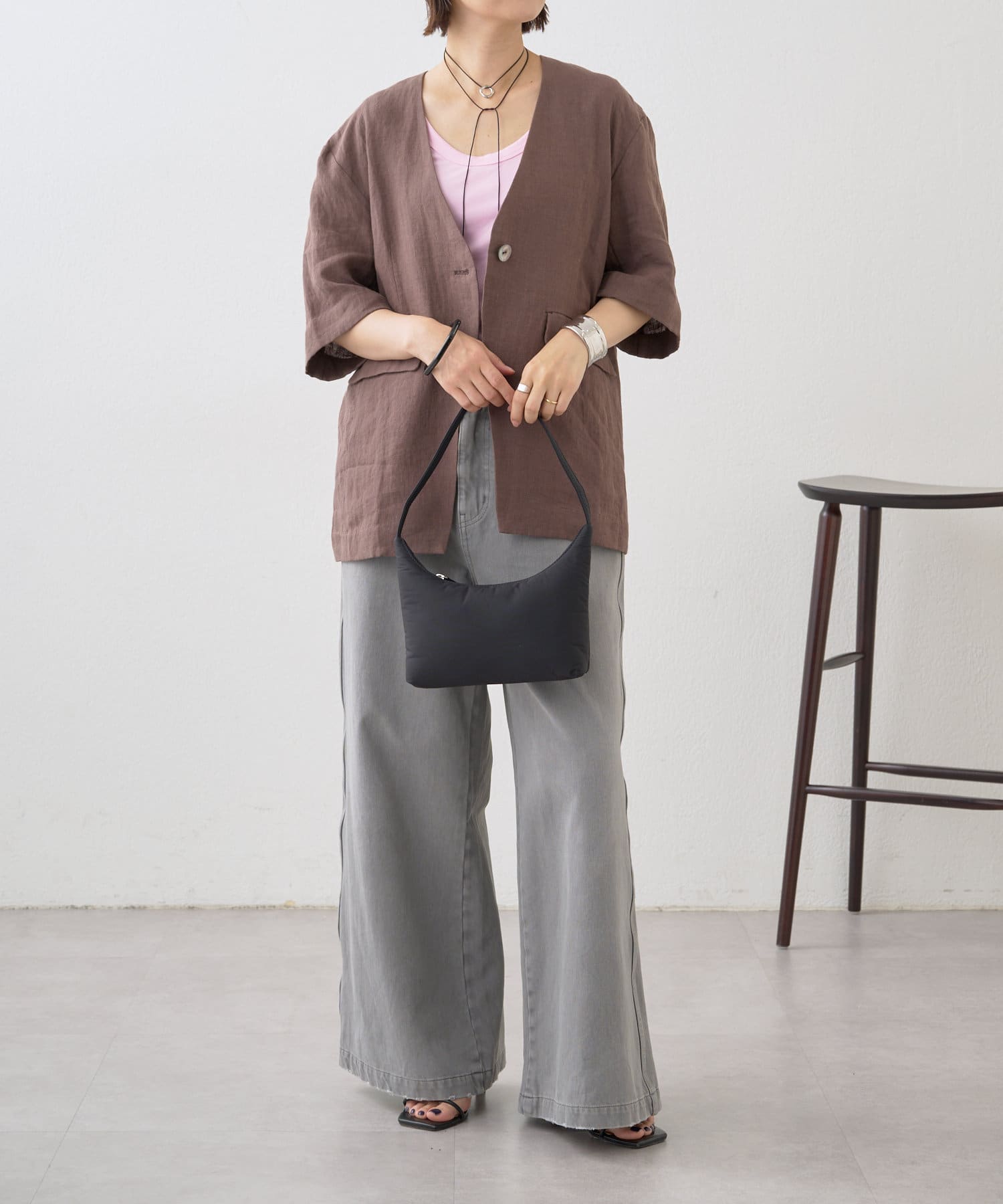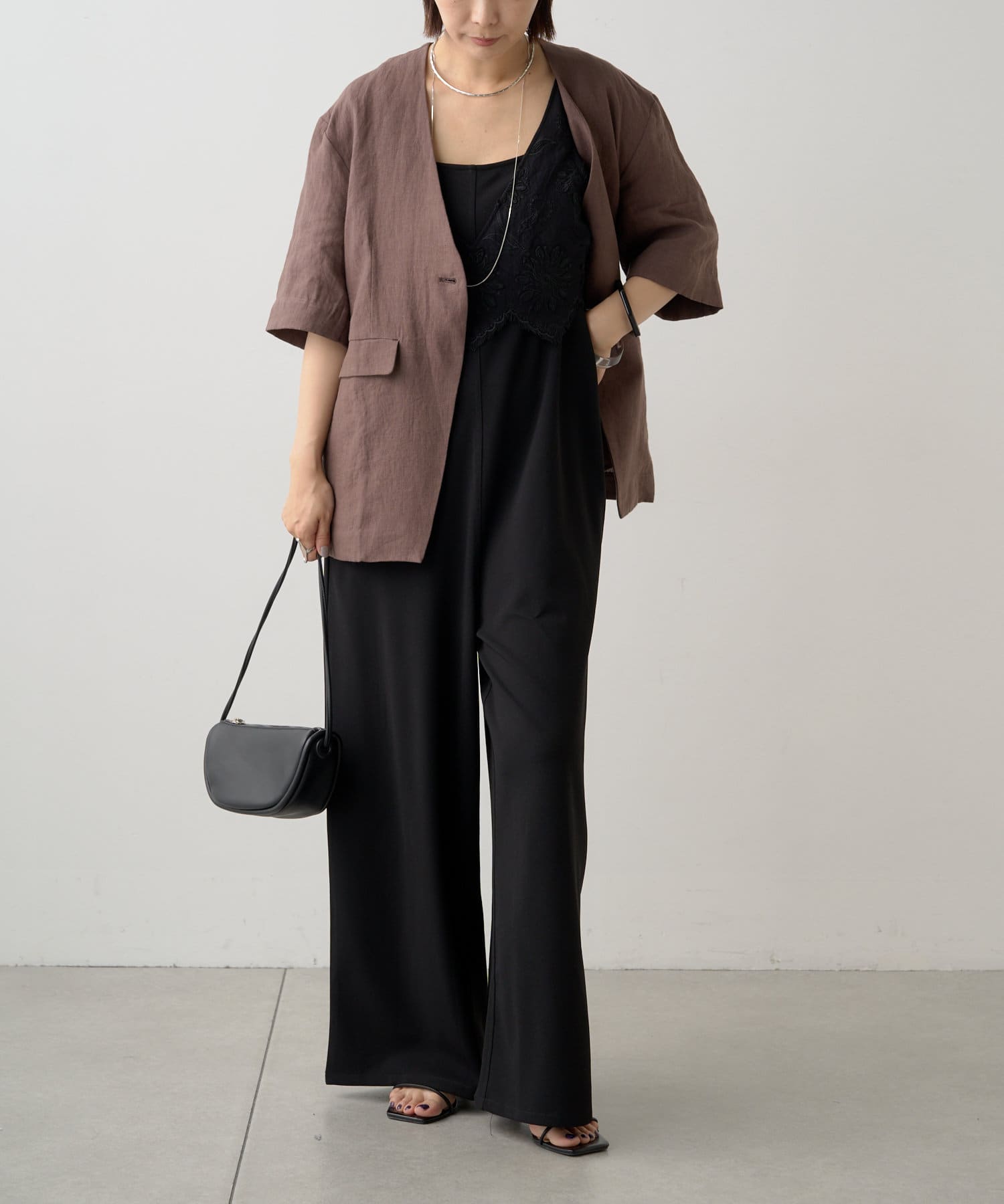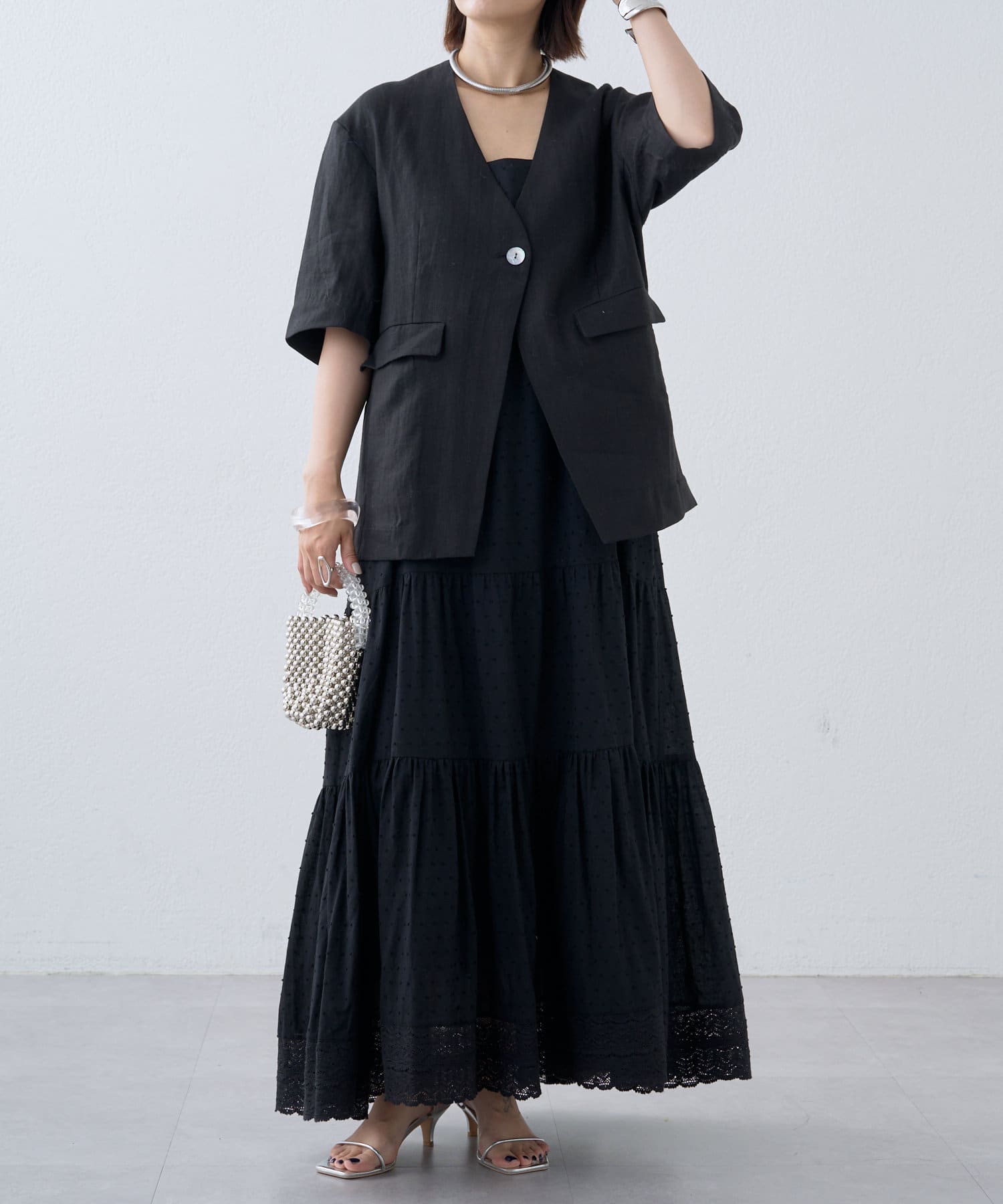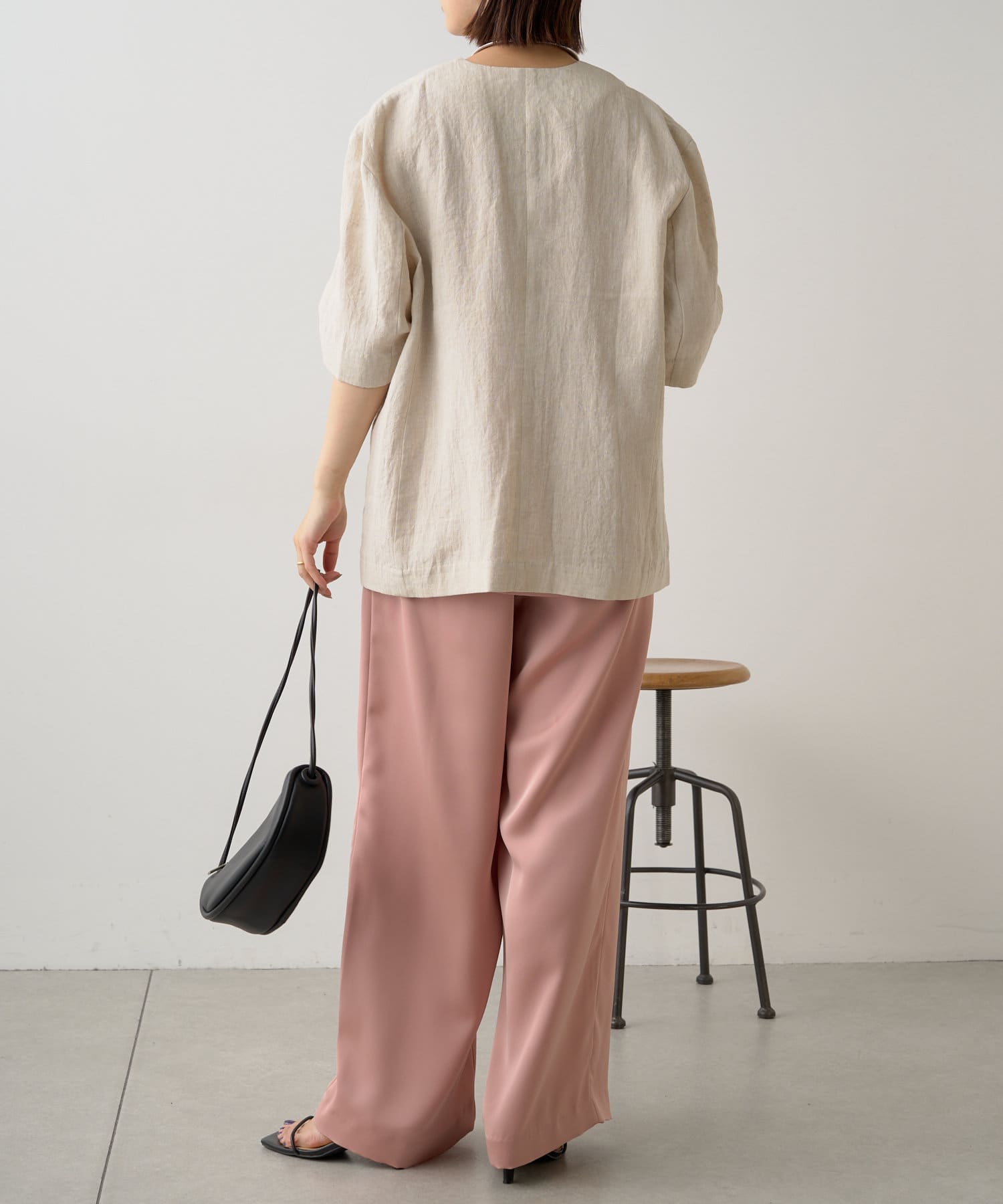 ノーカラーリネンジャケット