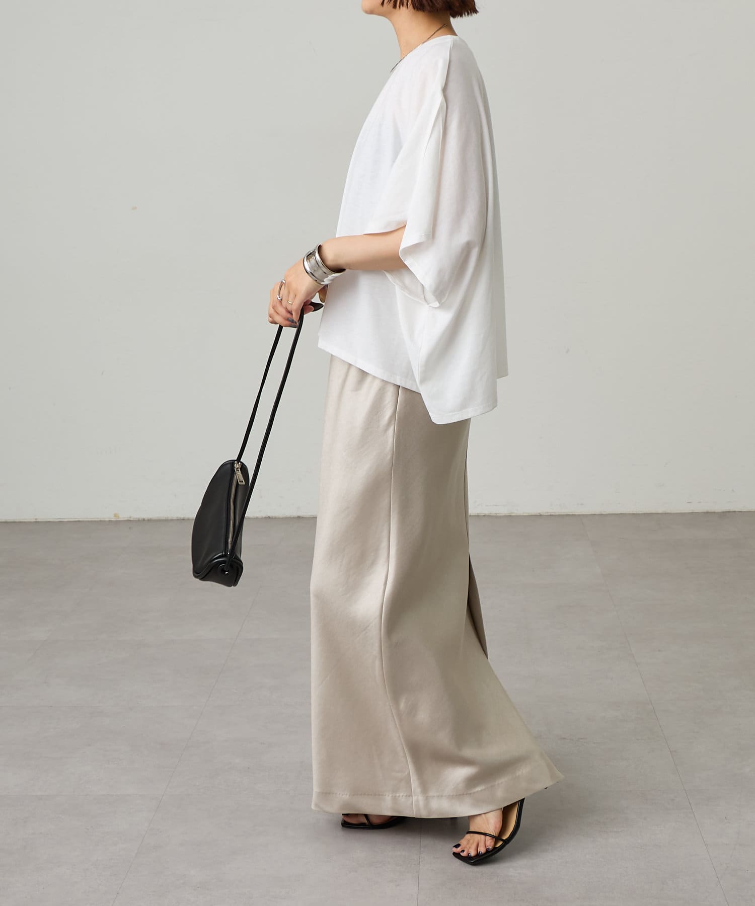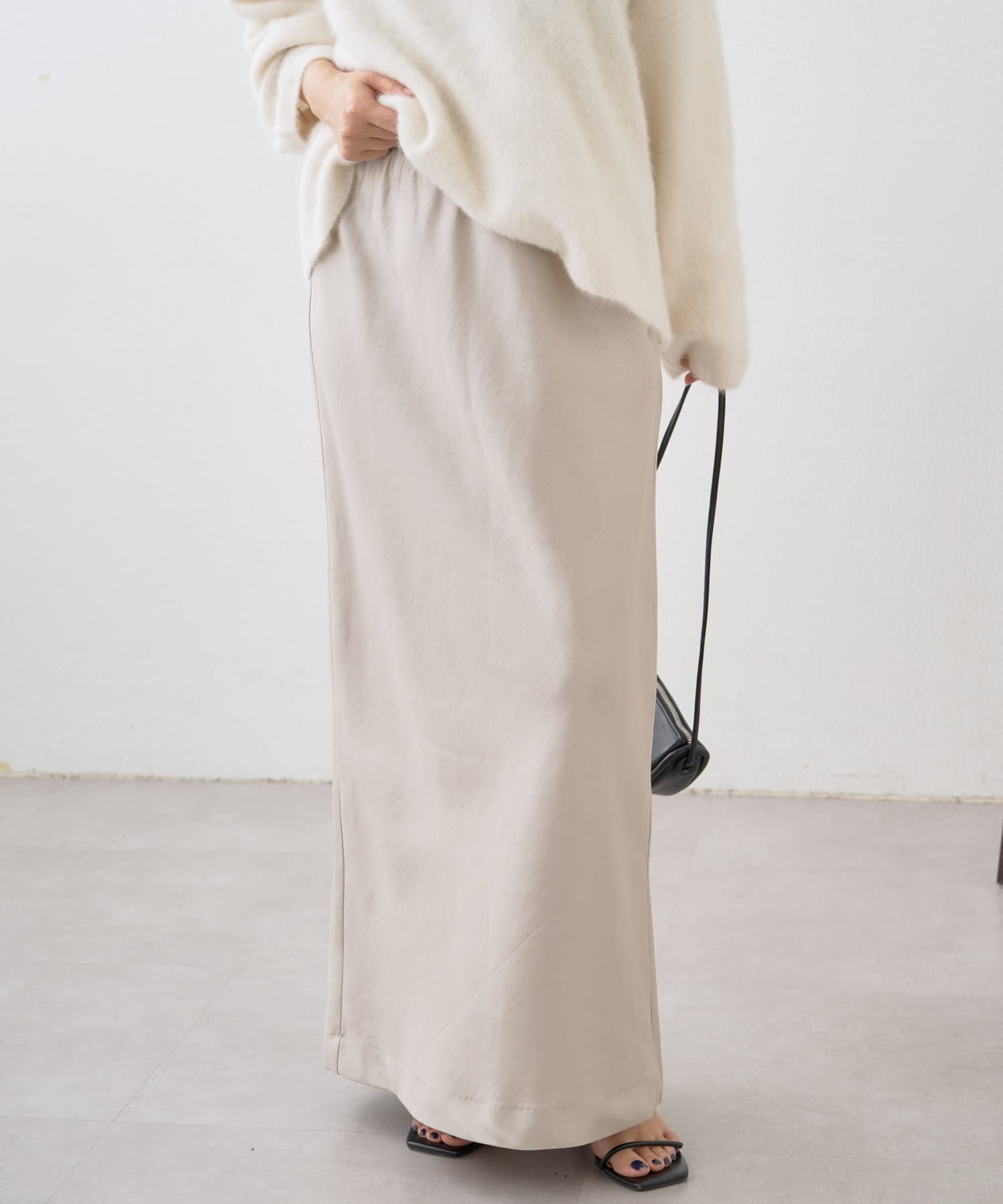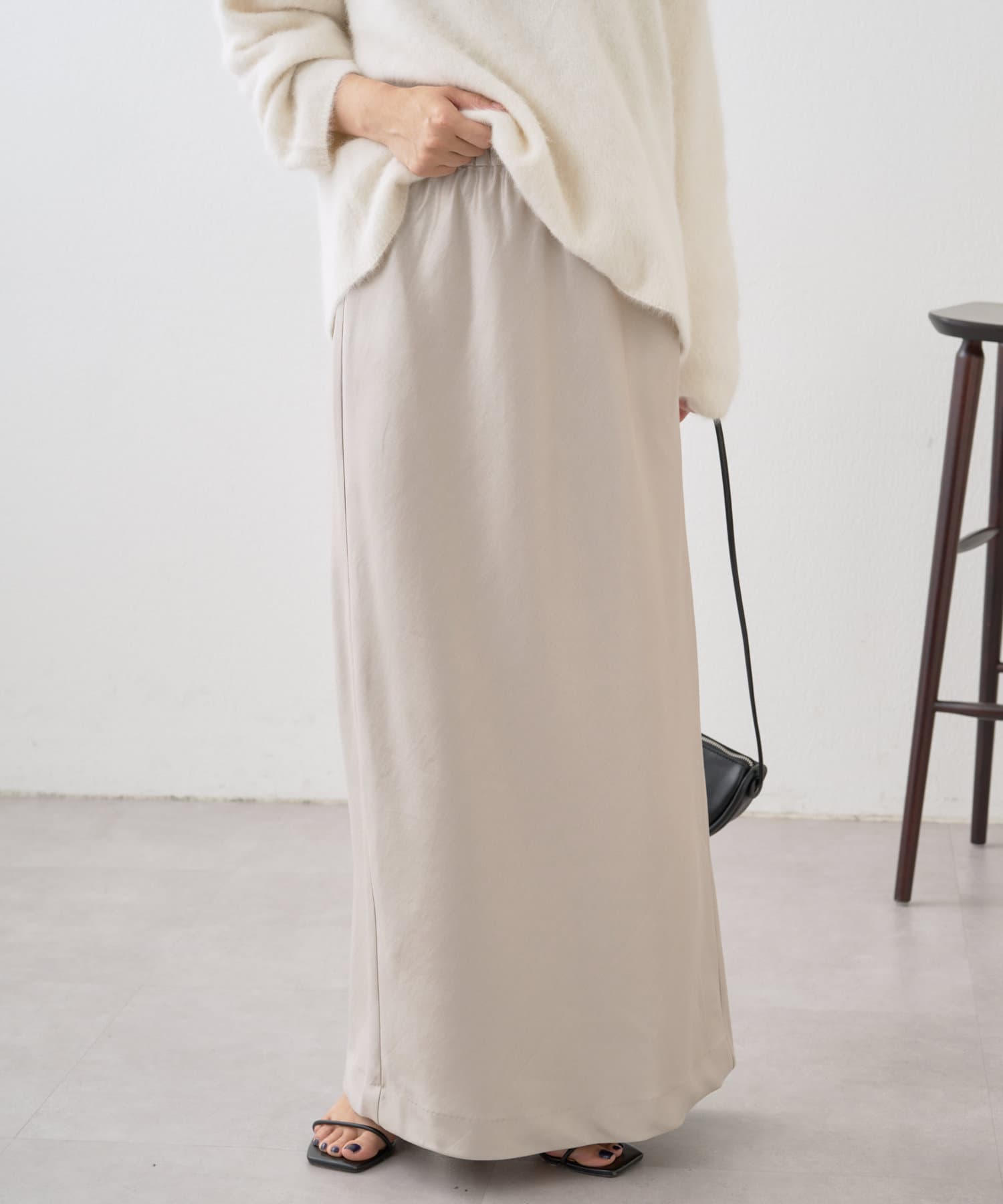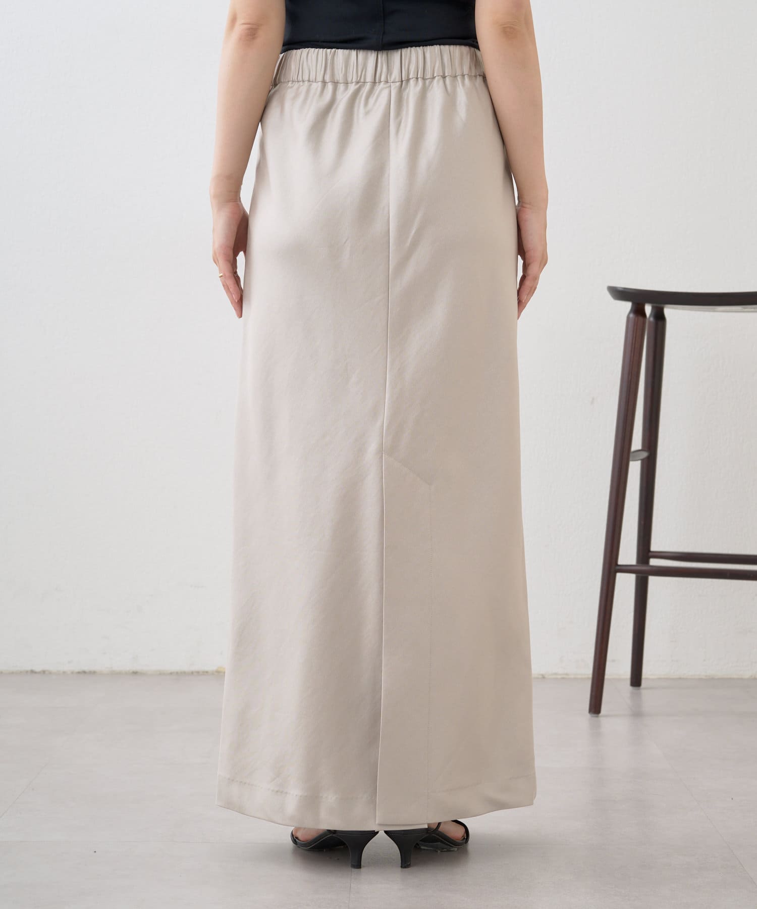 シルエットが美しいロングサテンスカート