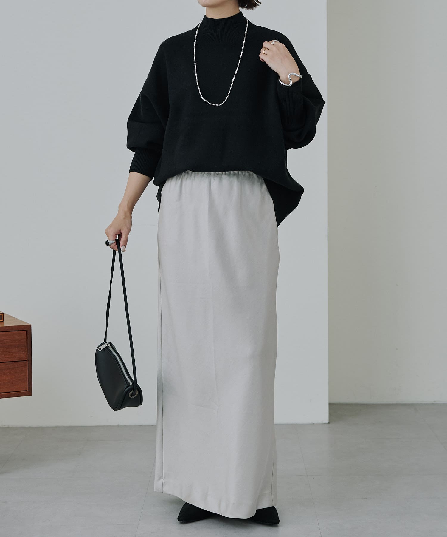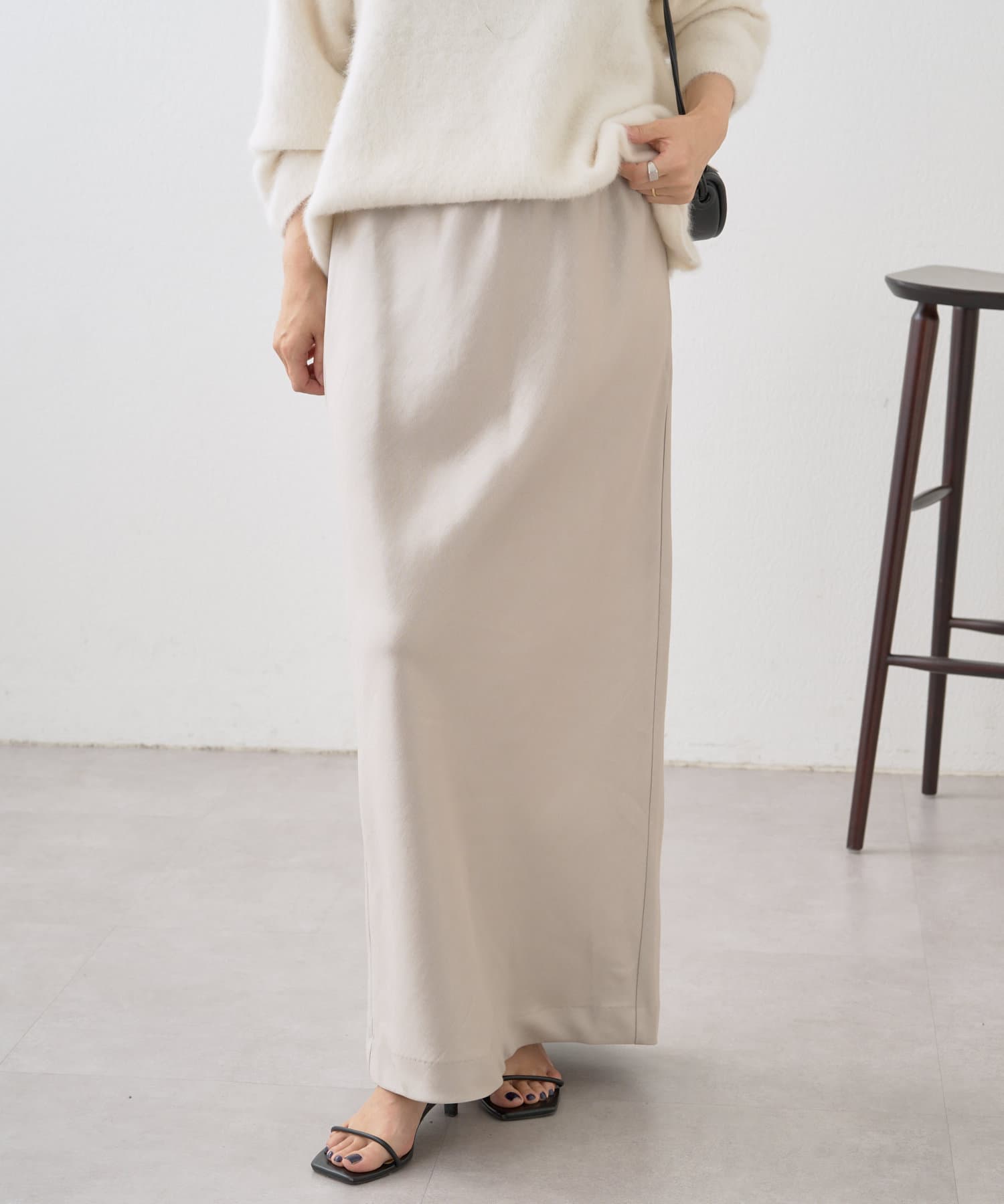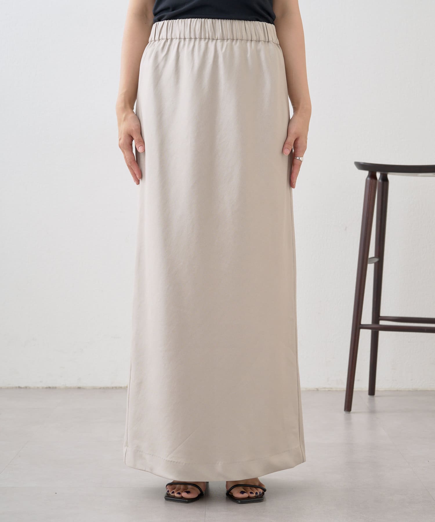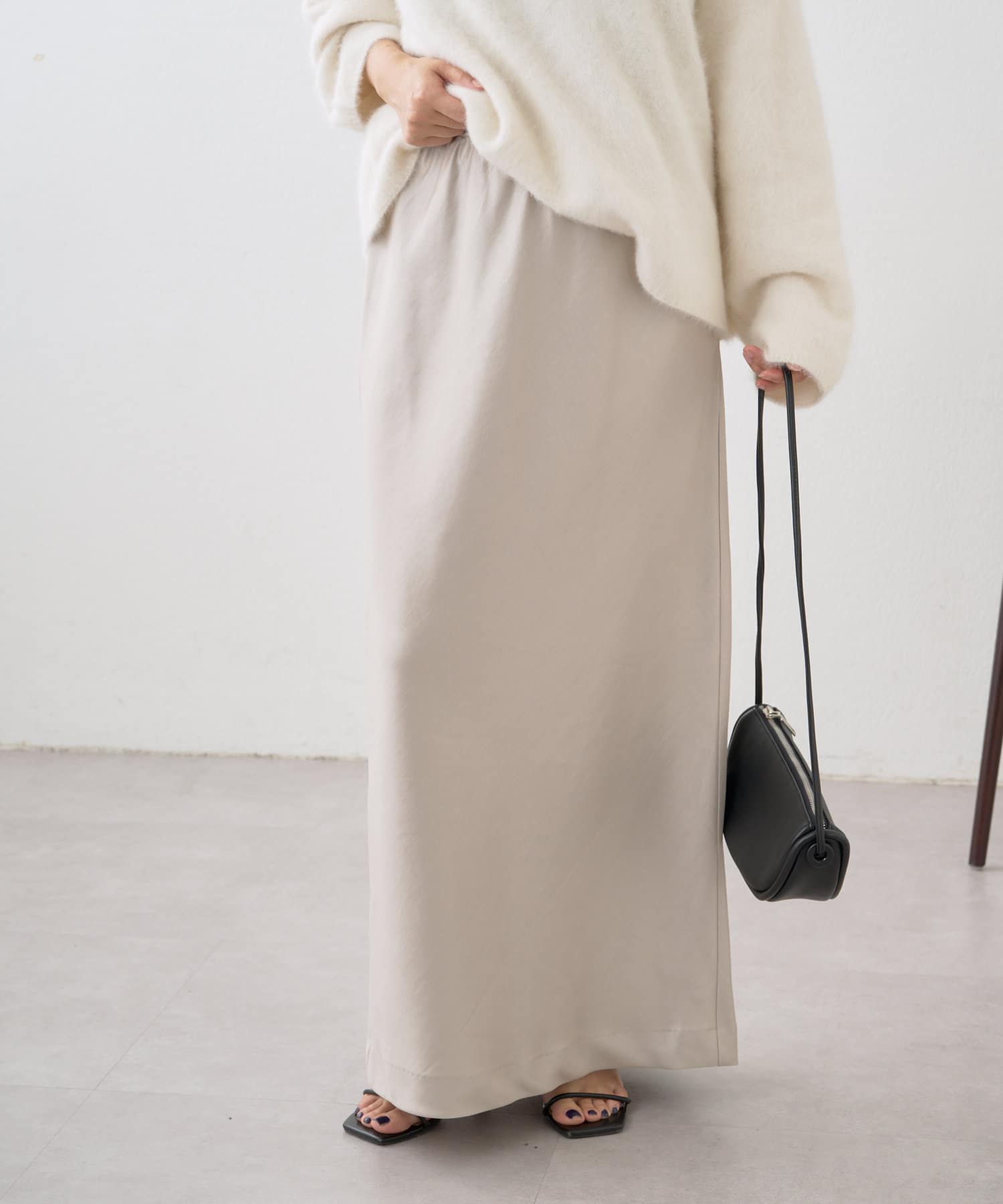 シルエットが美しいロングサテンスカート