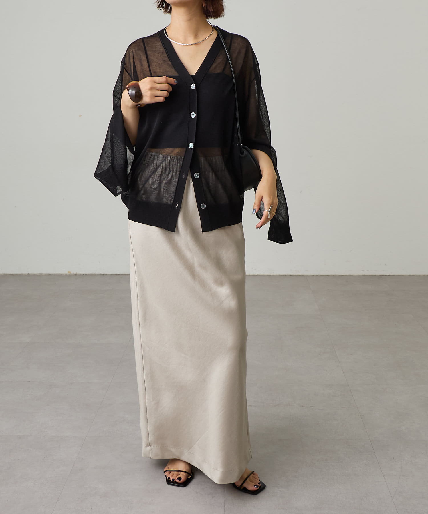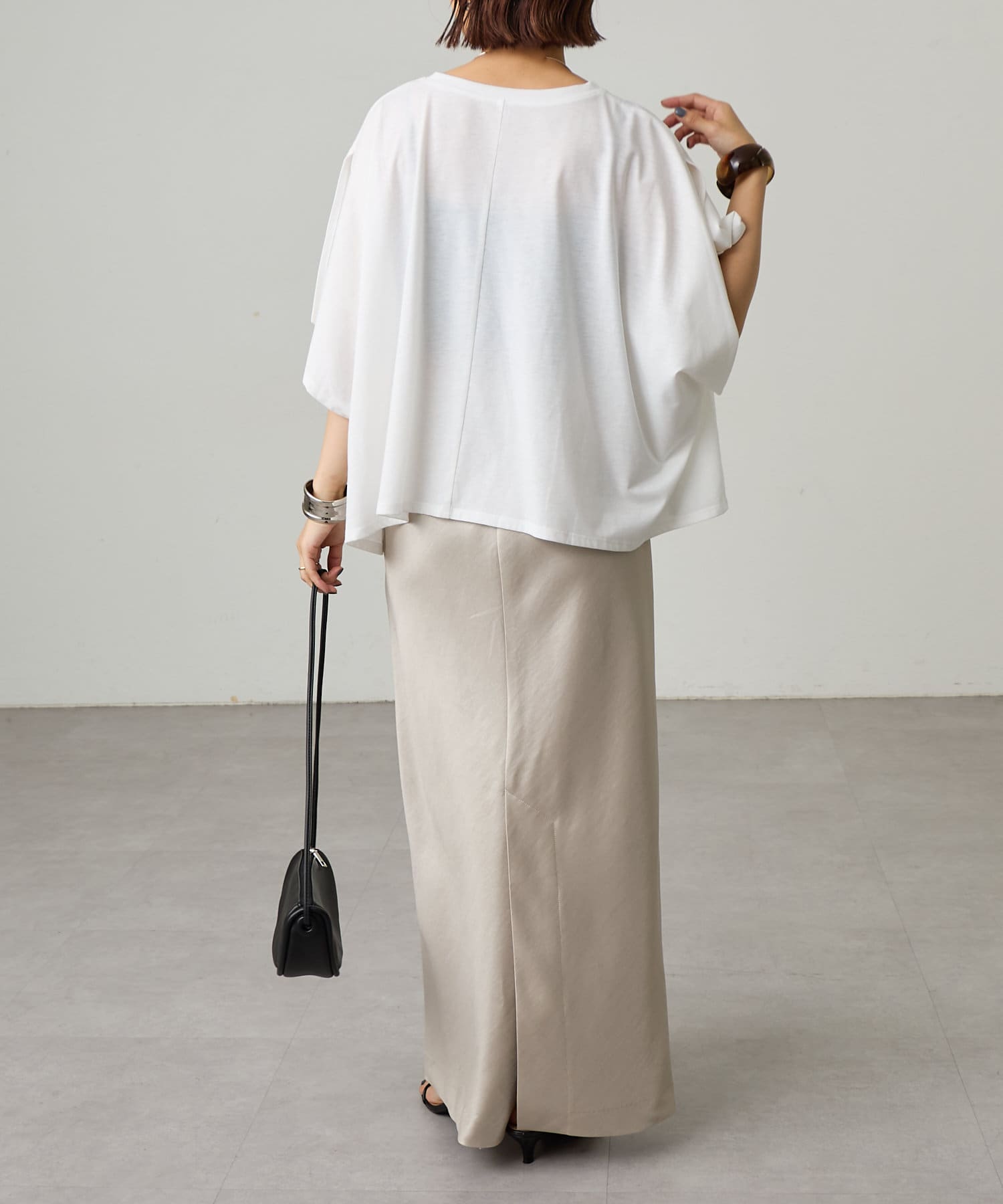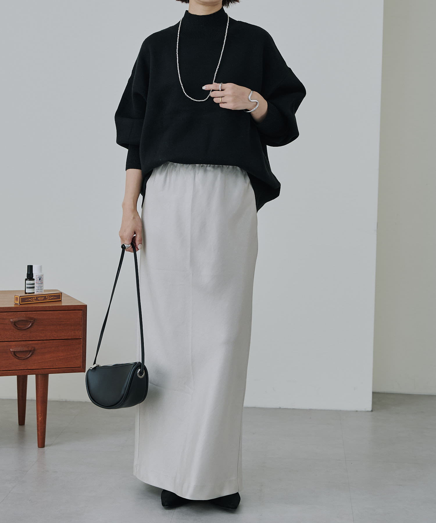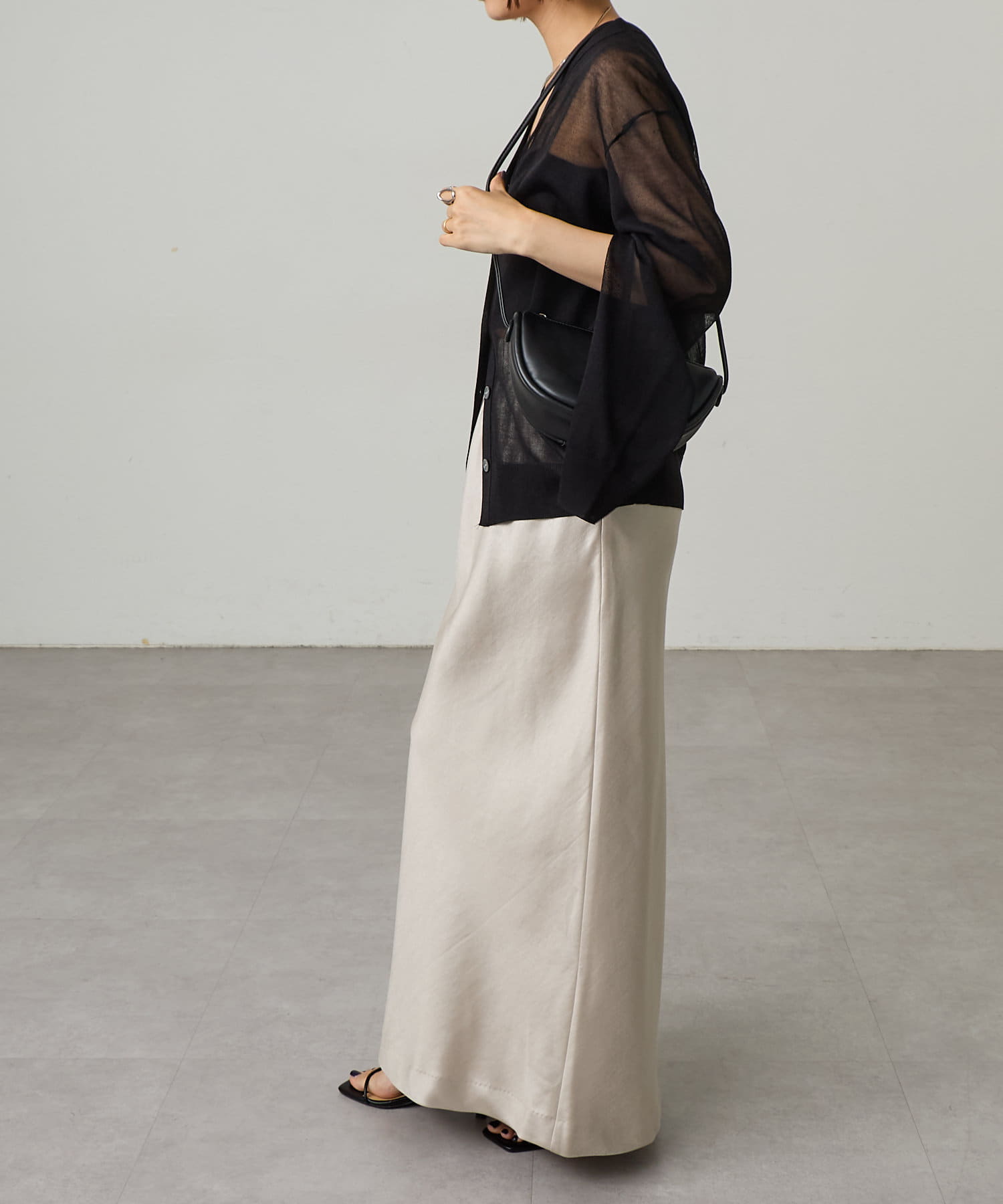 シルエットが美しいロングサテンスカート