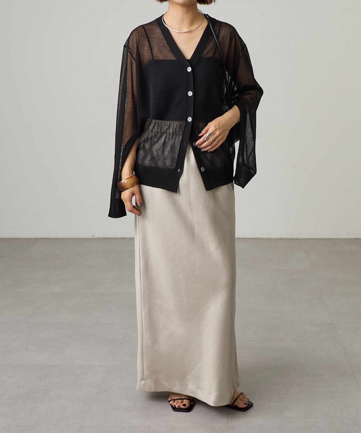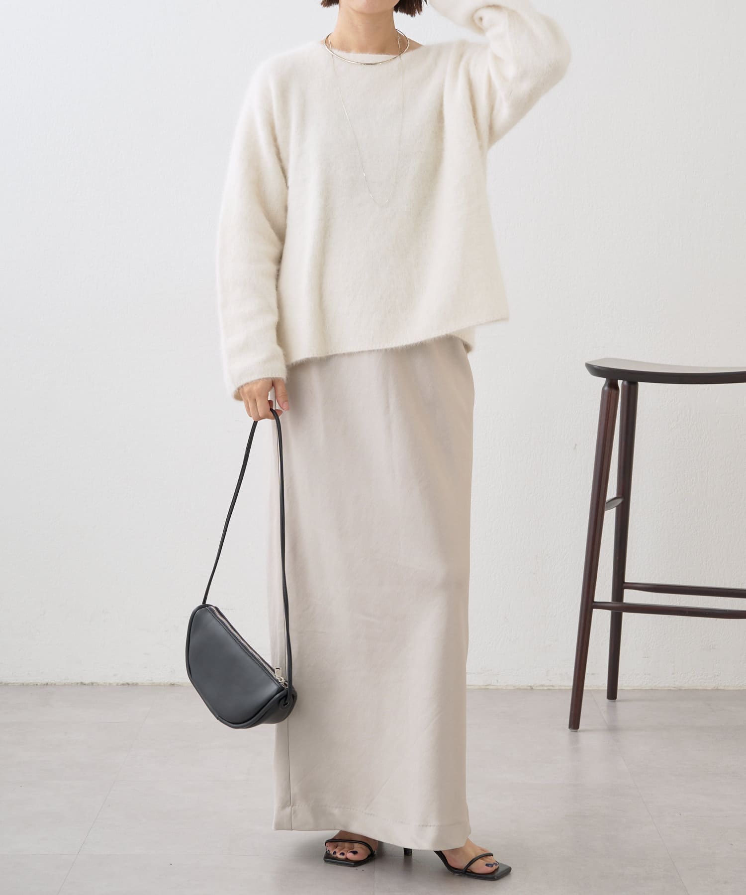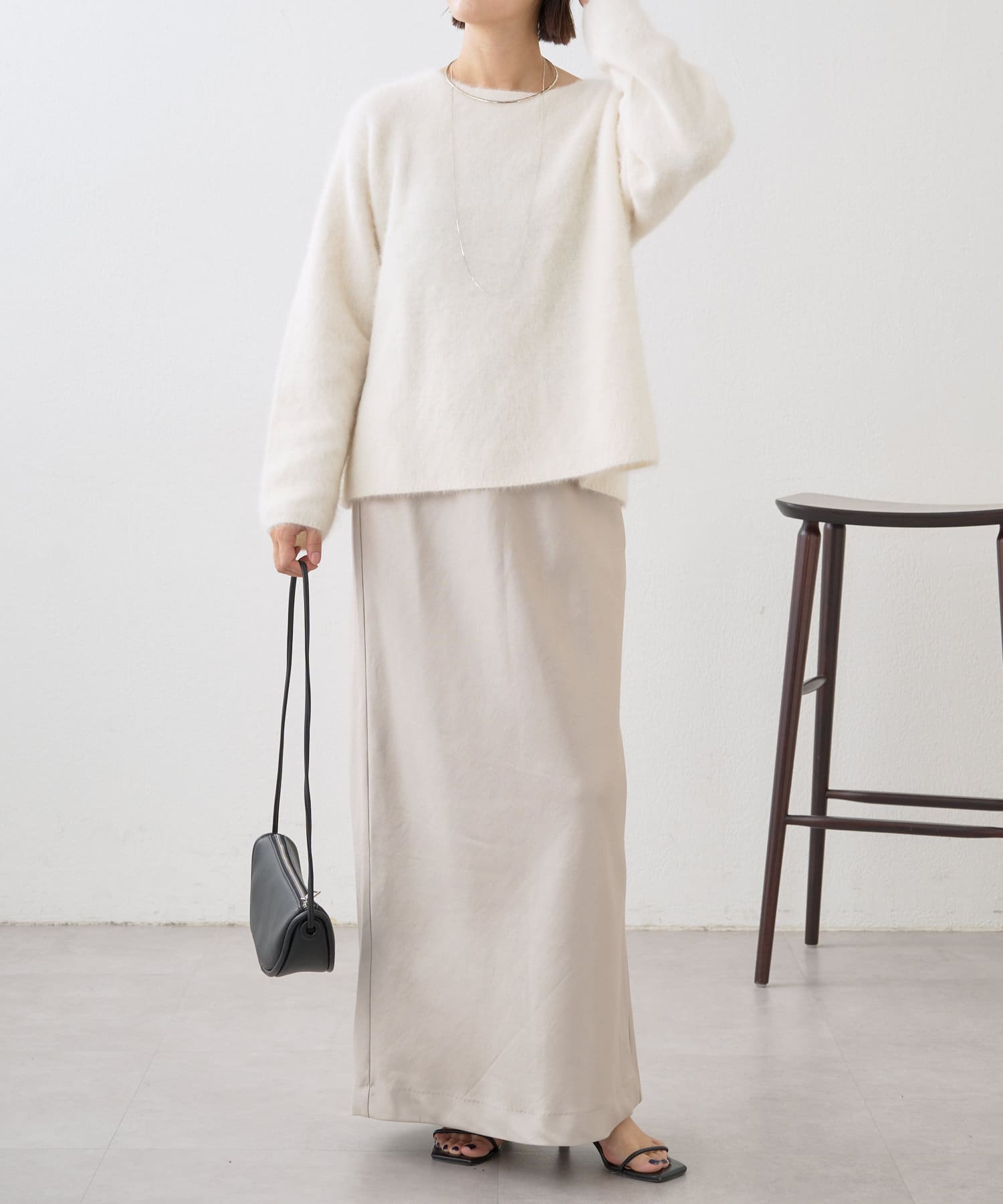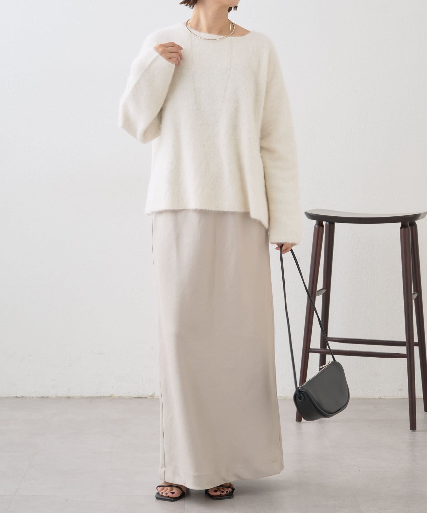 シルエットが美しいロングサテンスカート