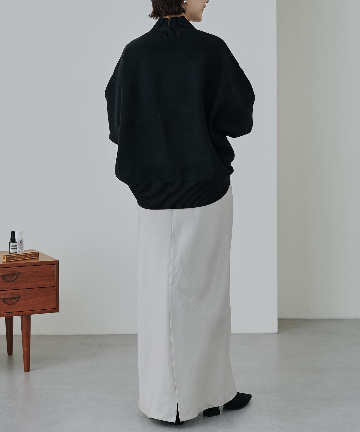 ・バックスリットで足捌きがしやすく、重なり合ったスリットなので露出も控えめ。