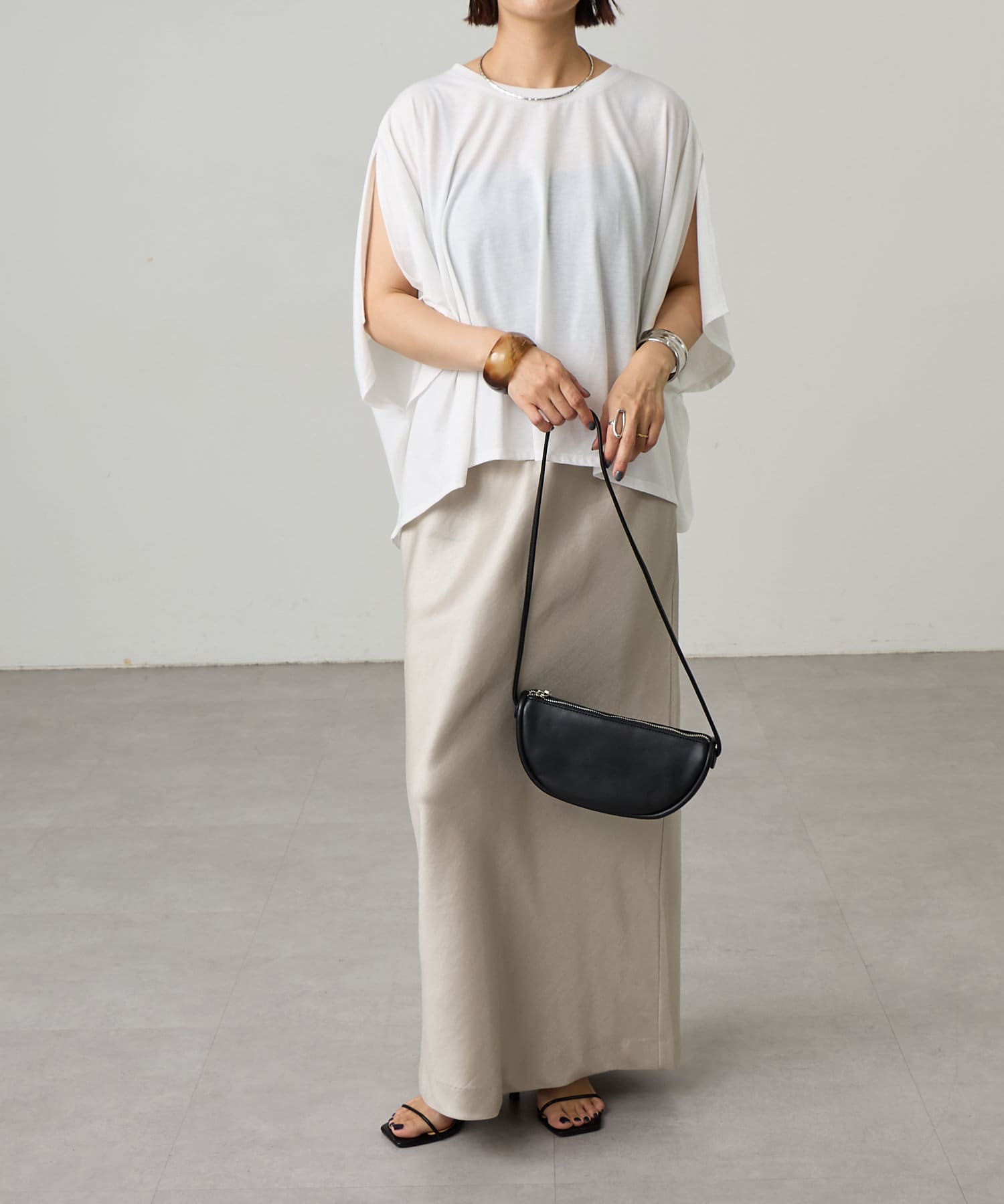 ・程よい肉感とタイト過ぎないシルエットで体型を拾い過ぎないのが魅力。