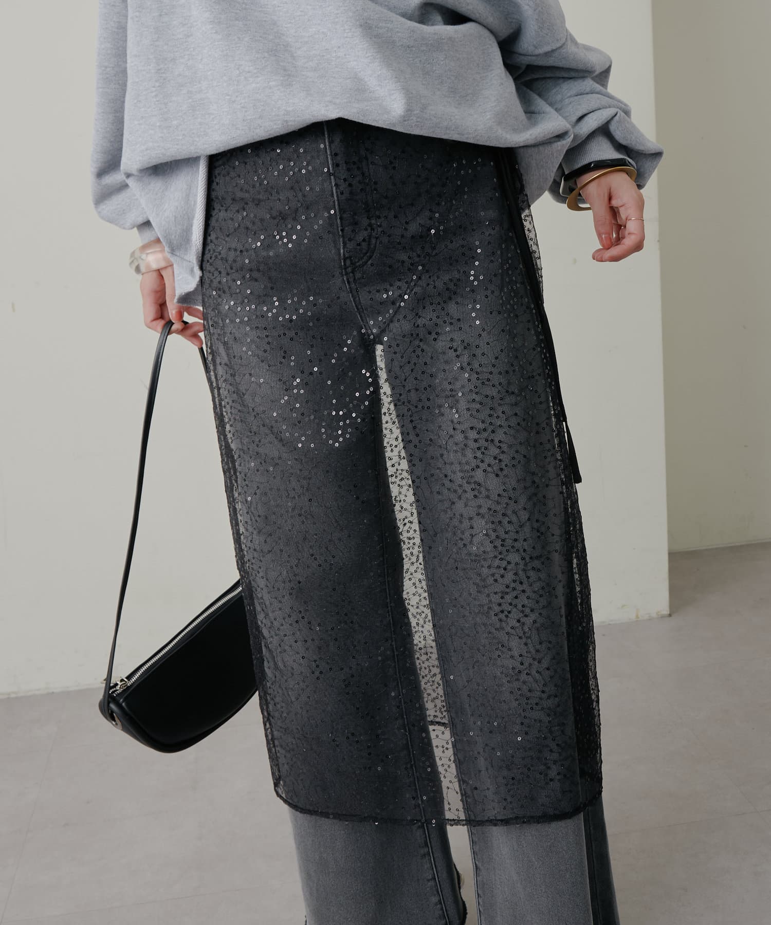 スパンコールが華やかな印象を演出してくれるラップスカート