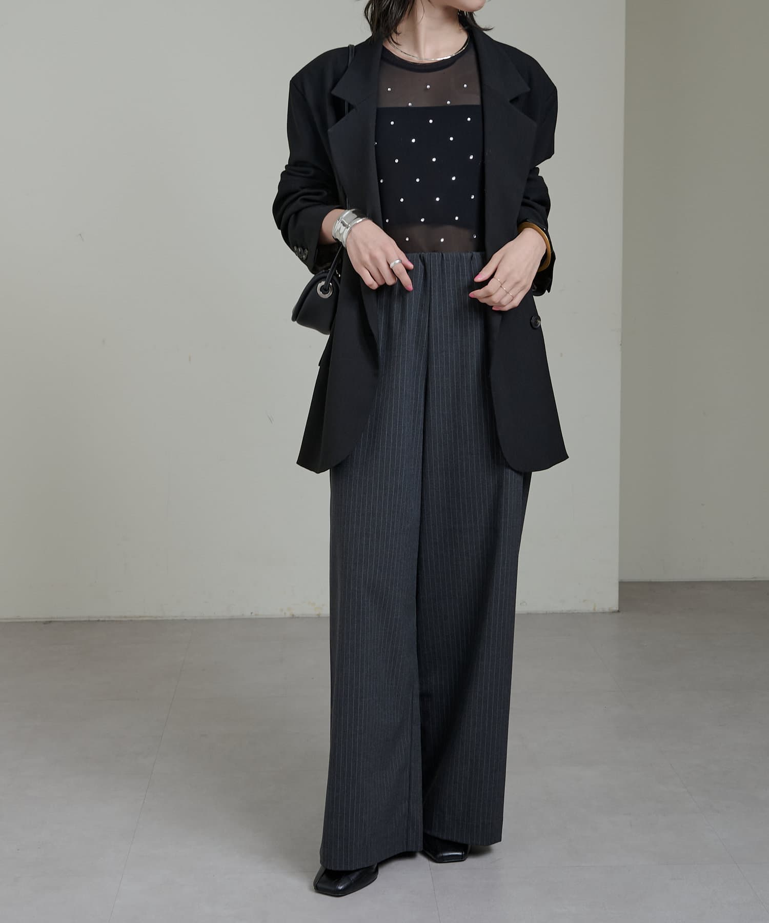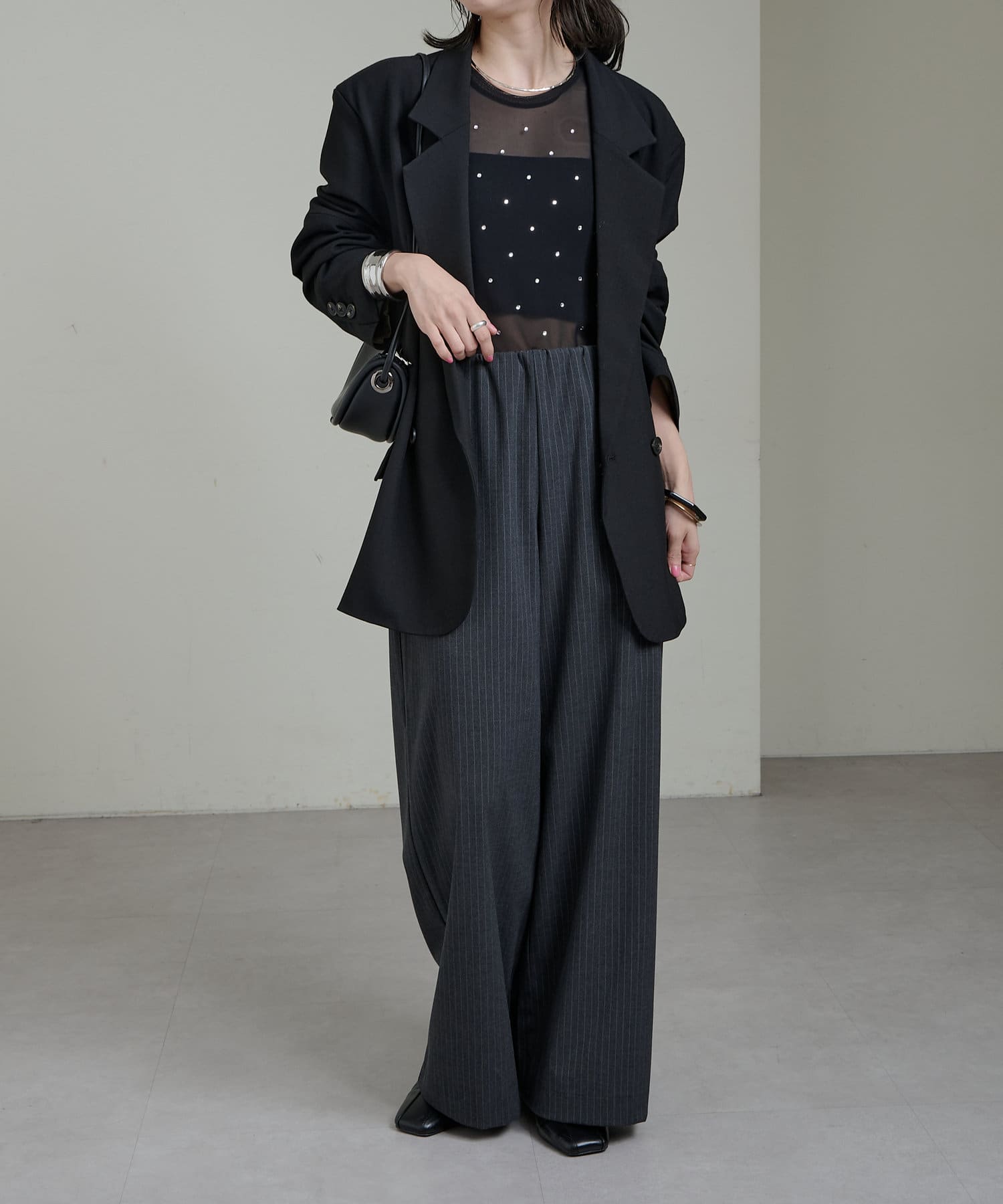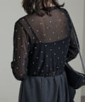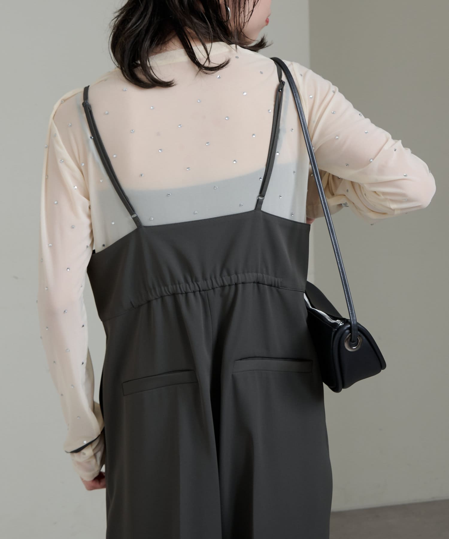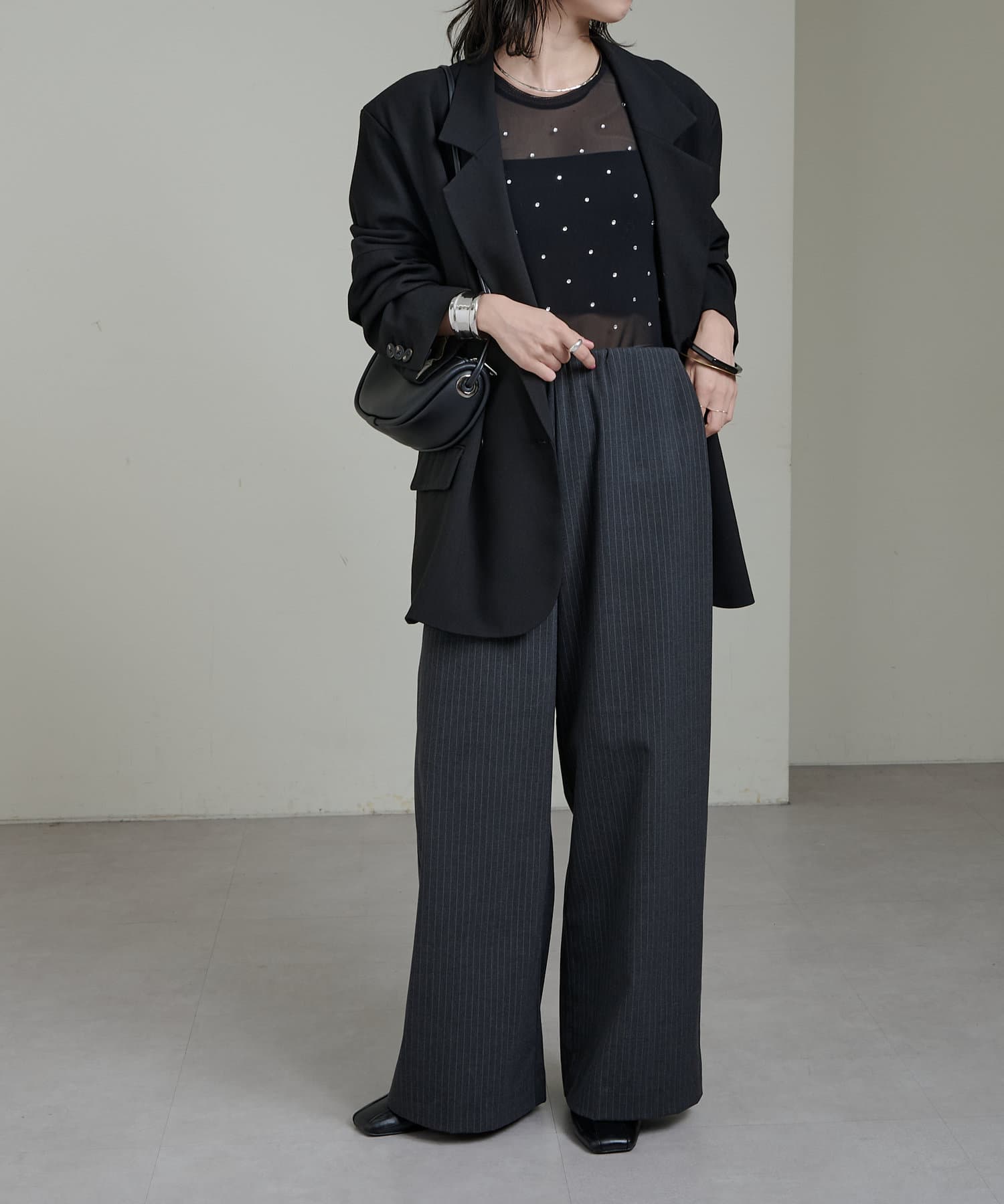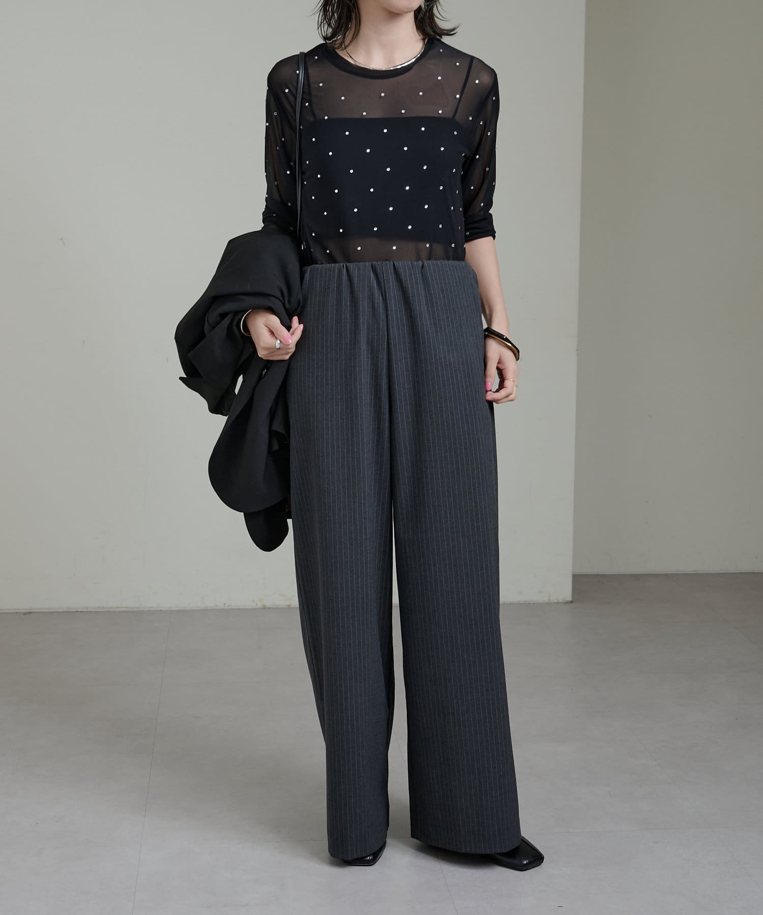 ・小さめのきらっと光るビジューがスタイリングに映える1枚。
