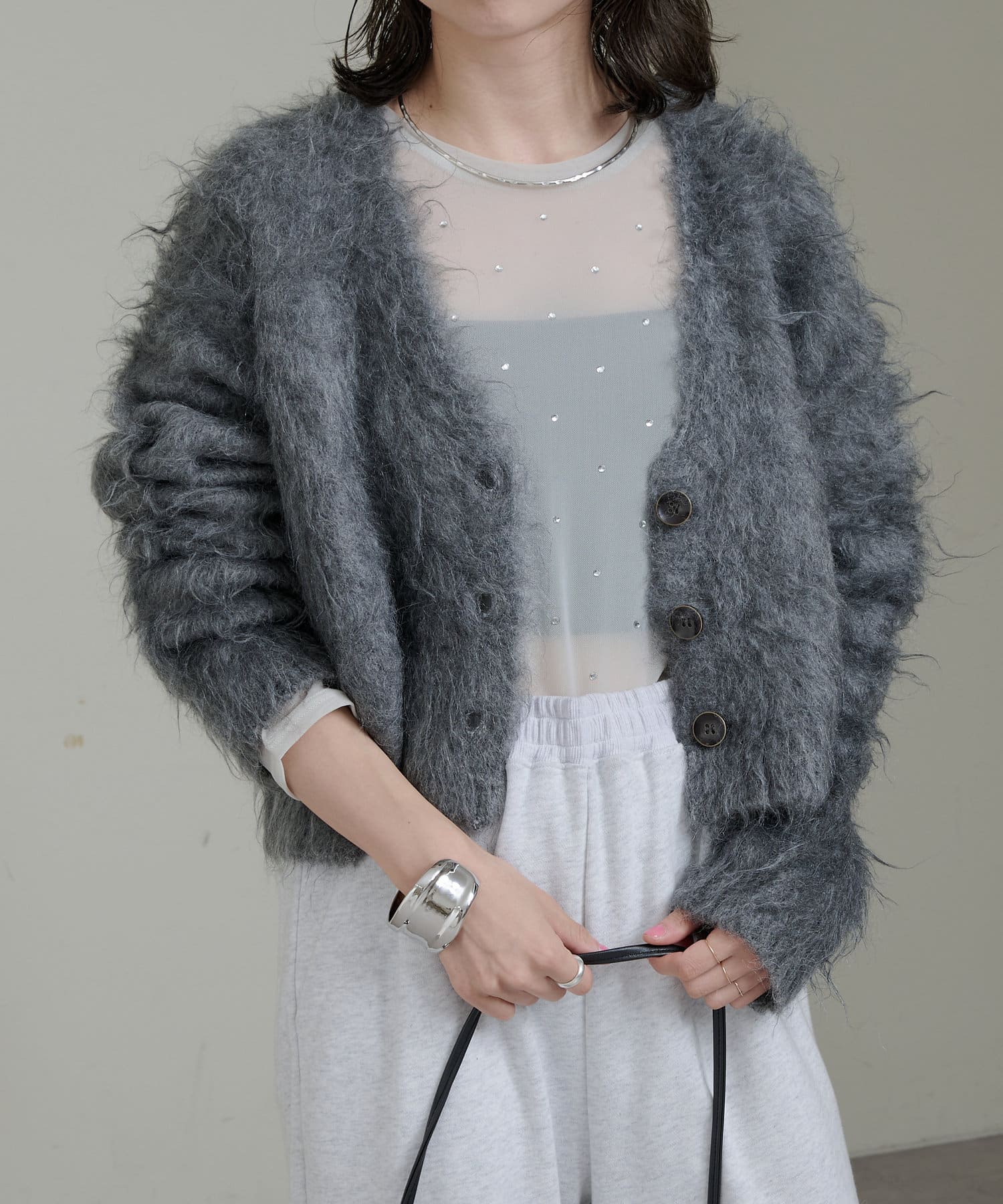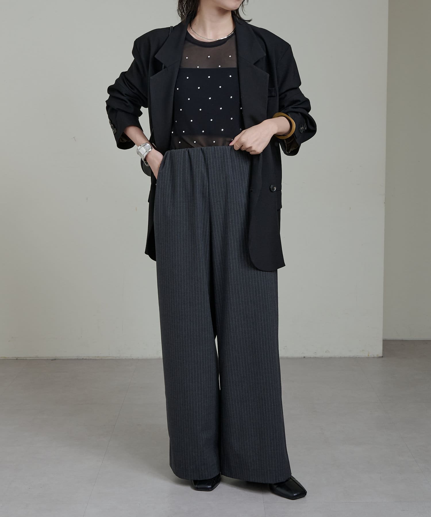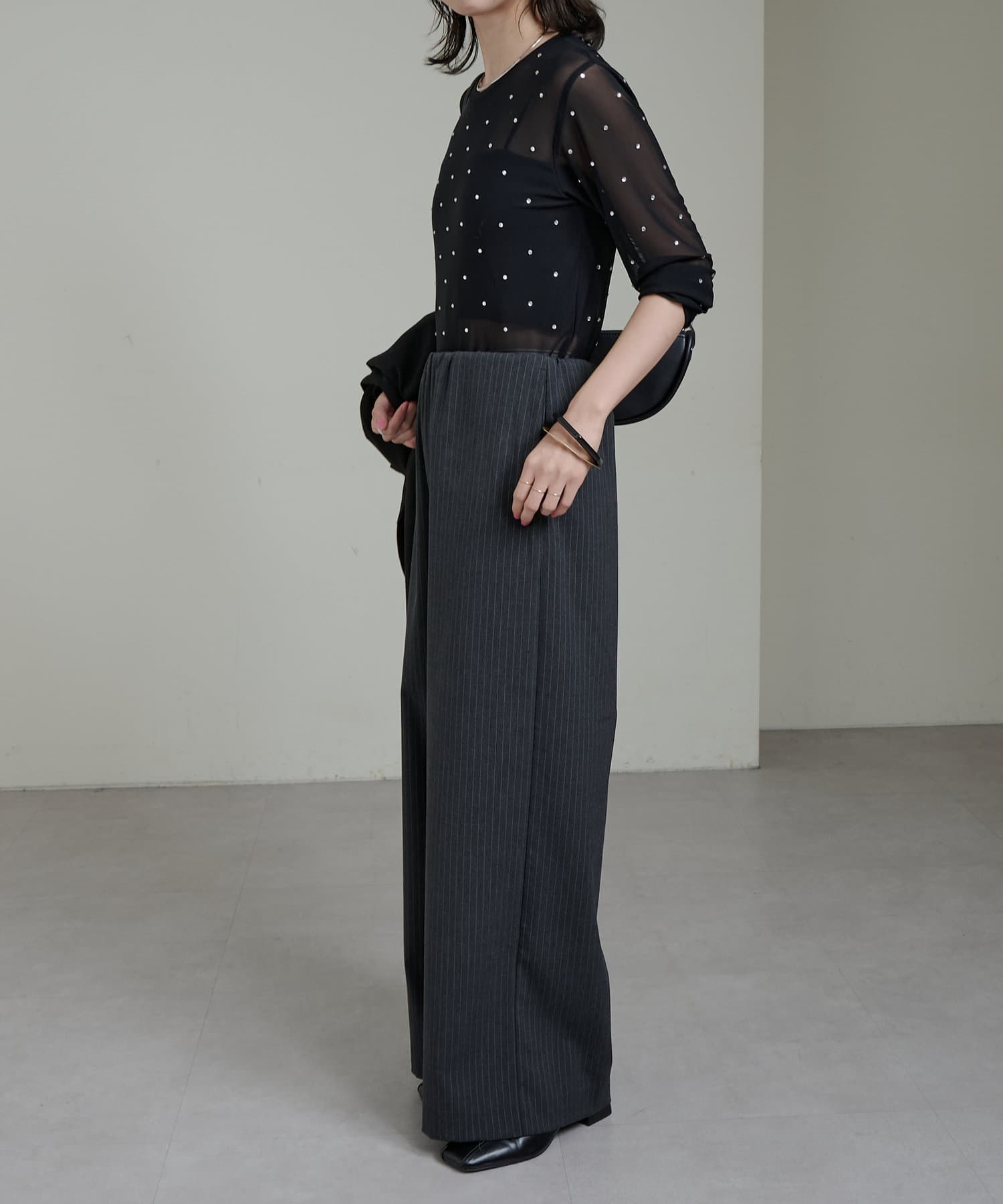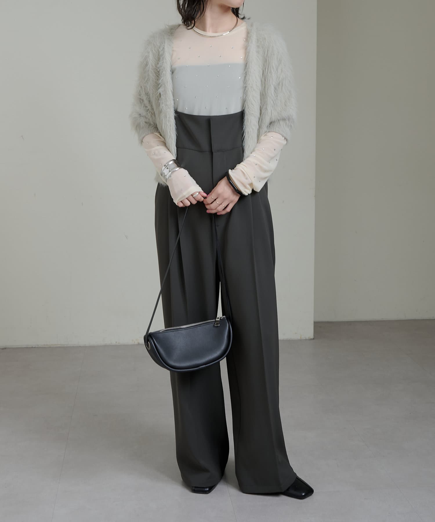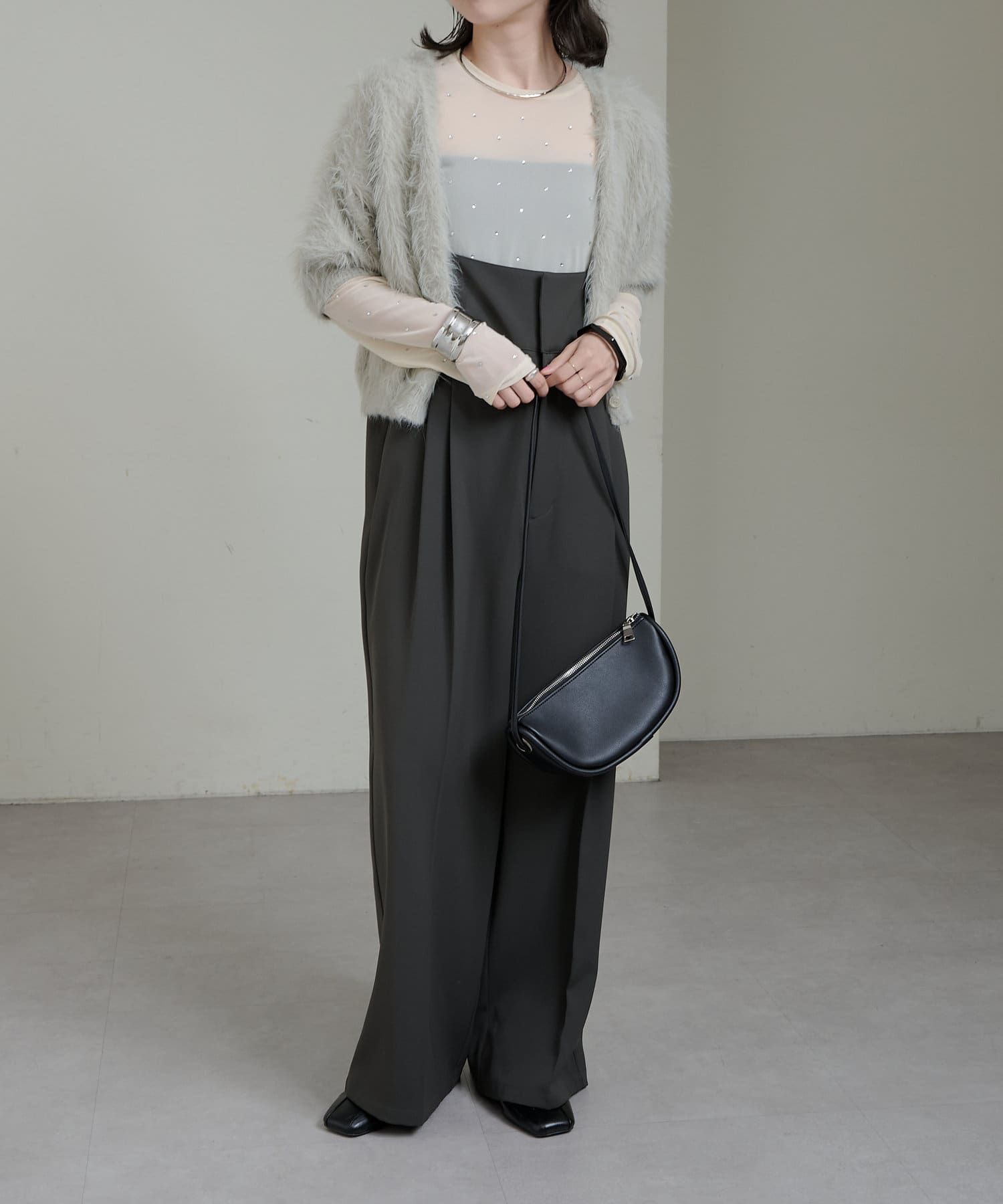 ・小さめのきらっと光るビジューがスタイリングに映える1枚。