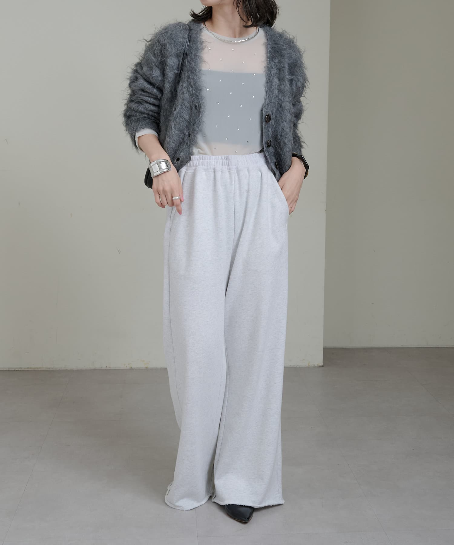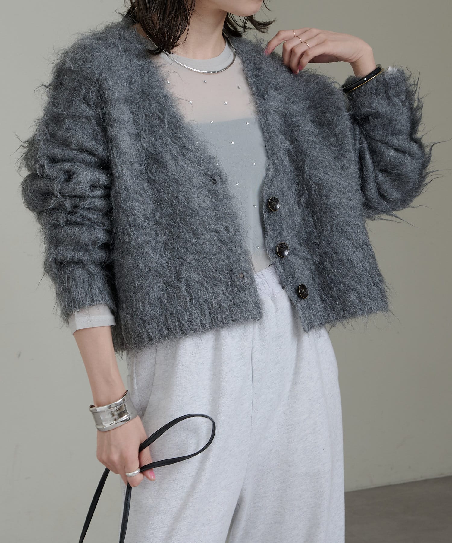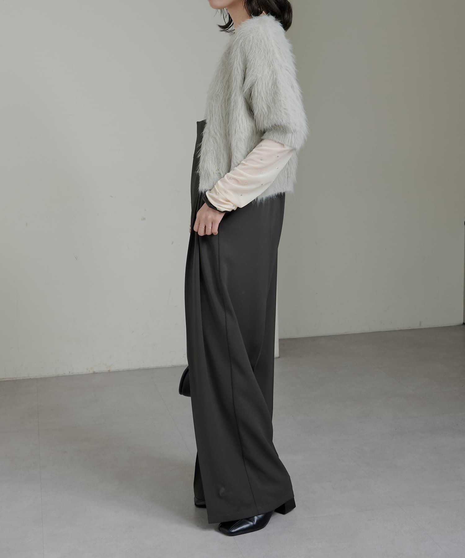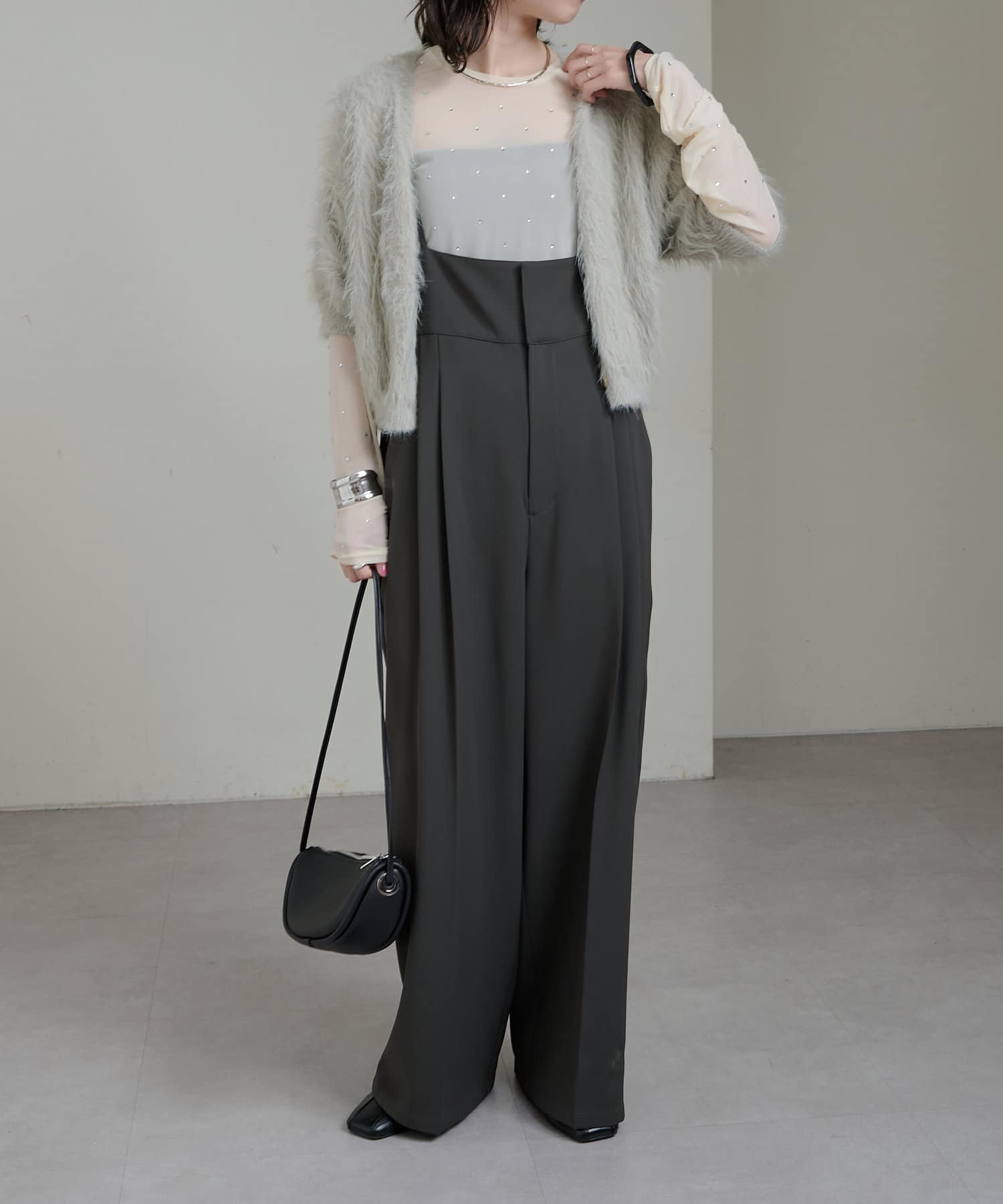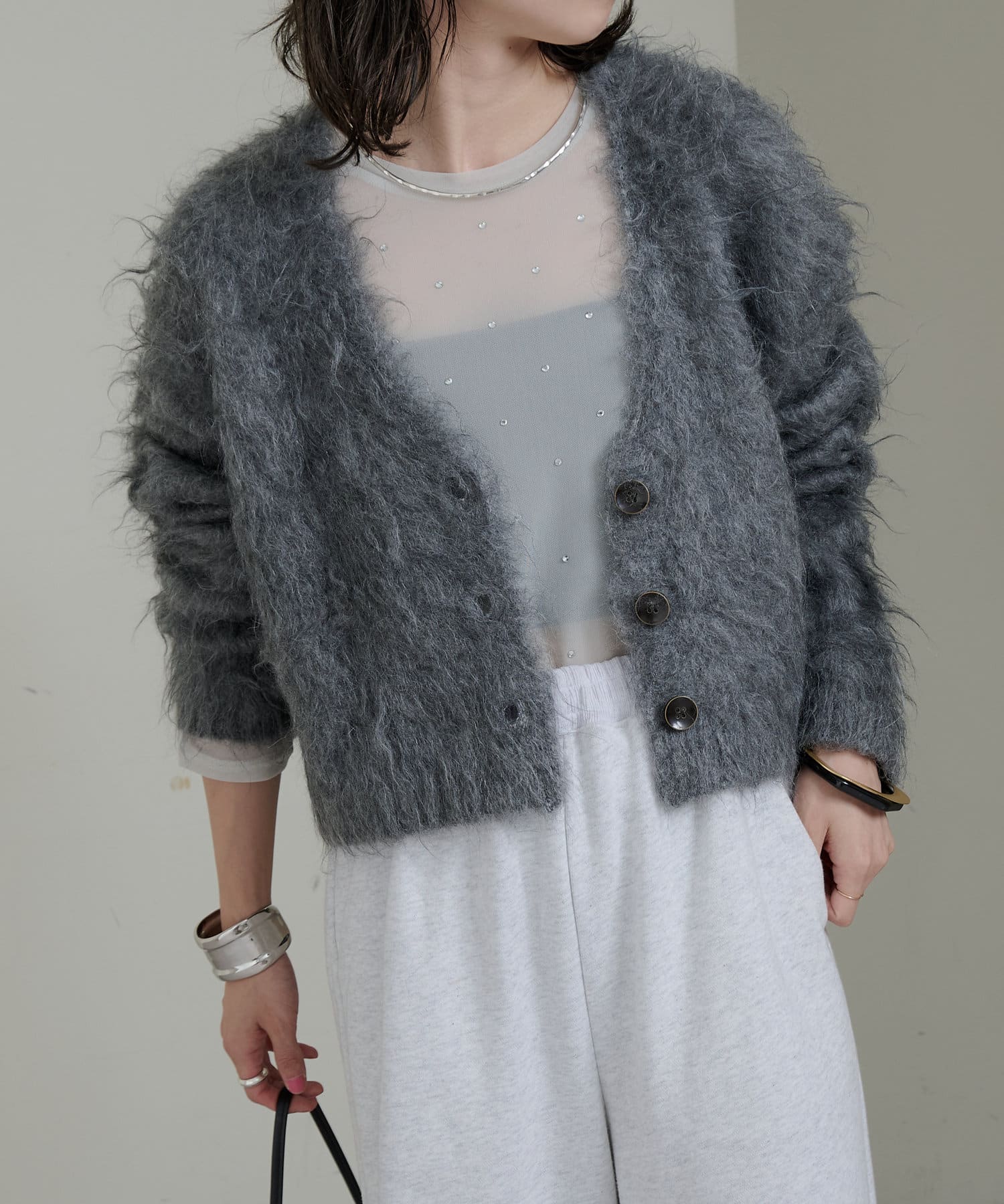 ・小さめのきらっと光るビジューがスタイリングに映える1枚。