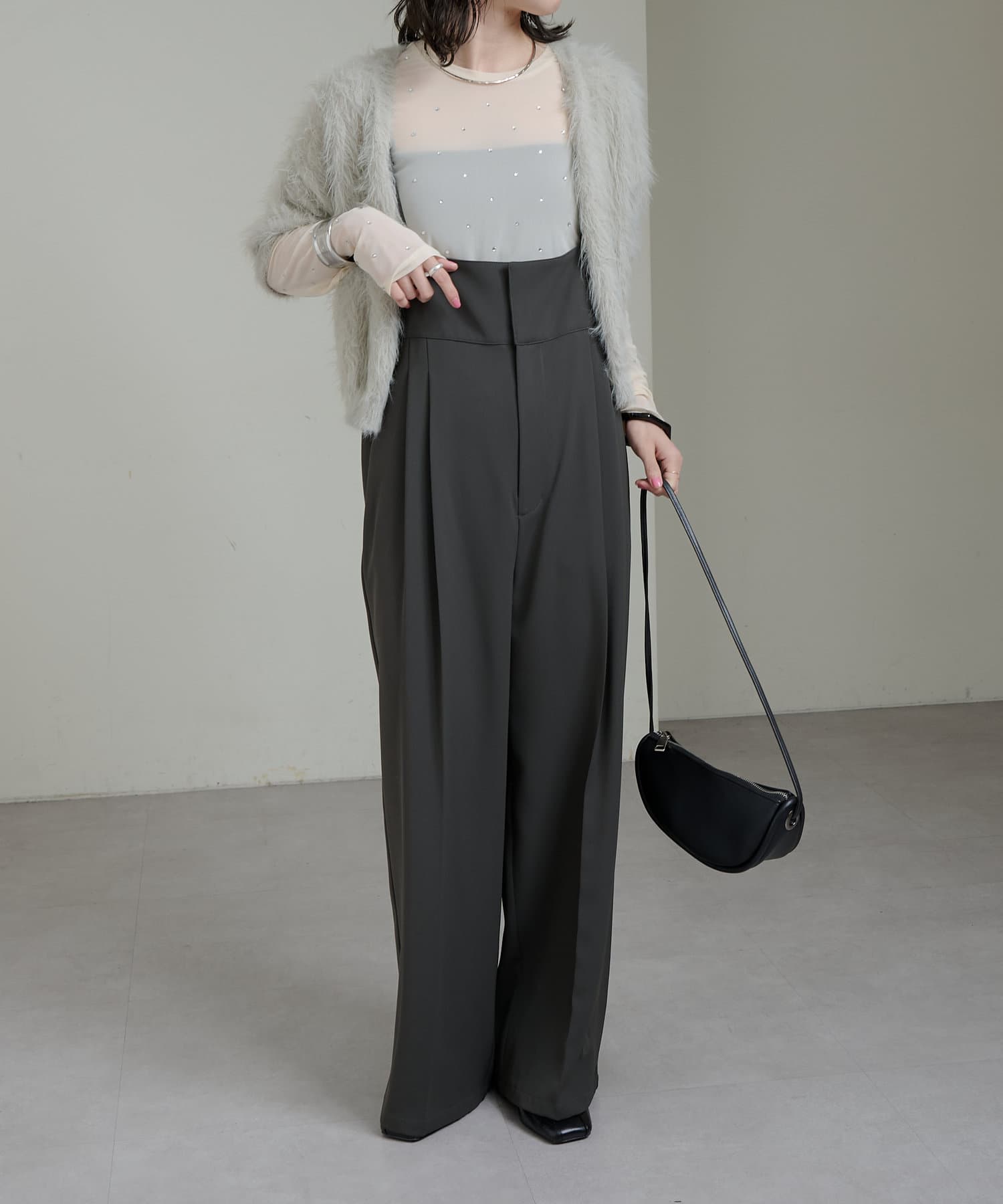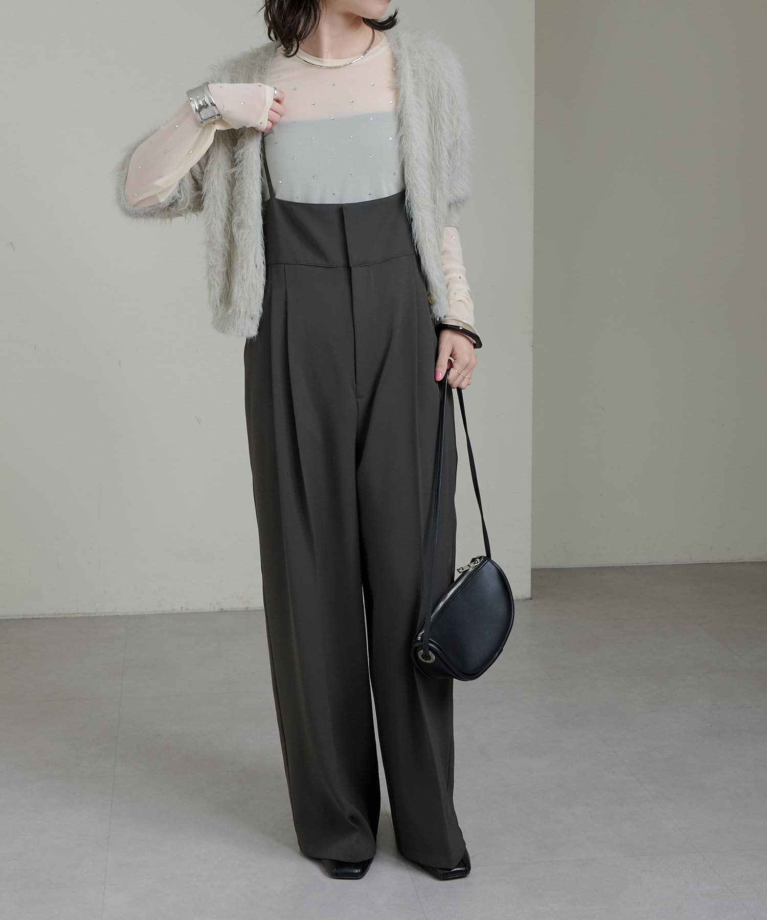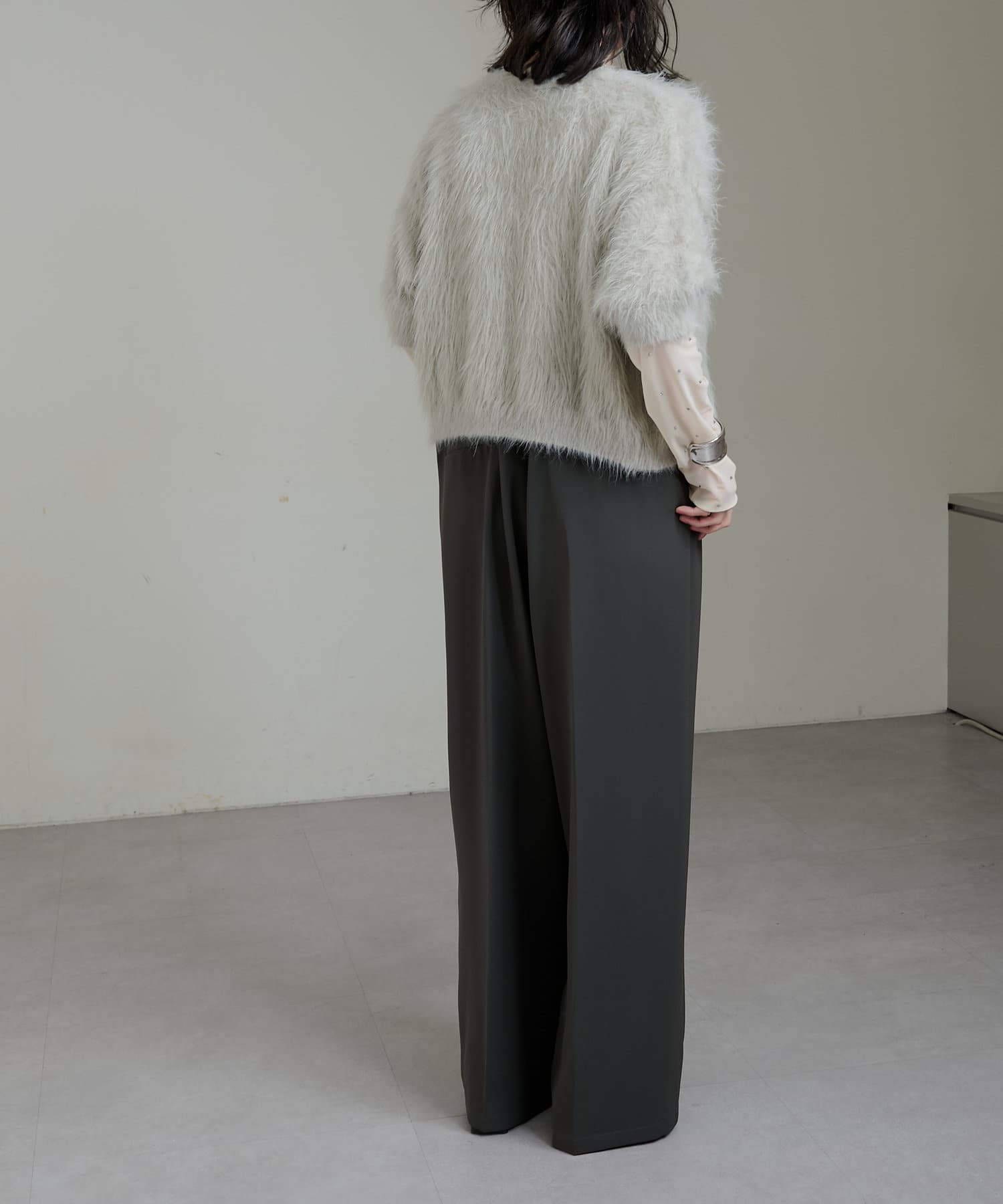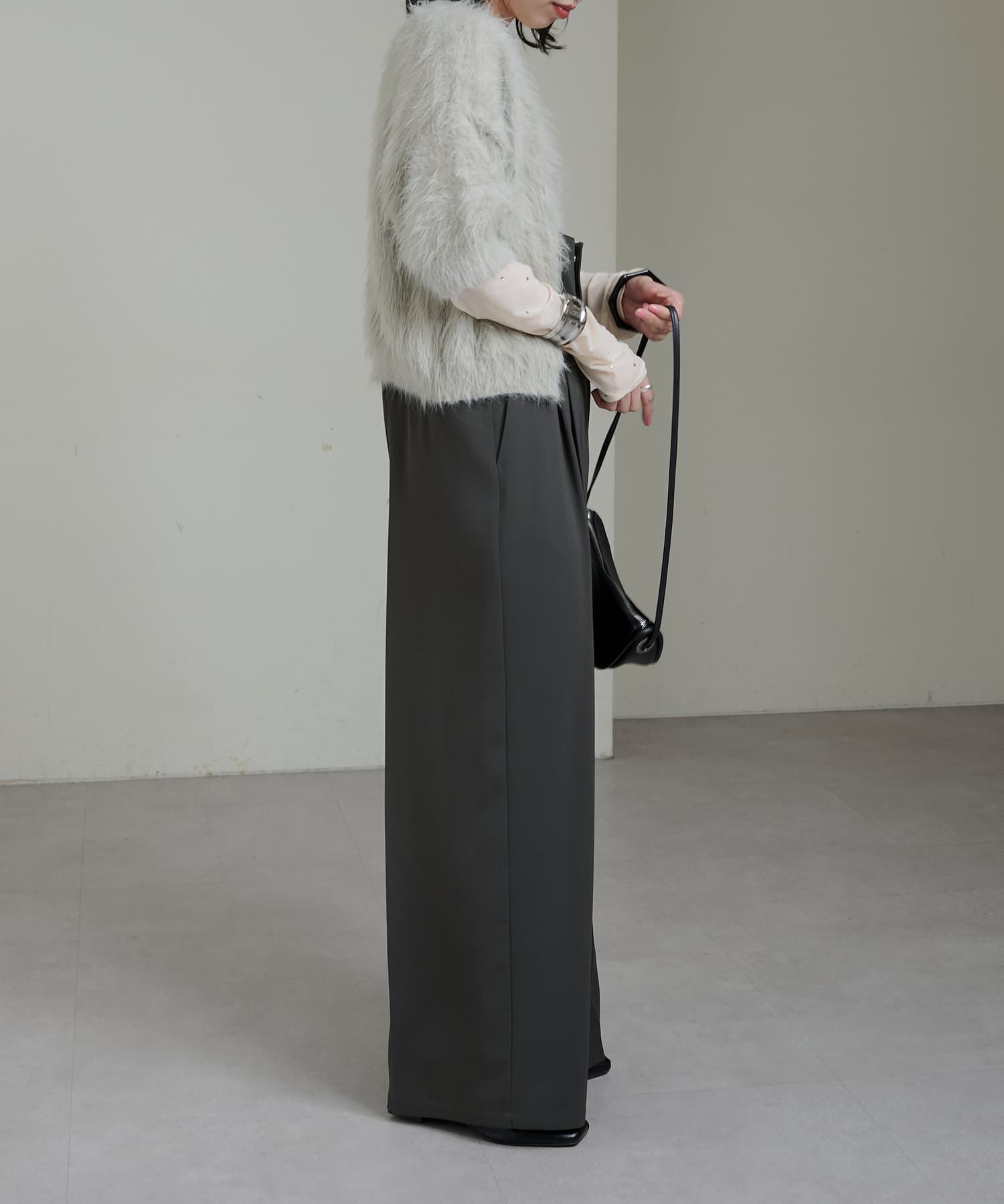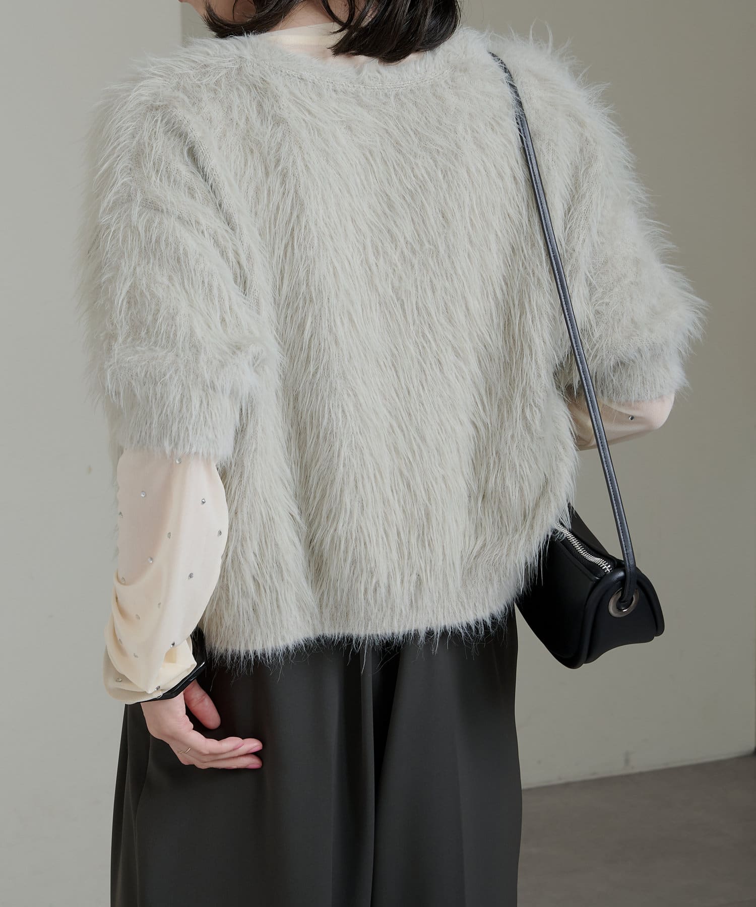 ・小さめのきらっと光るビジューがスタイリングに映える1枚。