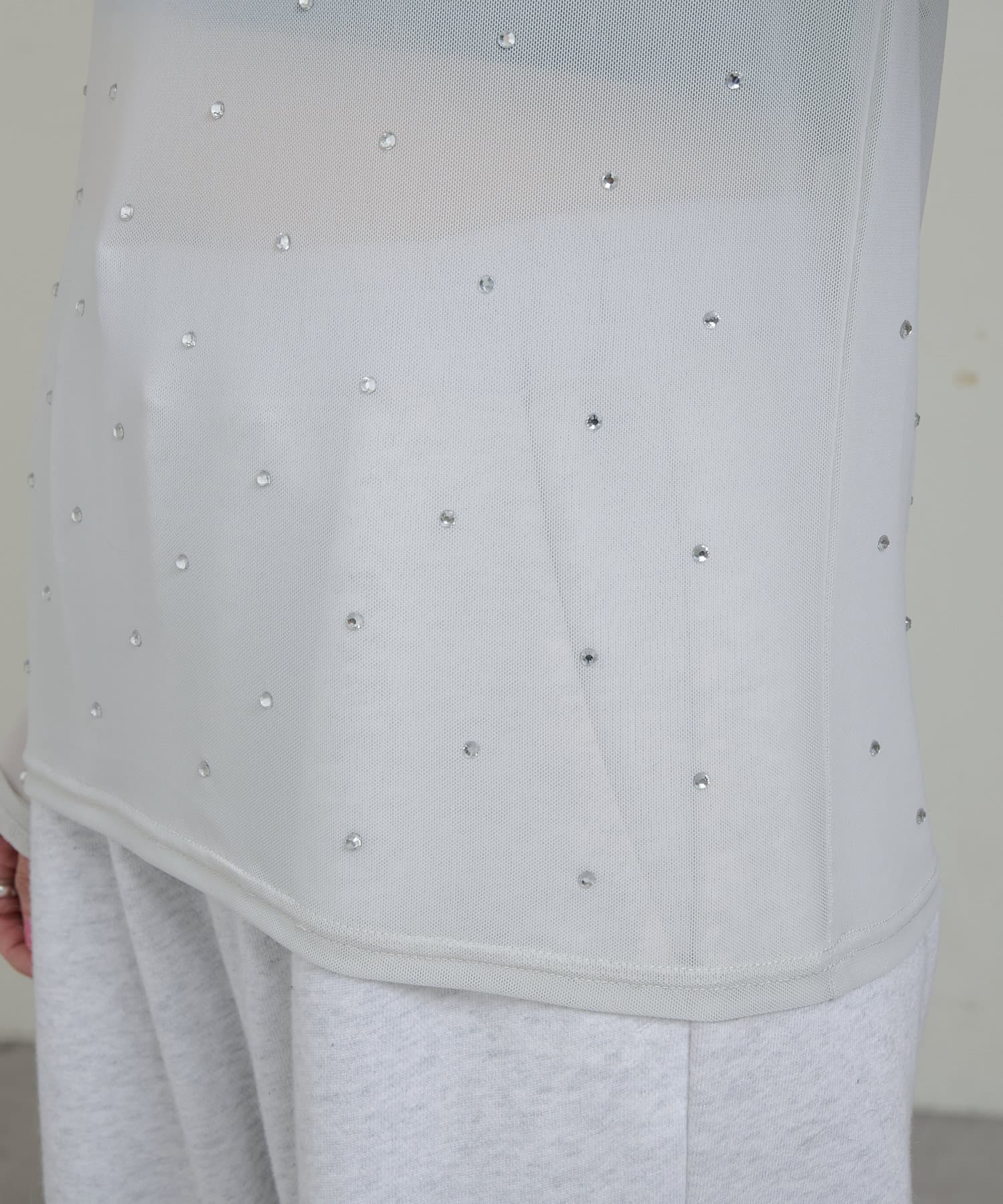TOP > Omekashi > レディース > トップス > Tシャツ/カットソー > ビジューチュールロンT