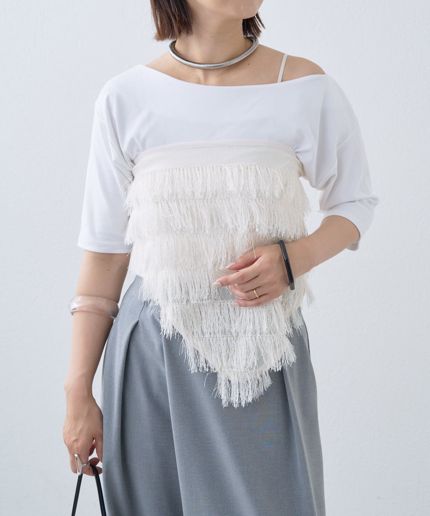 ・胸元や腰に巻いてレイヤードが楽しめるアイテム。