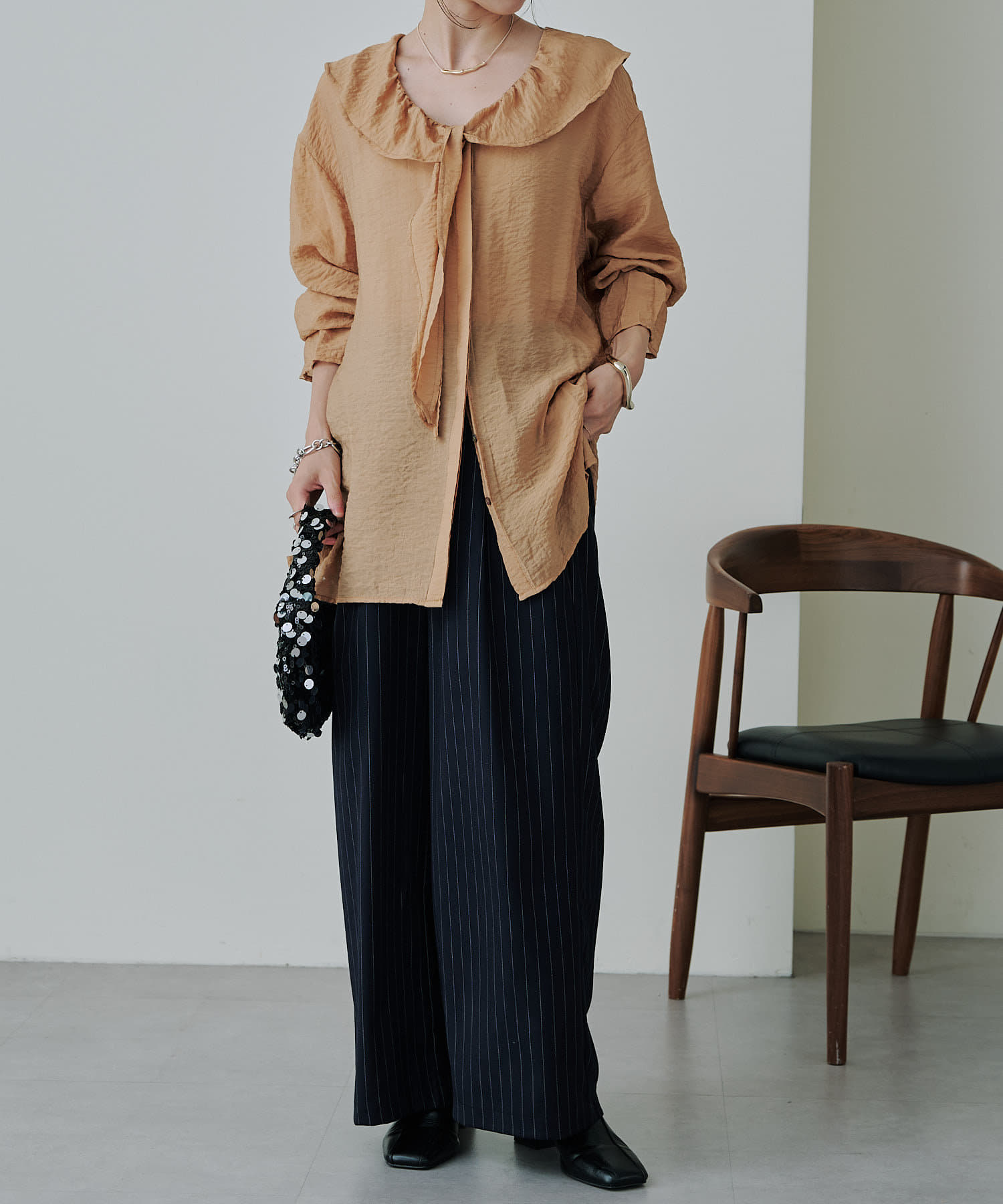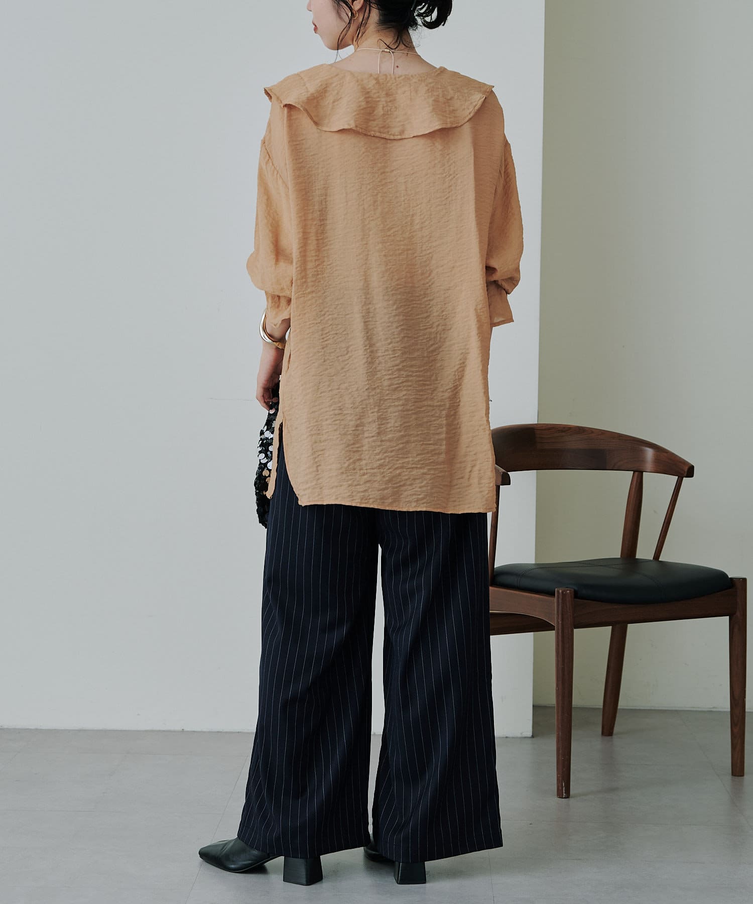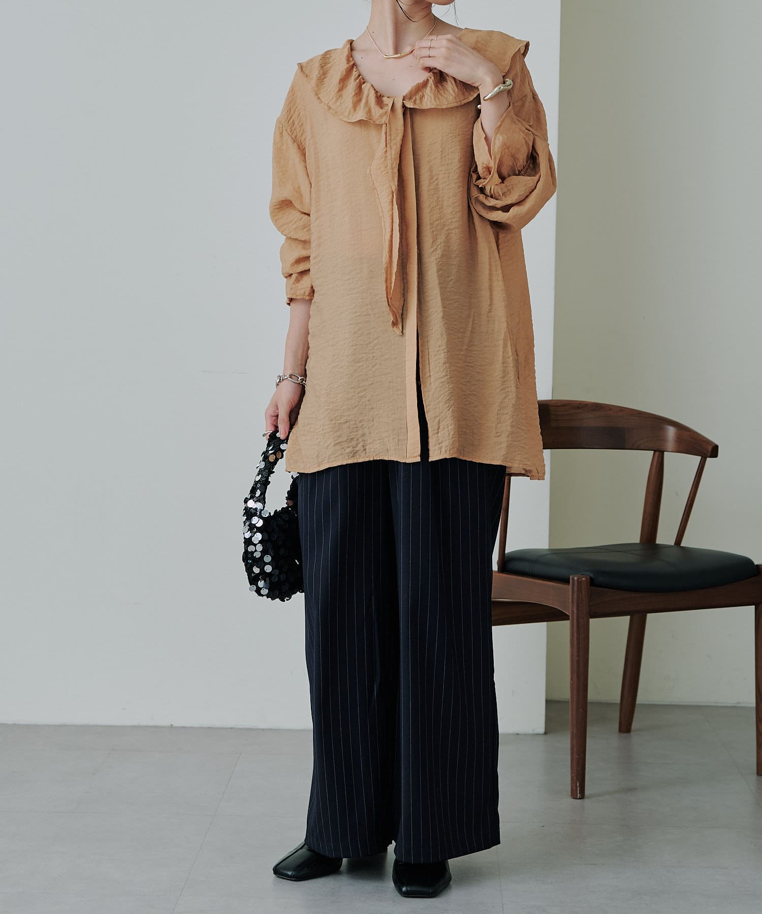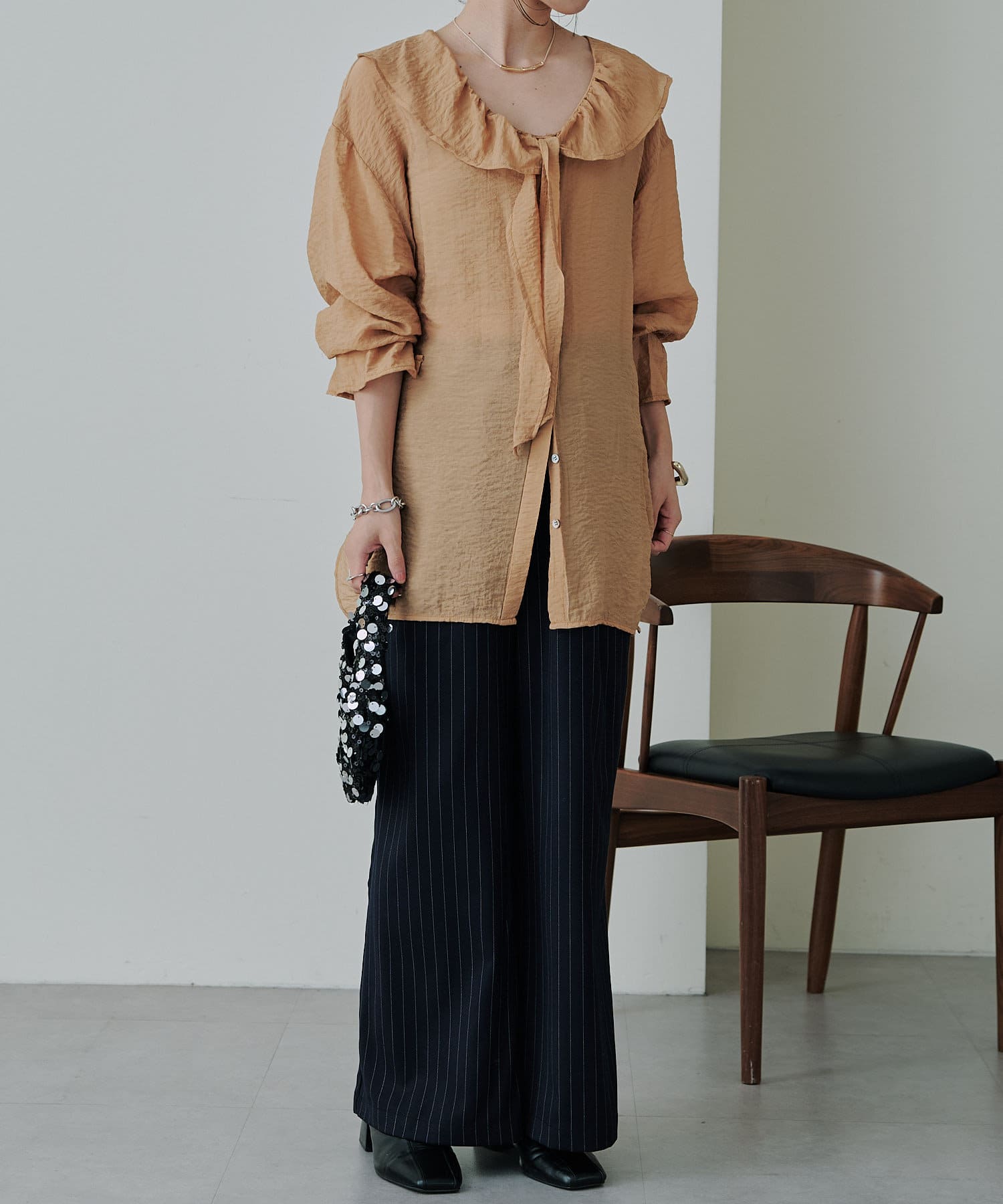・トレンドライクなシアー素材で仕上げた、ボリュームのある1枚。
