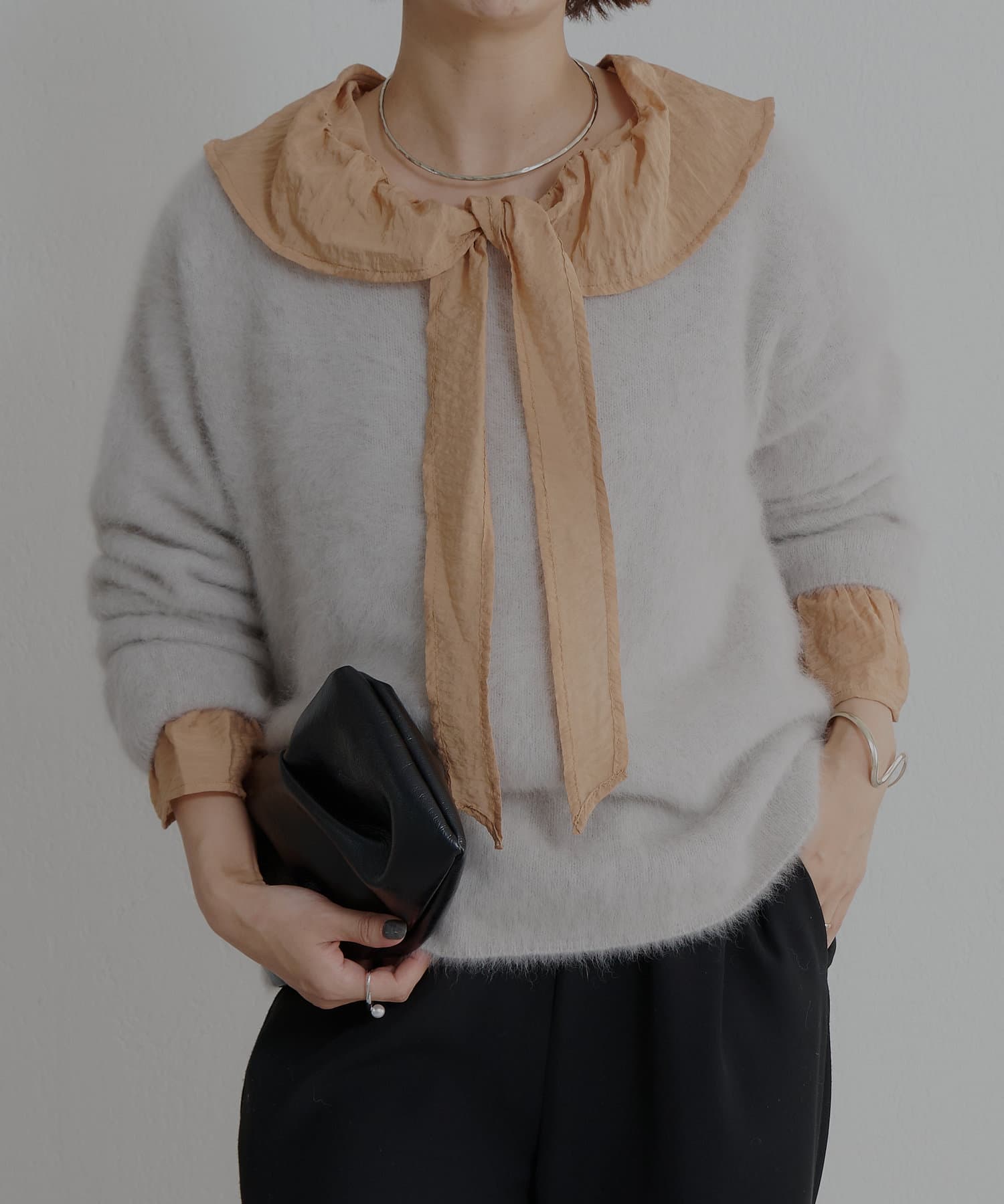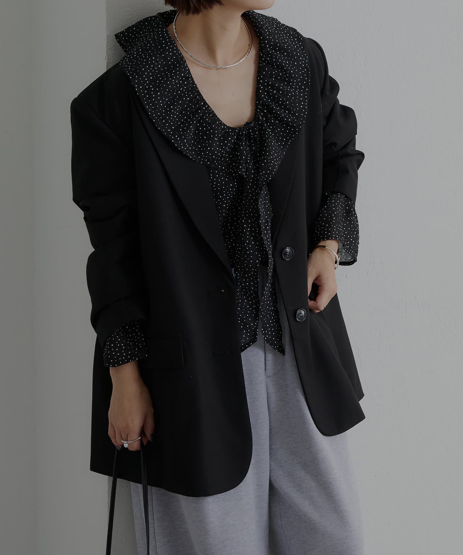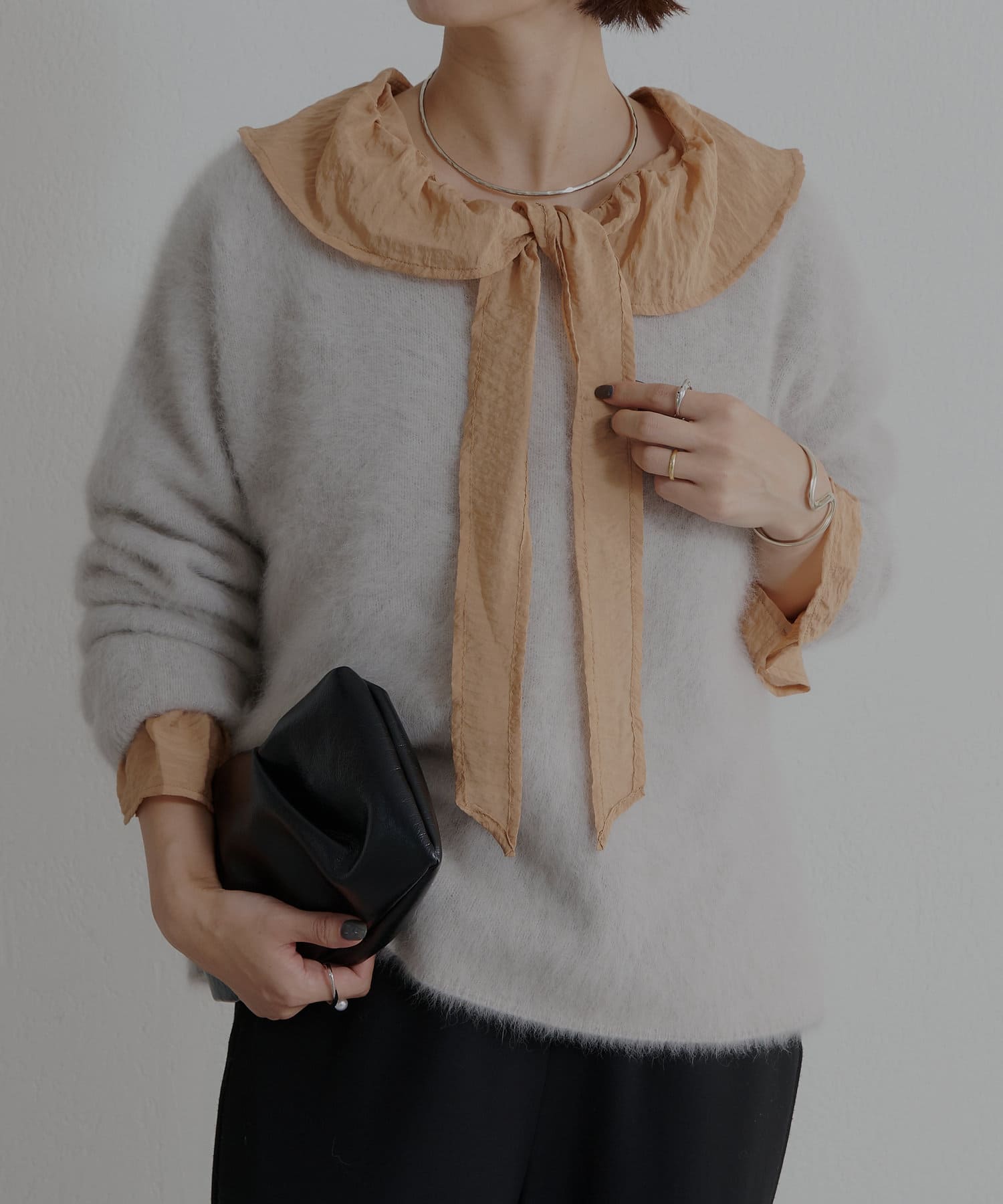 ・ニットやジャケットとのレイヤードで襟や袖を出すスタイリングもおすすめです。