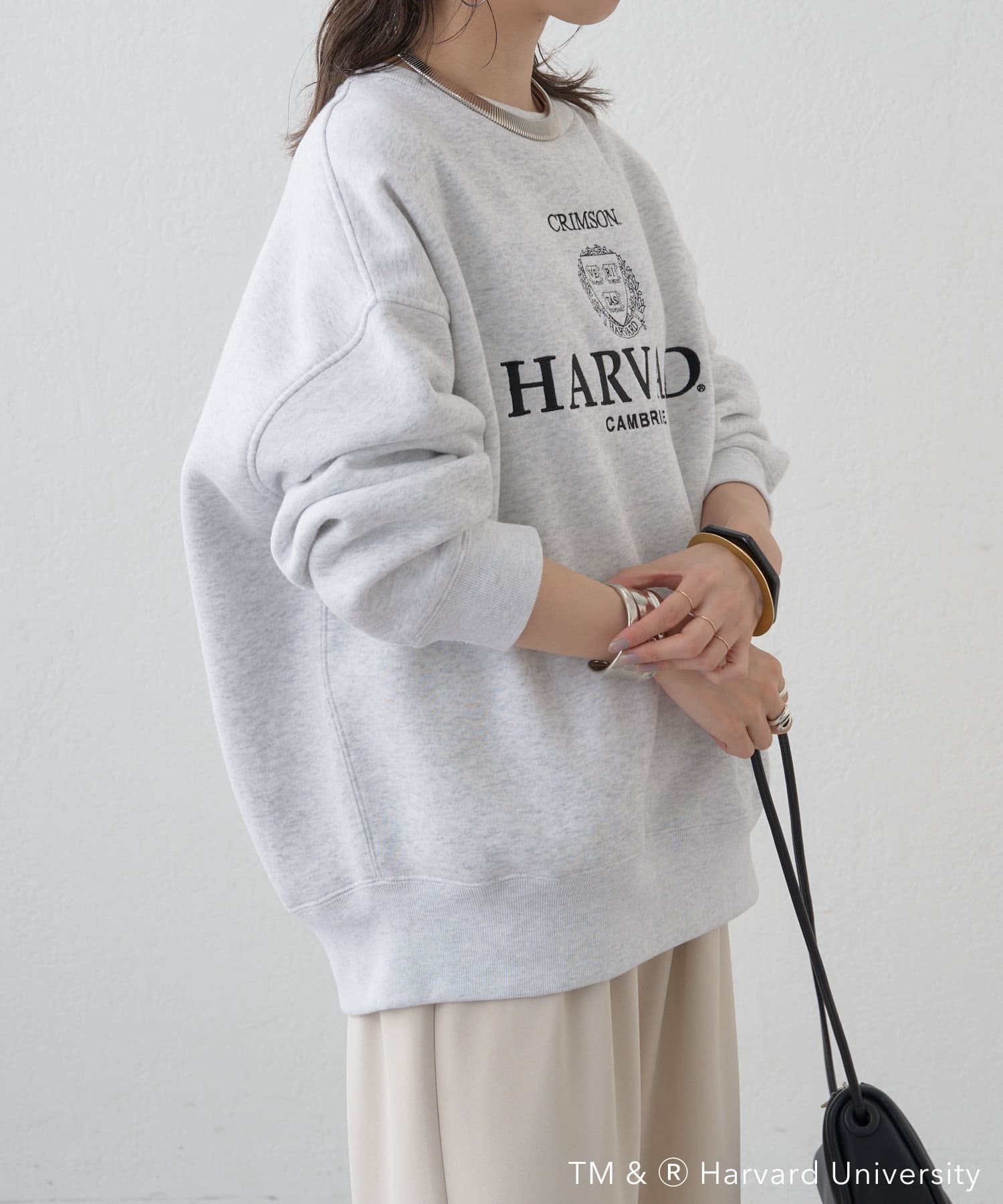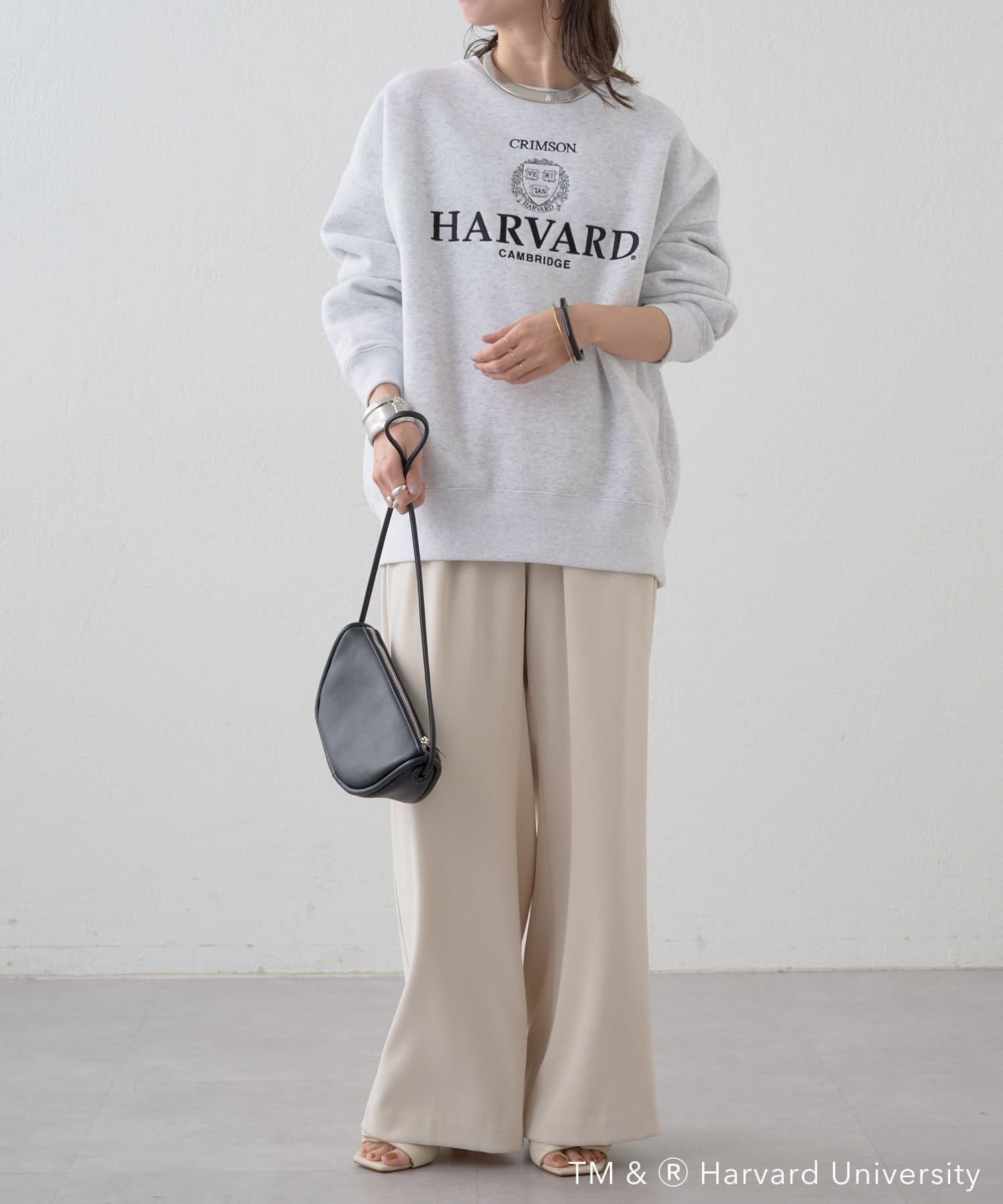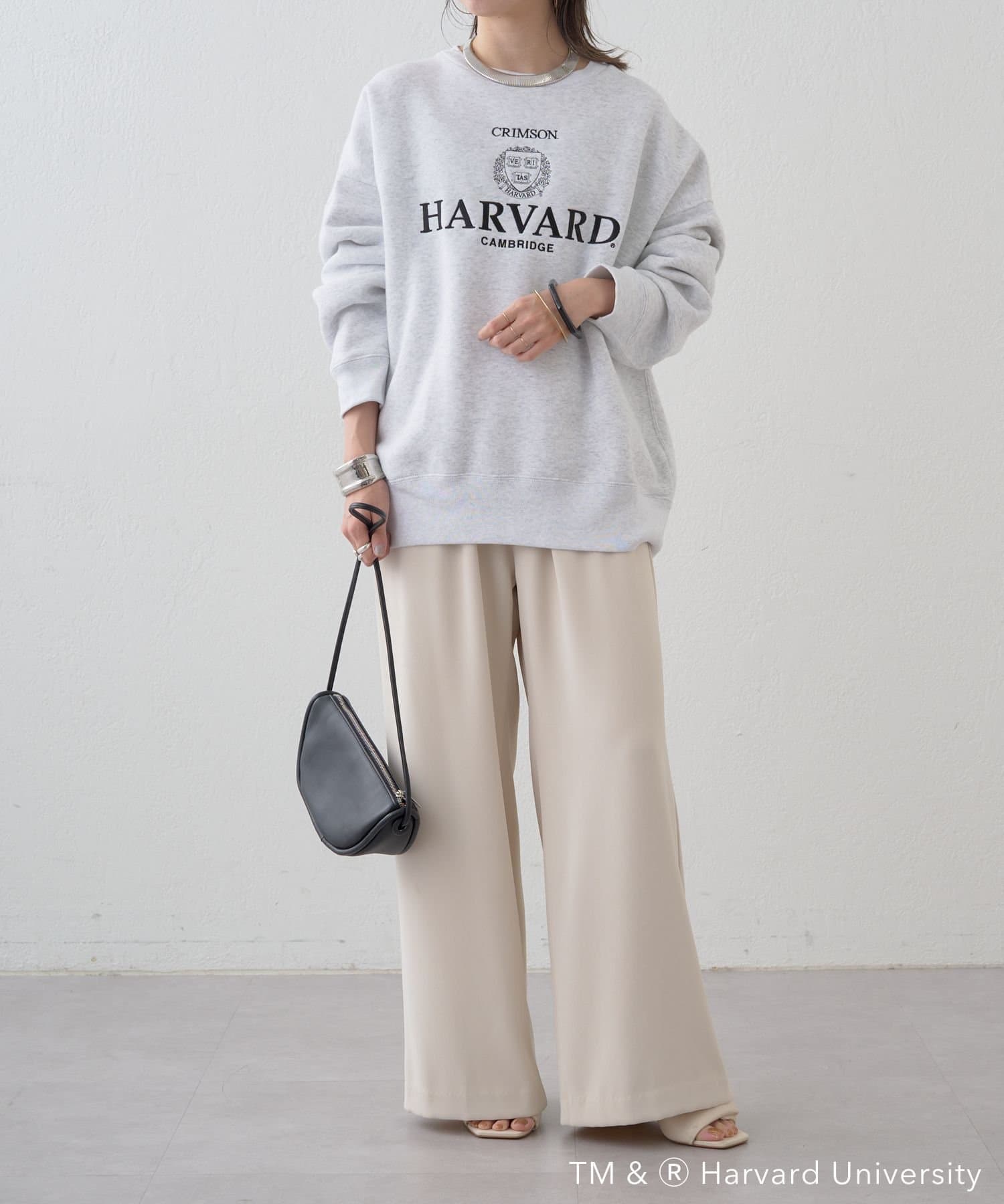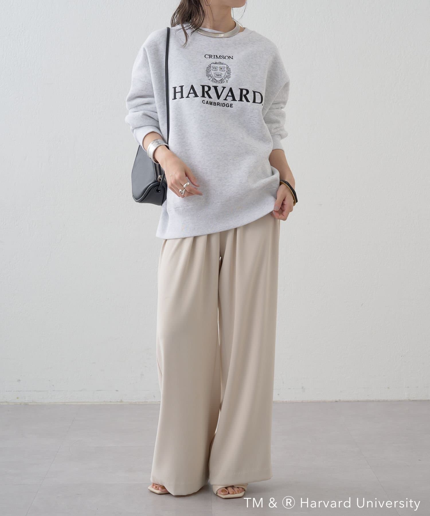 部屋着っぽくなりがちなグレースウェットですが、ロゴが大人っぽくてポイントになります。