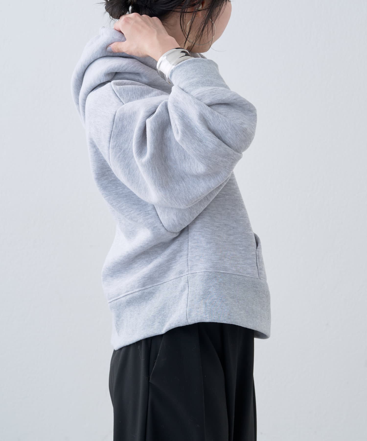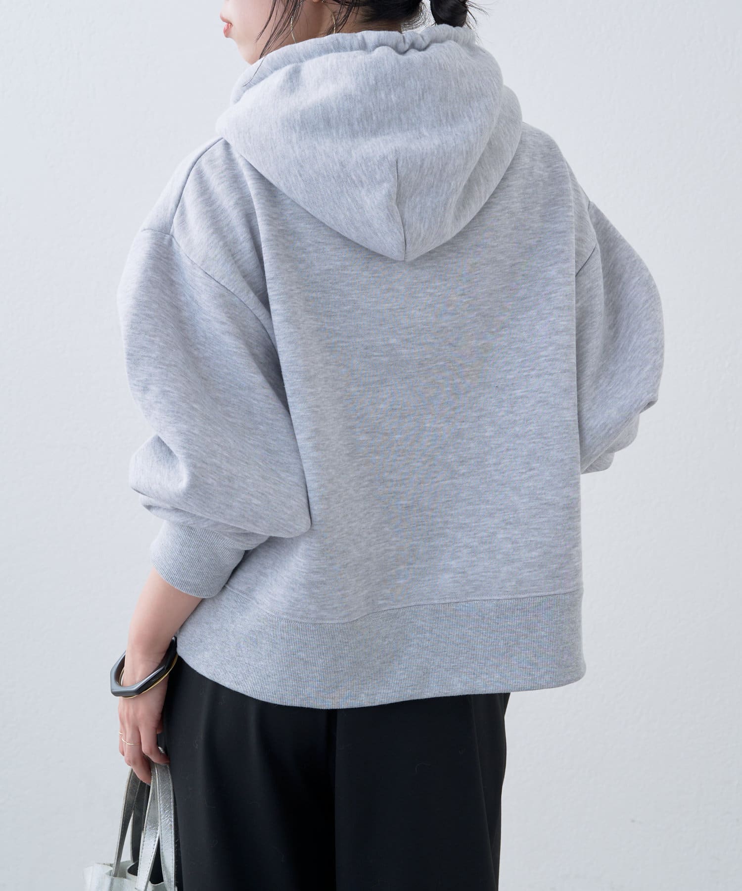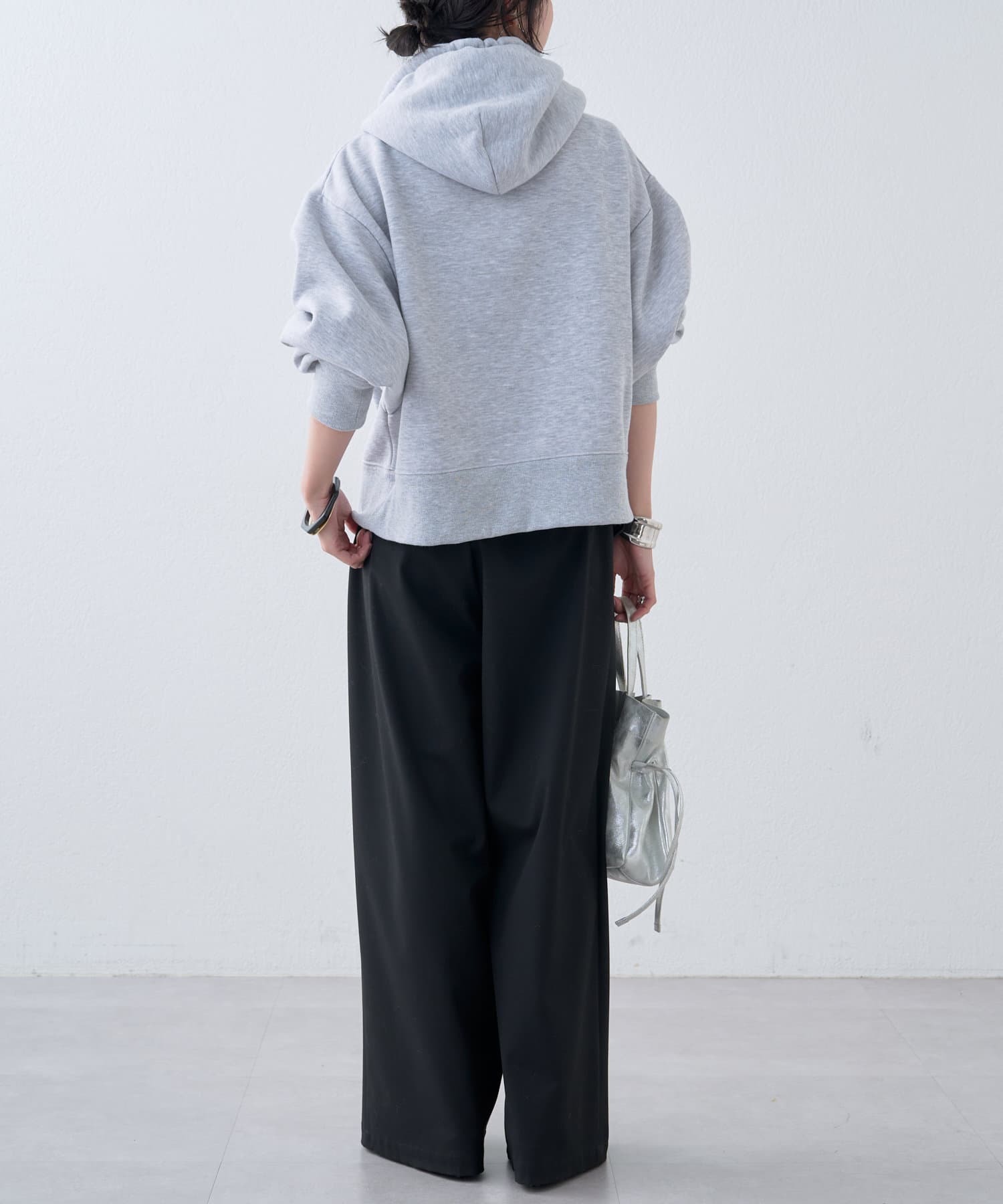 ・短めの丈感なので、ボリュームのあるパンツとの相性も抜群です。