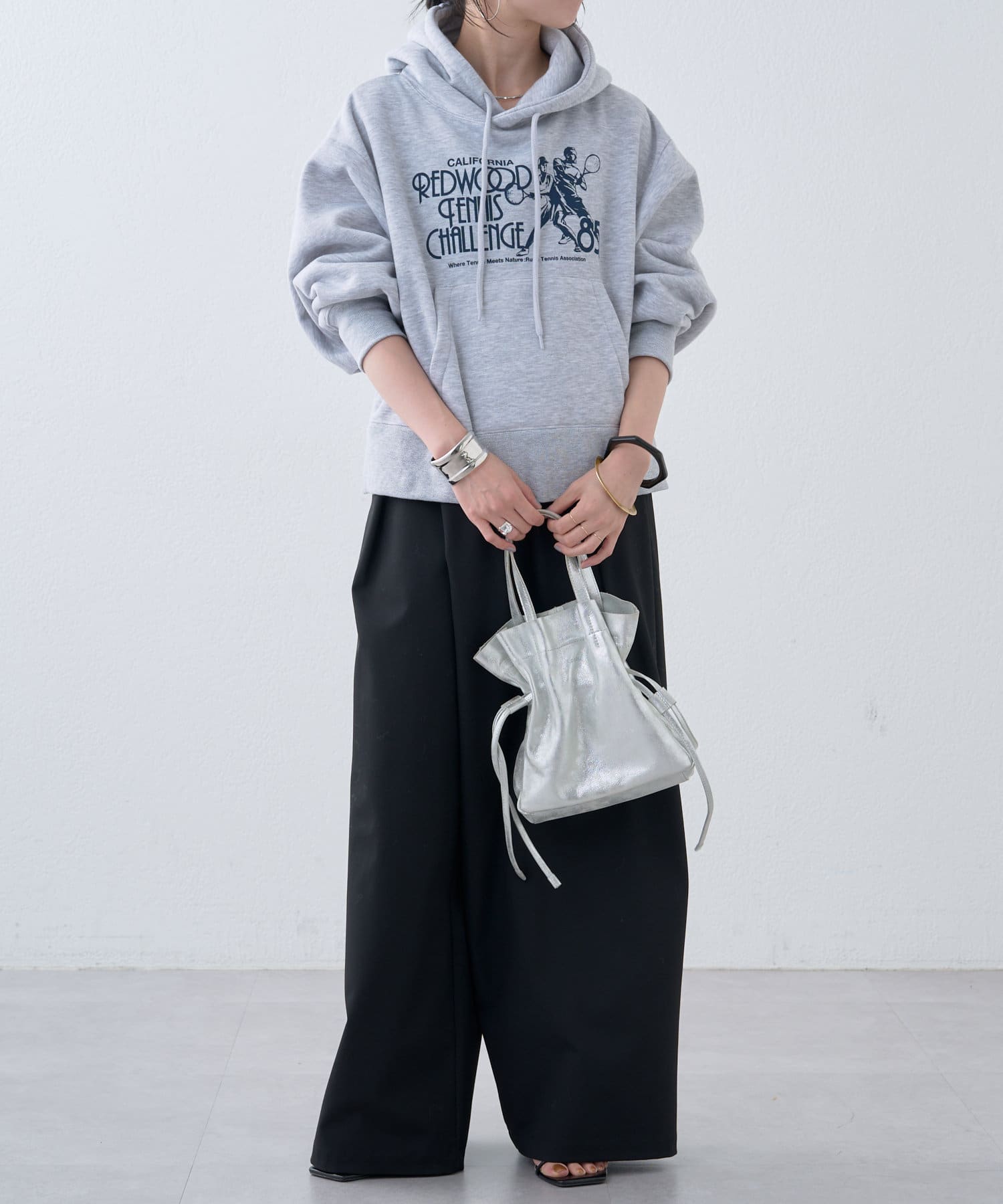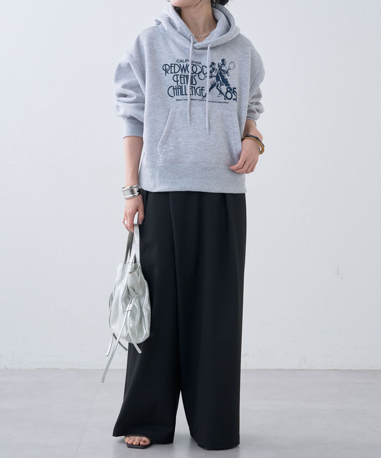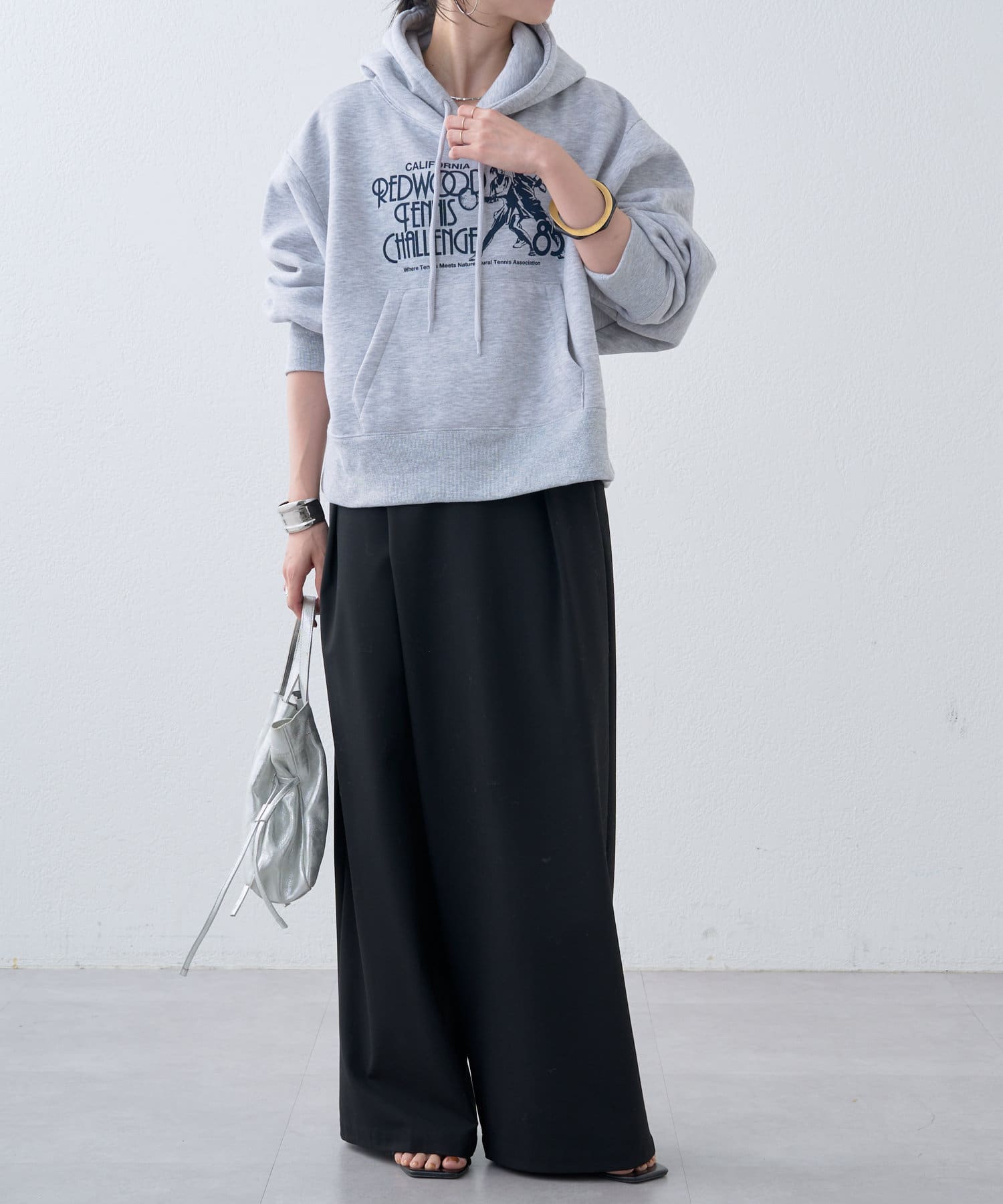 ・短めの丈感なので、ボリュームのあるパンツとの相性も抜群です。