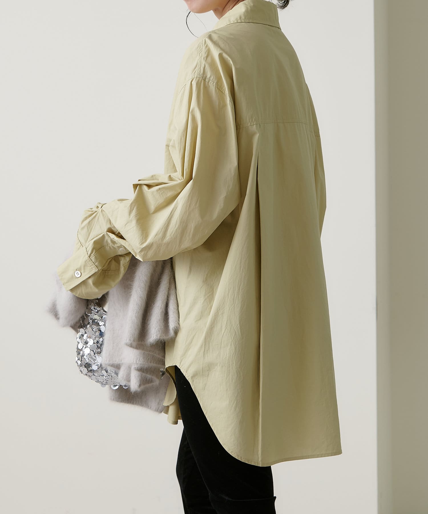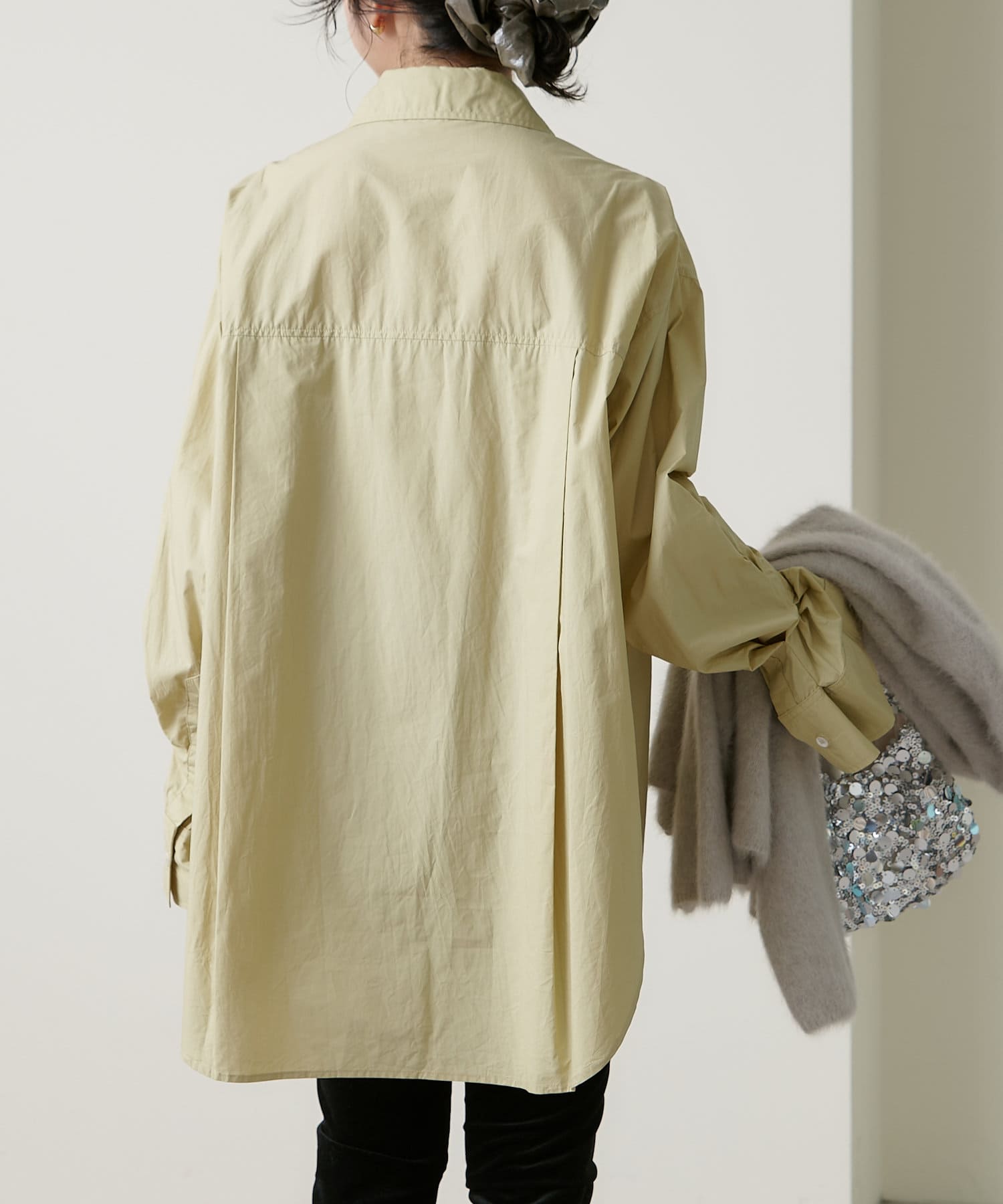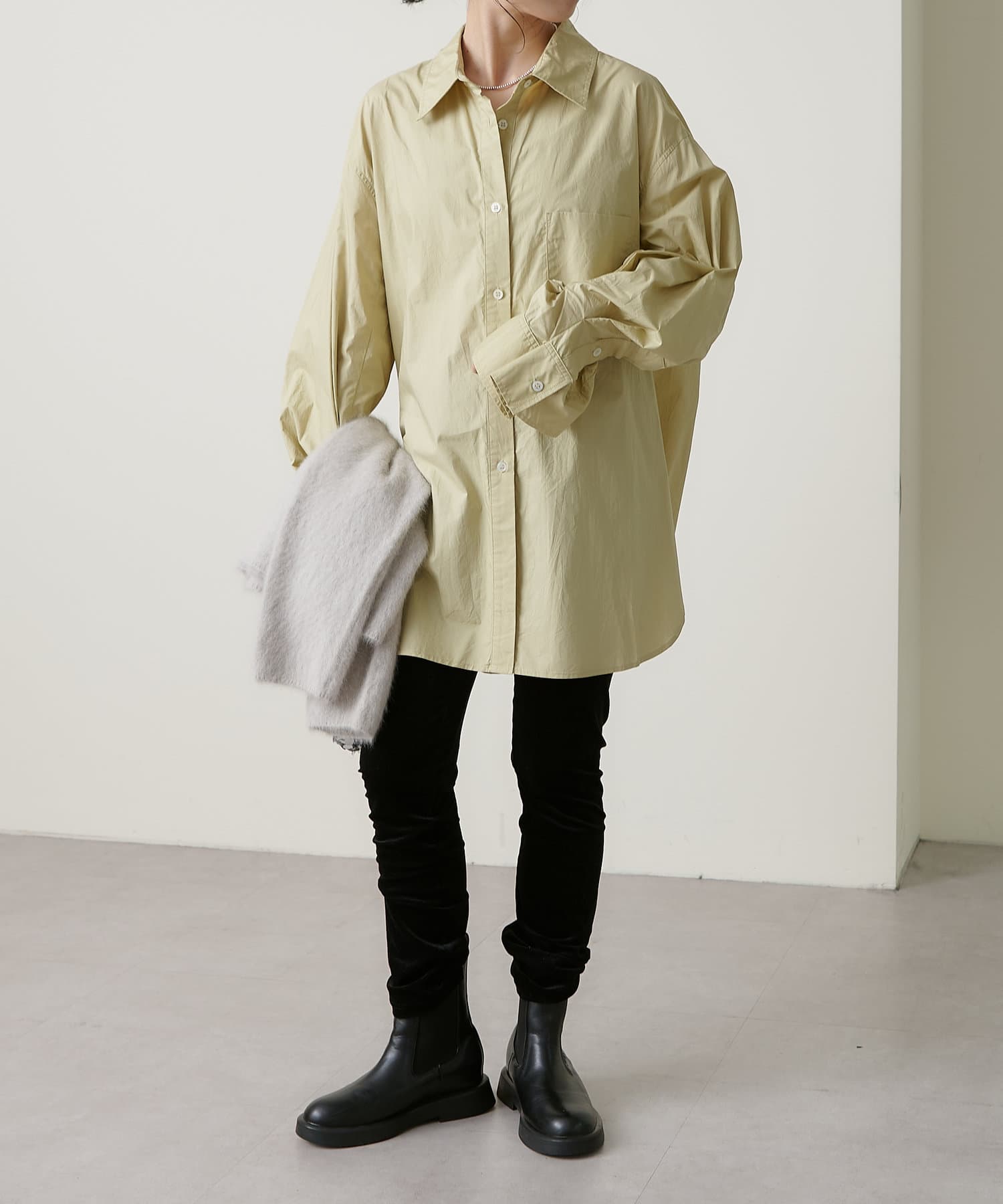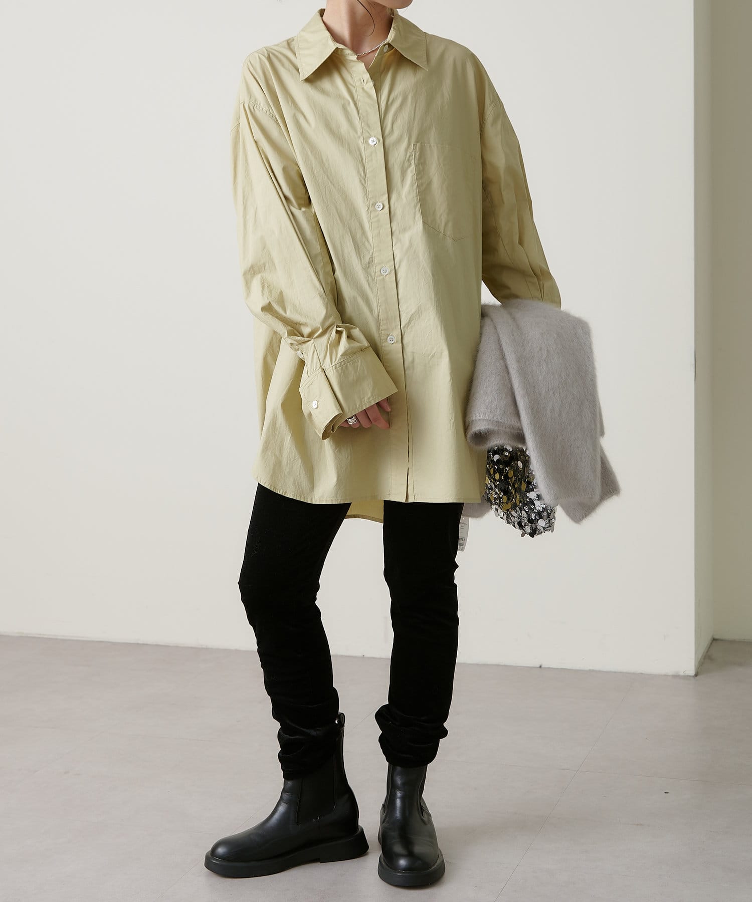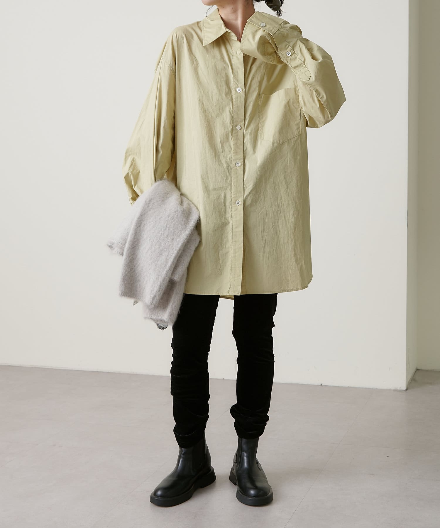 ・ゆったりめのシルエットにヒップが隠れる長めの着丈。