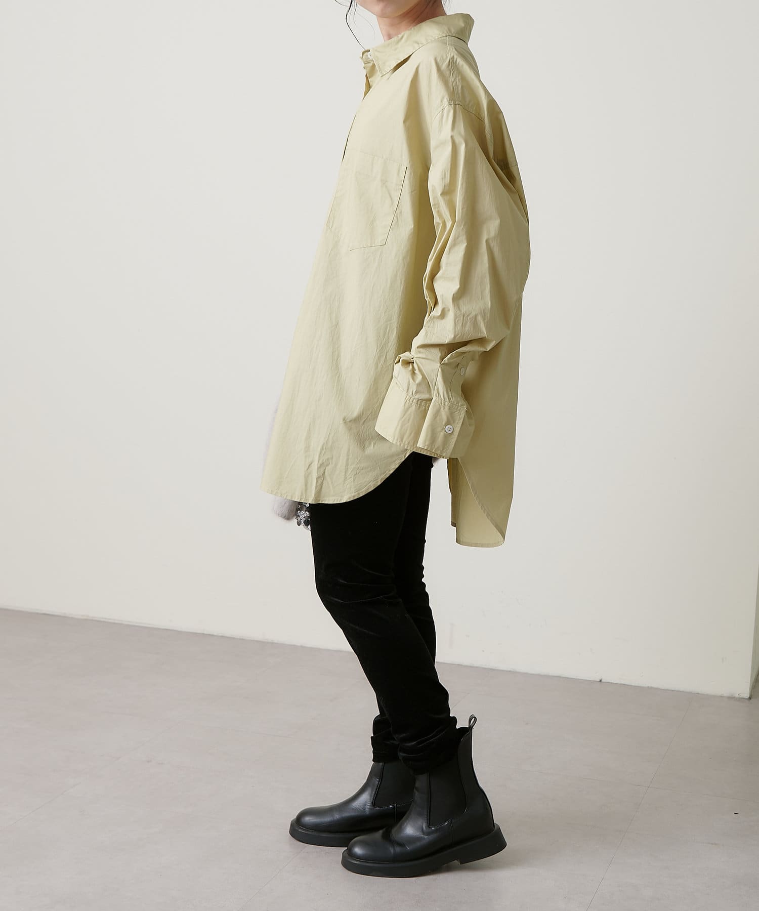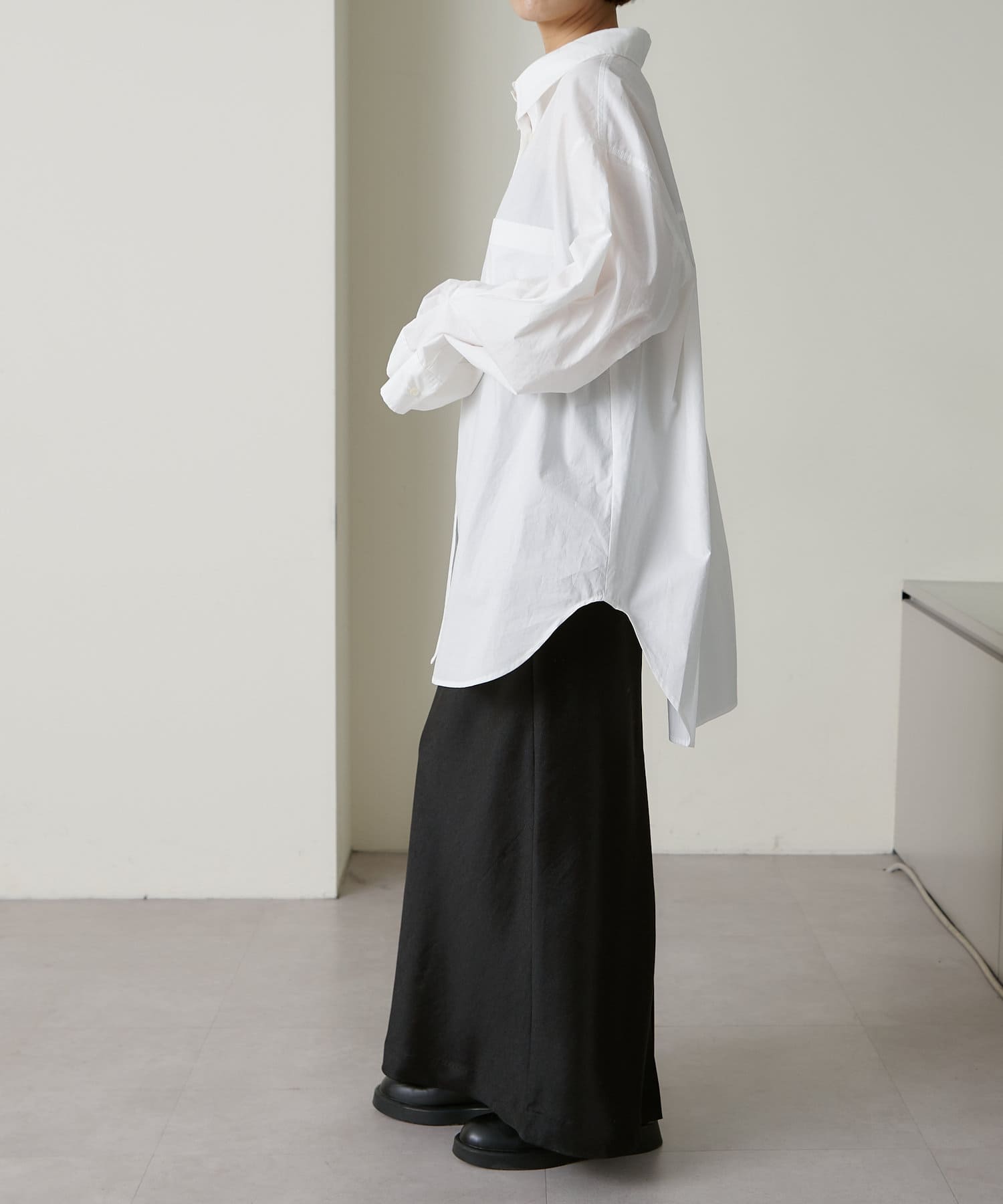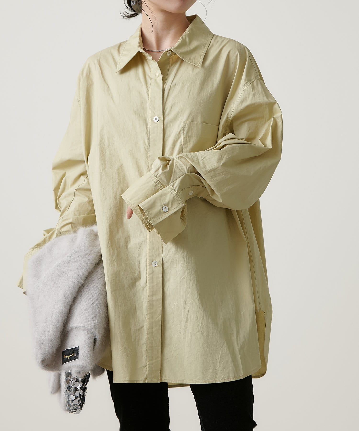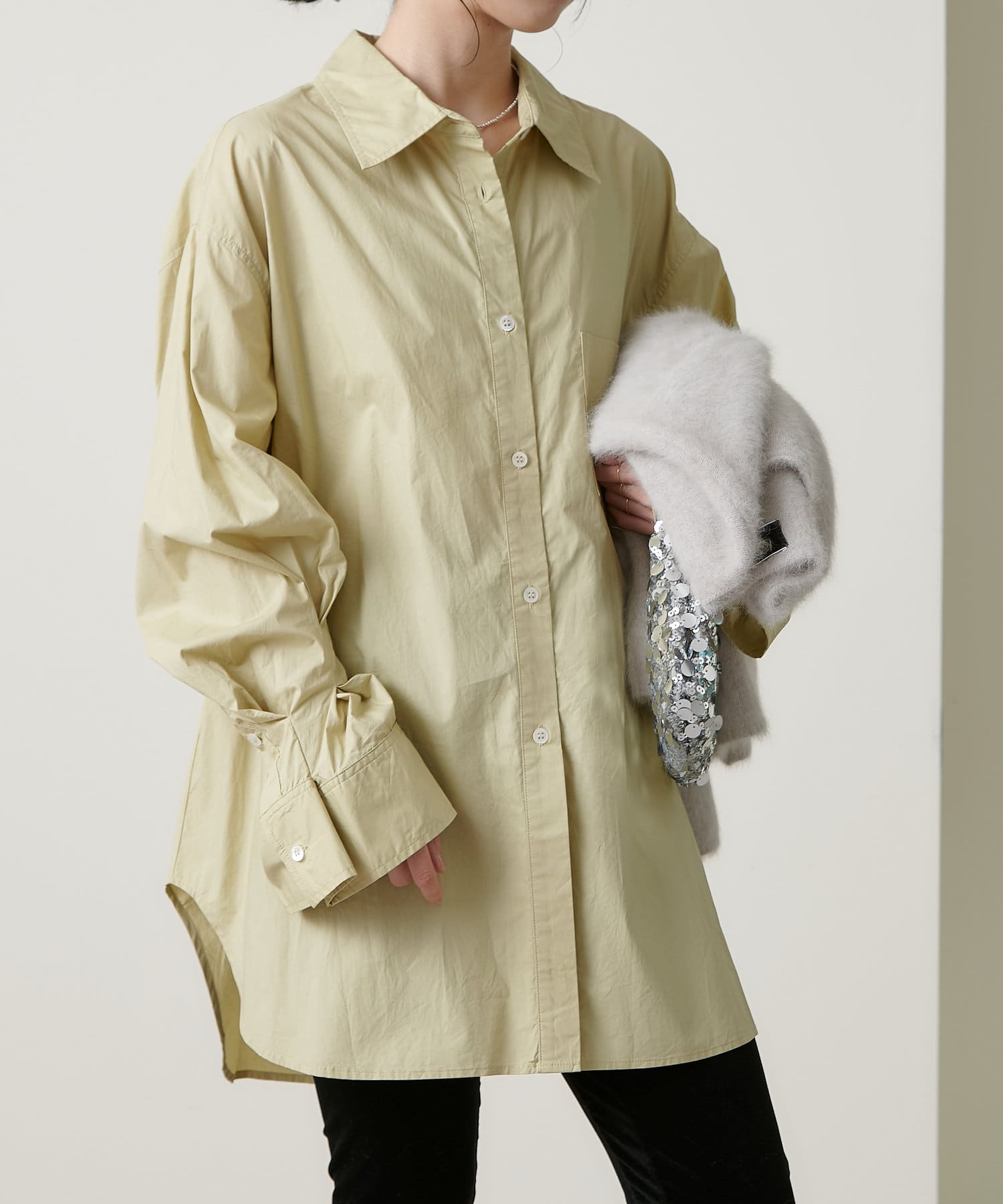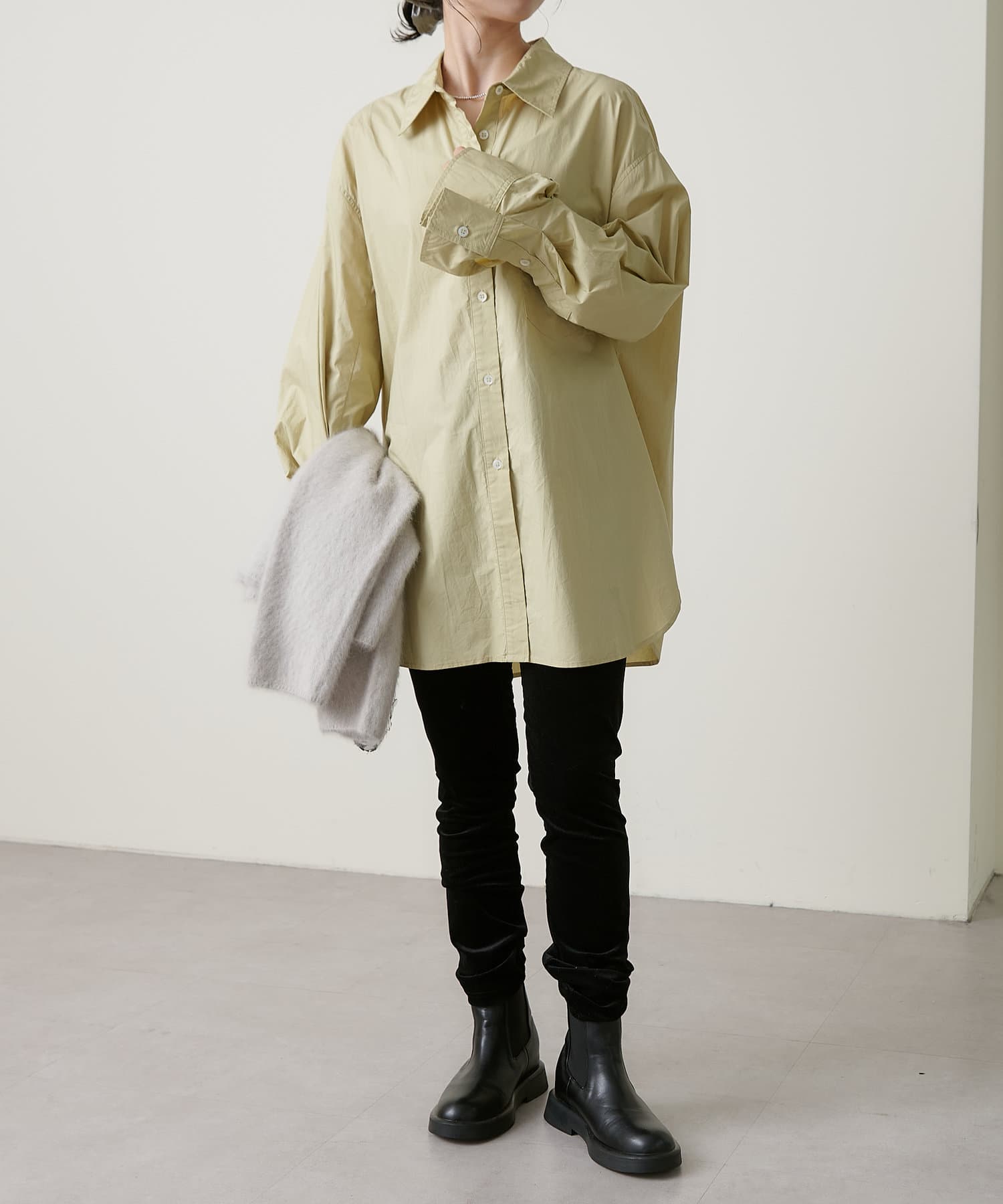 ・ゆったりめのシルエットにヒップが隠れる長めの着丈。