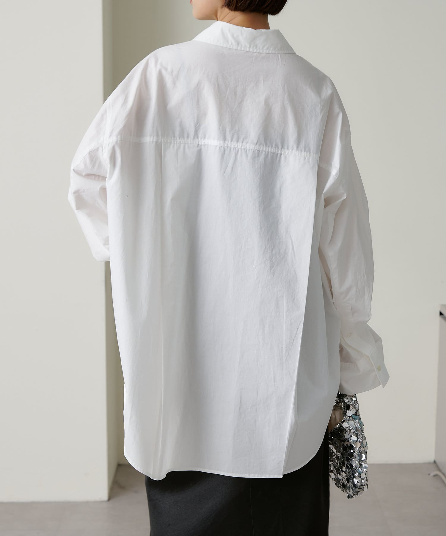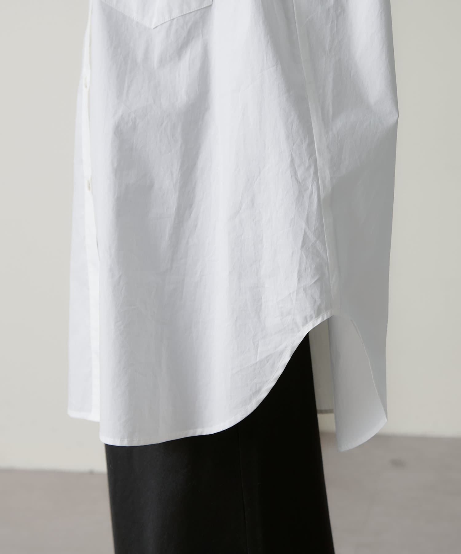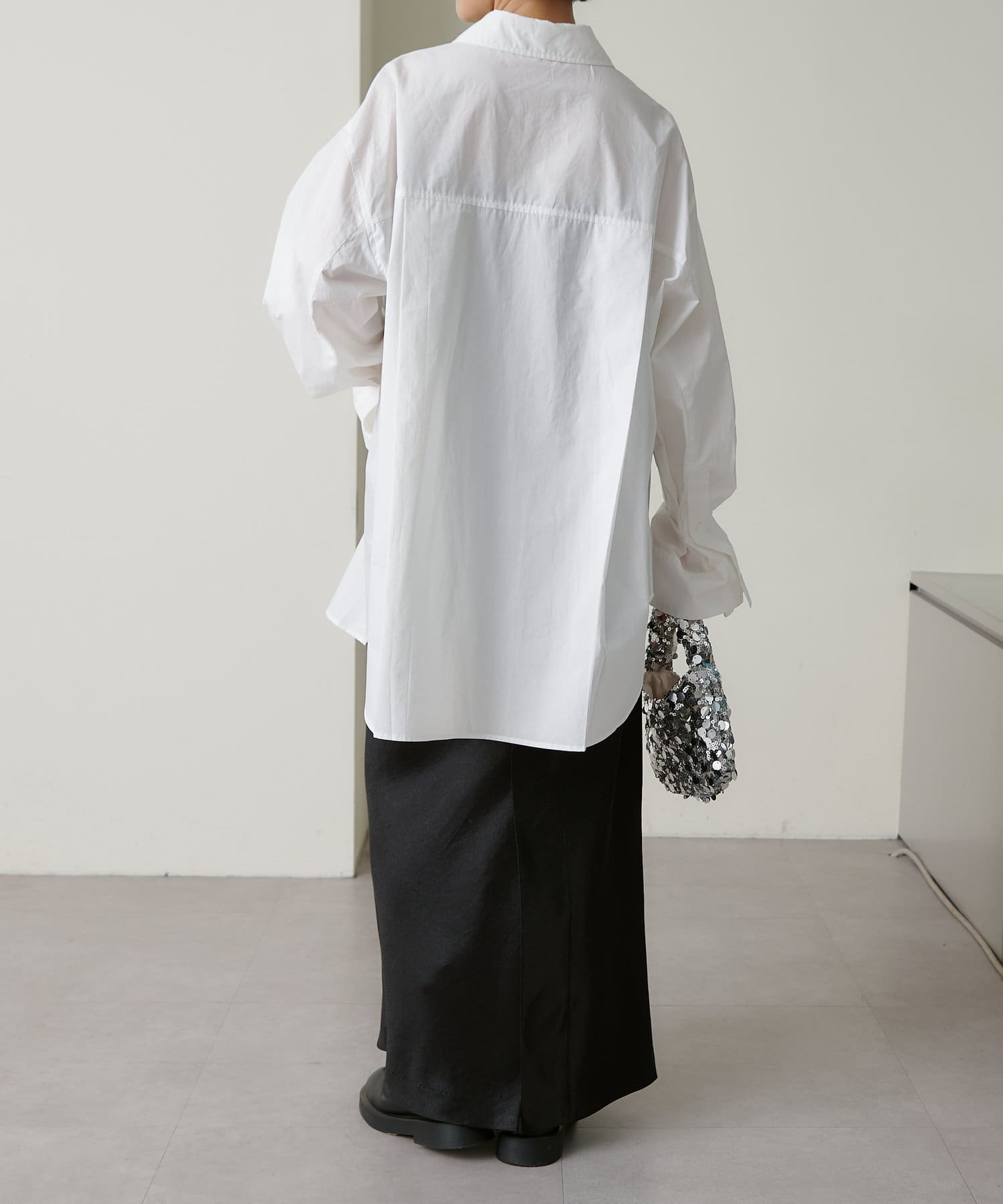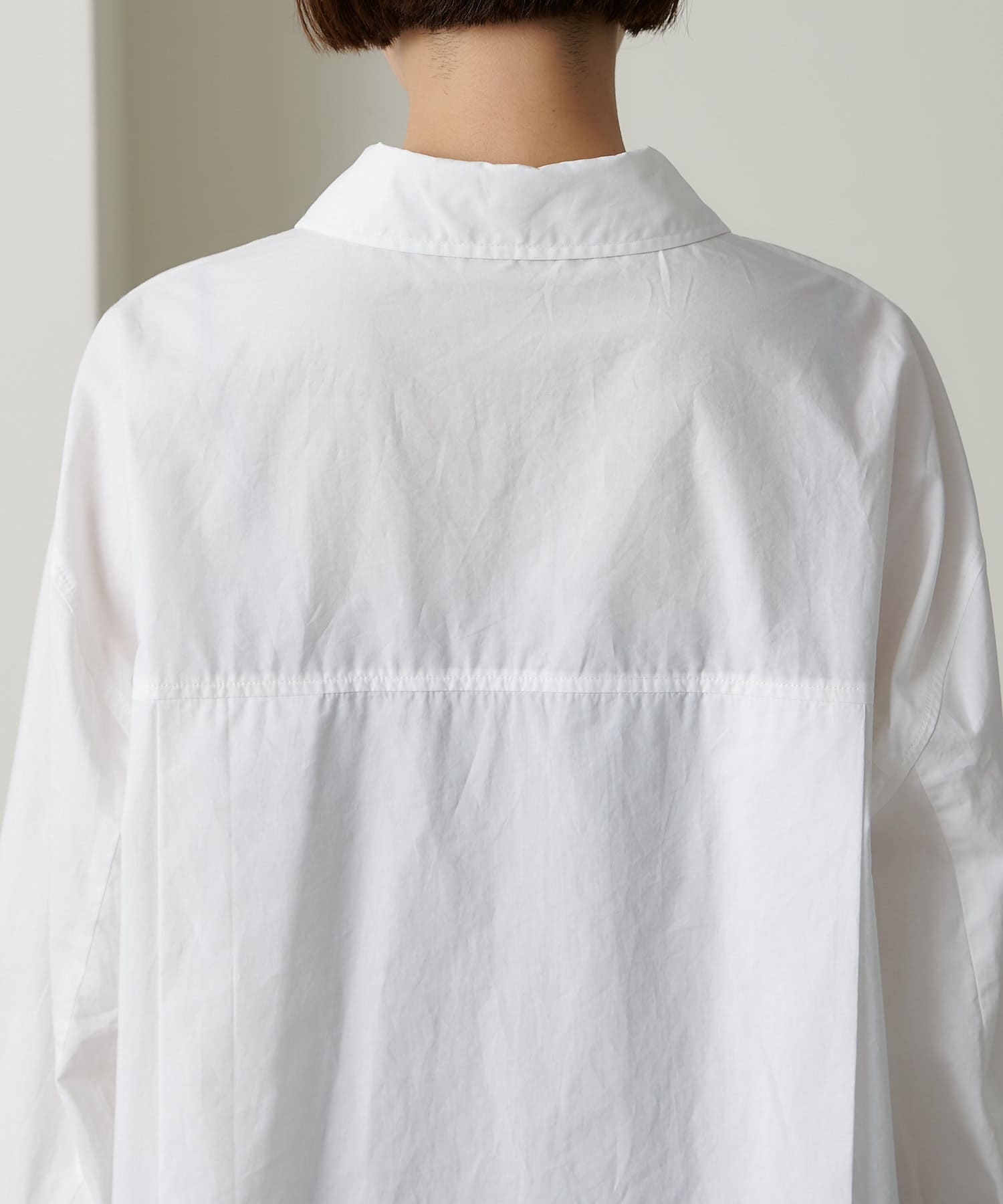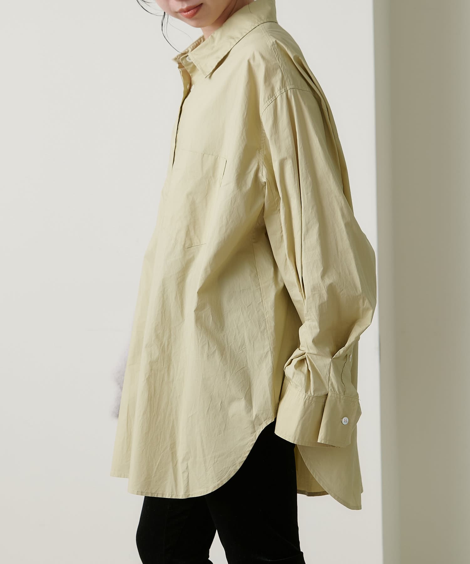 ・ゆったりめのシルエットにヒップが隠れる長めの着丈。