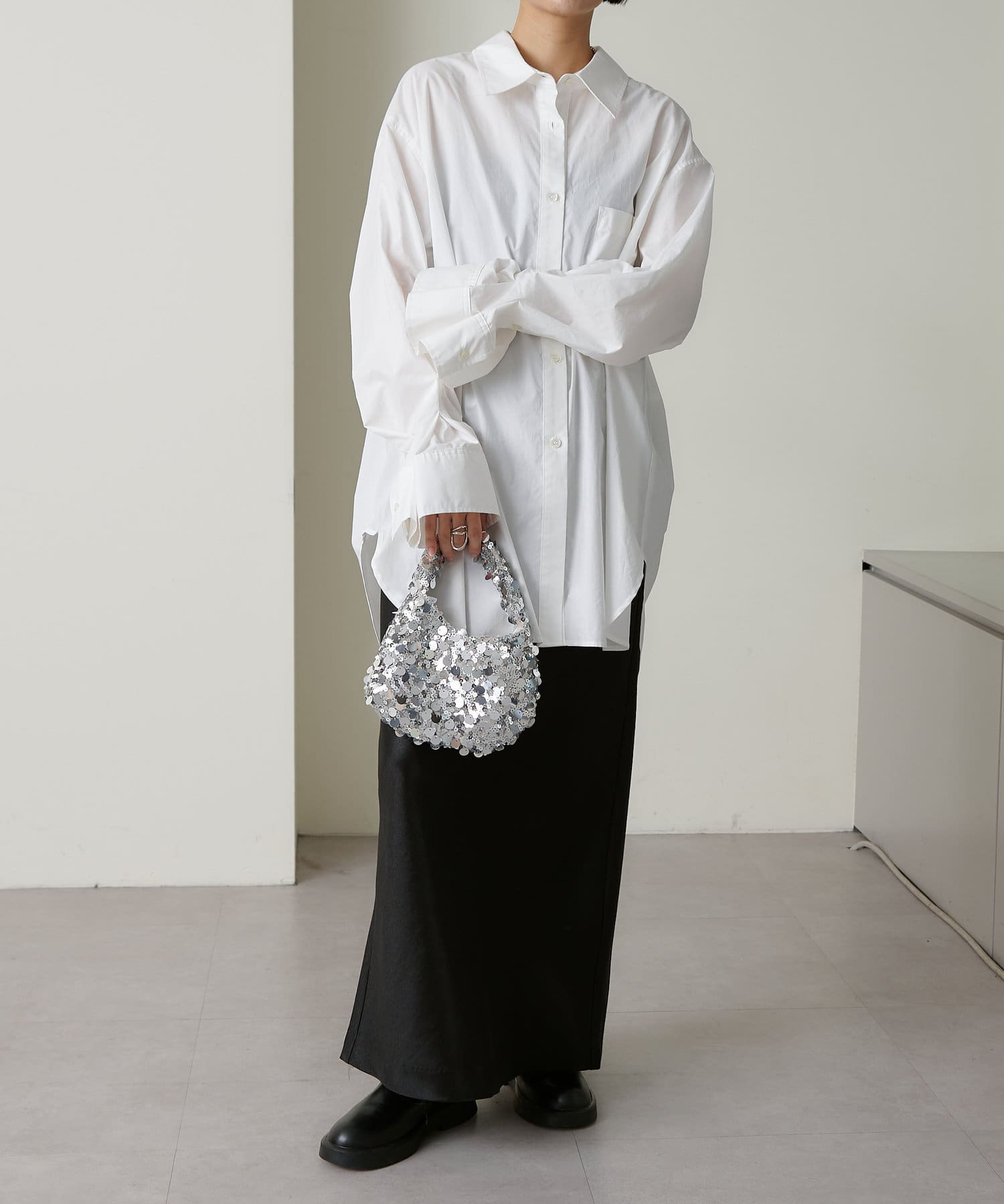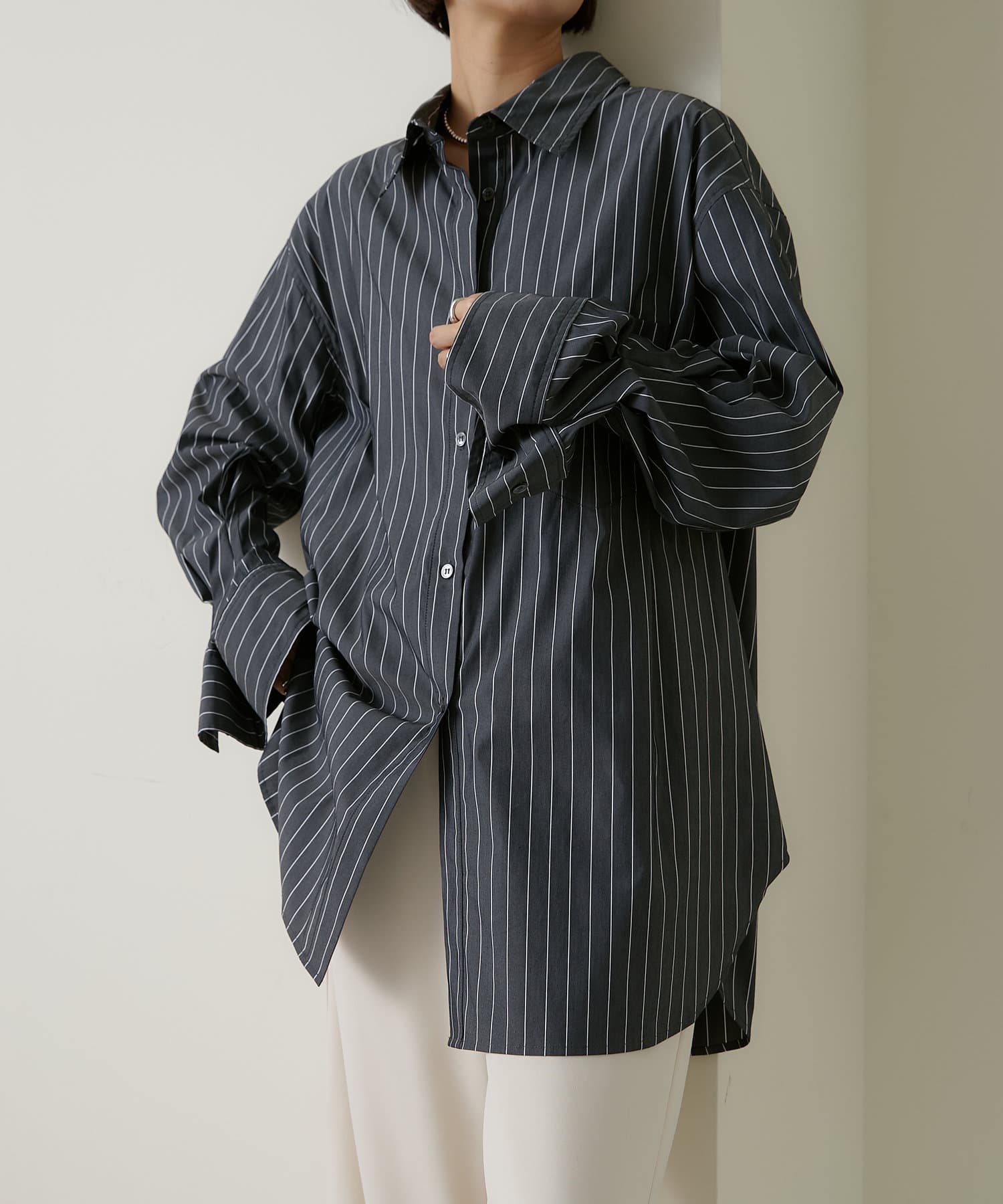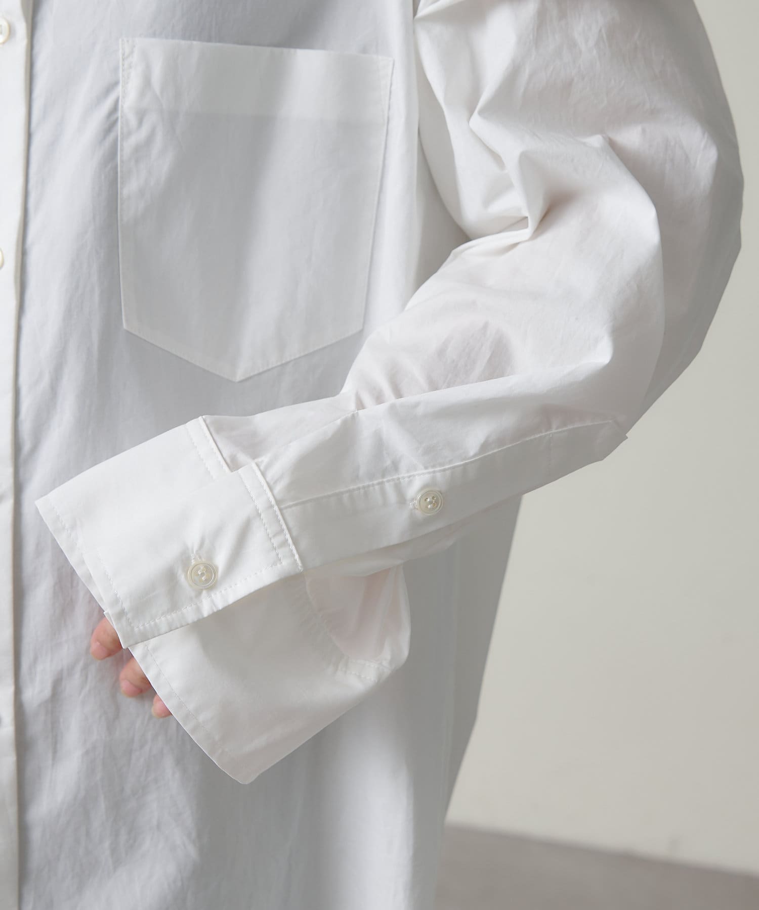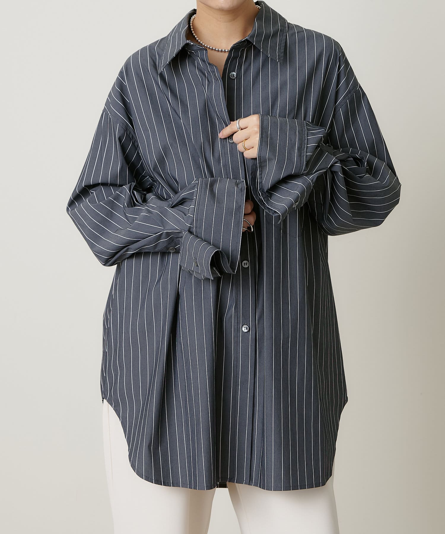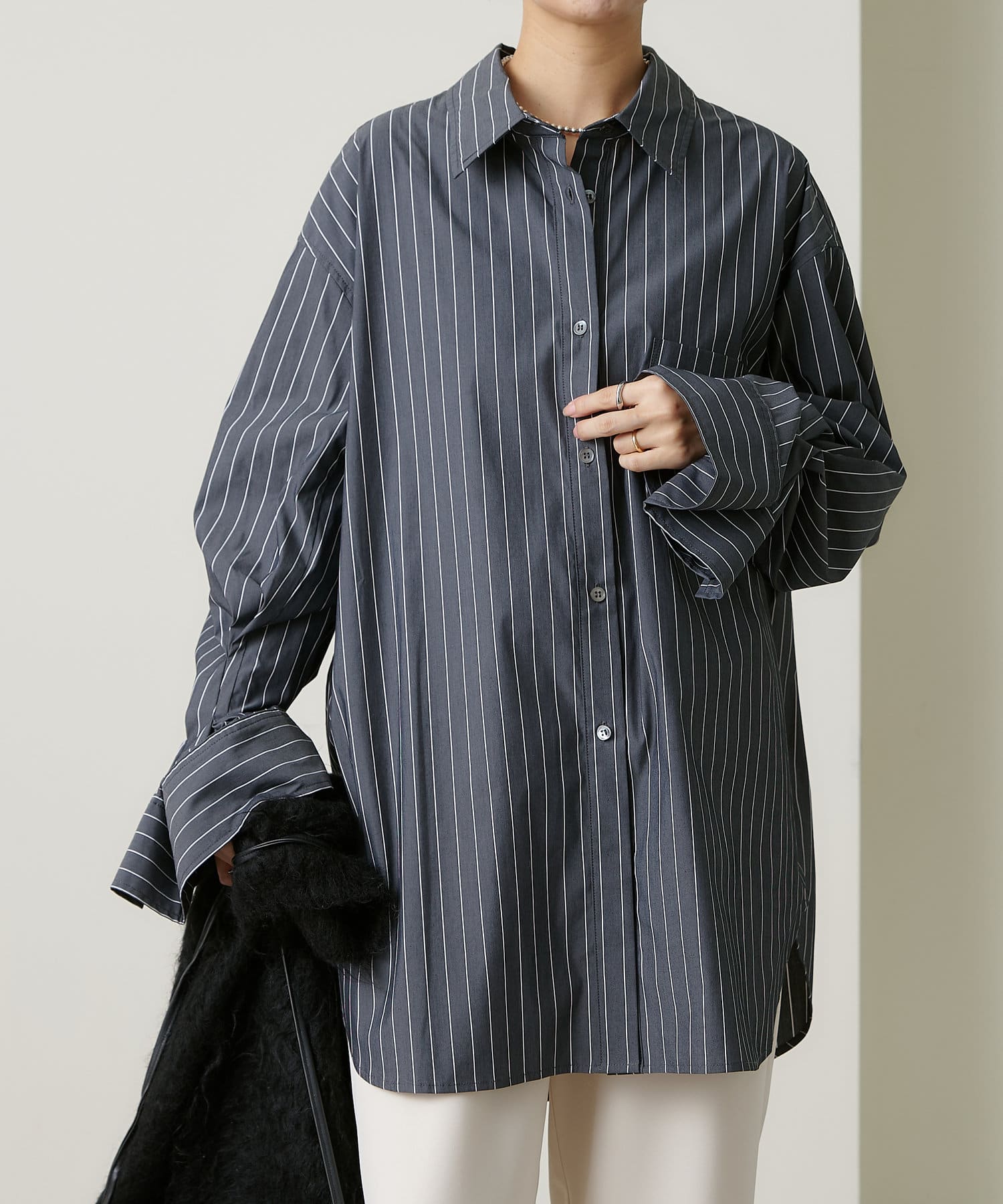 ・ゆったりめのシルエットにヒップが隠れる長めの着丈。