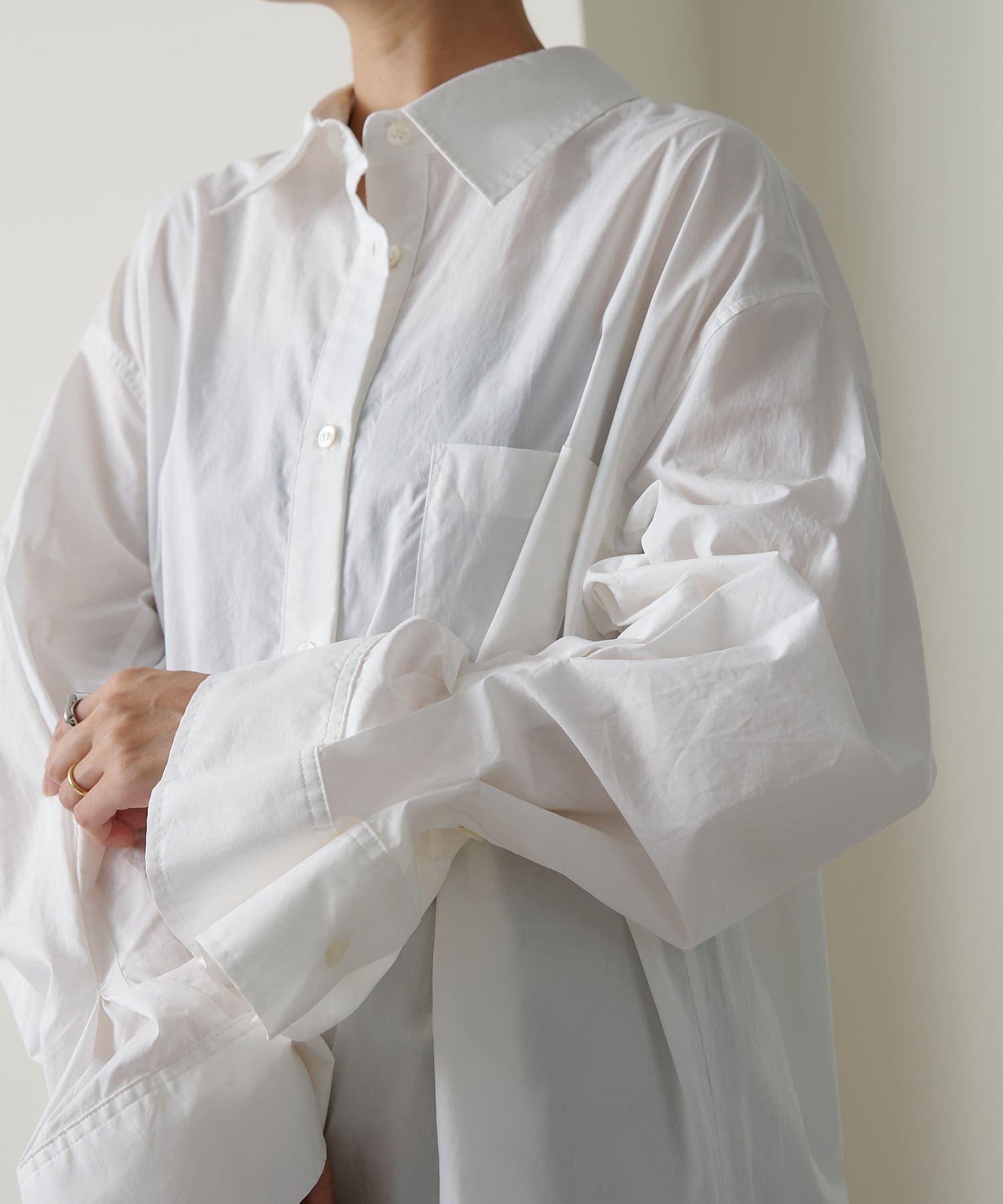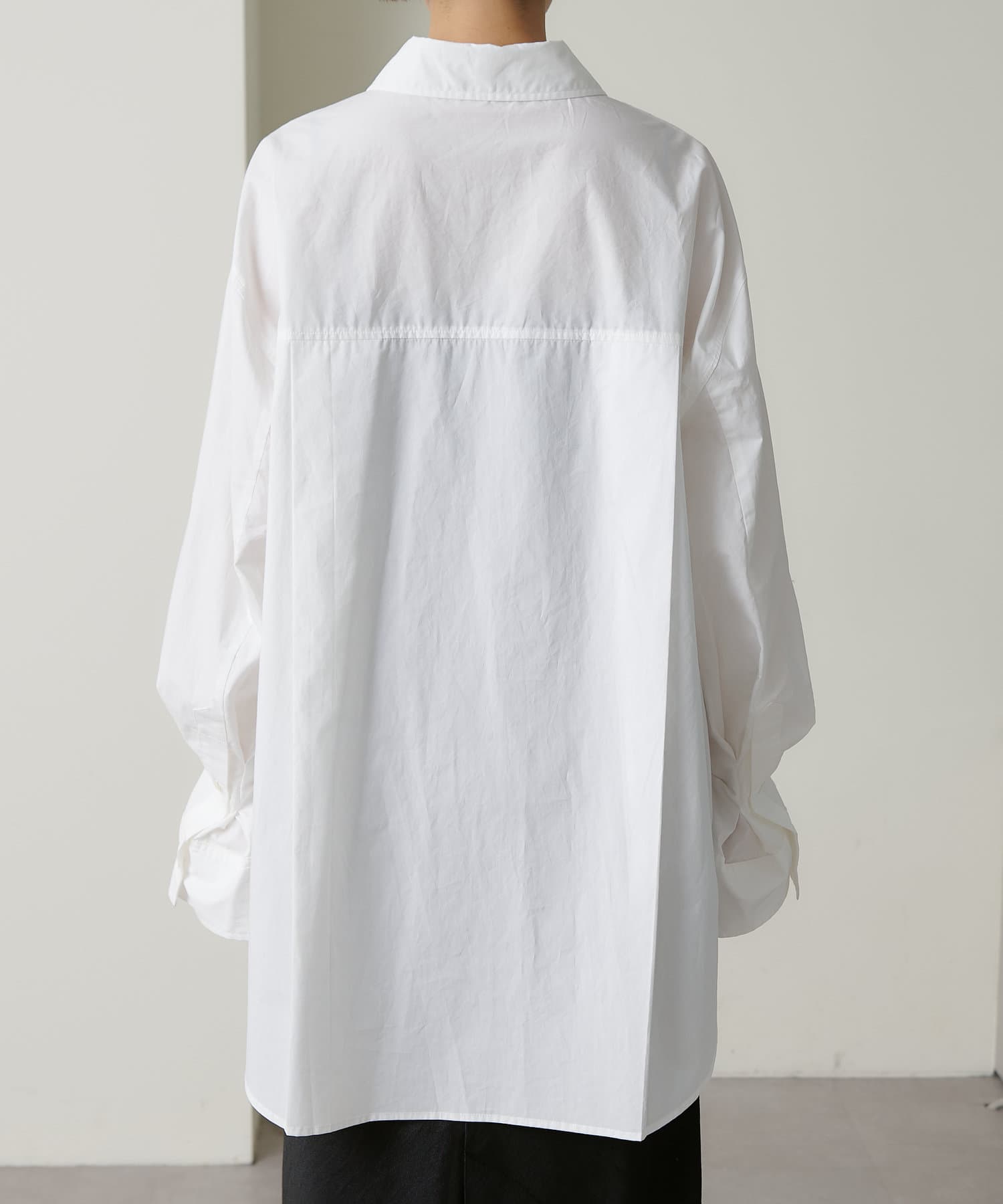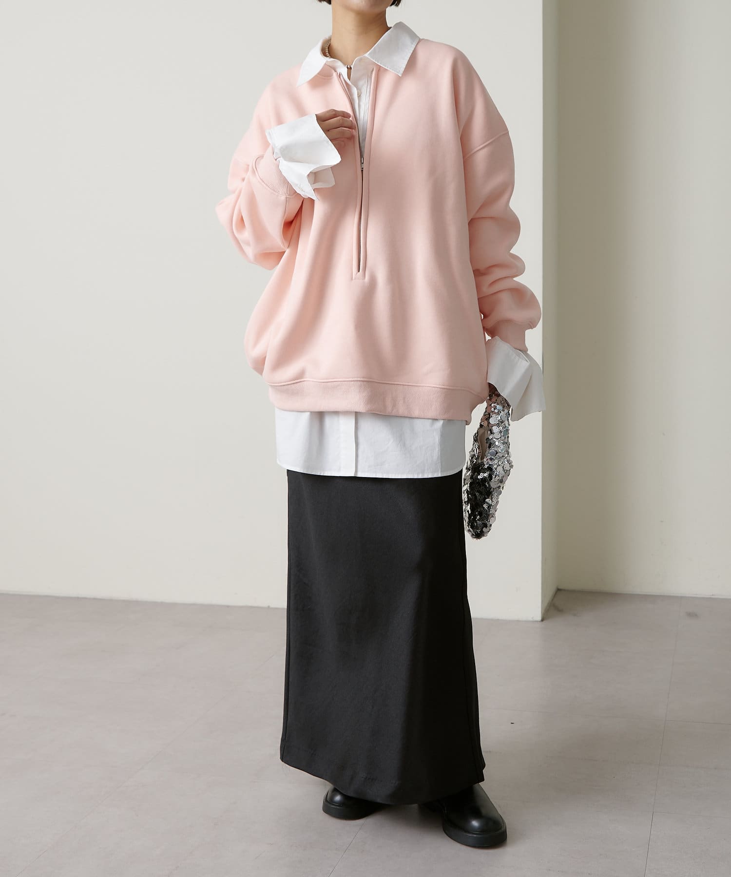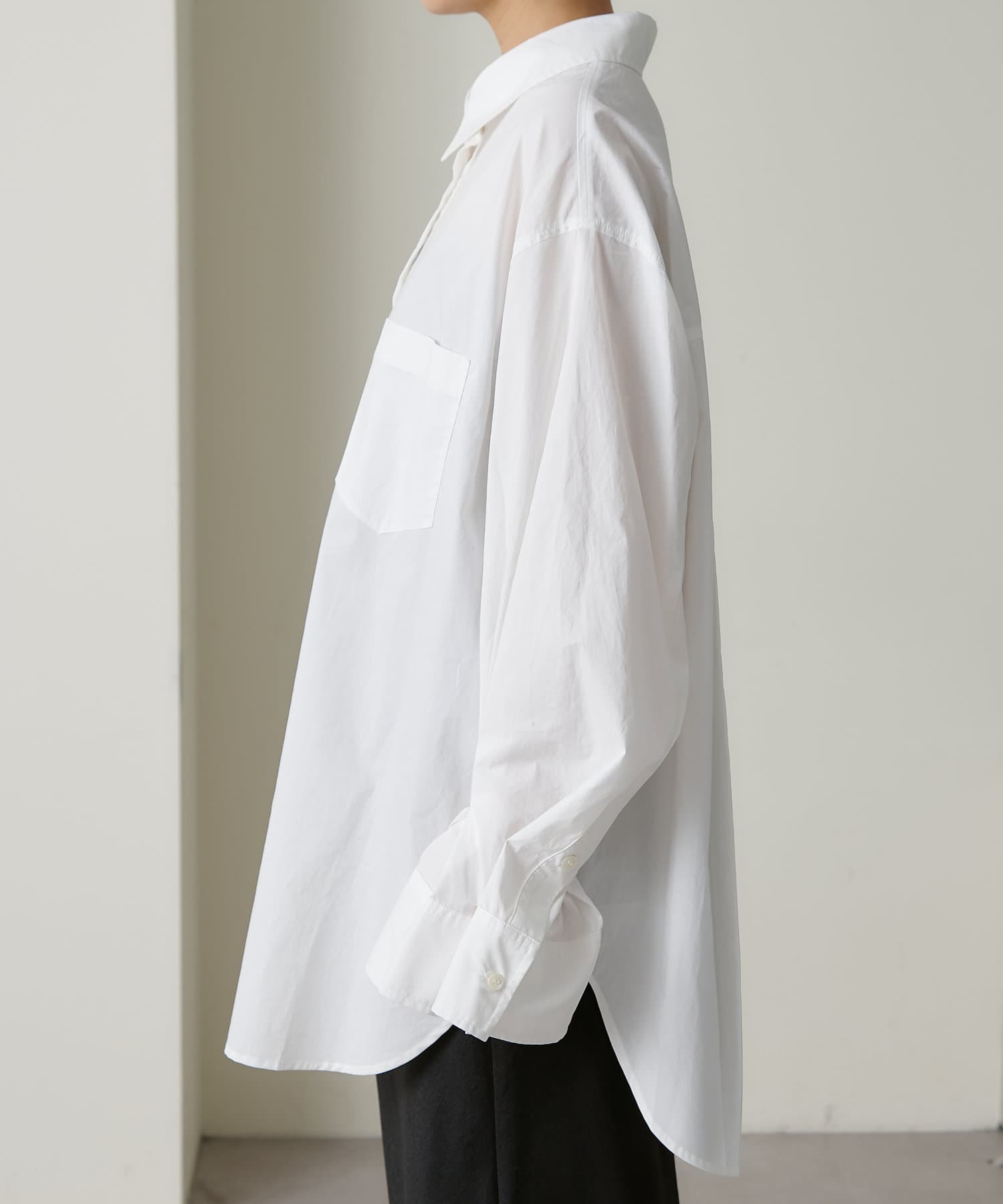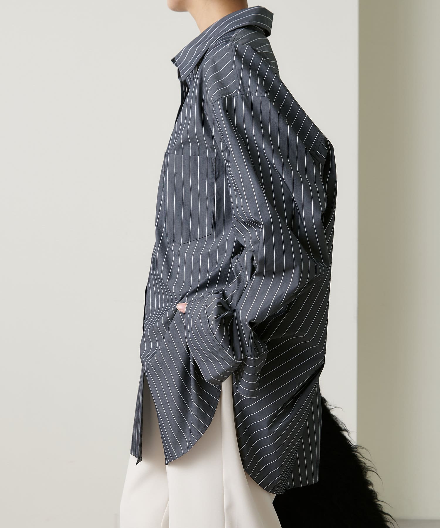 ・ゆったりめのシルエットにヒップが隠れる長めの着丈。