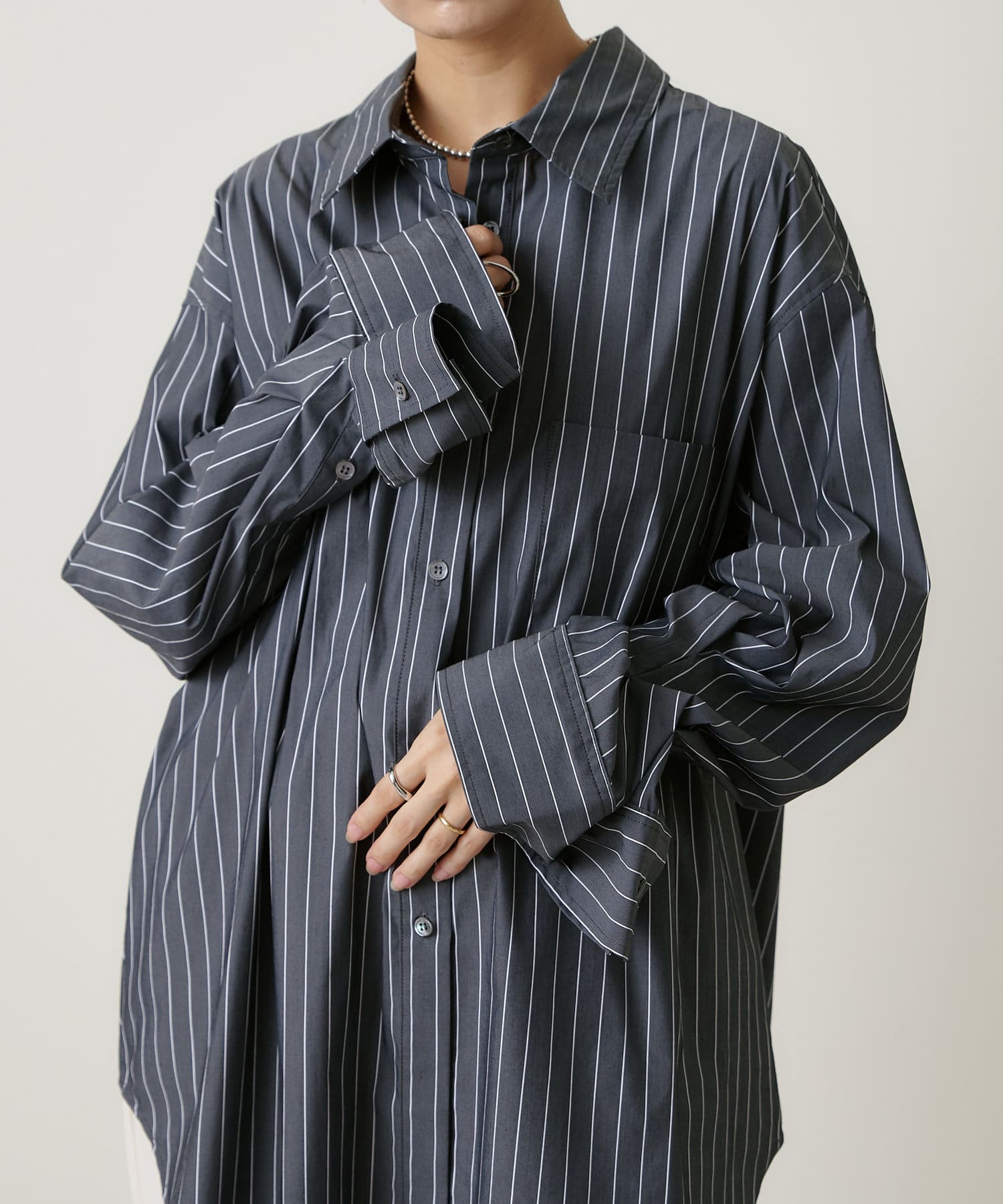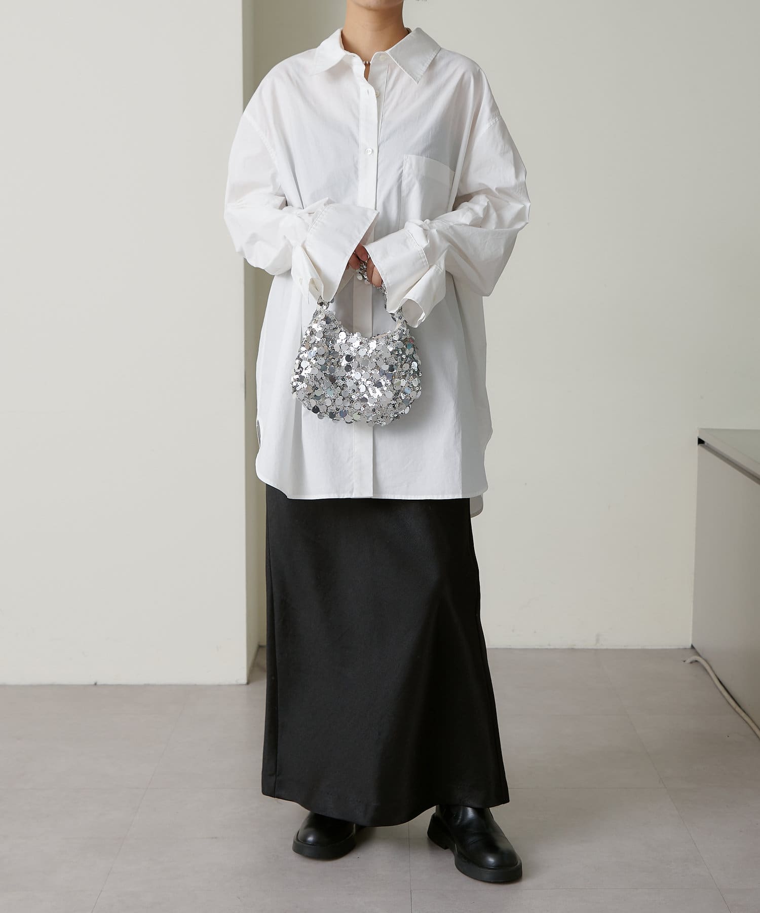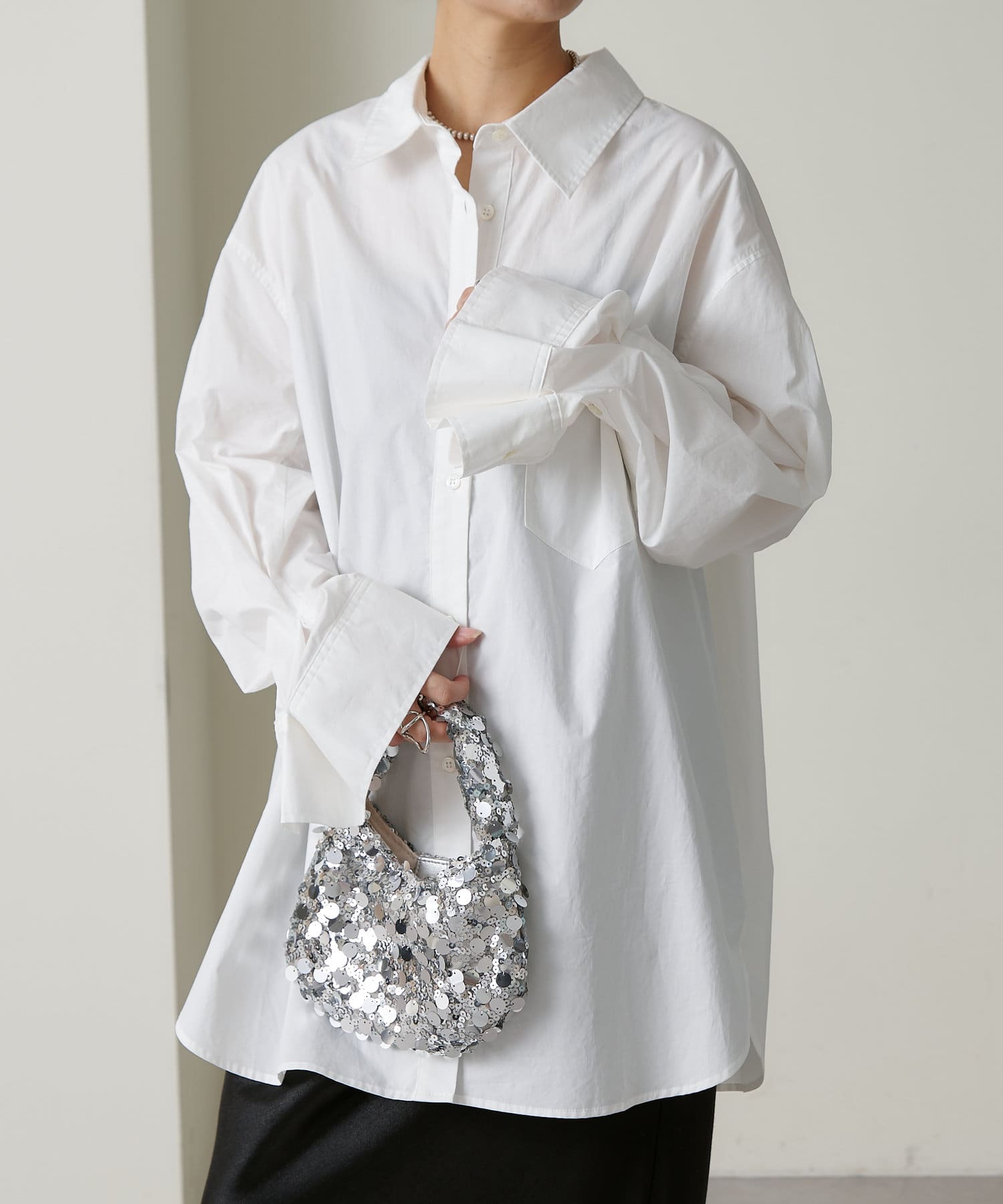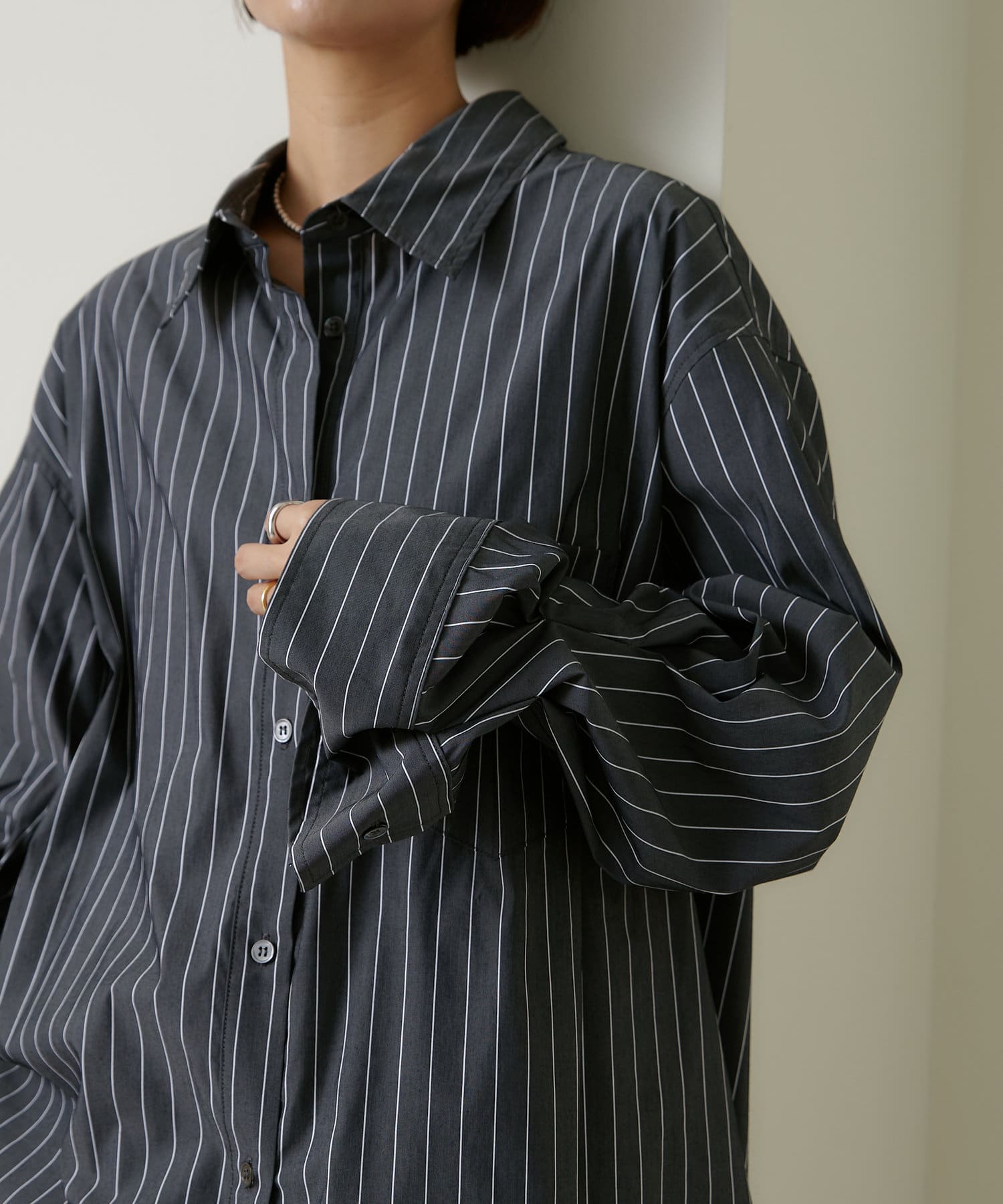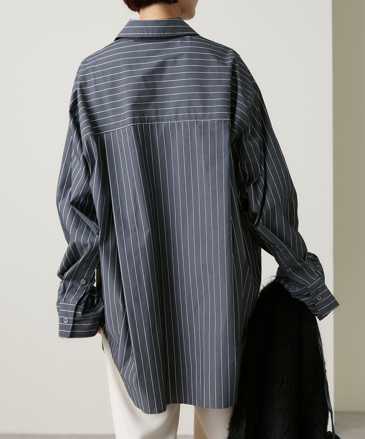・ゆったりめのシルエットにヒップが隠れる長めの着丈。