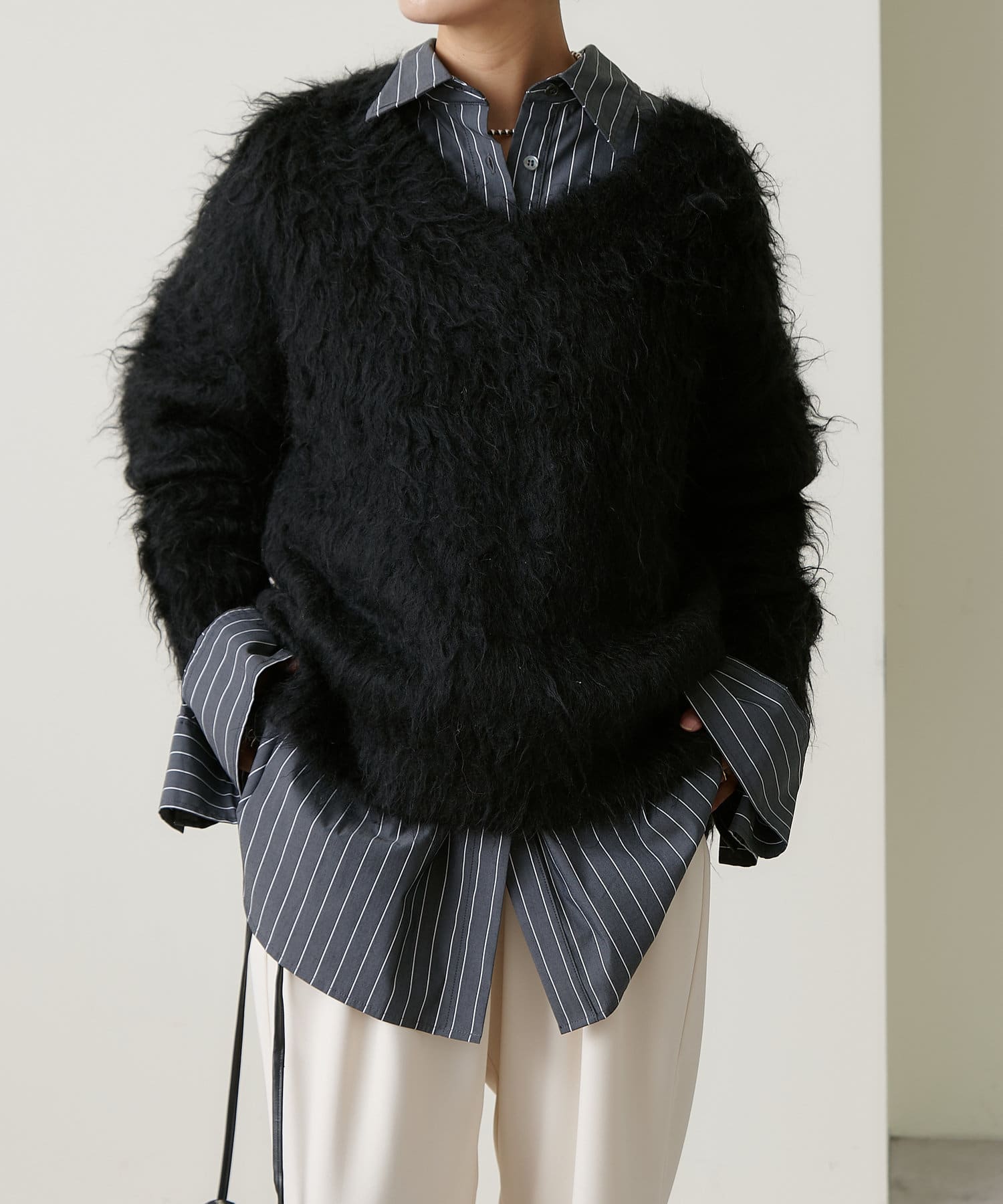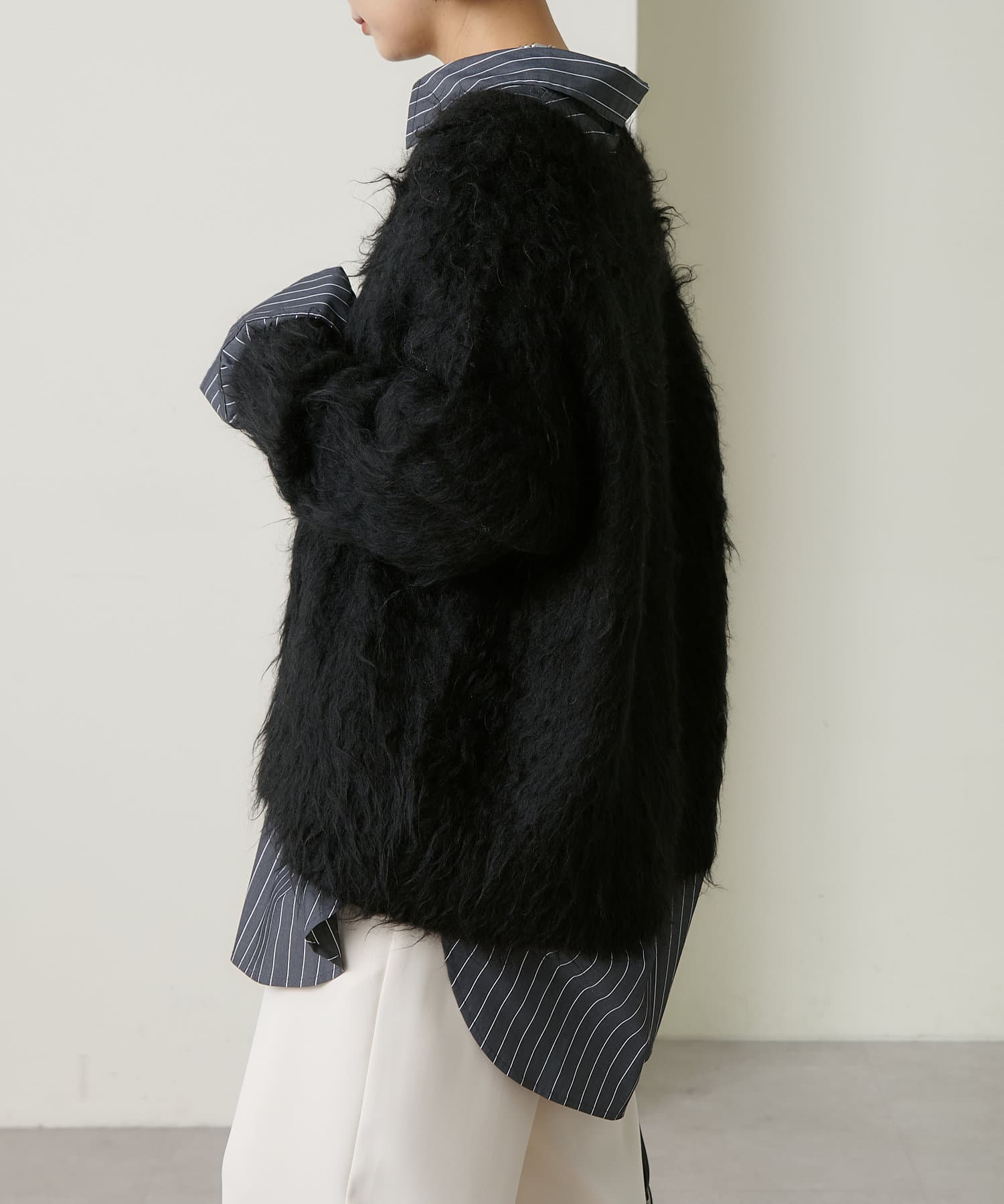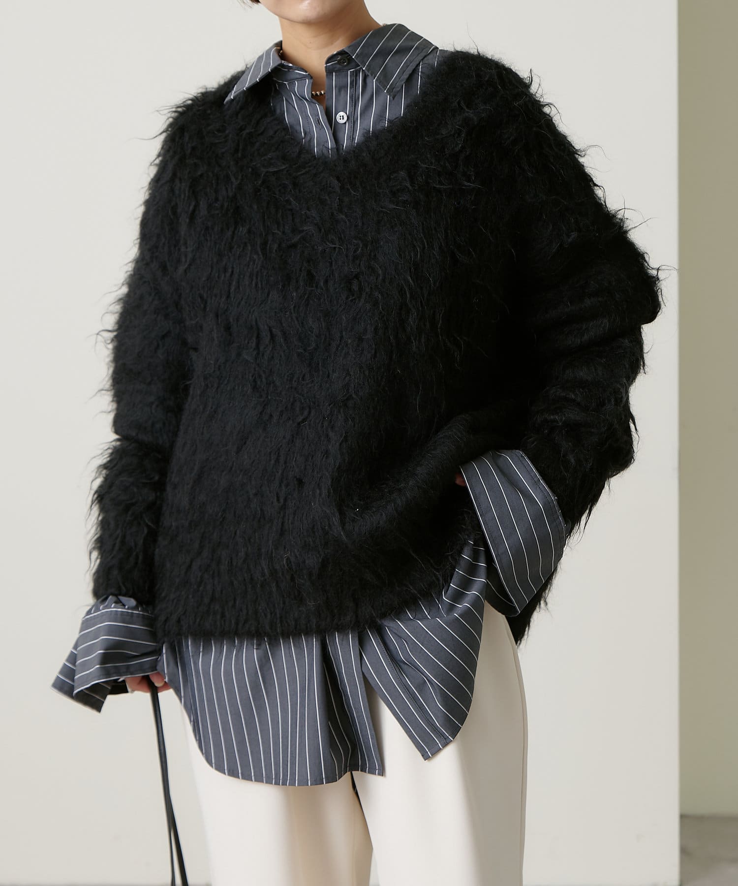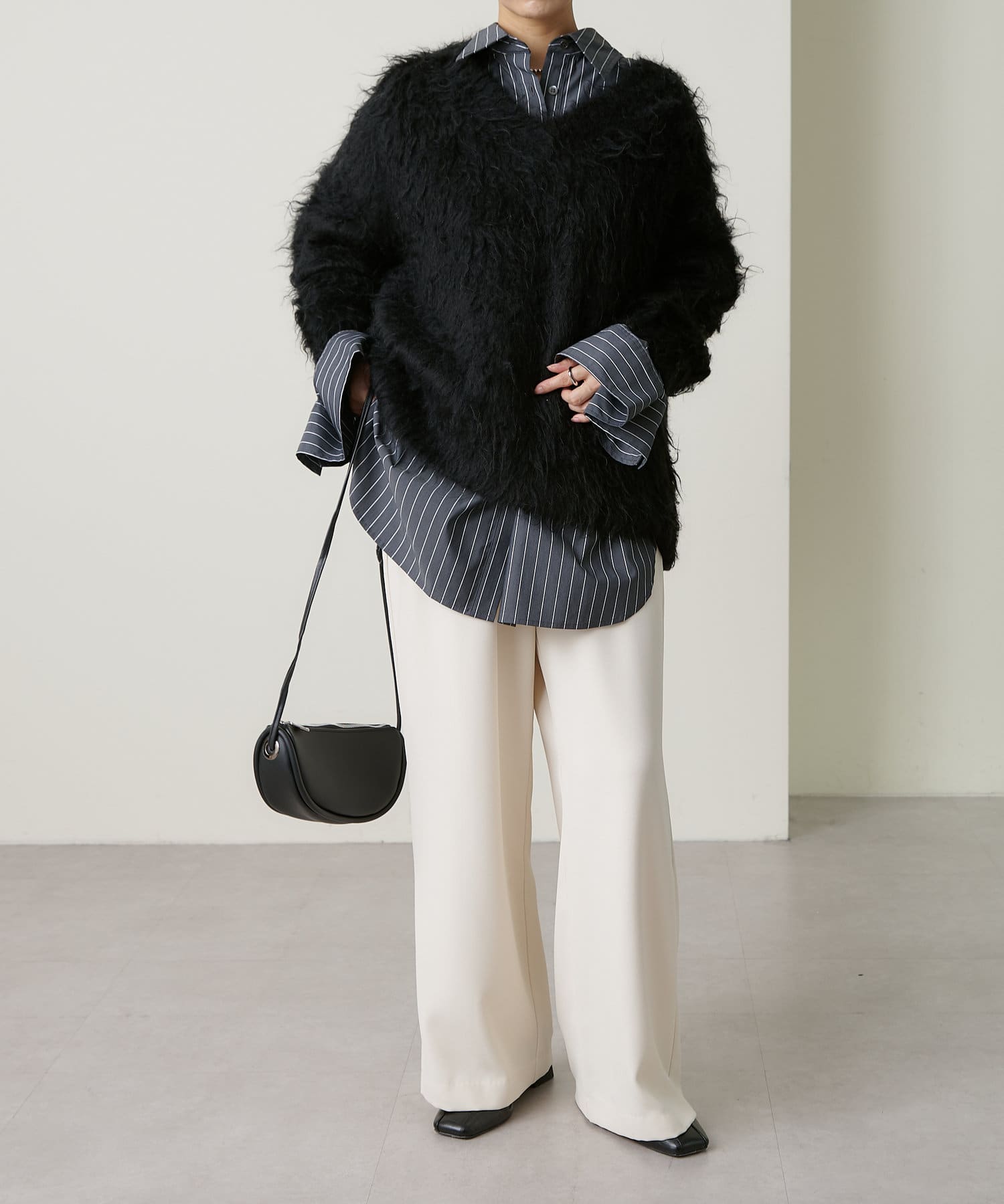 ・一枚でも存在感があり、ニットやスウェットとのレイヤードスタイルにも活躍。