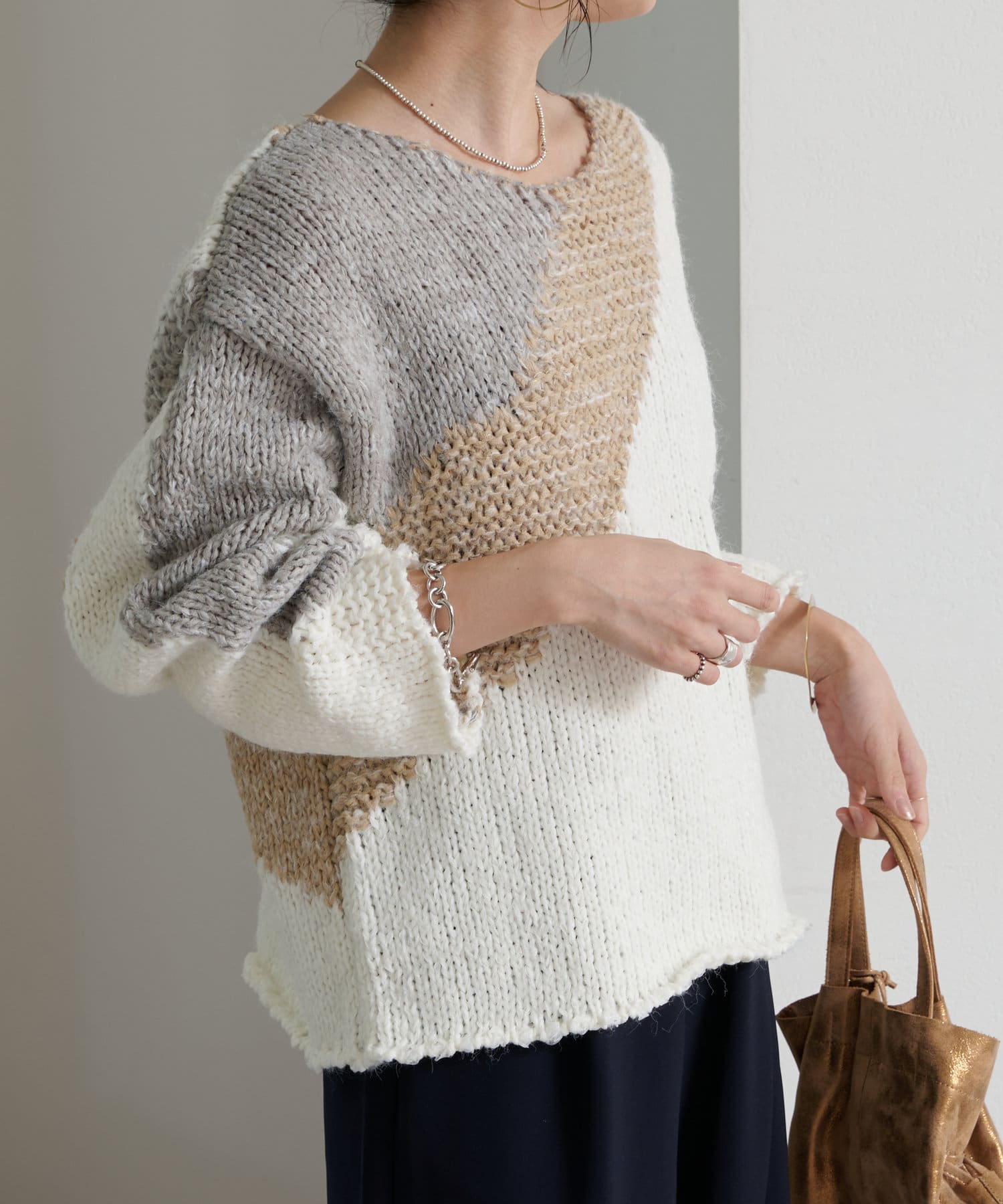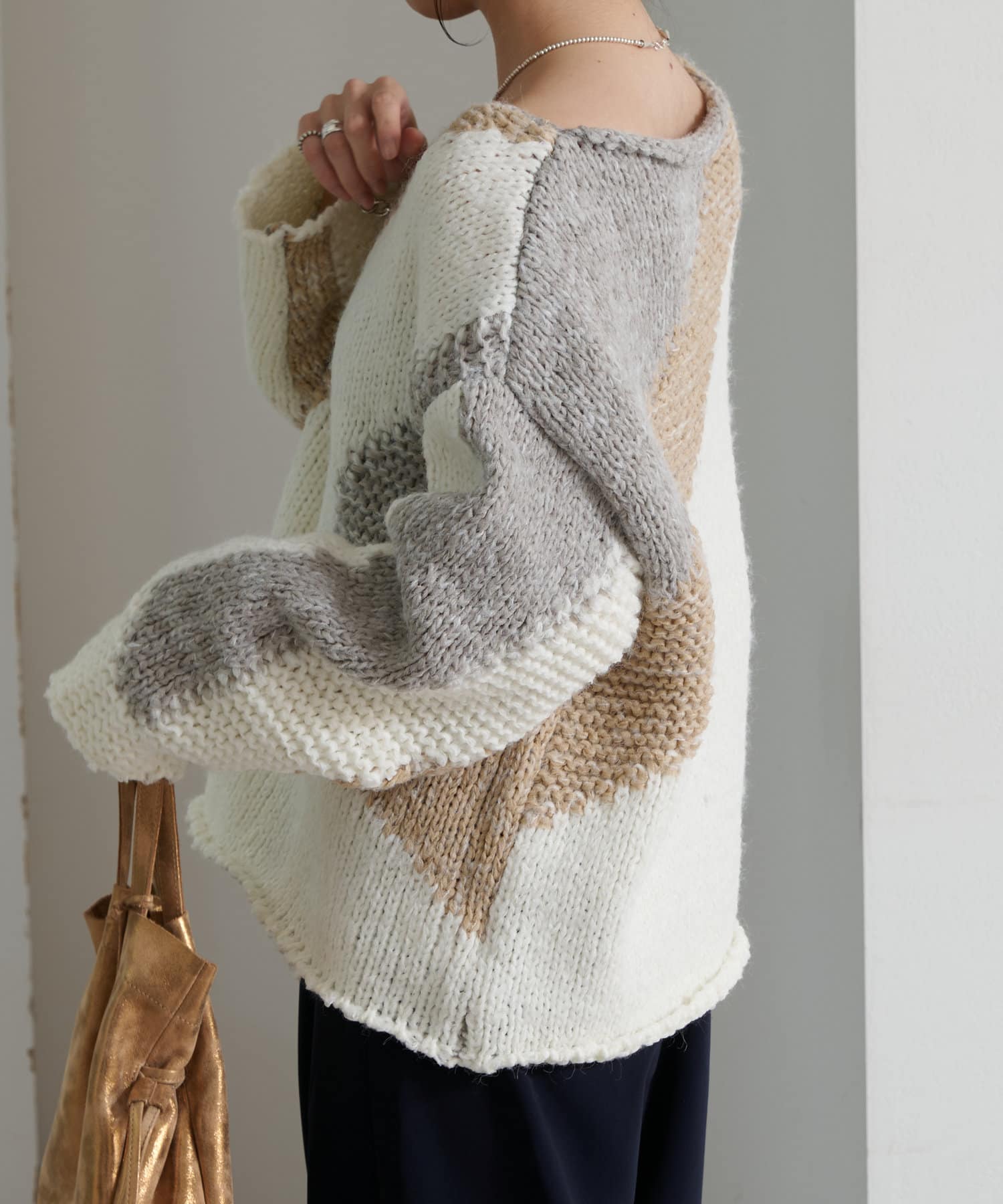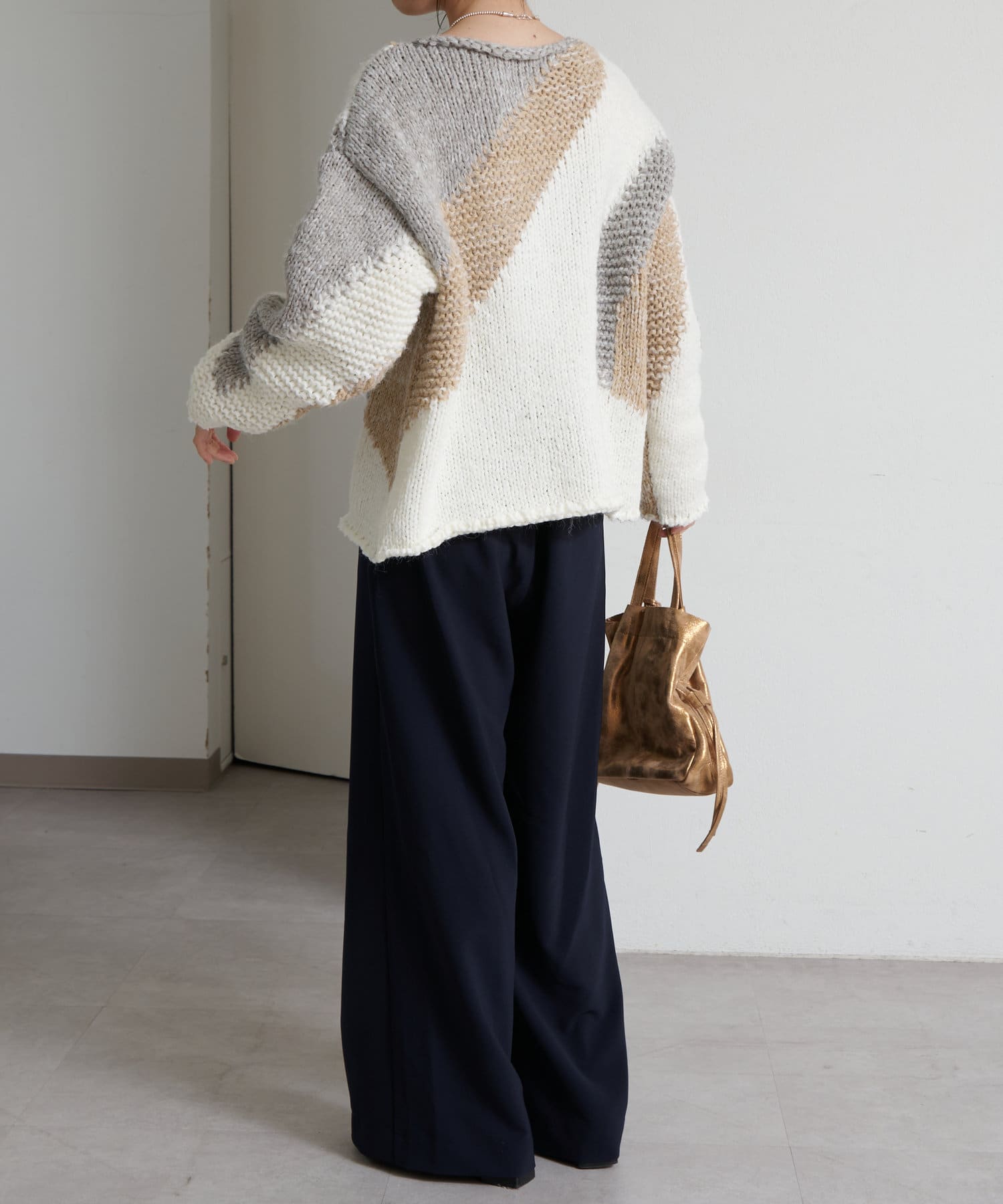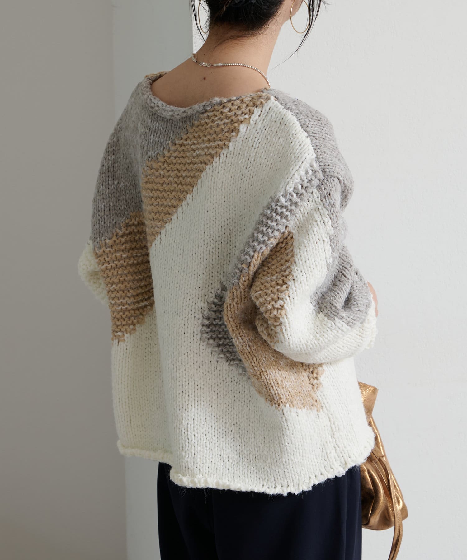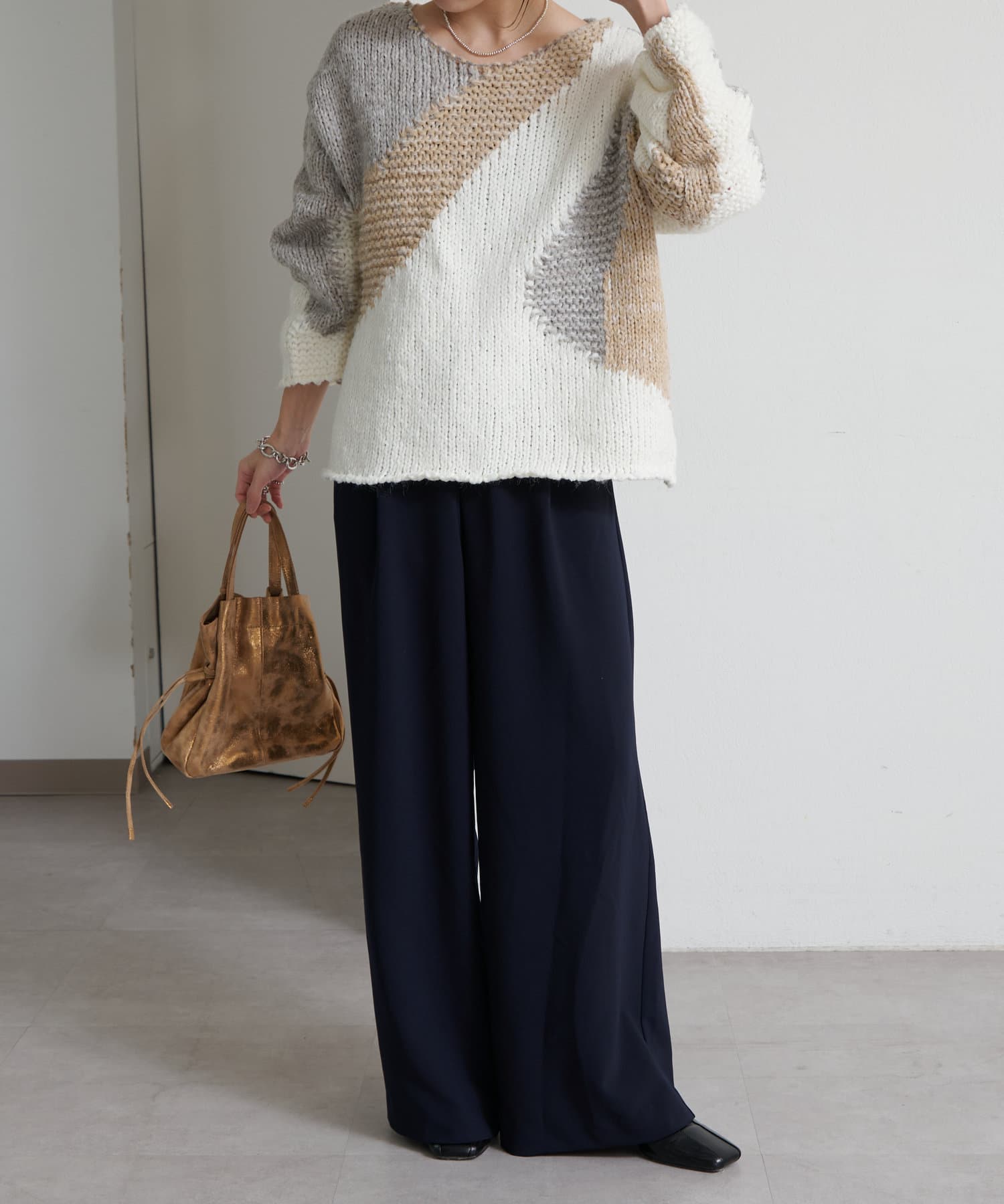 大人カジュアルなアクセントを加える柄編みワイドニット