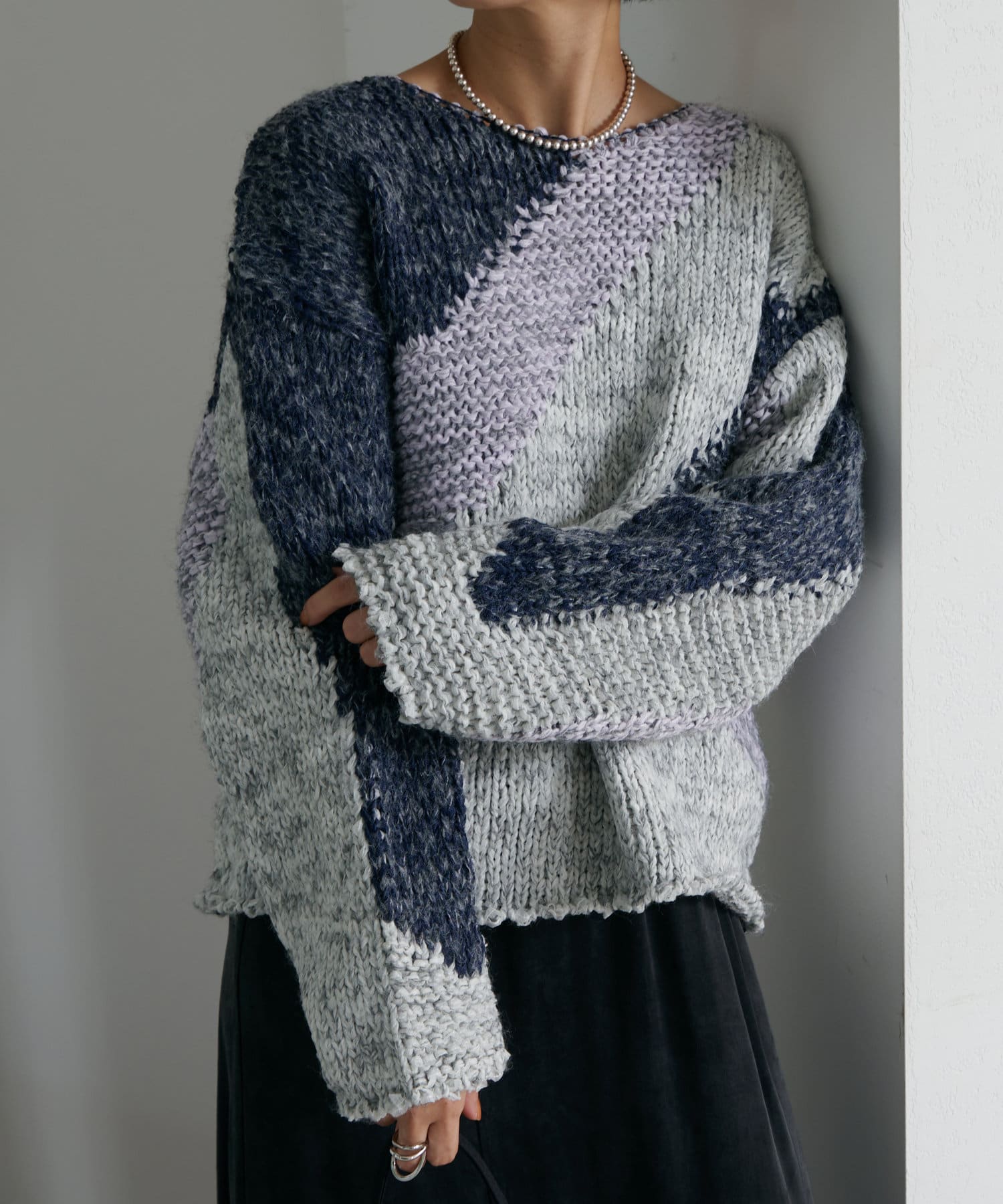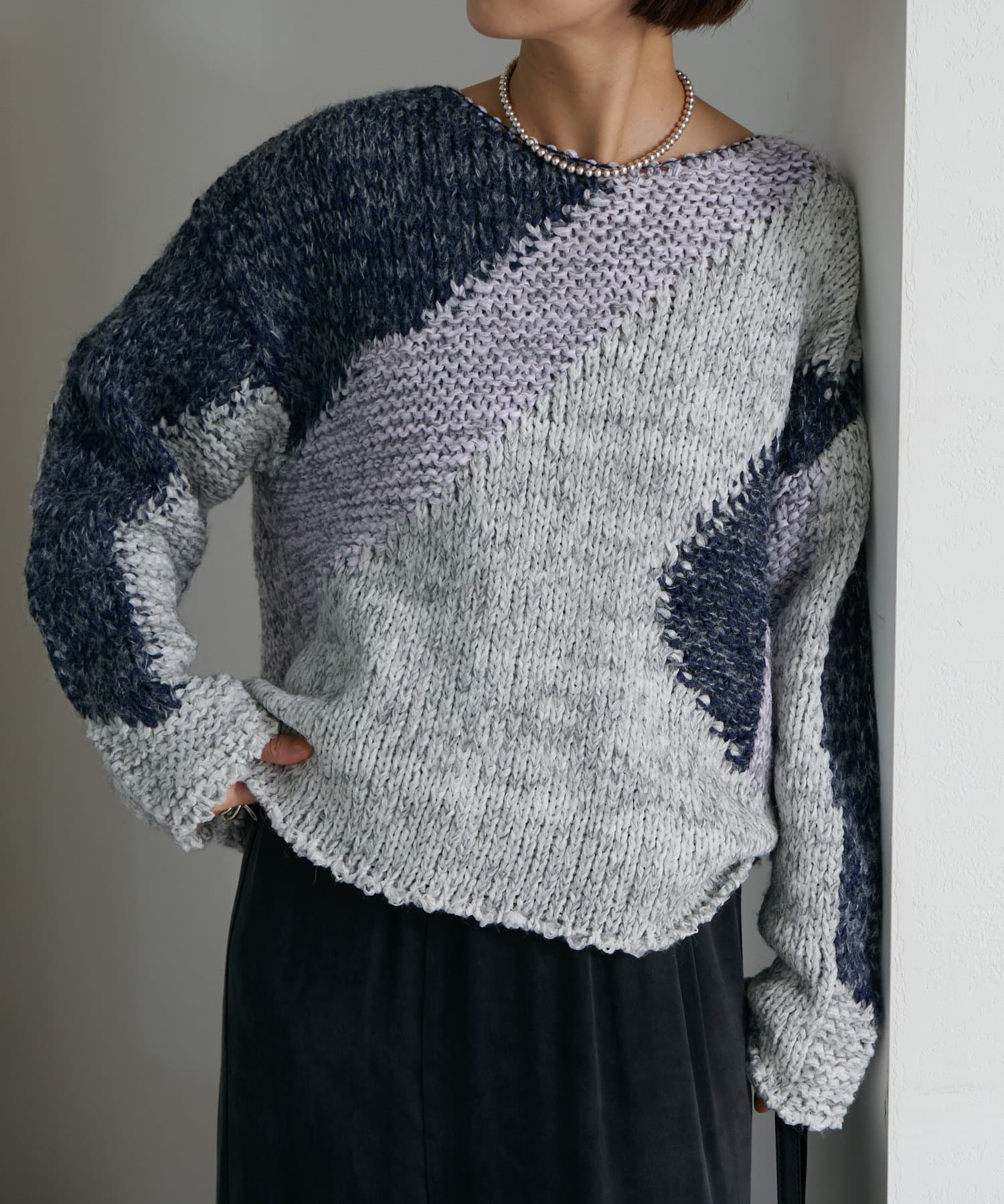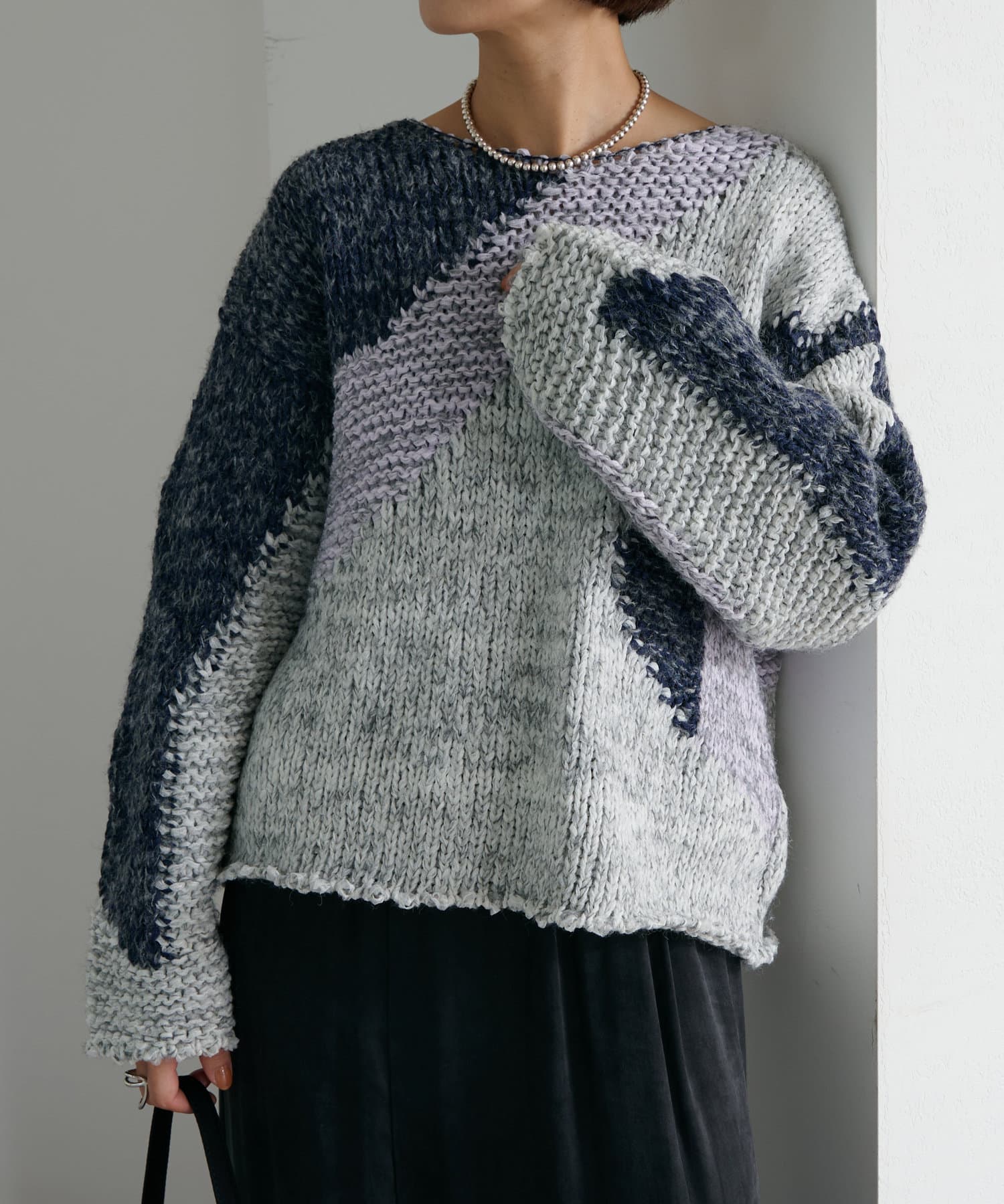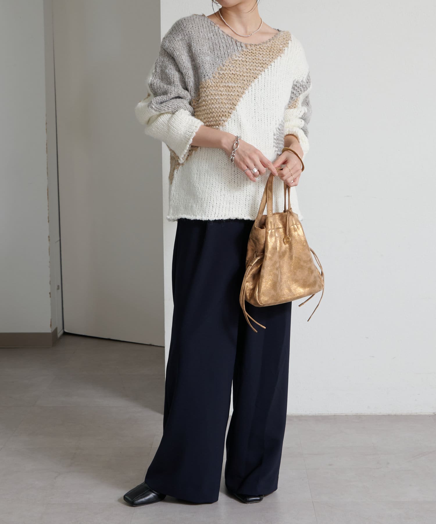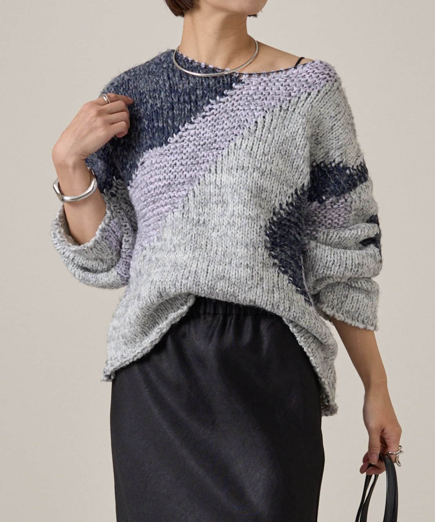 大人カジュアルなアクセントを加える柄編みワイドニット