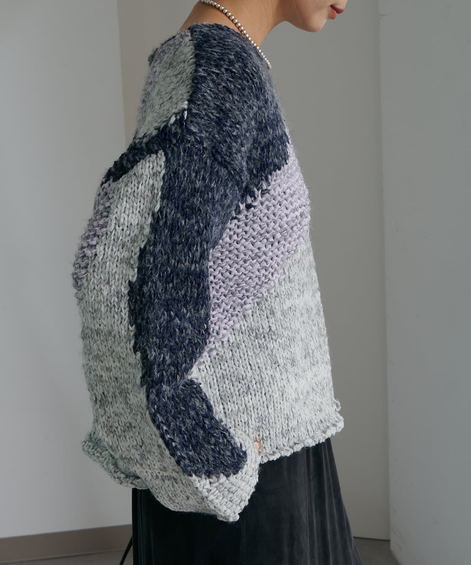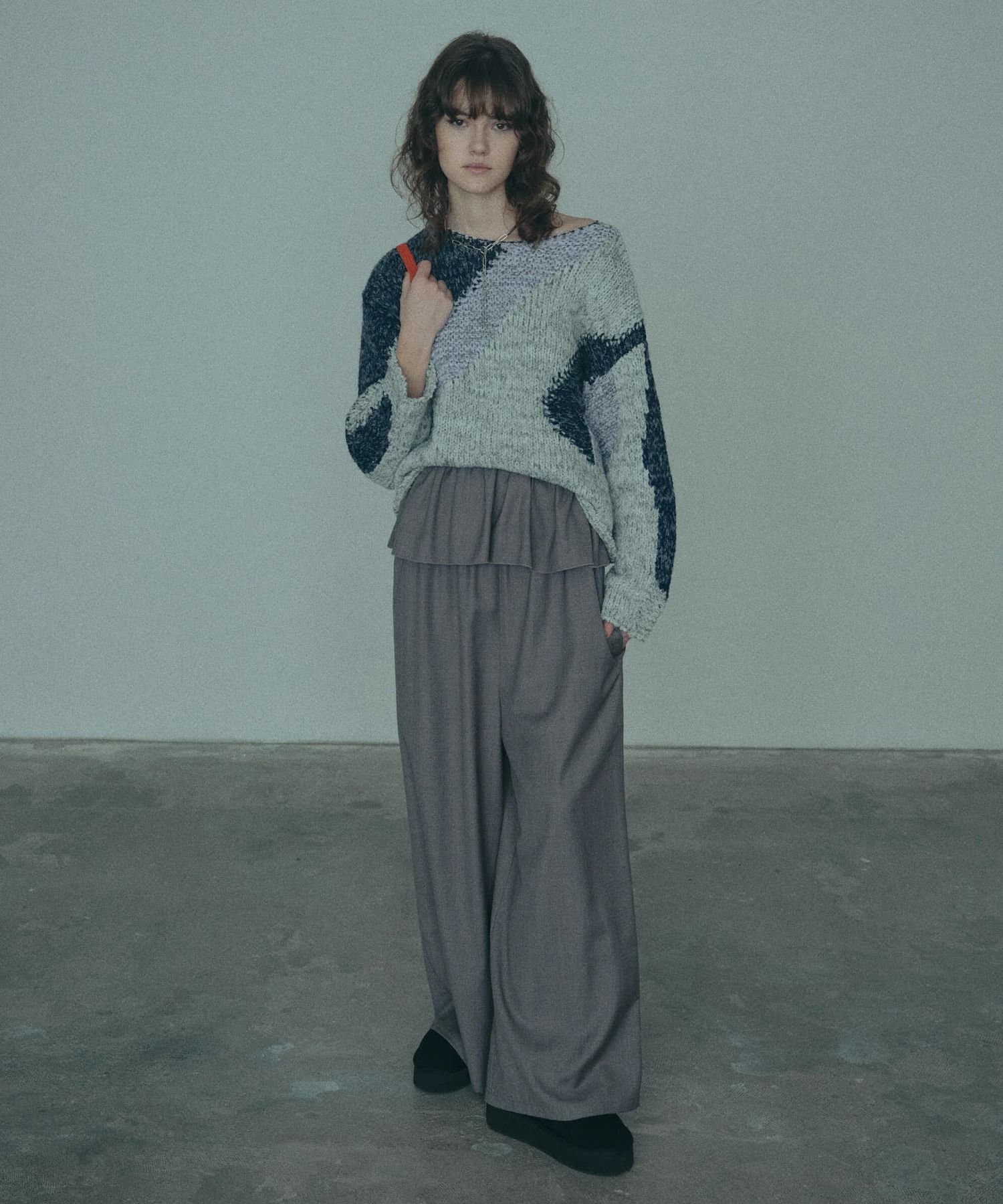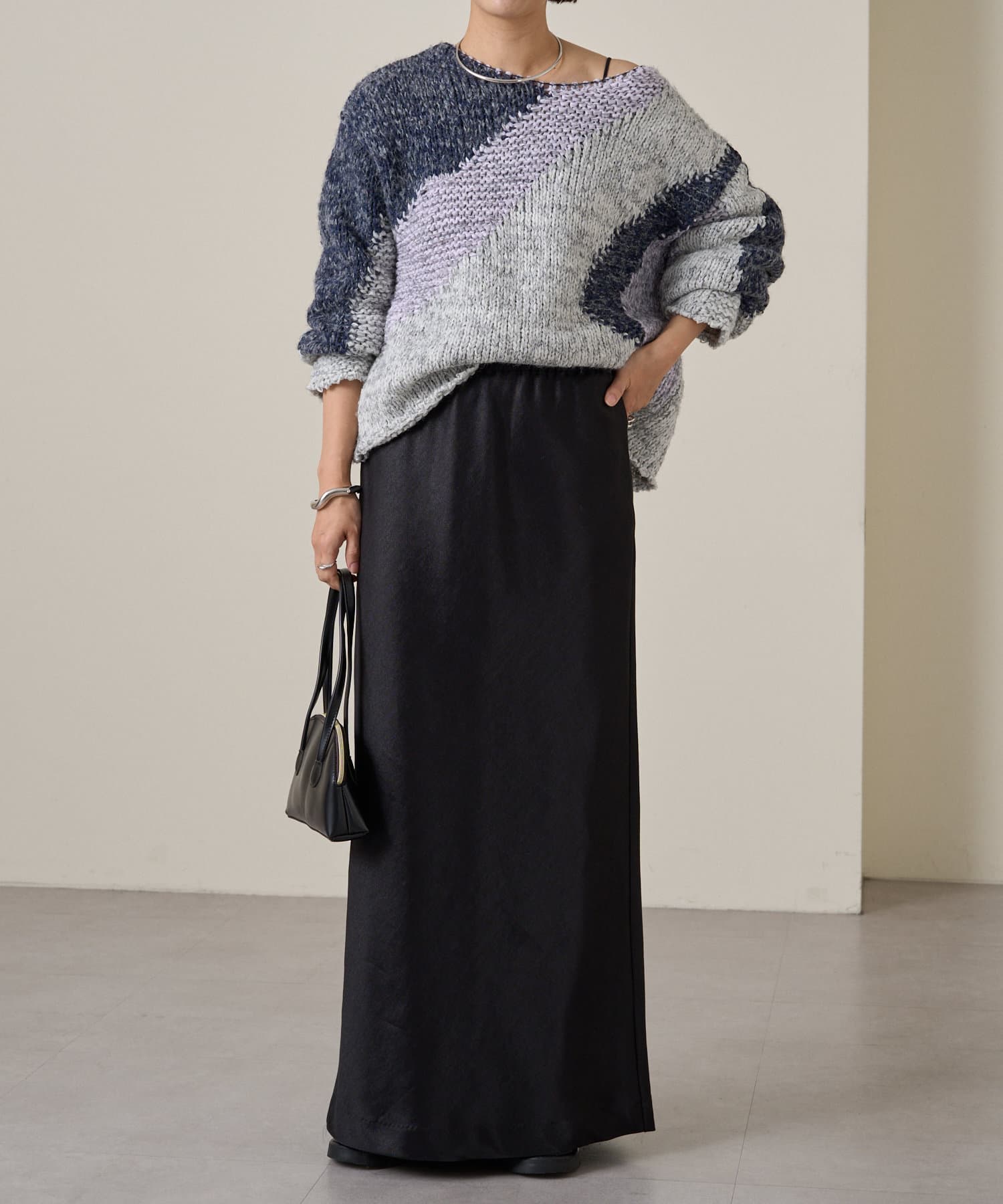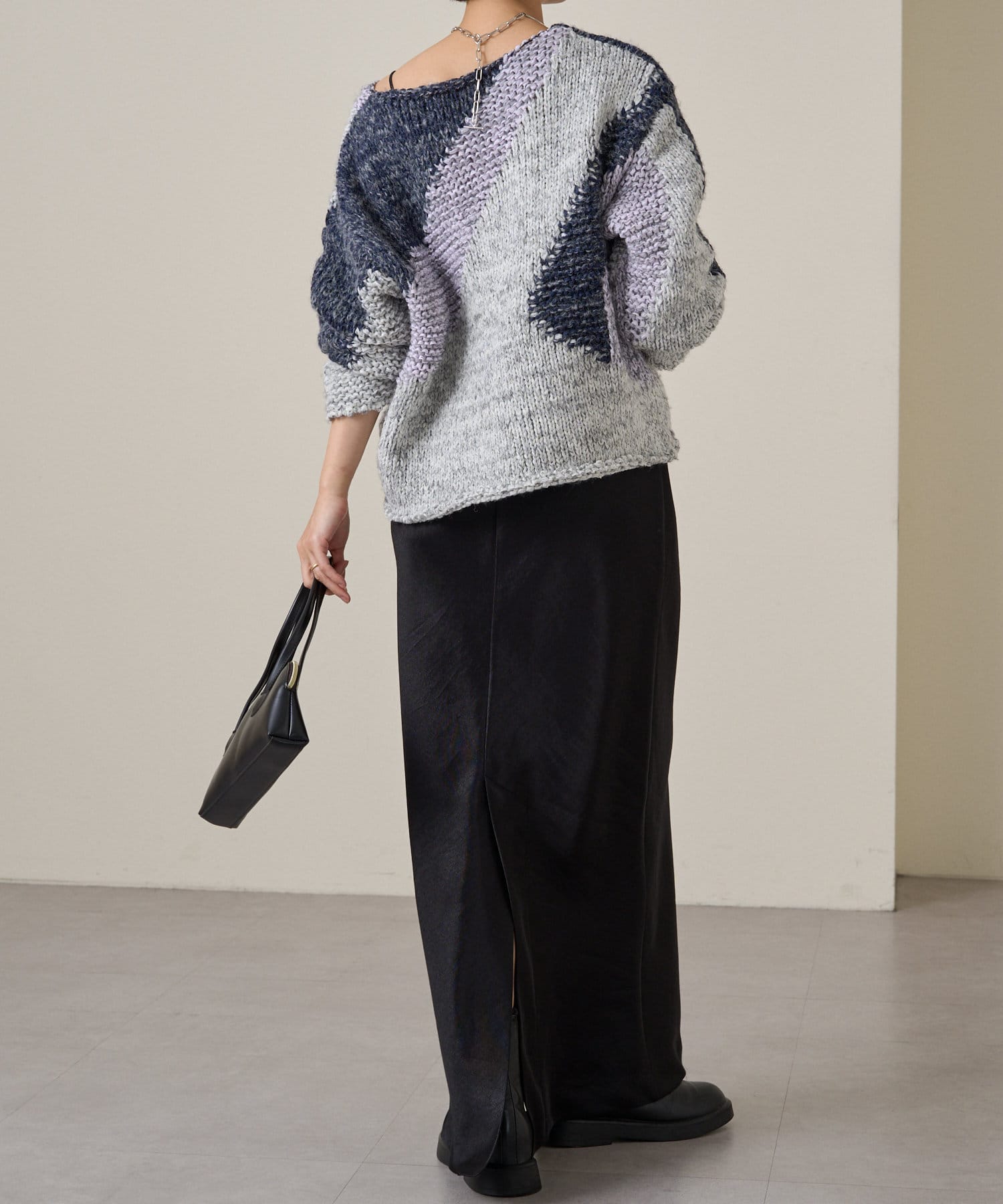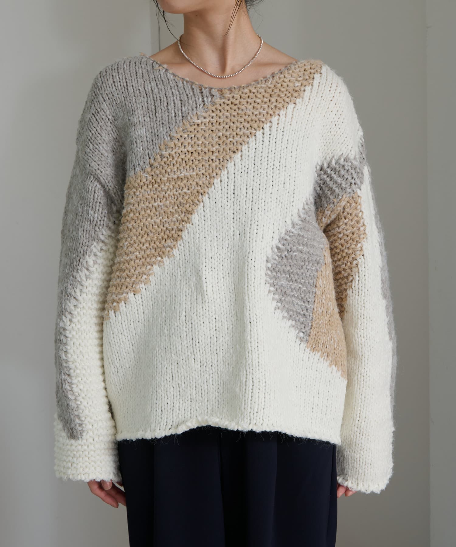 大人カジュアルなアクセントを加える柄編みワイドニット