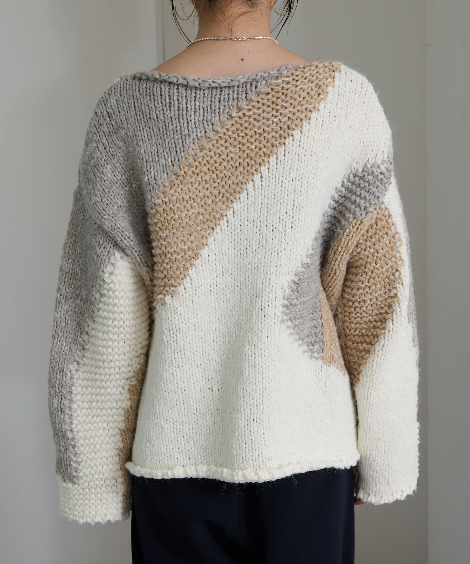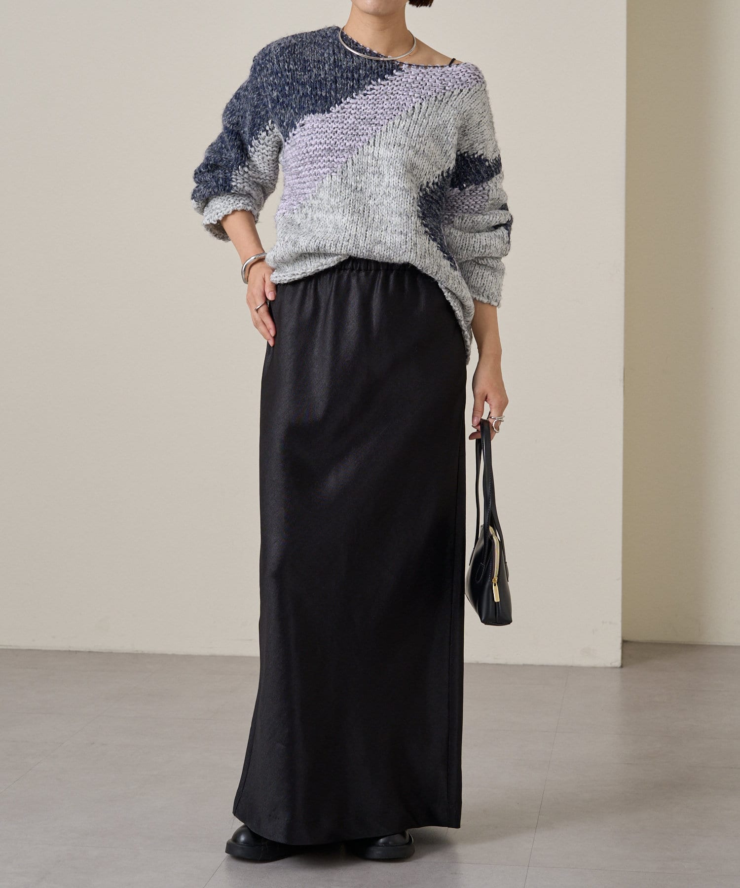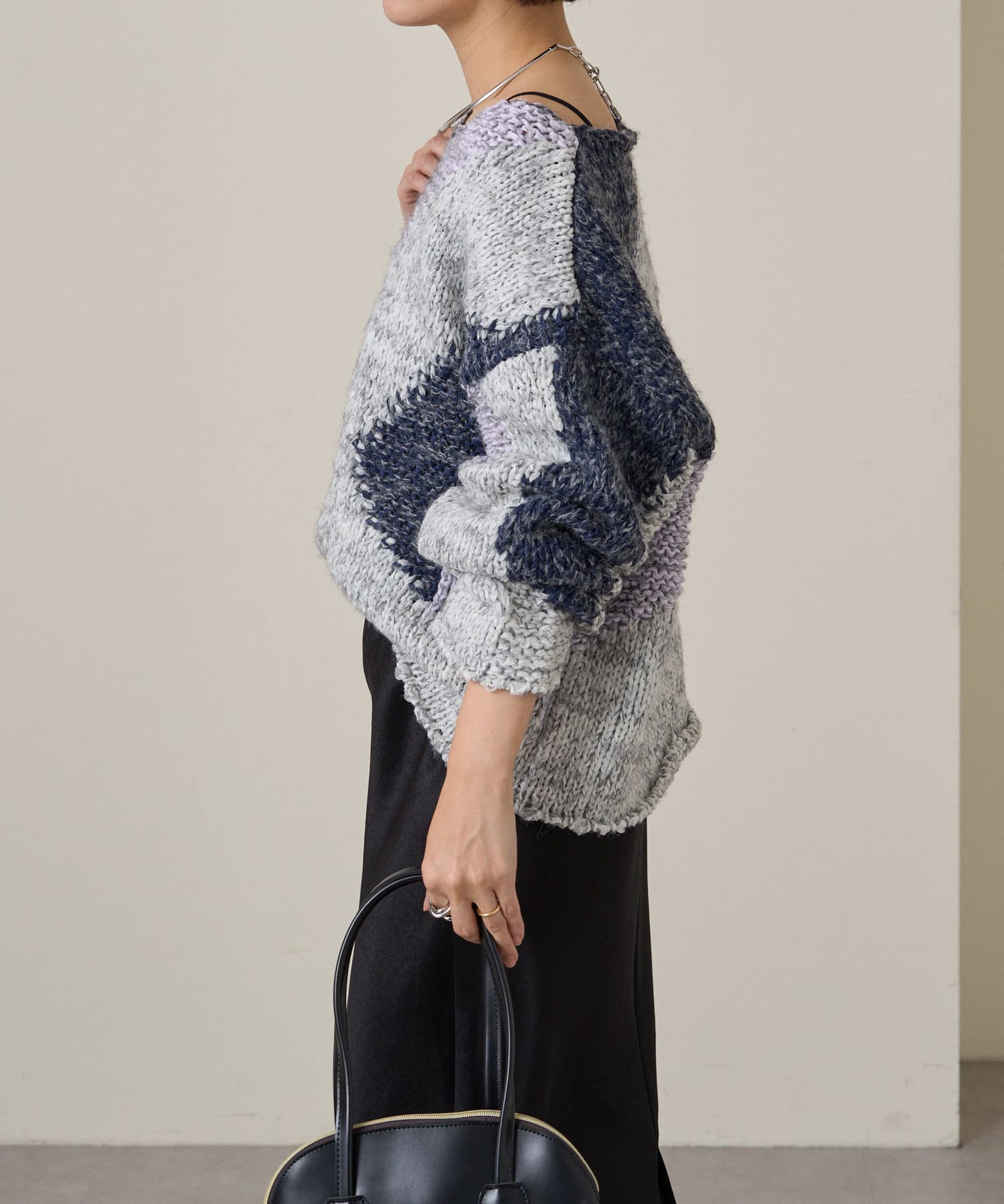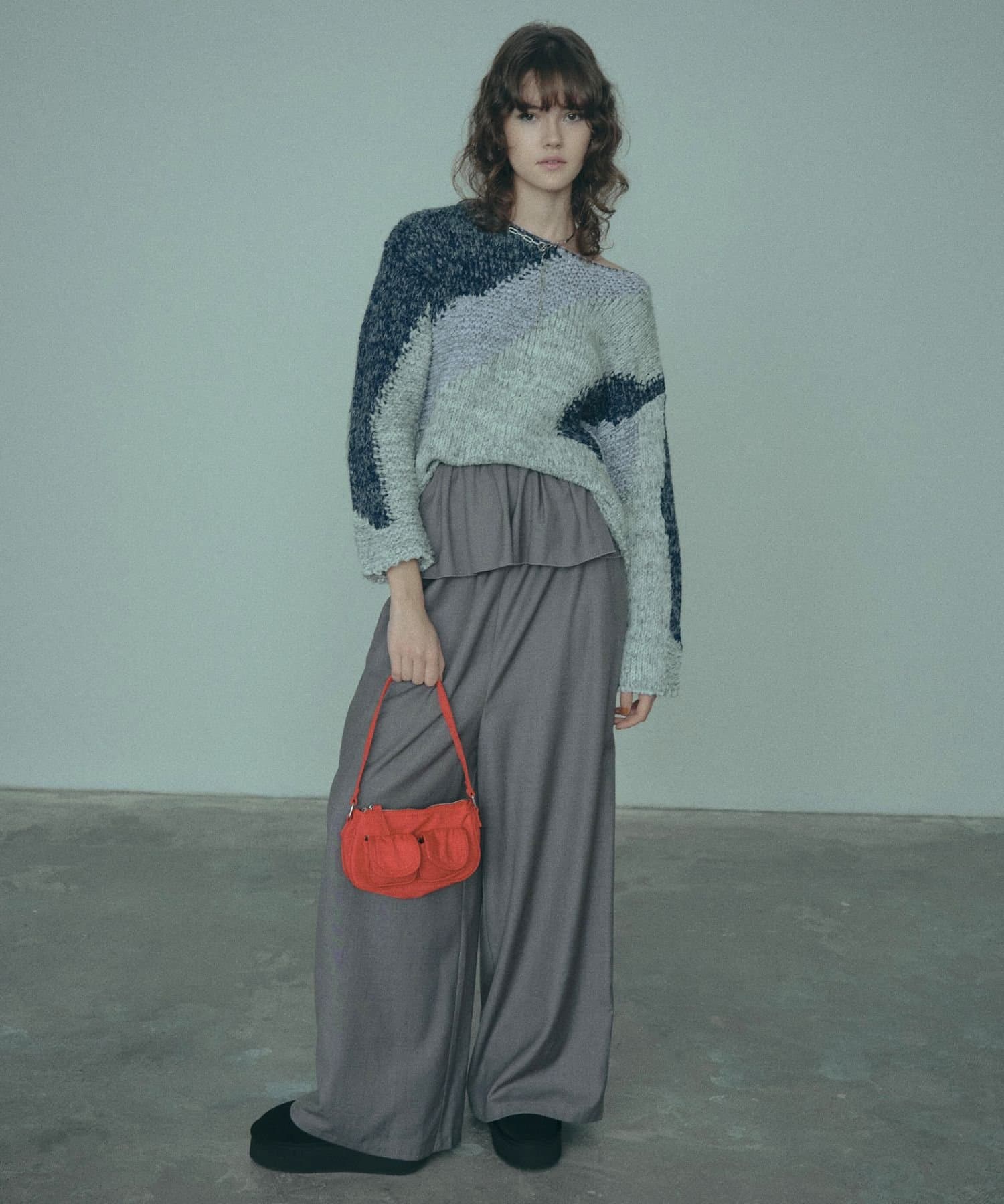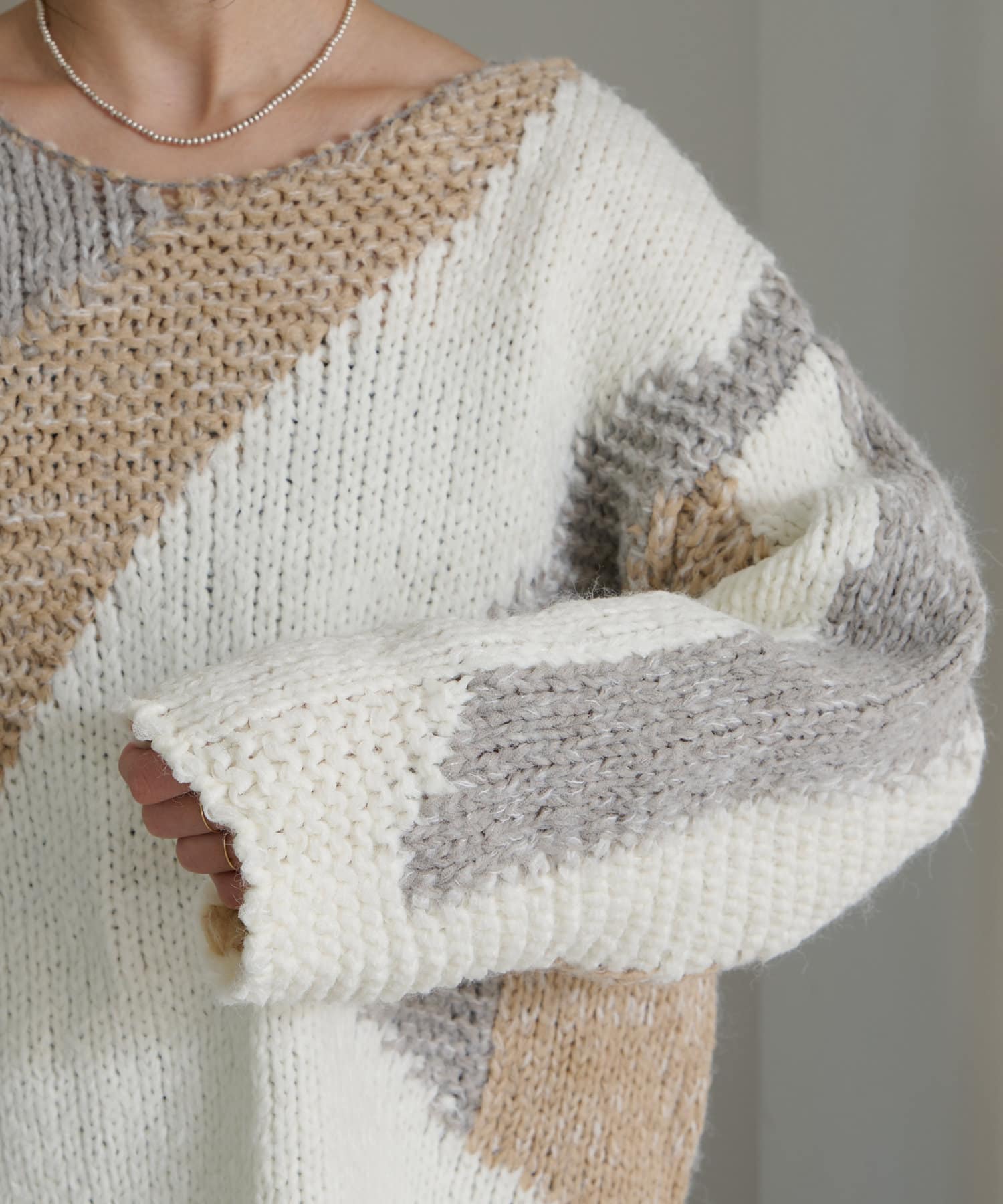 大人カジュアルなアクセントを加える柄編みワイドニット