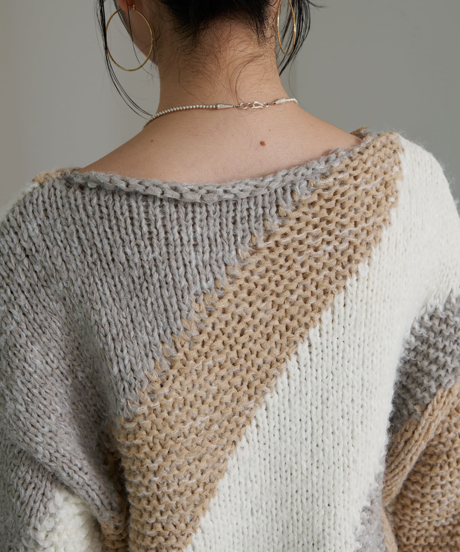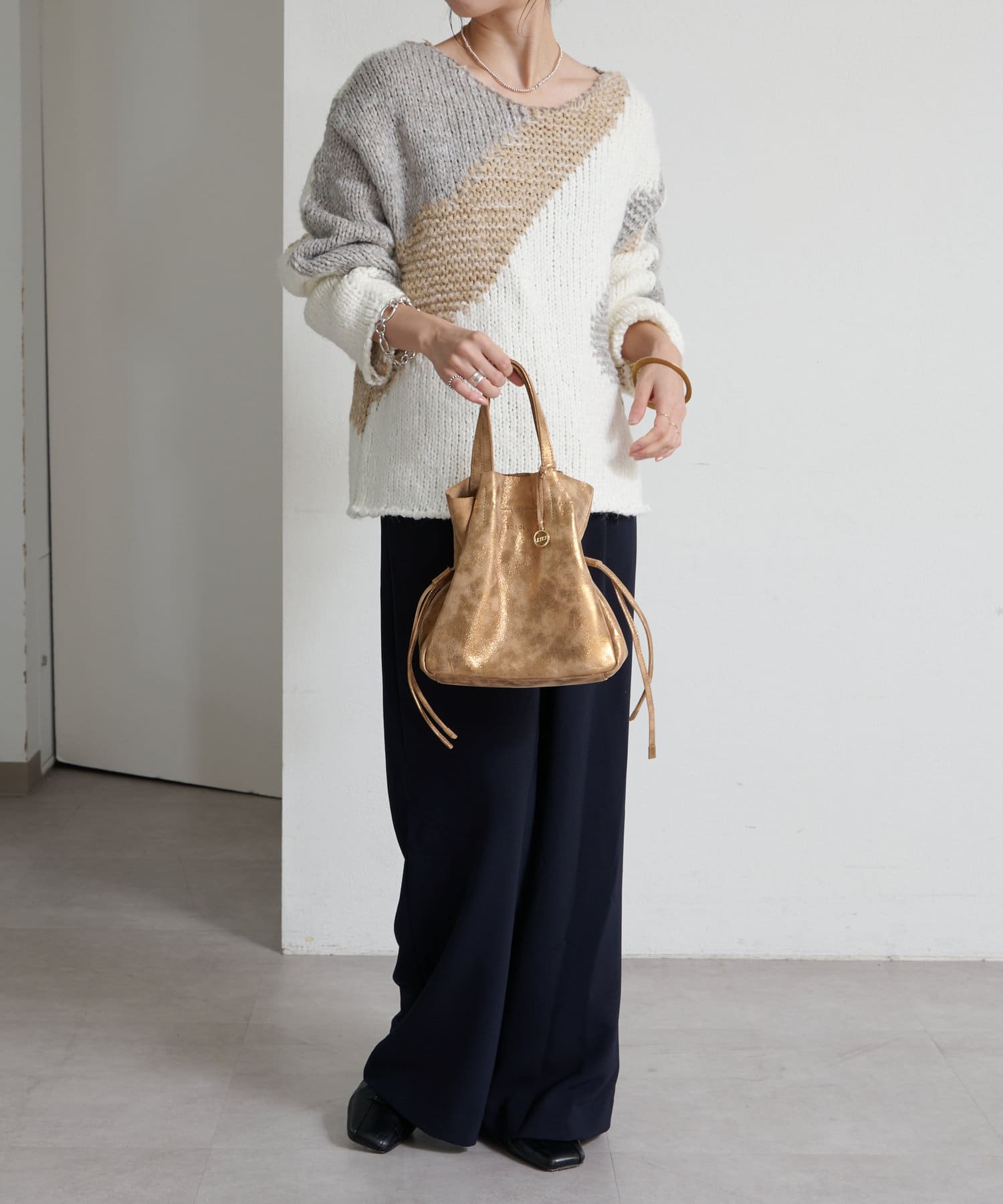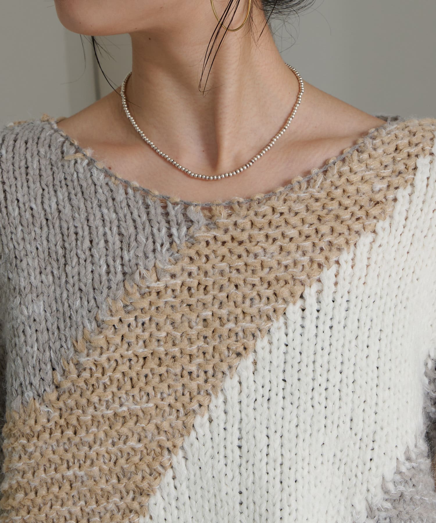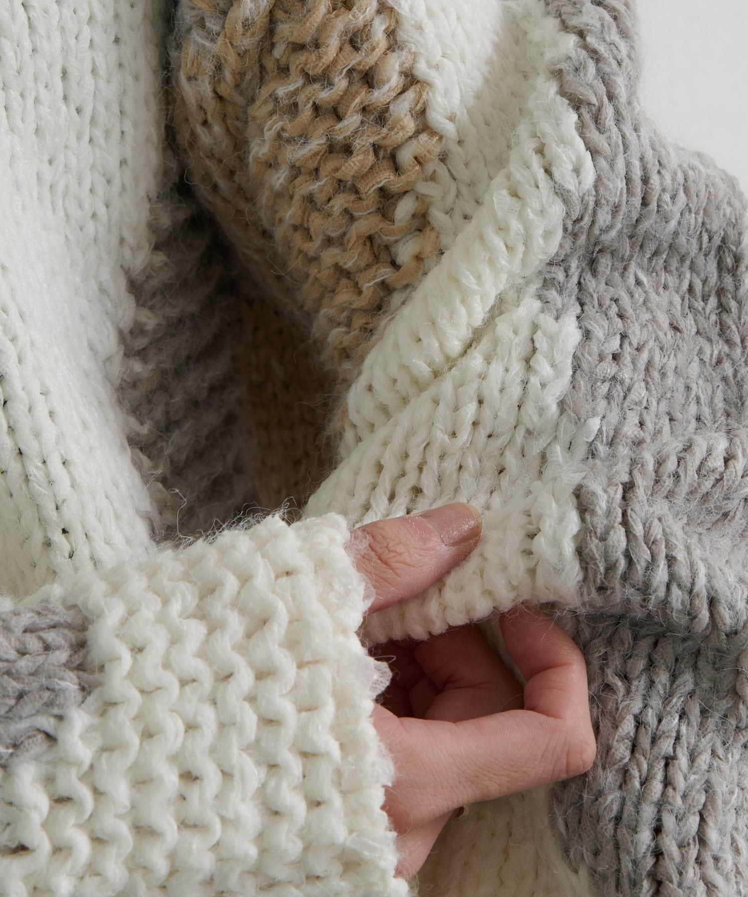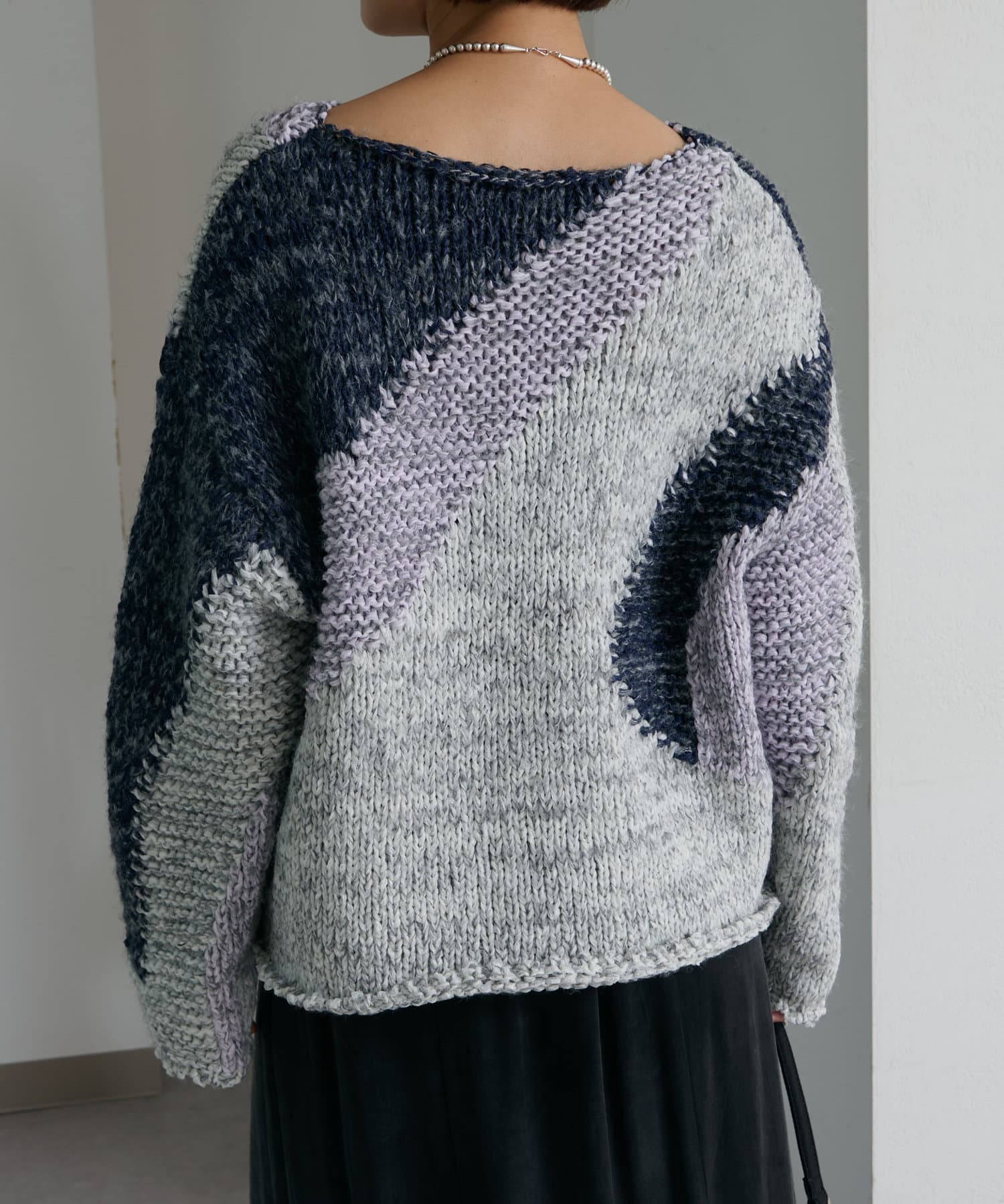 大人カジュアルなアクセントを加える柄編みワイドニット