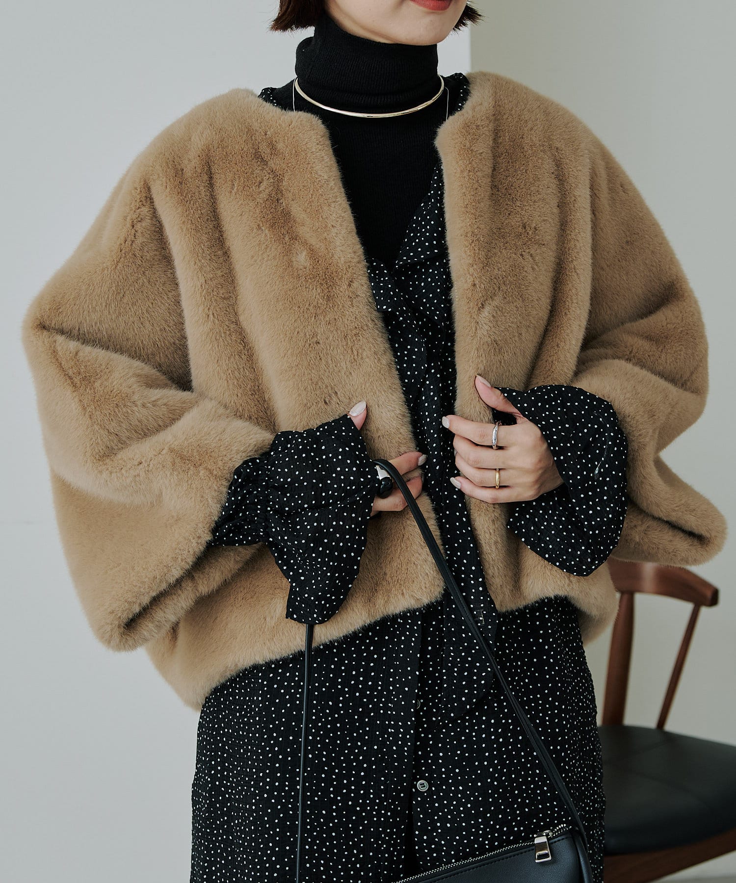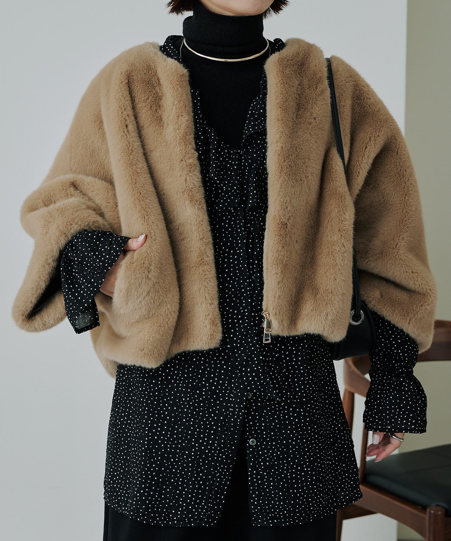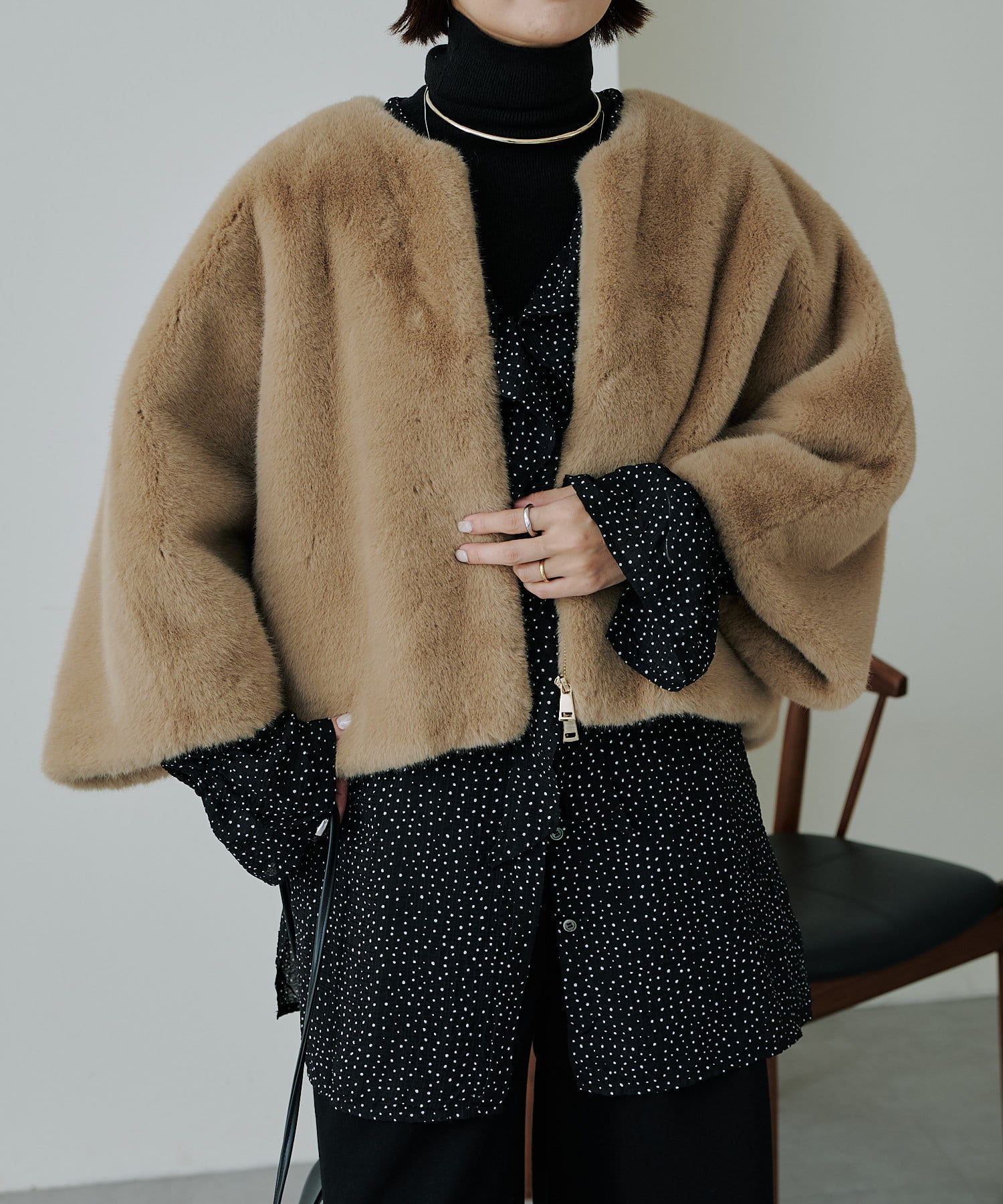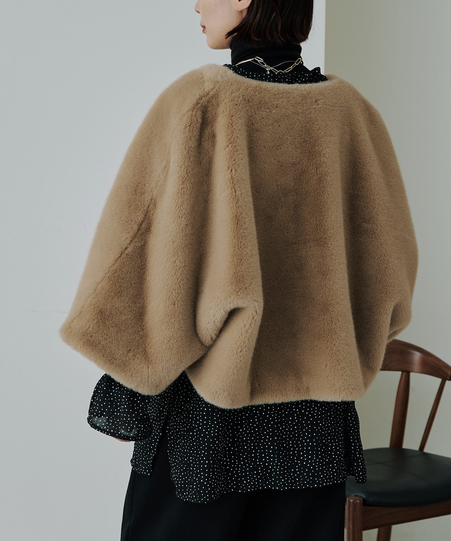 TOP > Omekashi > レディース > ジャケット/アウター > ファーコート/ジャケット > ダブルジップファーケープコート