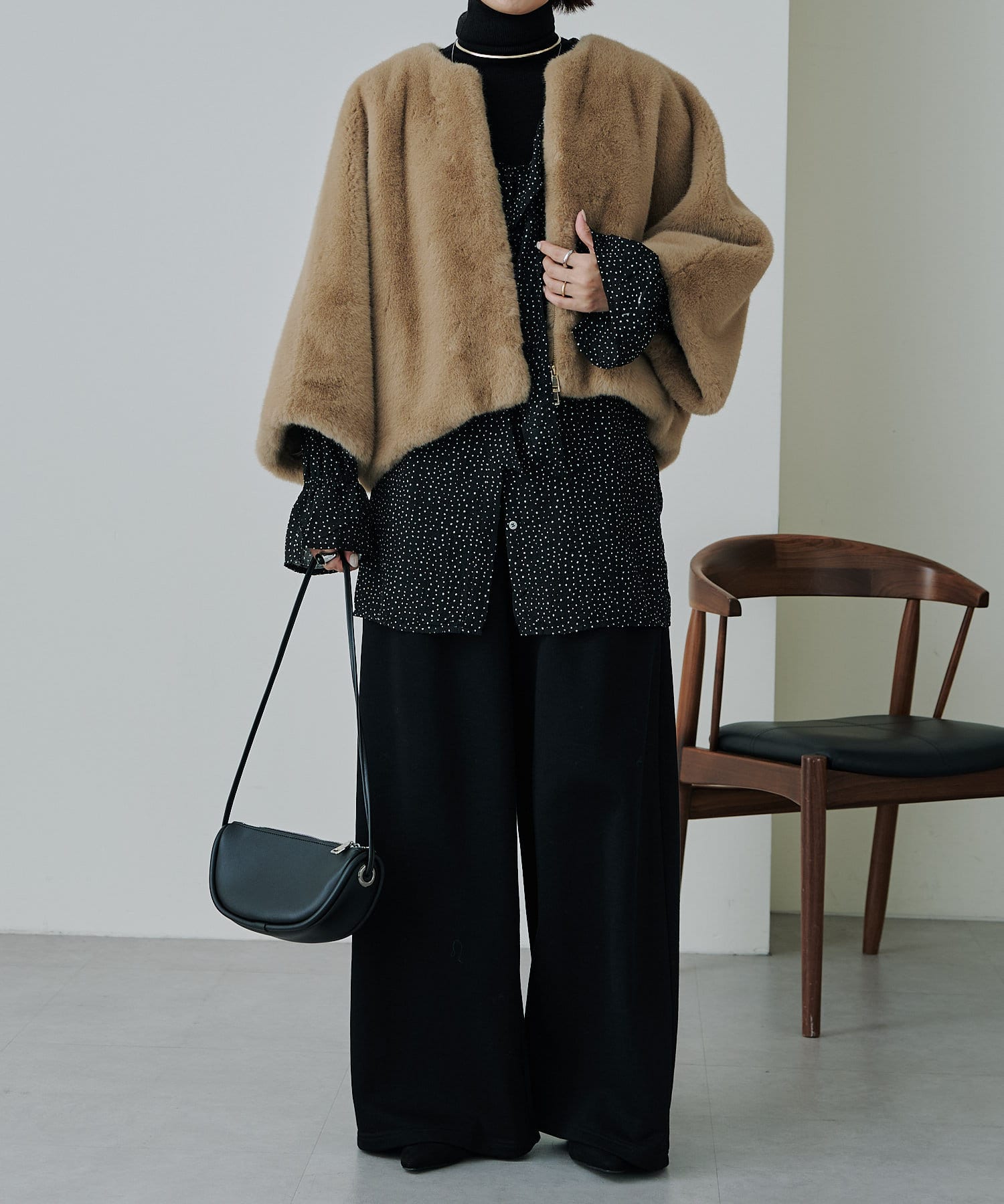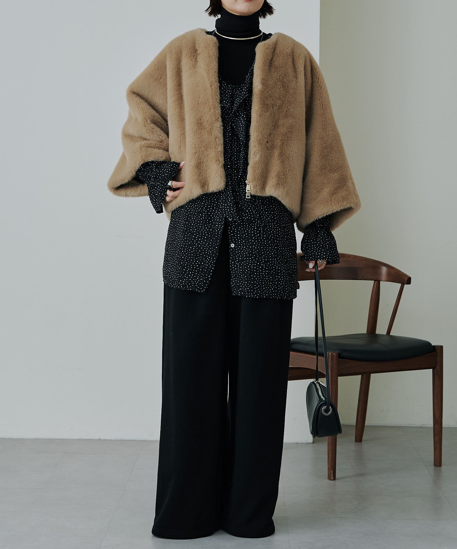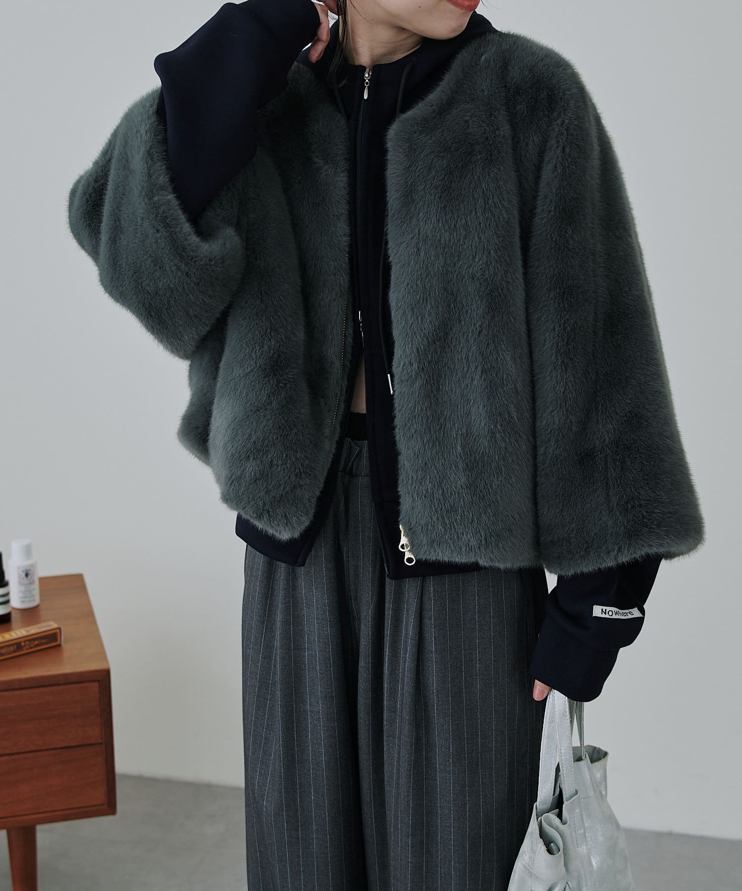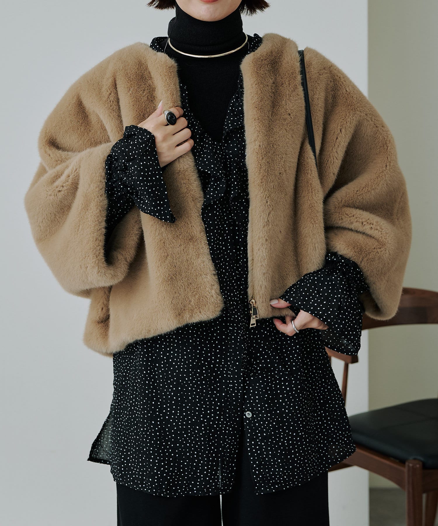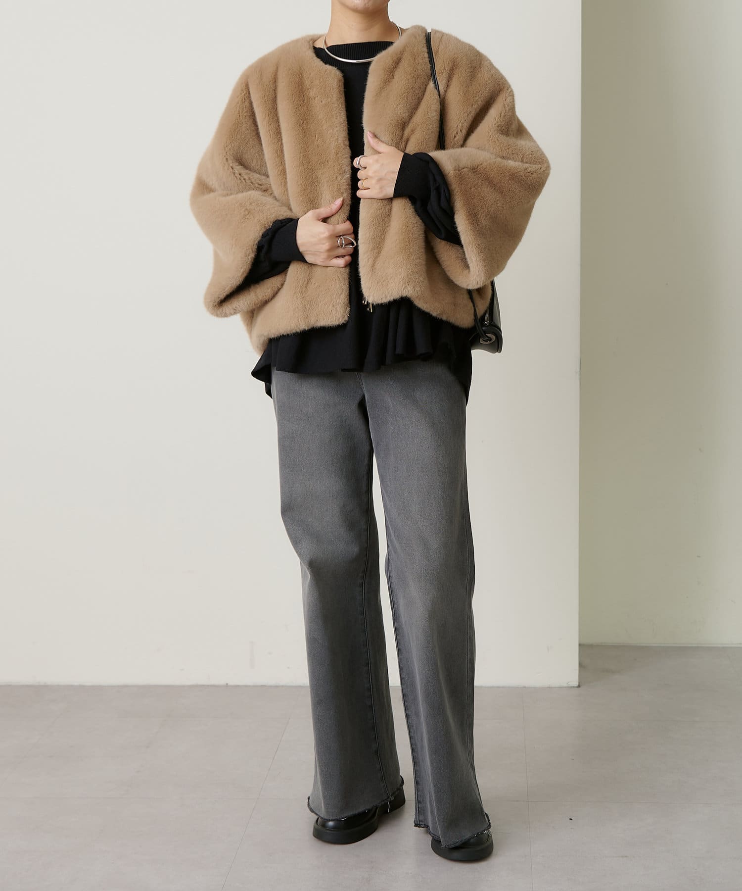 TOP > Omekashi > レディース > ジャケット/アウター > ファーコート/ジャケット > ダブルジップファーケープコート