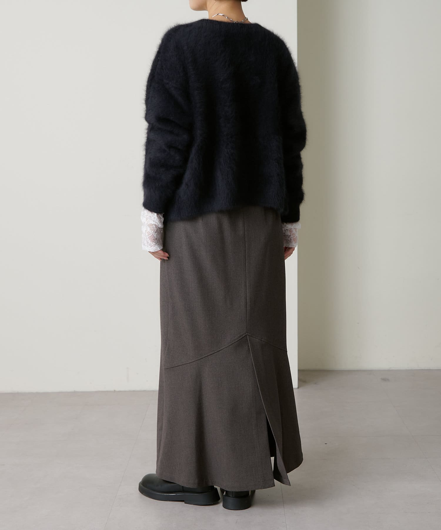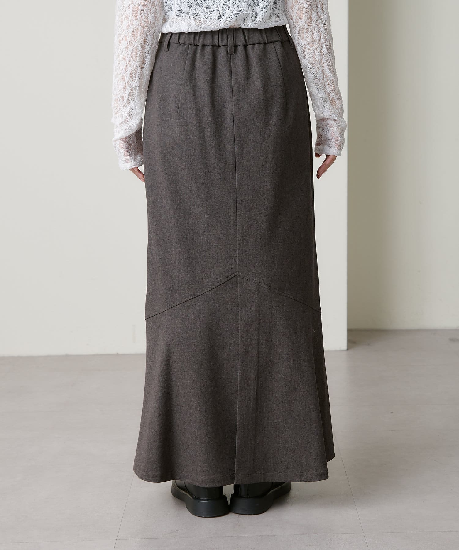 ・フロントはシンプルながらバックに切り替えが施され、裾まわりがやや広がる女性らしいシルエット。