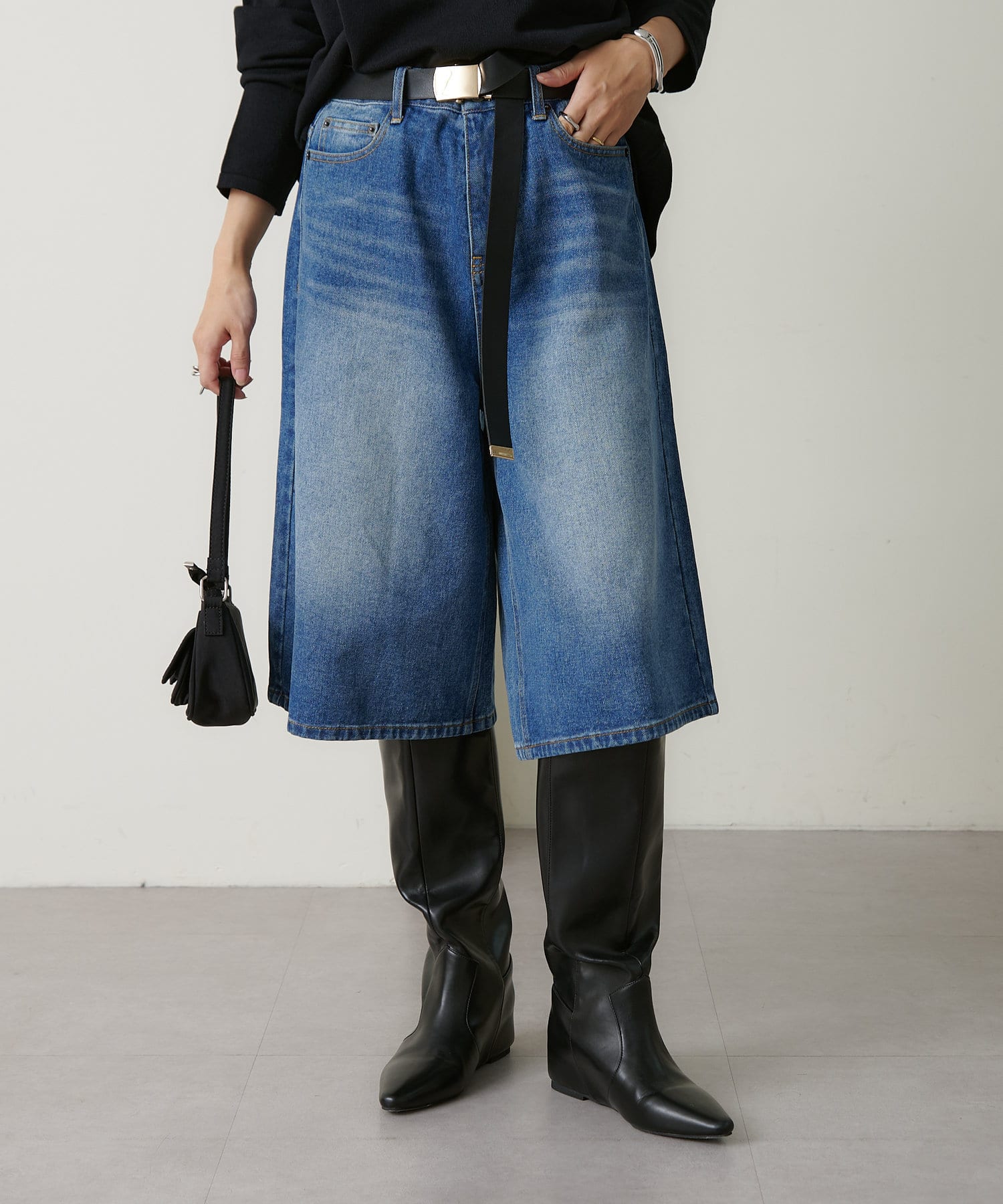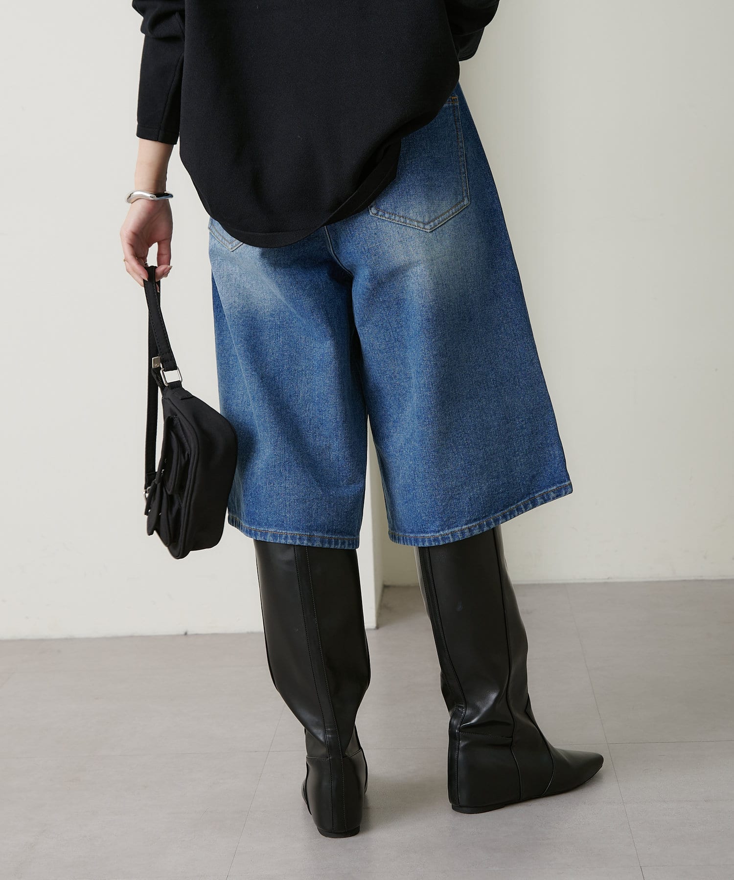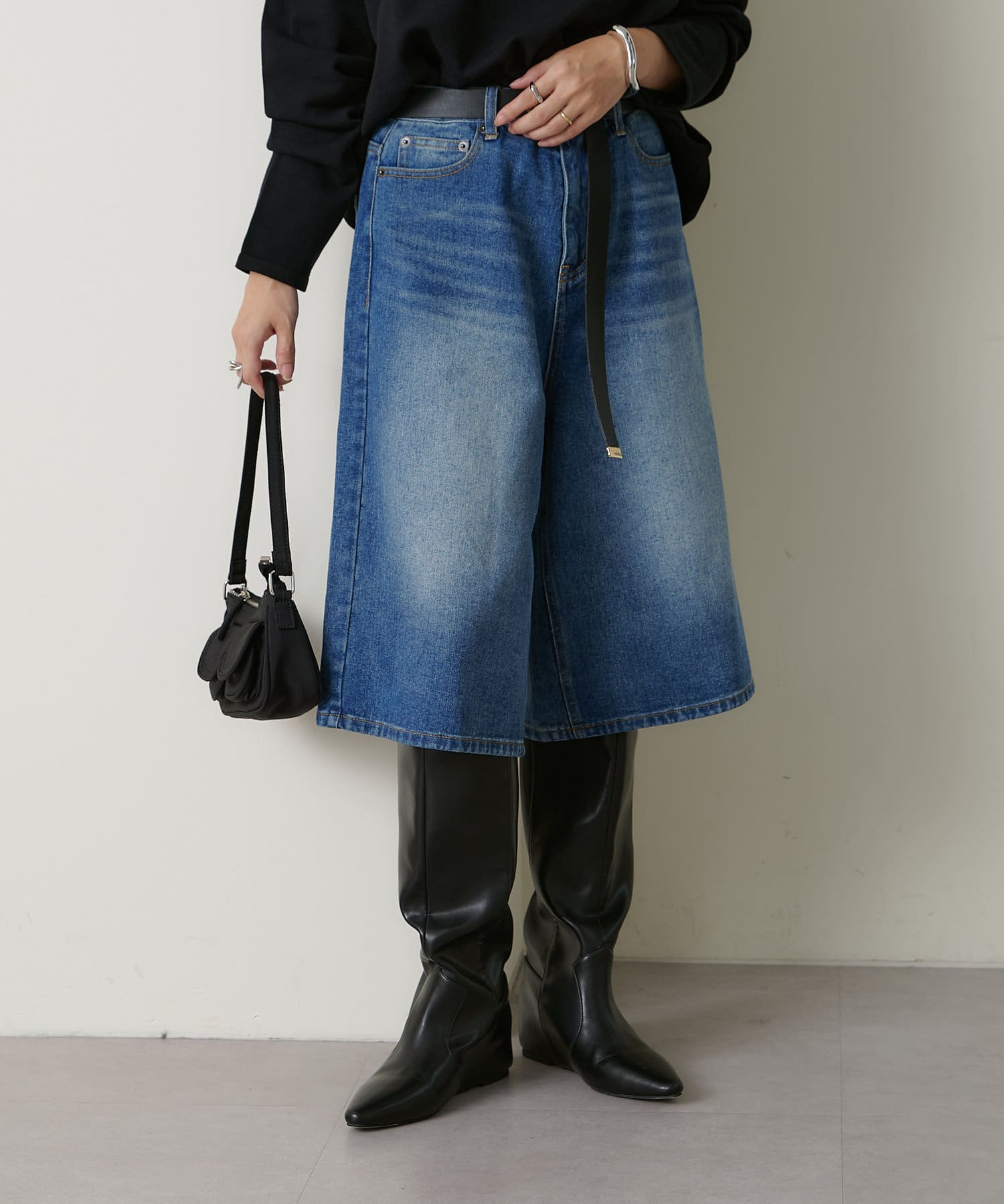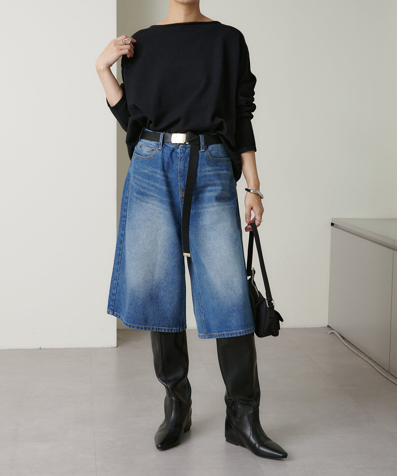 ・足元はロングブーツ以外にもスニーカーとも相性抜群。