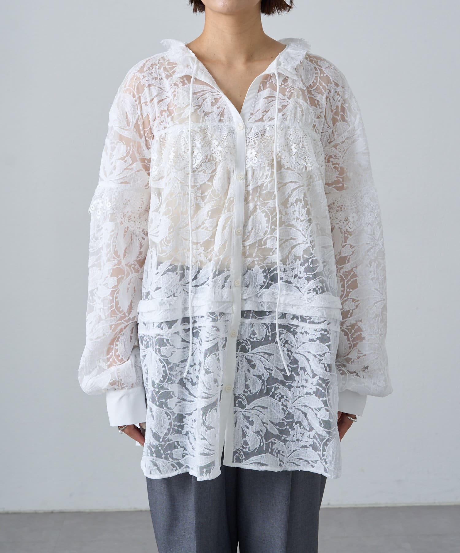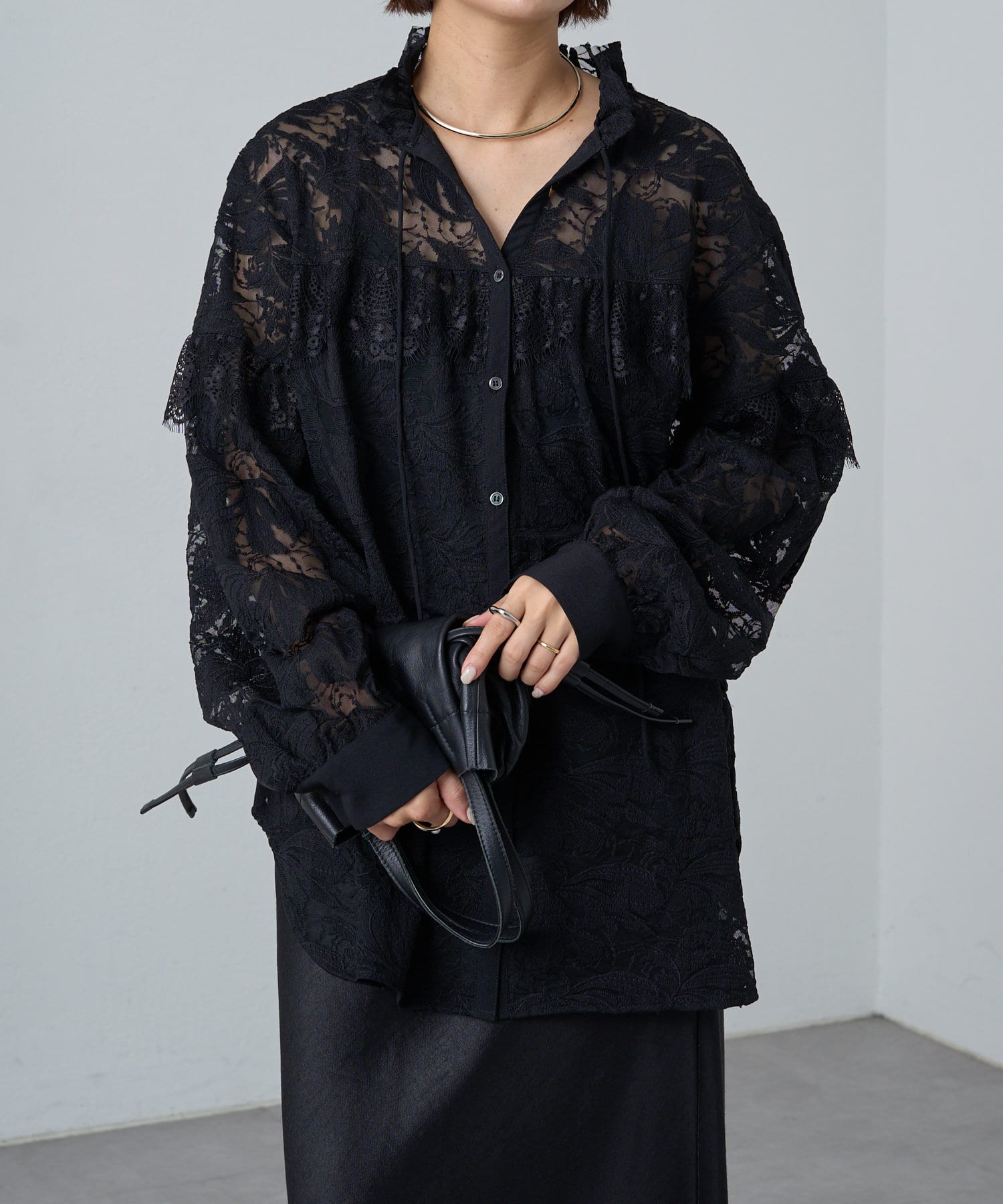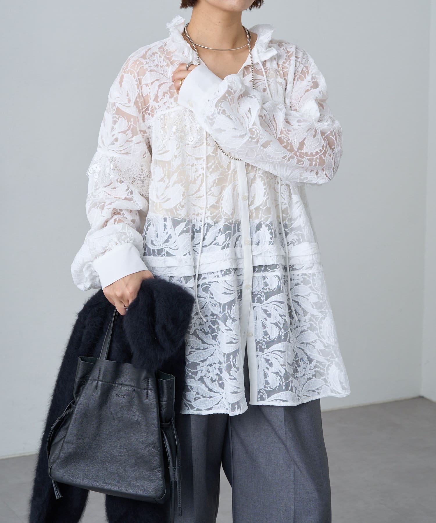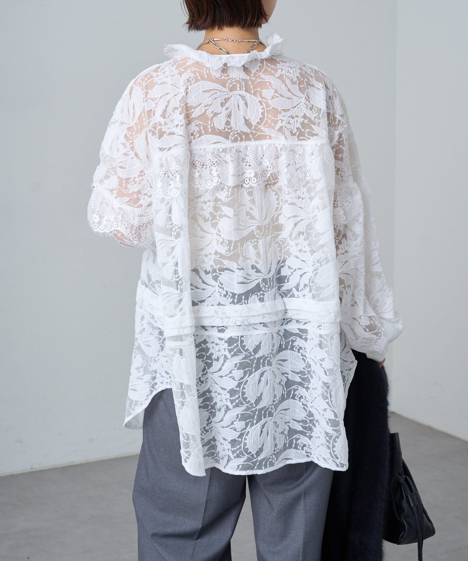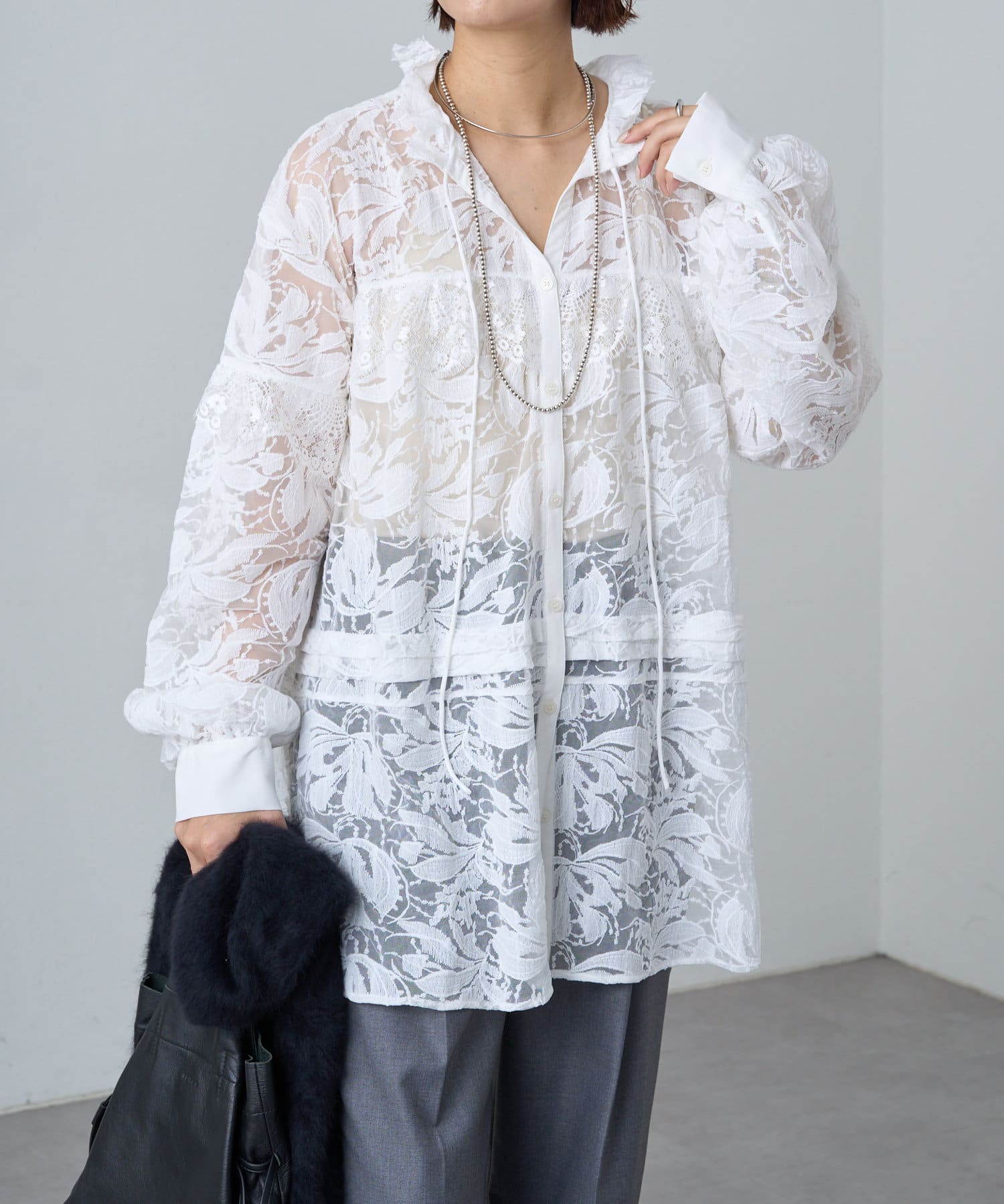 レイヤードスタイルにも一枚でも着映えするレースシャツが登場!