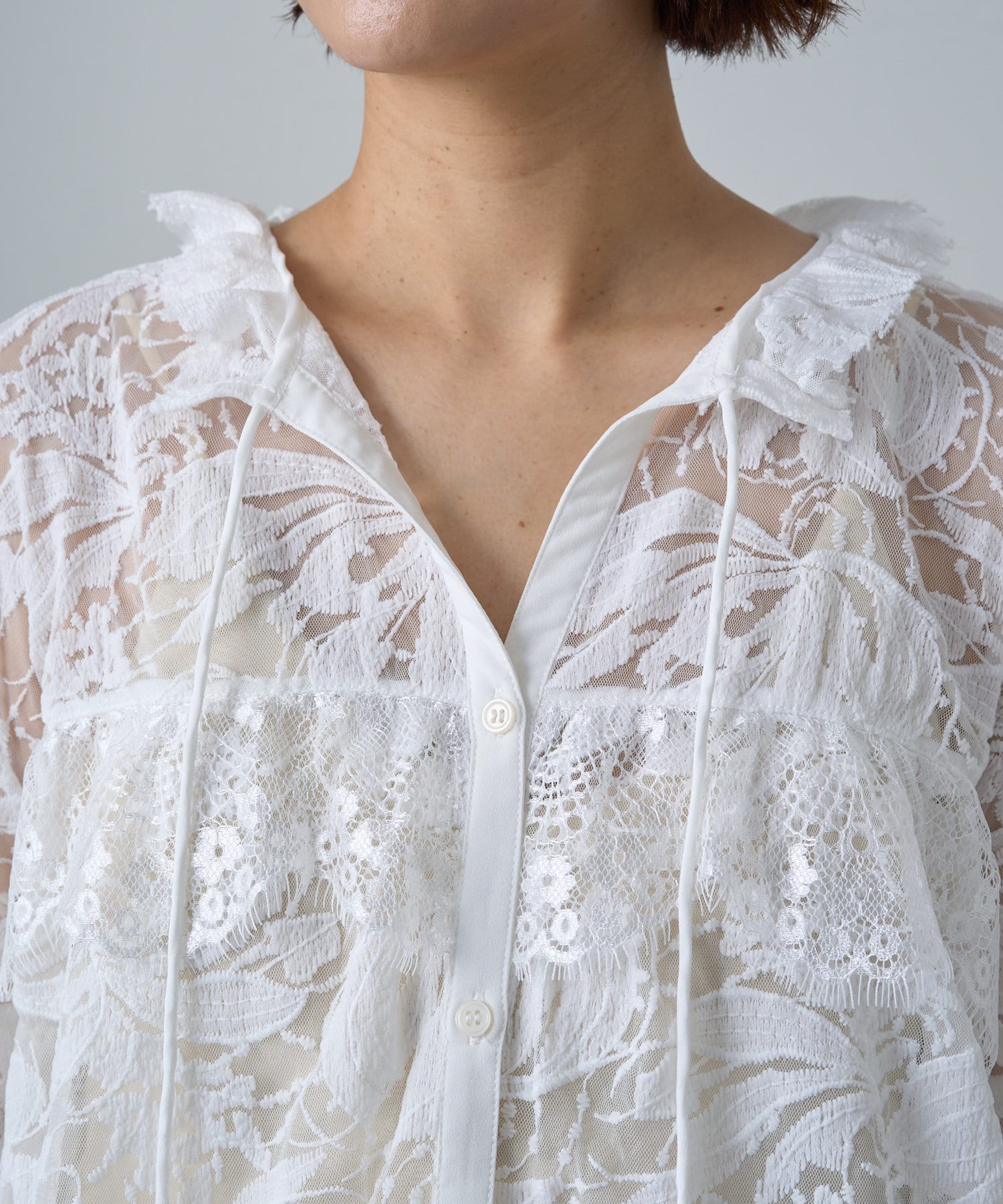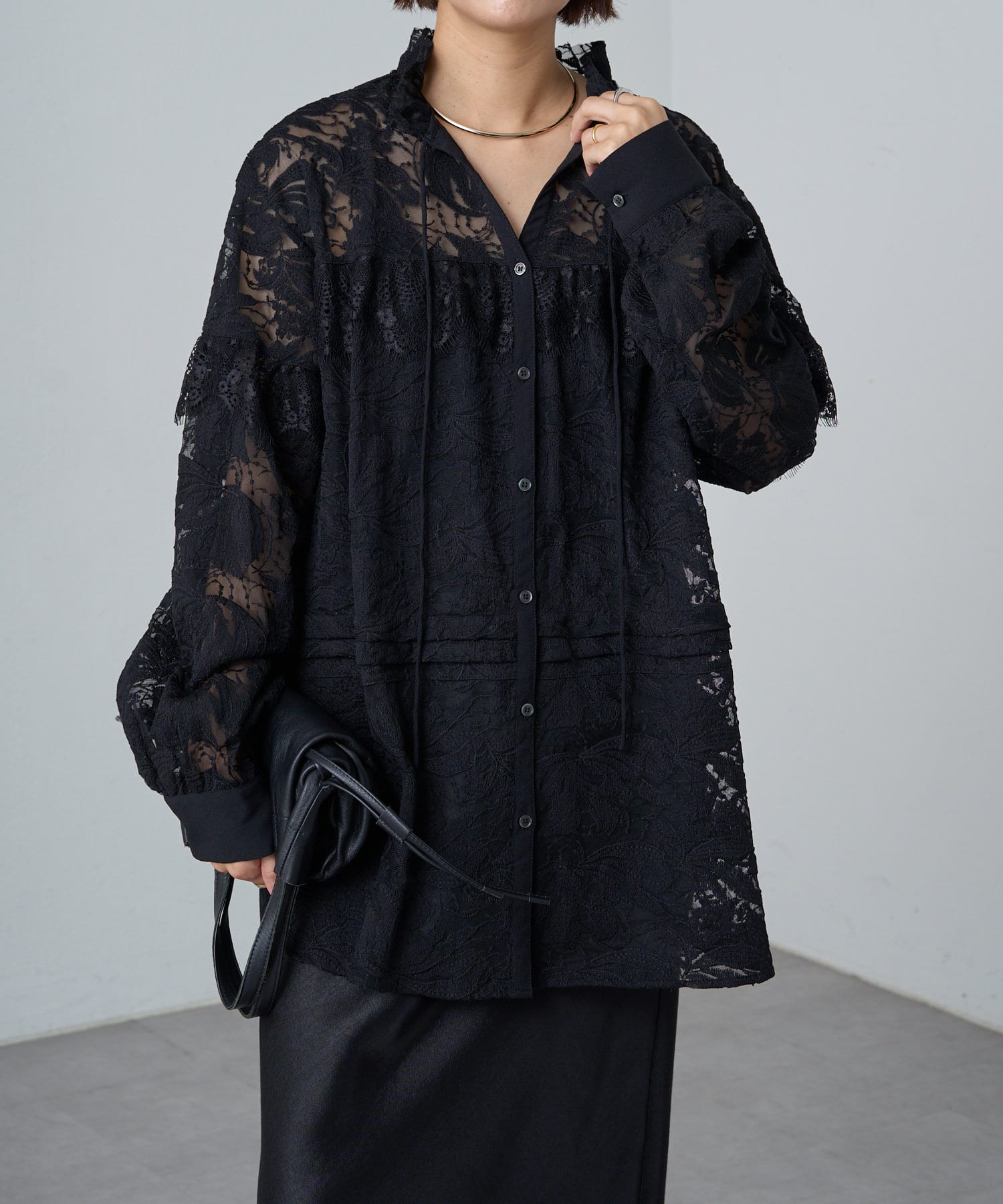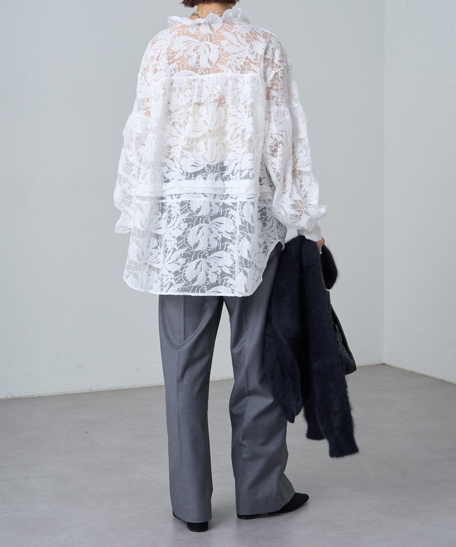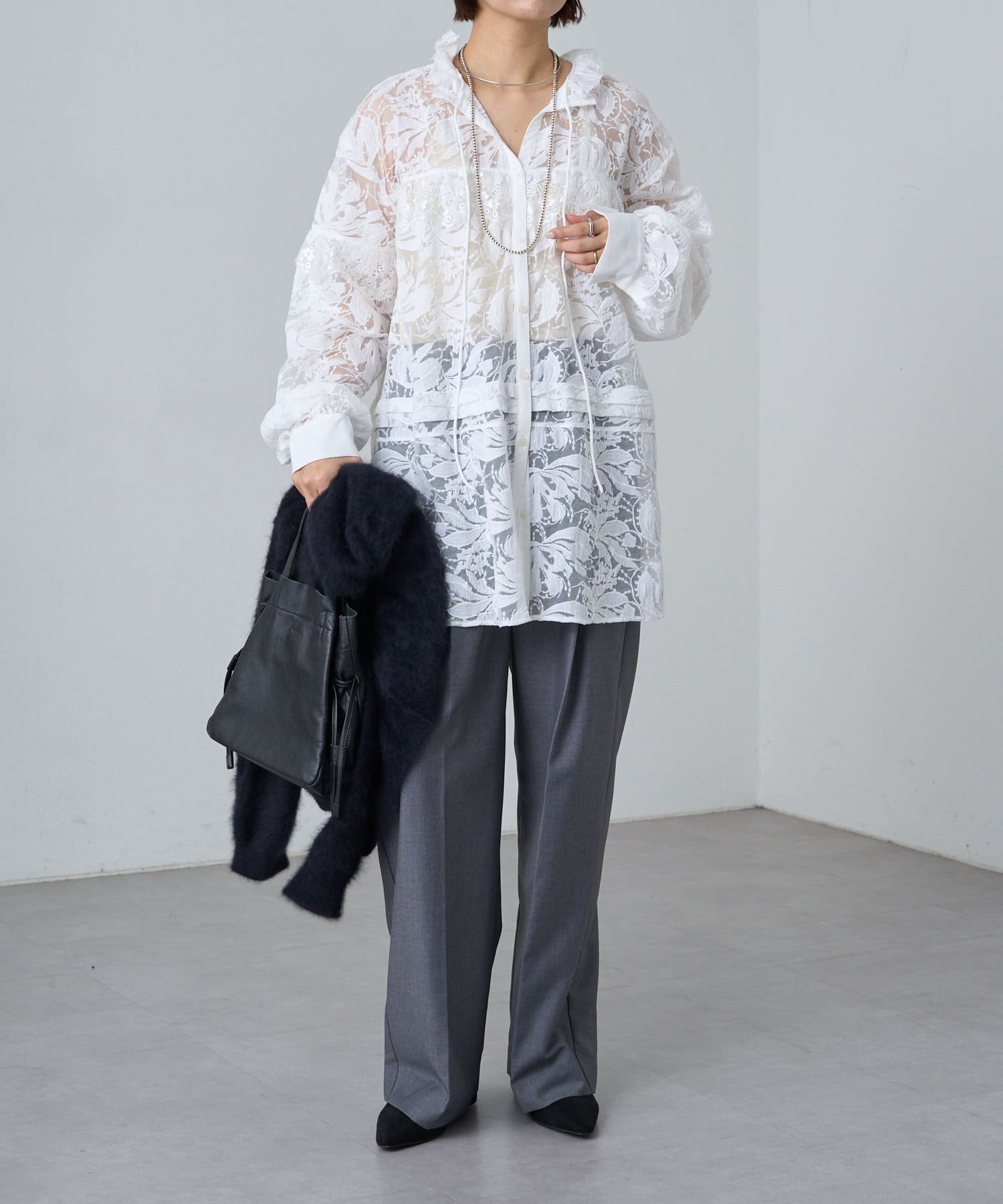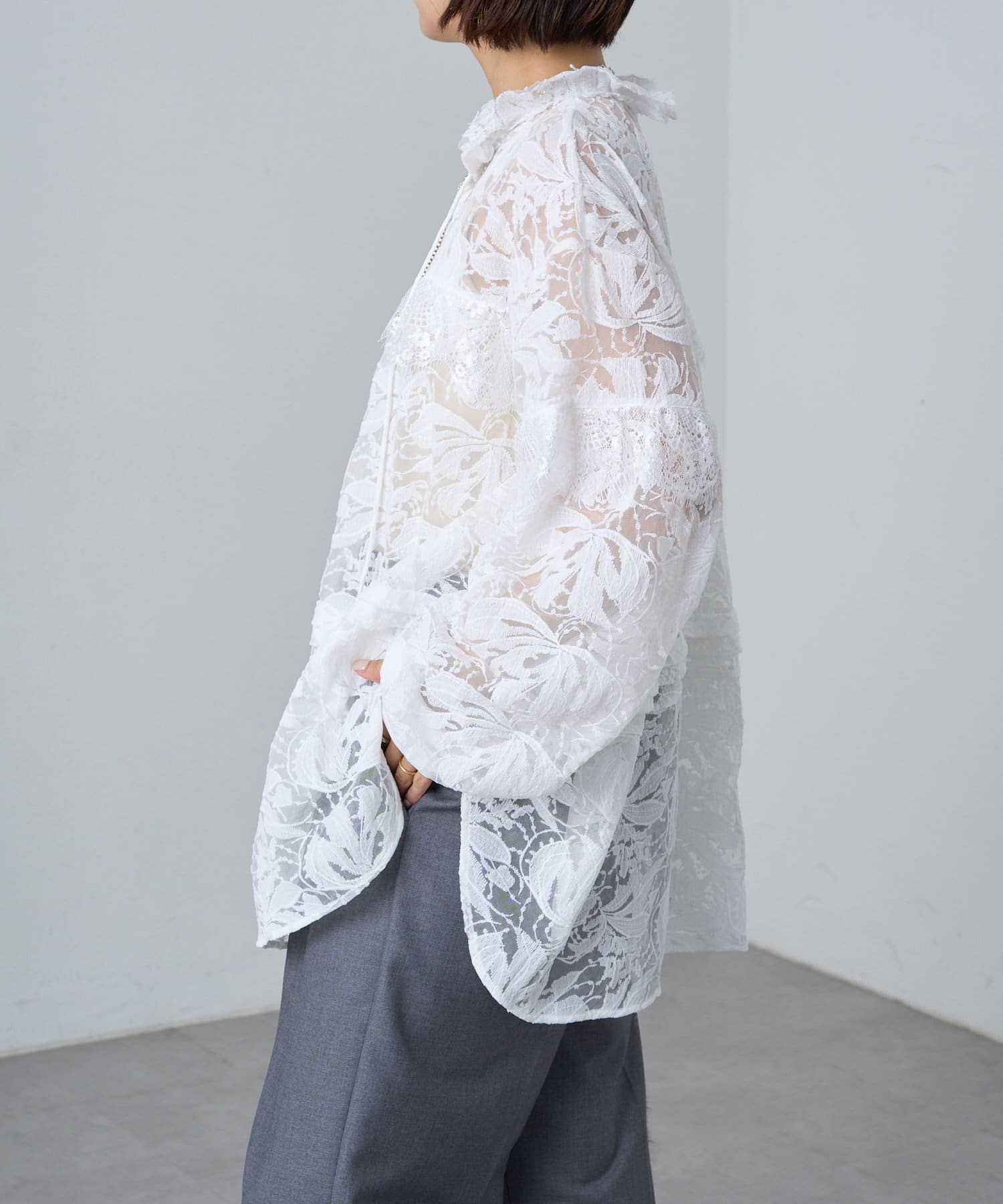 レイヤードスタイルにも一枚でも着映えするレースシャツが登場!