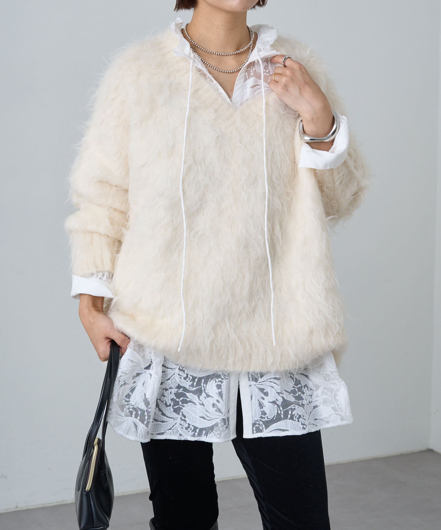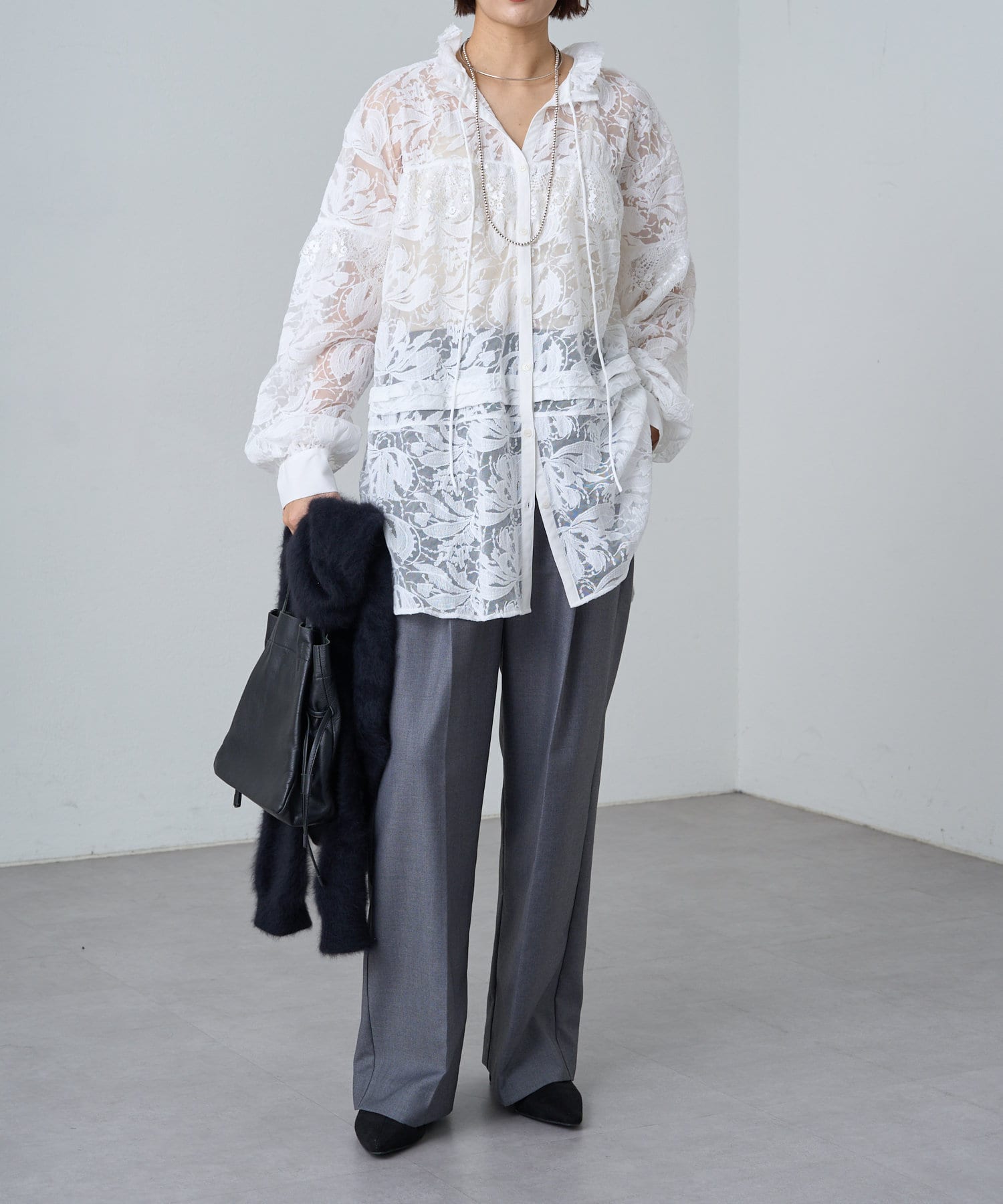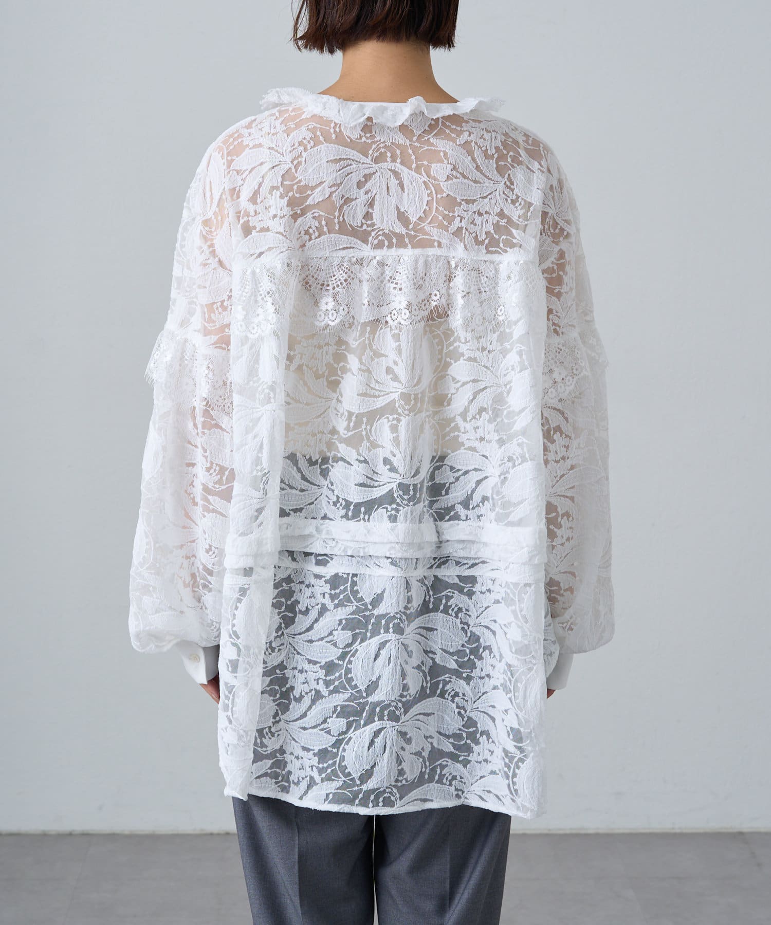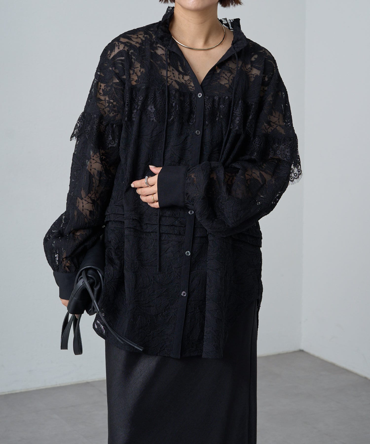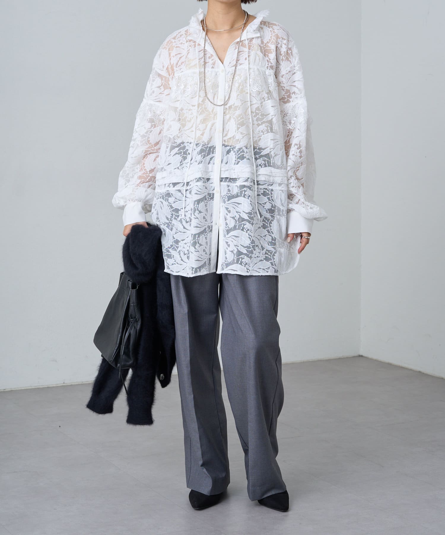 レイヤードスタイルにも一枚でも着映えするレースシャツが登場!