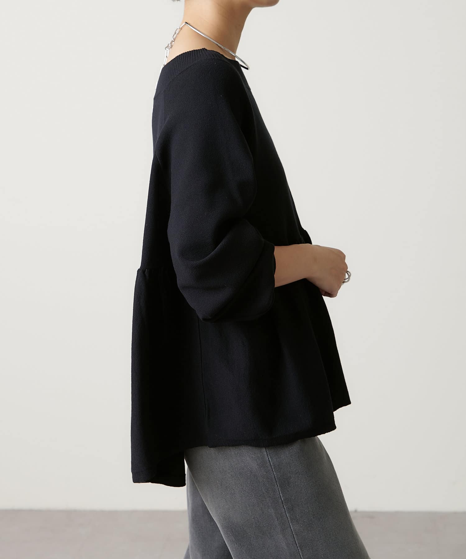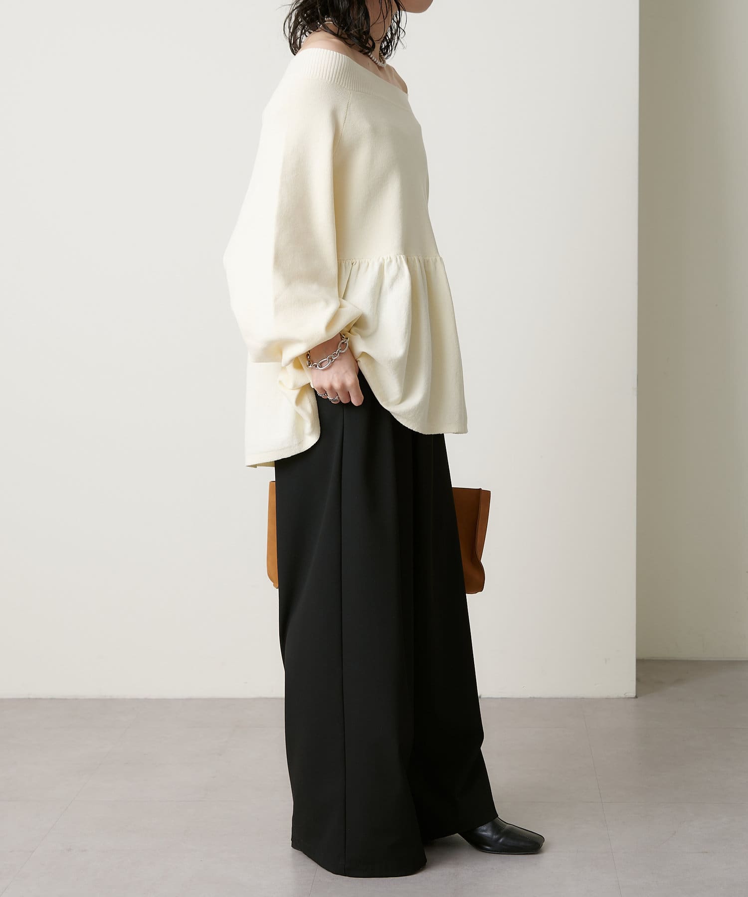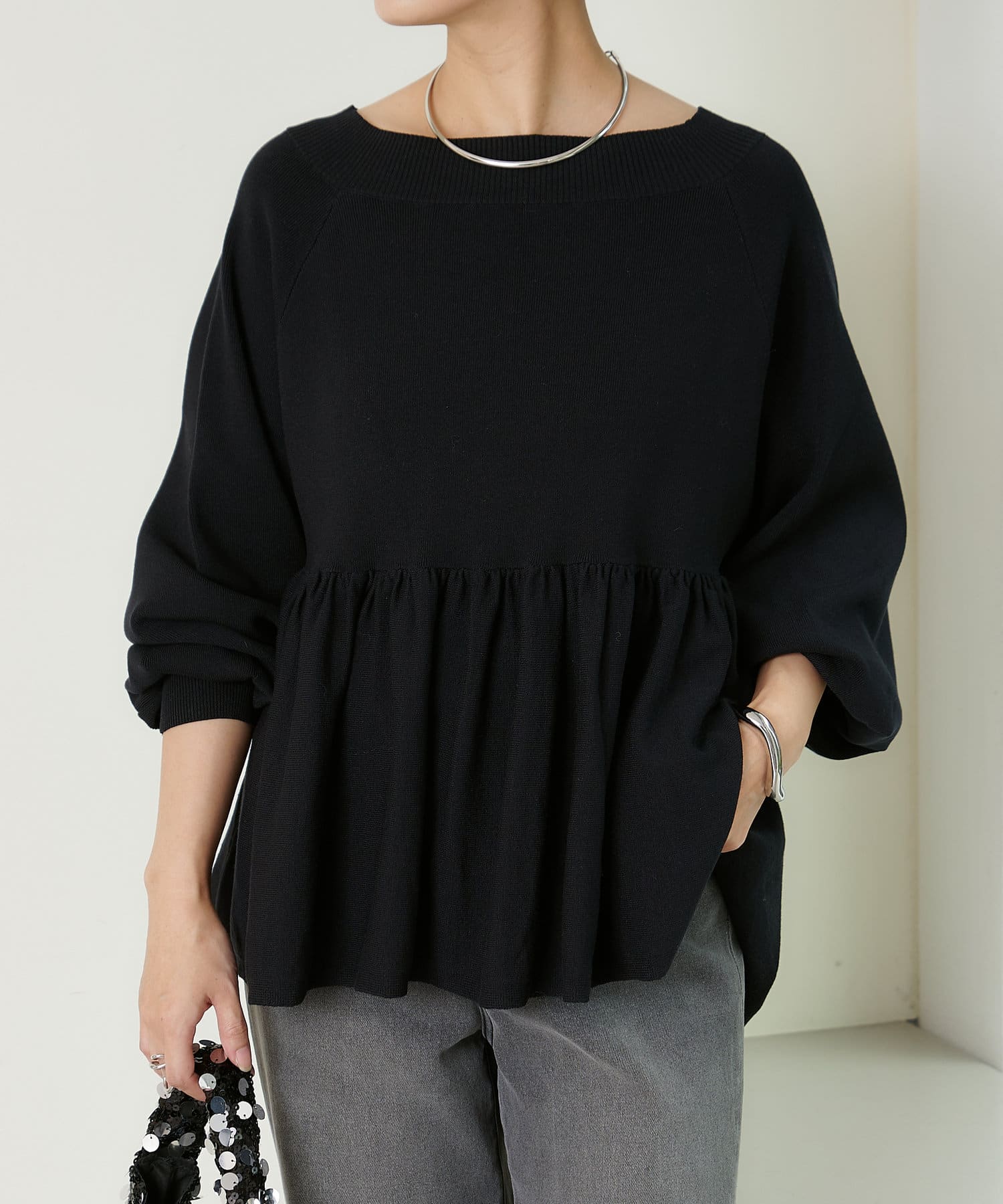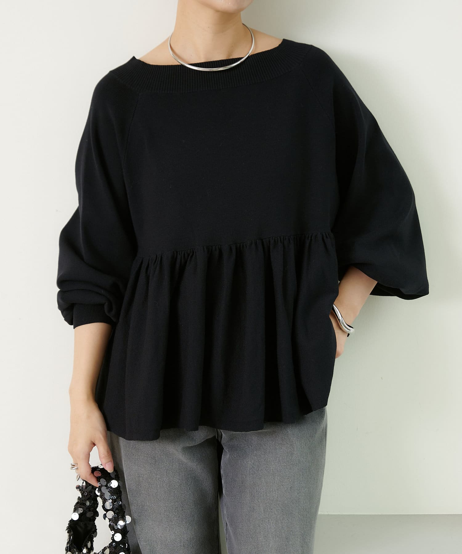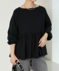 ・気になるお腹まわりをカバーするペプラムシルエット。