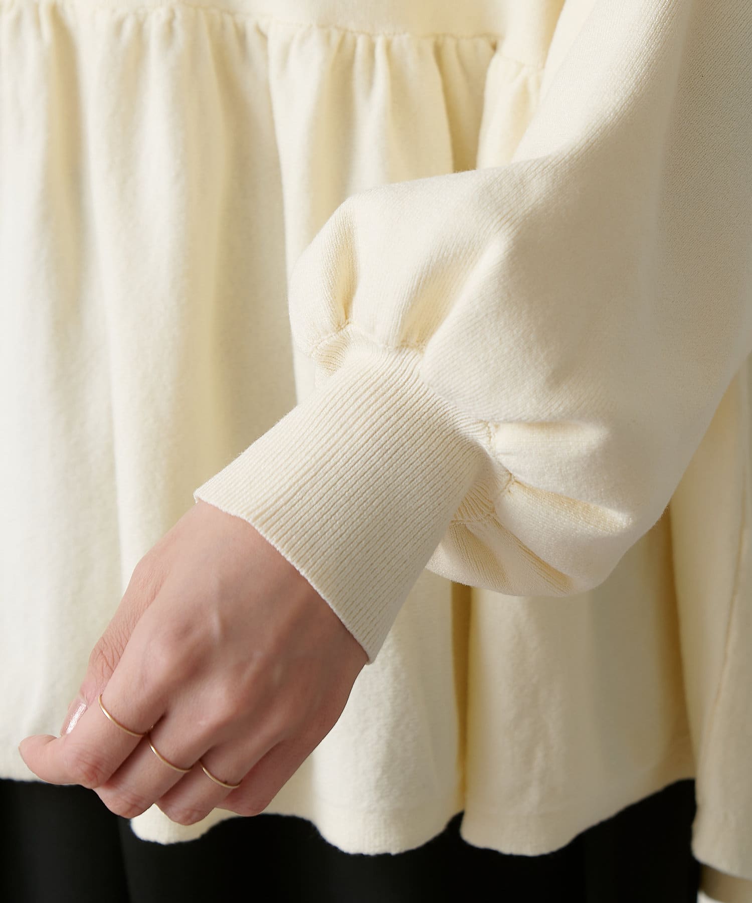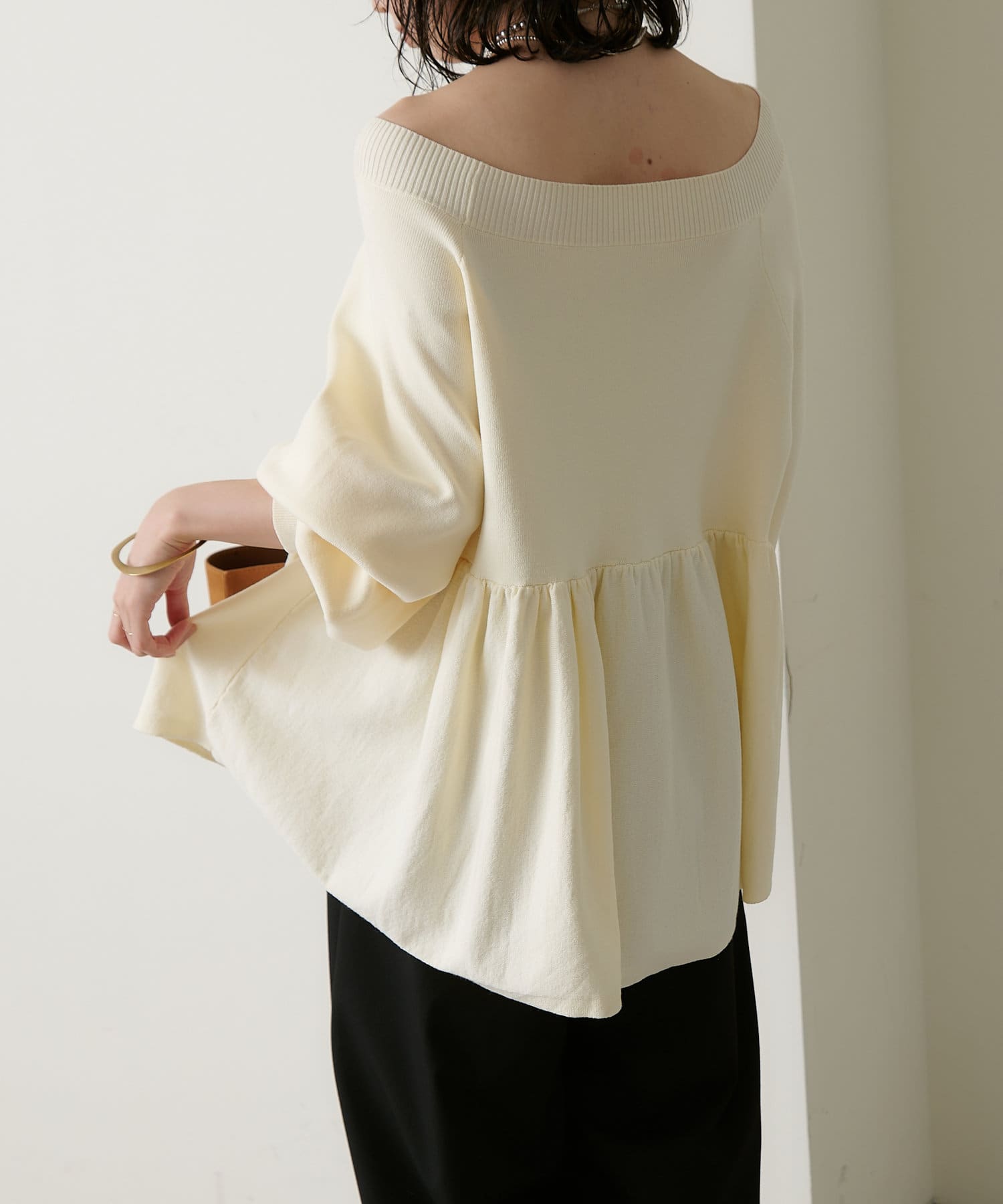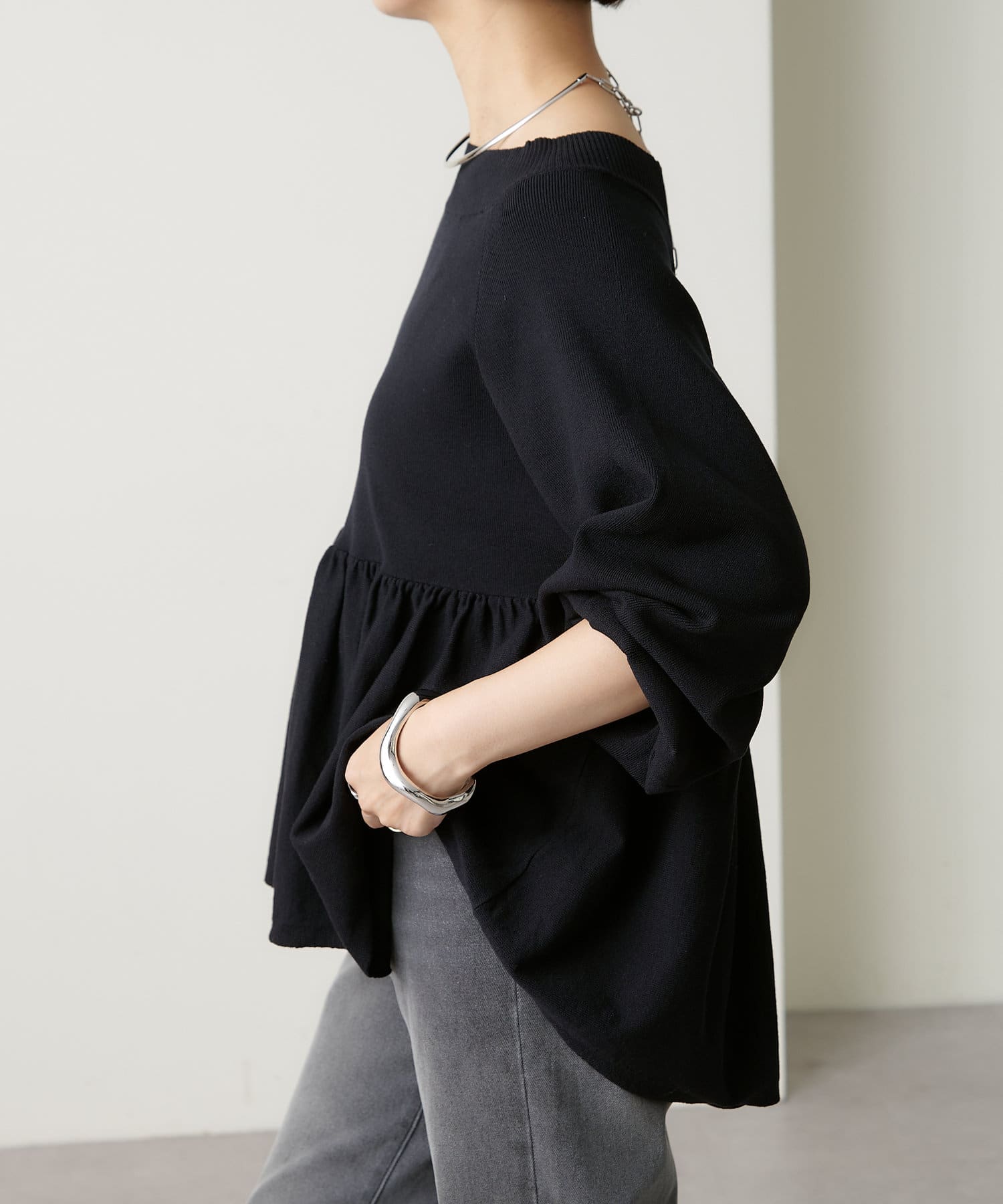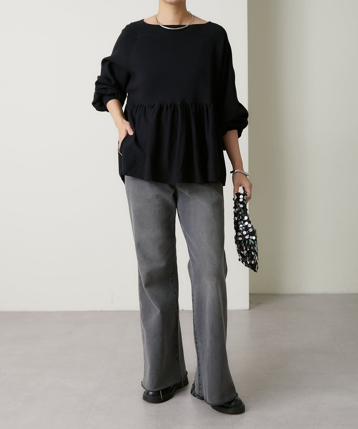 ・気になるお腹まわりをカバーするペプラムシルエット。