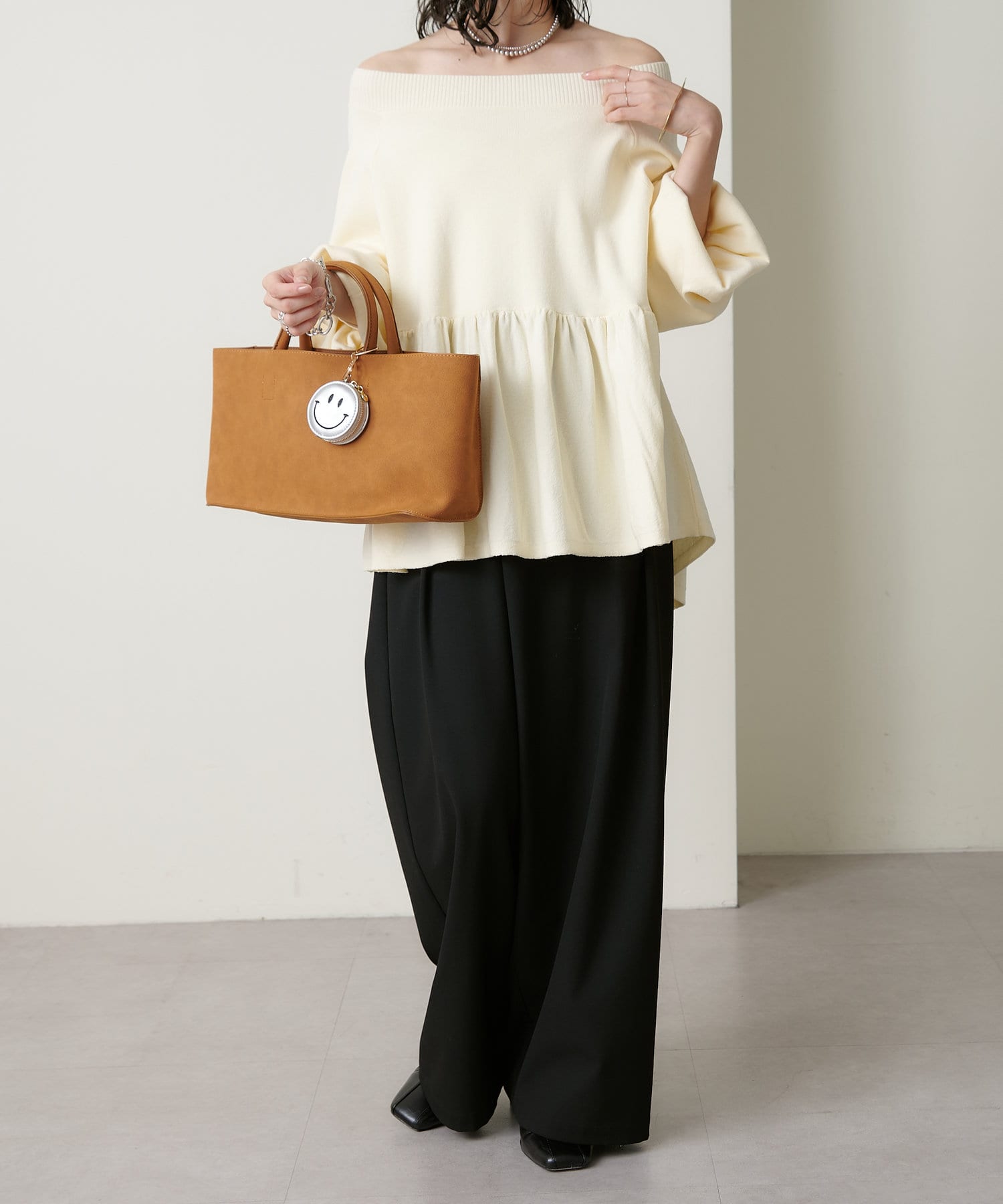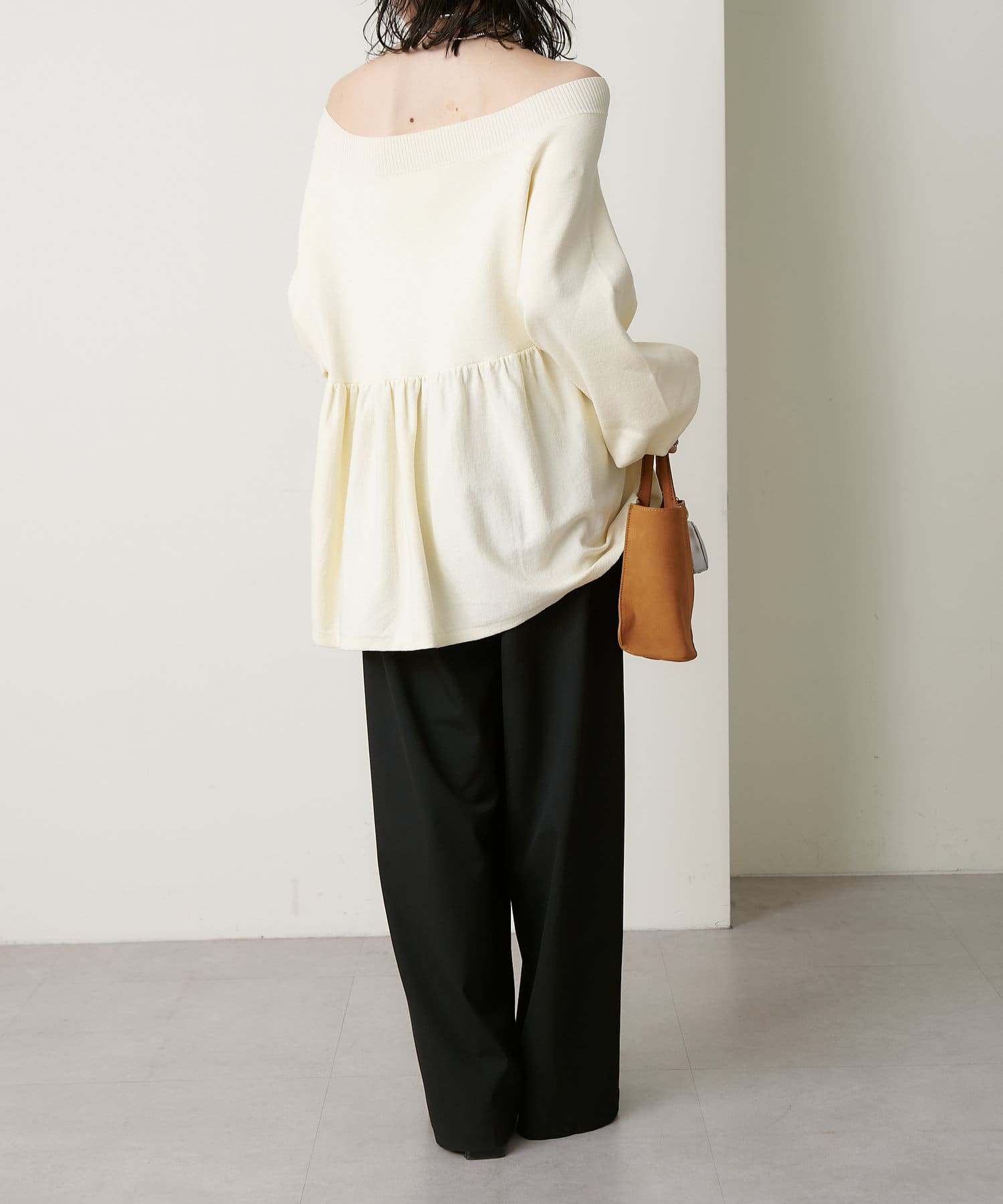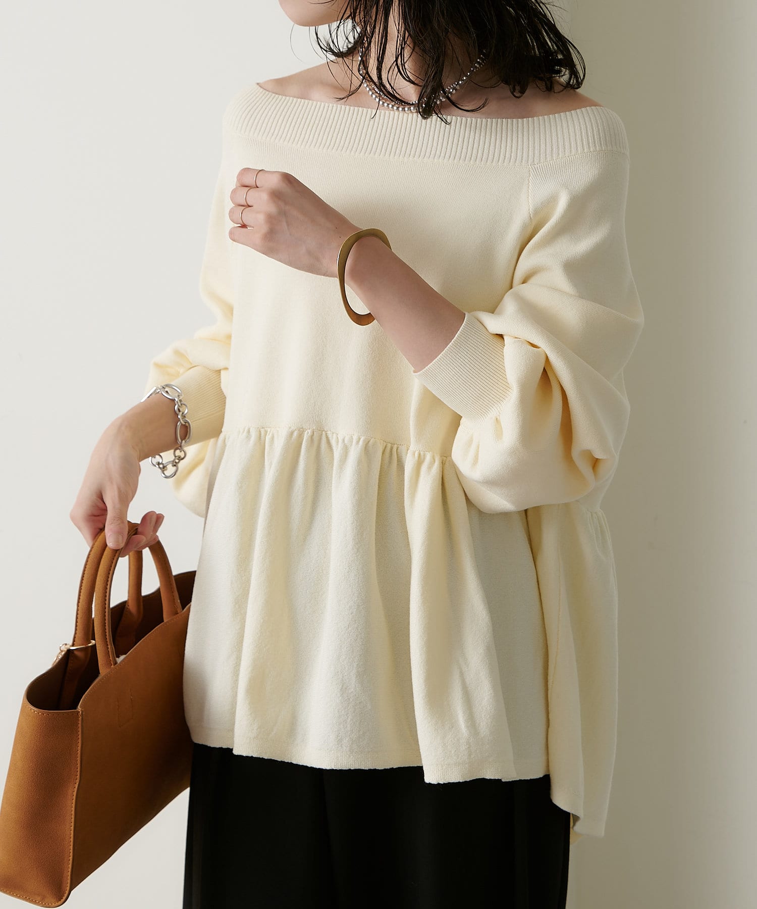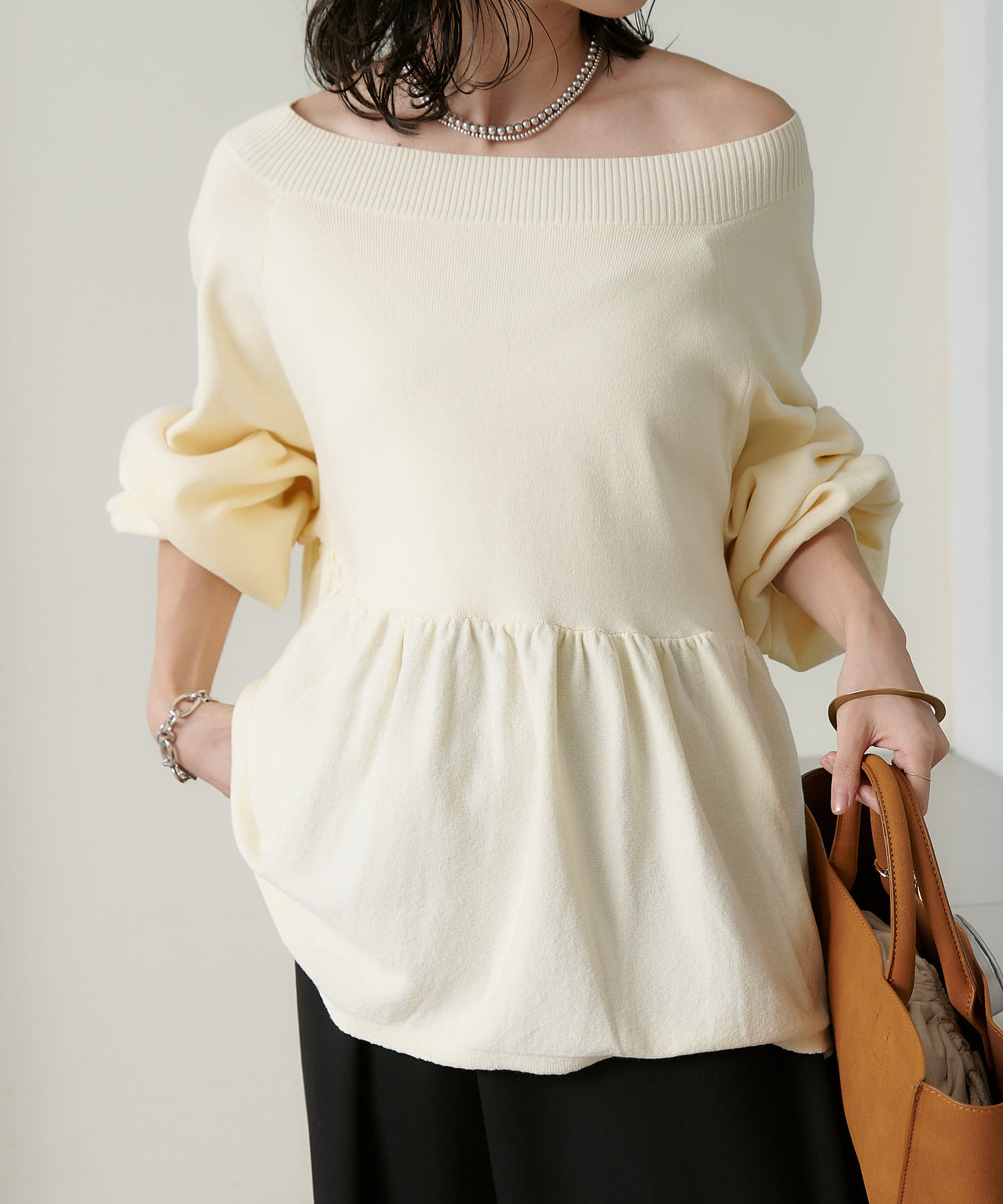・気になるお腹まわりをカバーするペプラムシルエット。