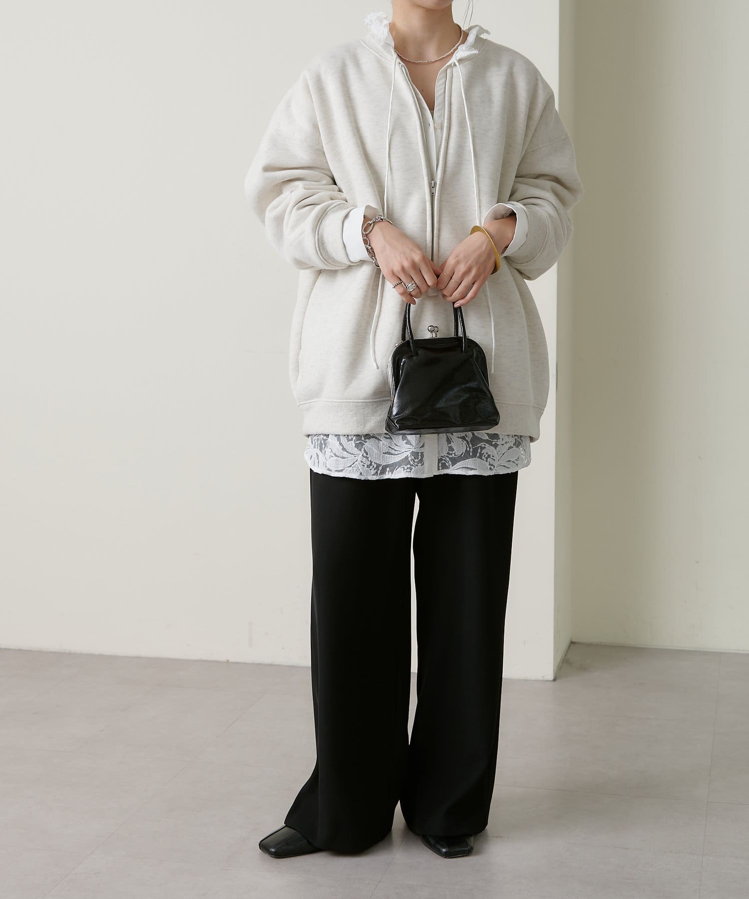 オフホワイト、ブラック 身長:158cm / 体型:普通