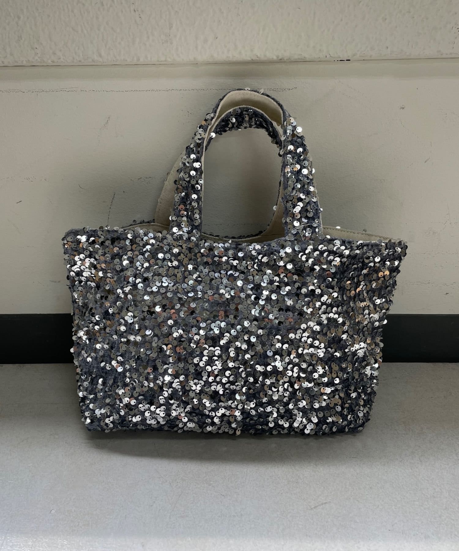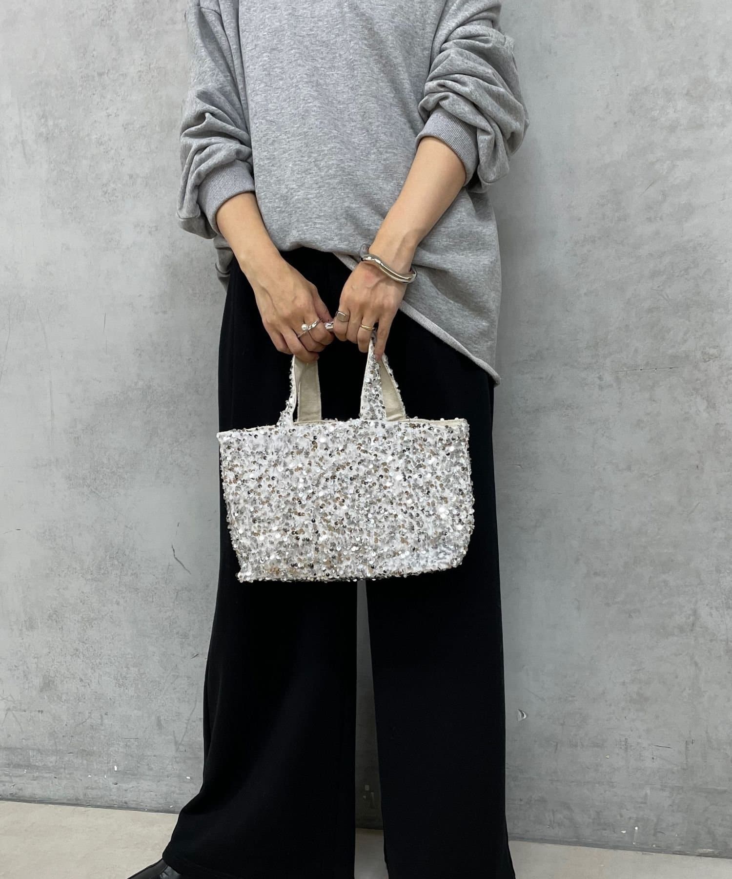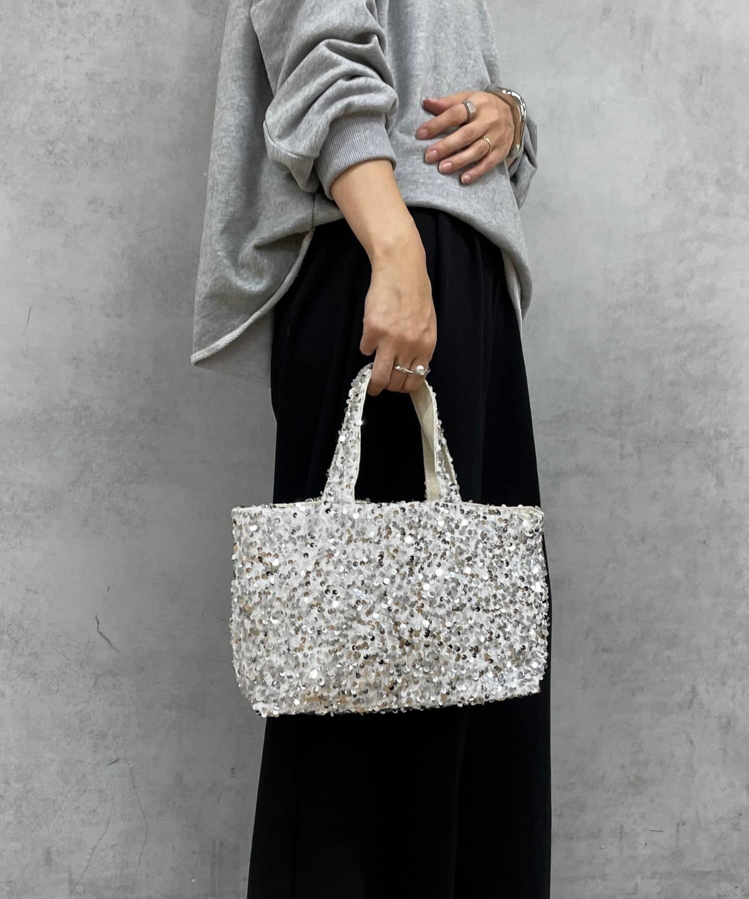 ・カジュアルなトートバッグにスパンコールがアクセント。