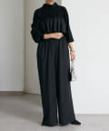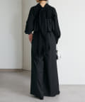 ・パンツは体系を拾いにくいやや太めのワイドシルエット。