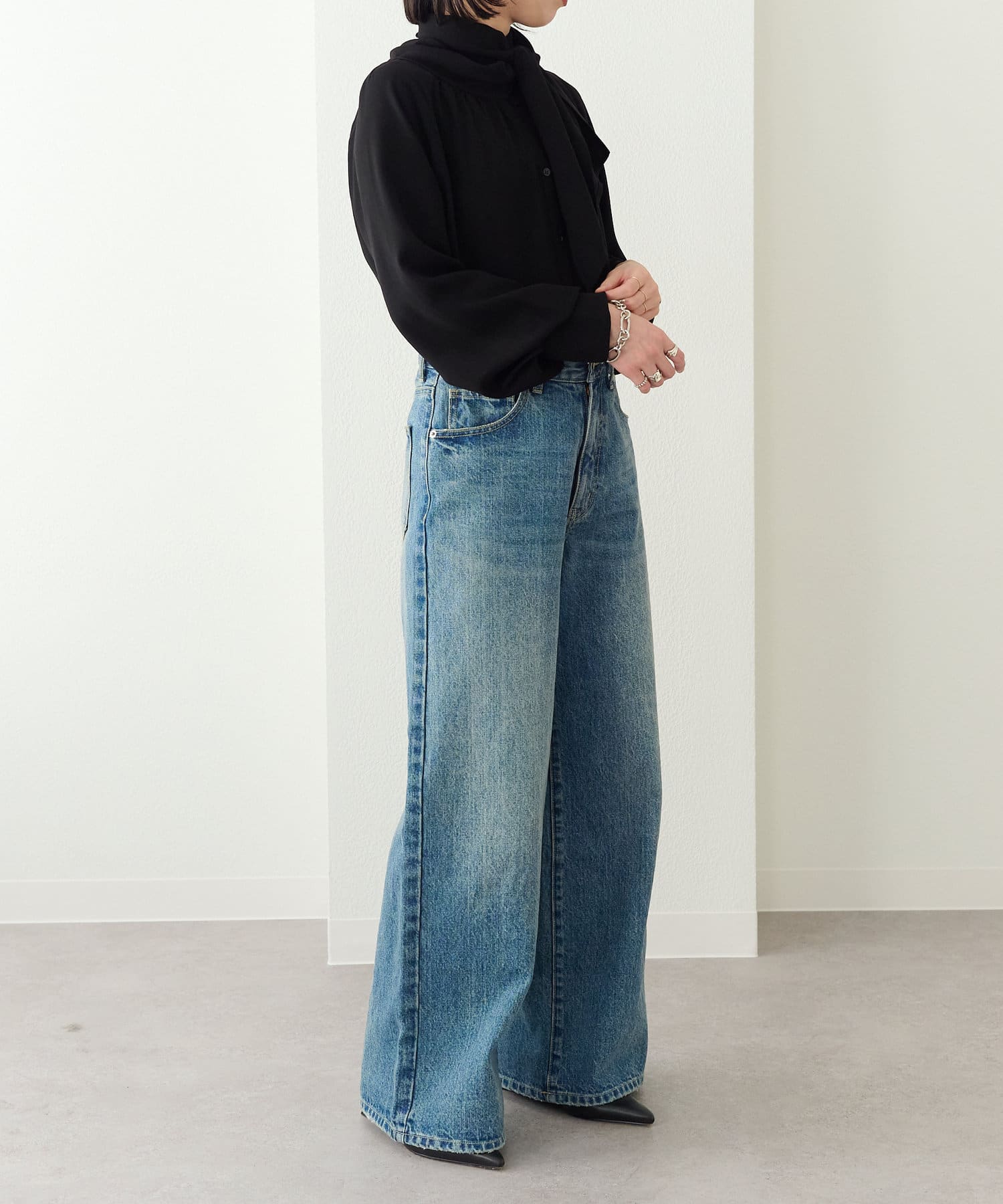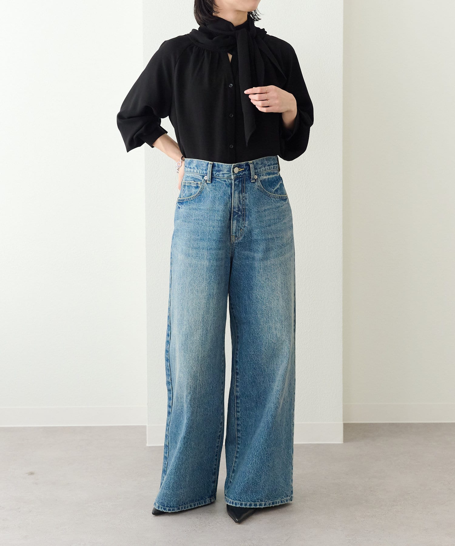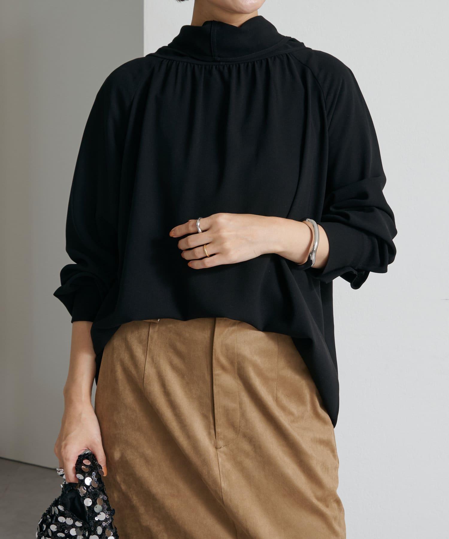・一枚で着用するのはもちろん、ニットやジャケットに合わせても華やかに着映える1枚。