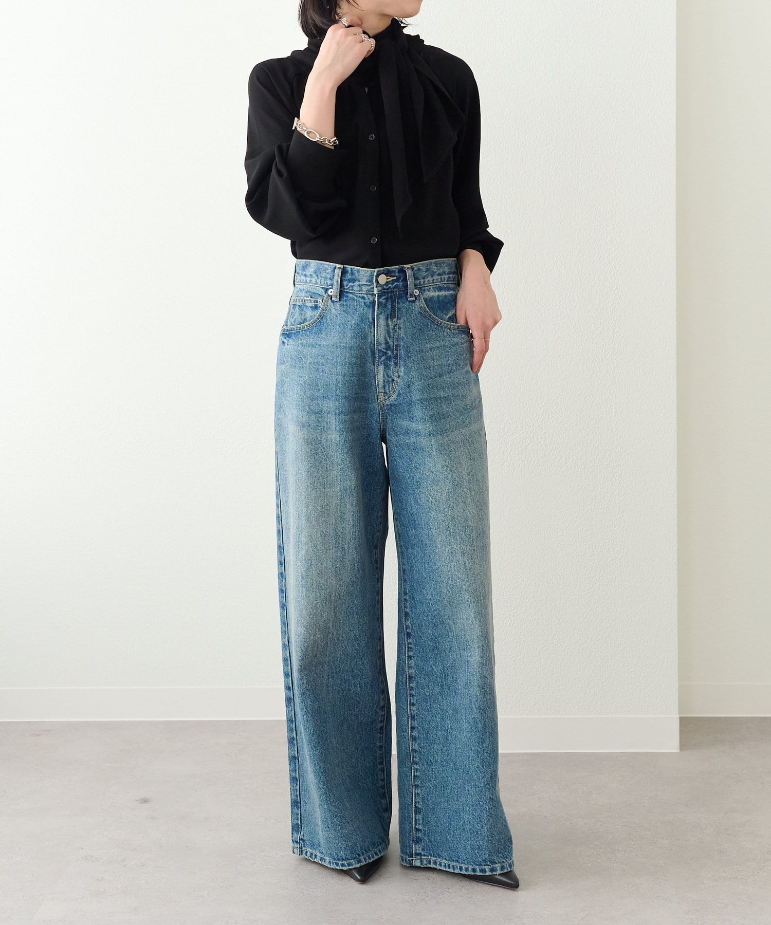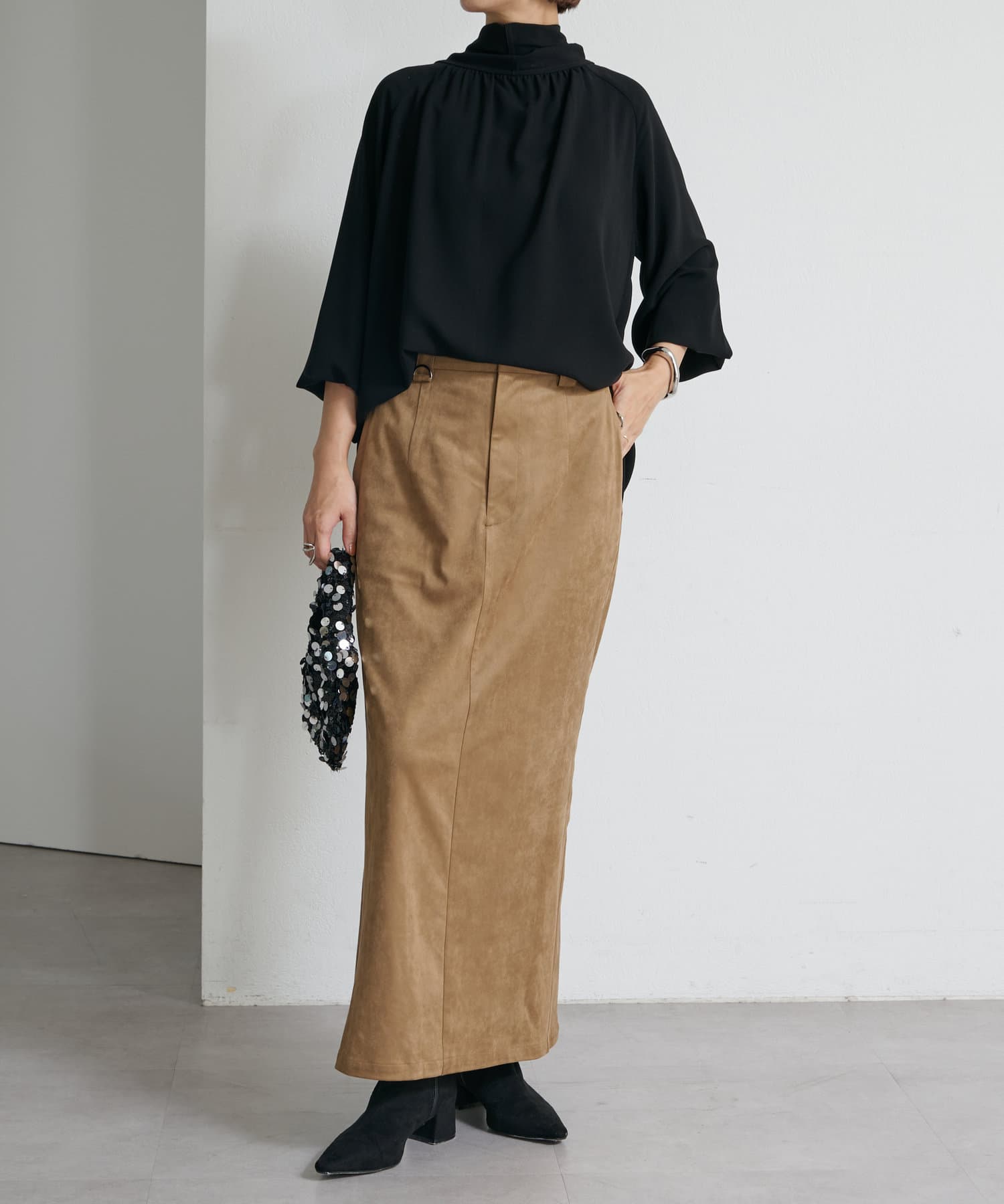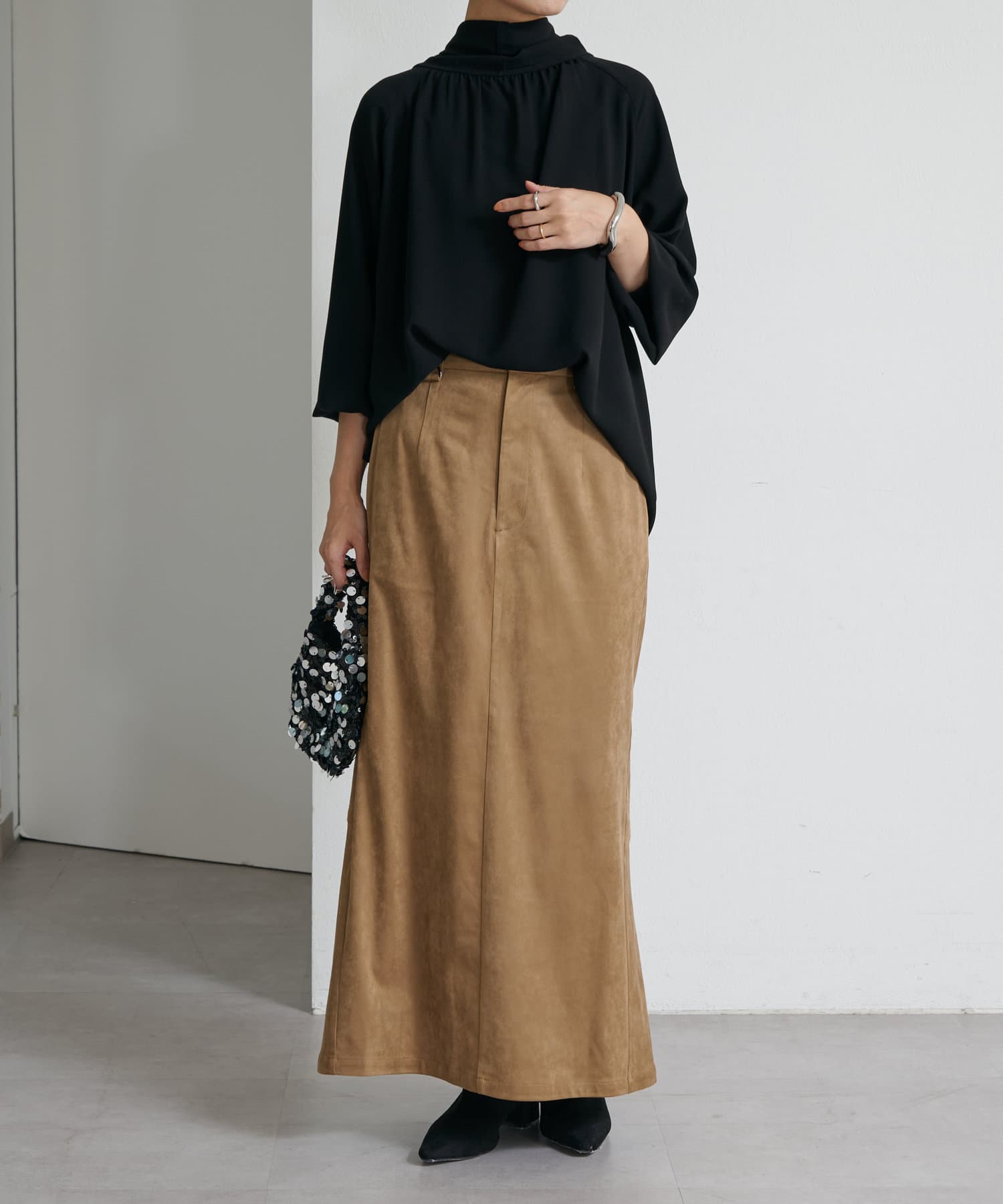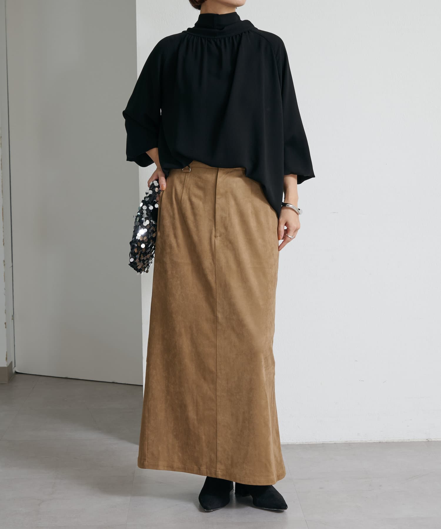 ・一枚で着用するのはもちろん、ニットやジャケットに合わせても華やかに着映える1枚。
