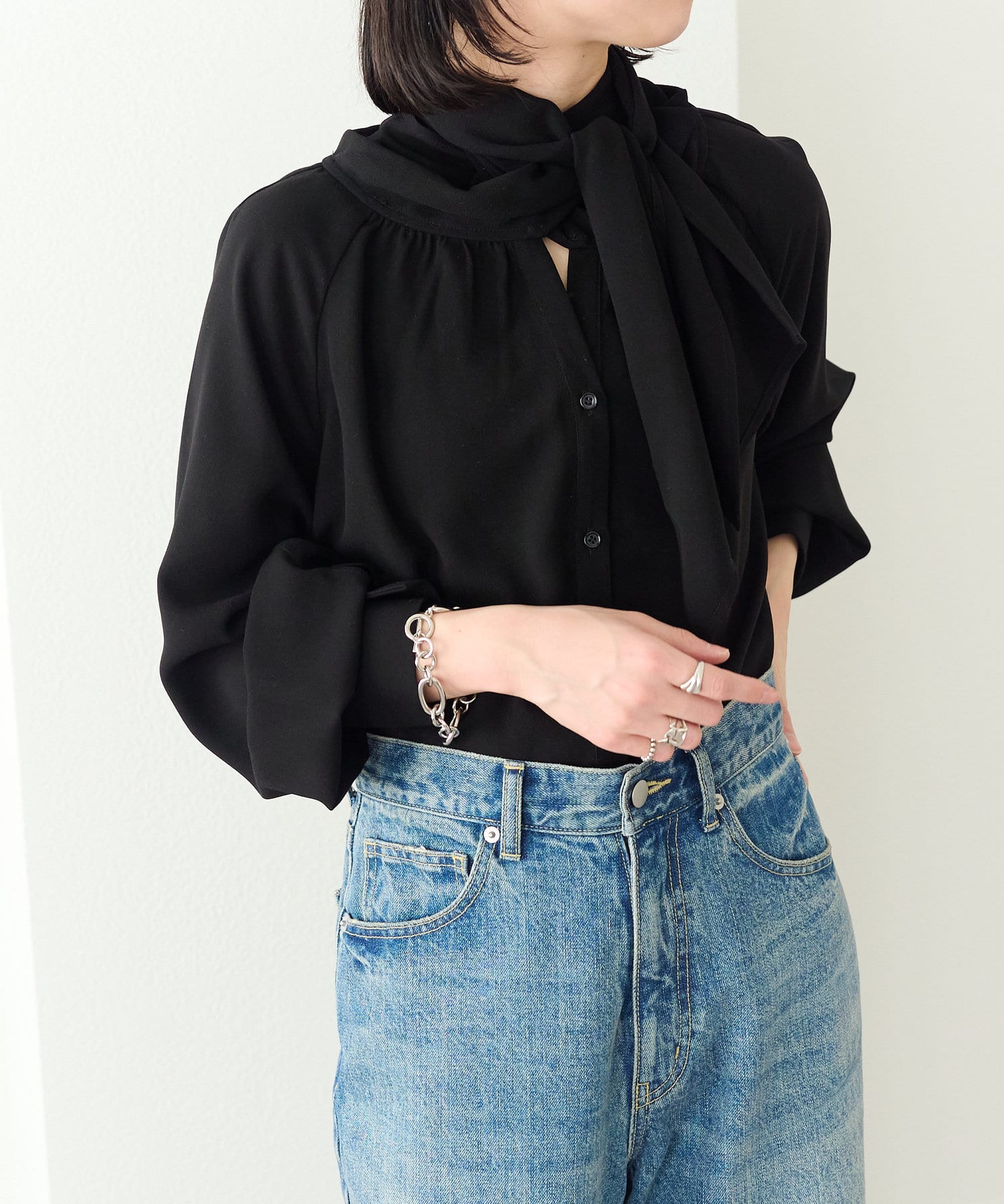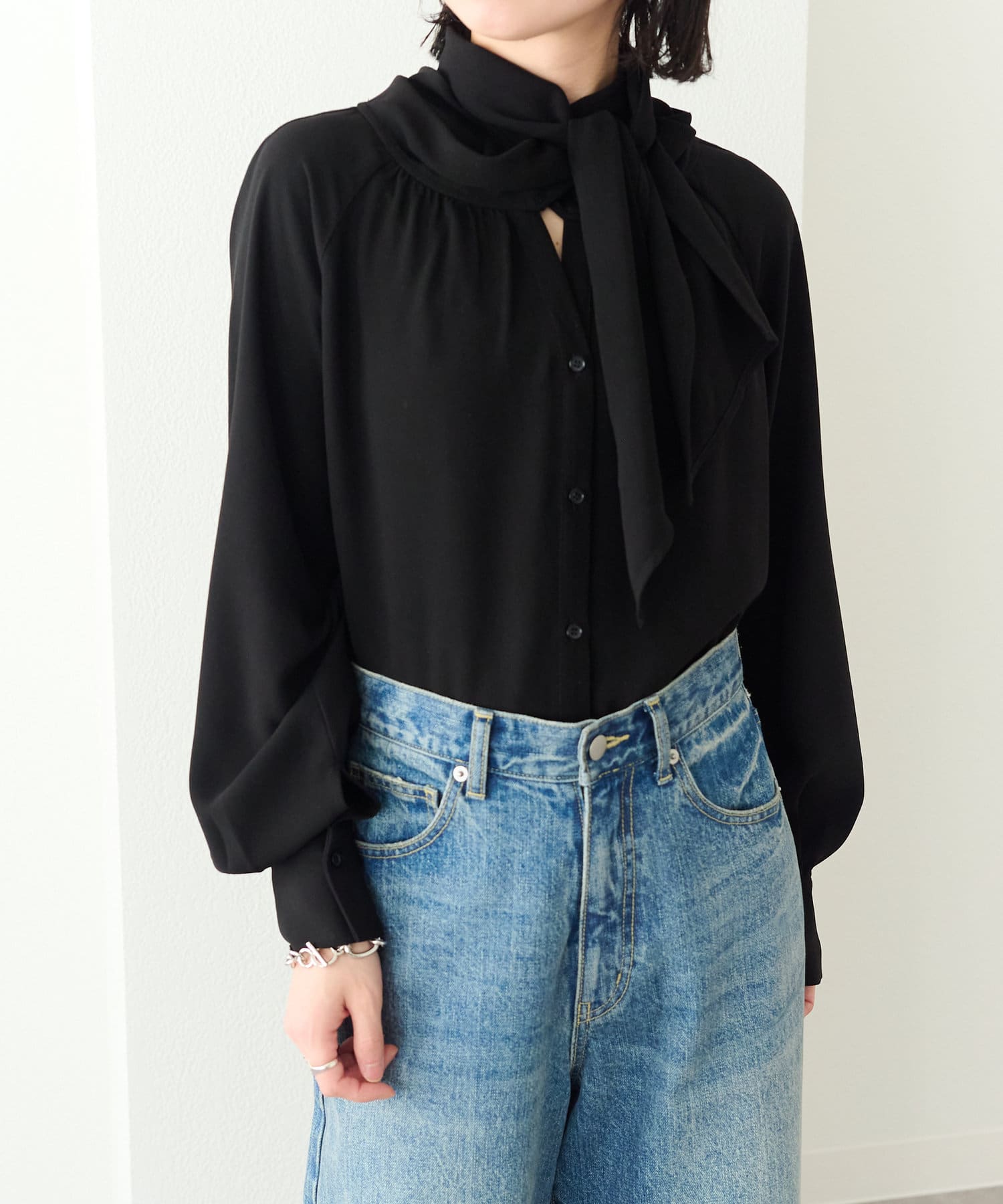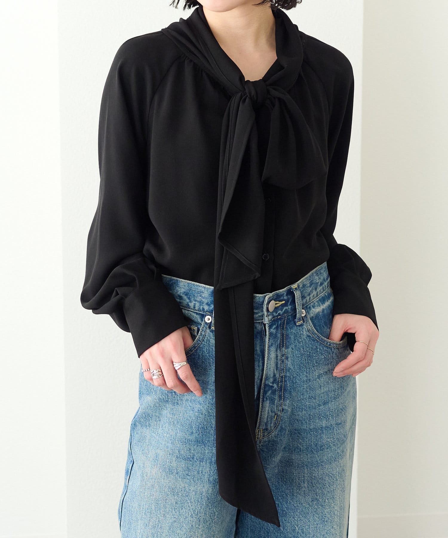 ・胸元には長めのリボンが付き、ラフに一つ結びやリボンなどお好みで結んでいただけます。