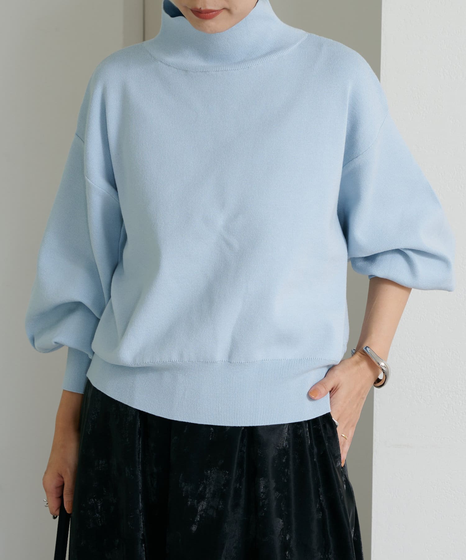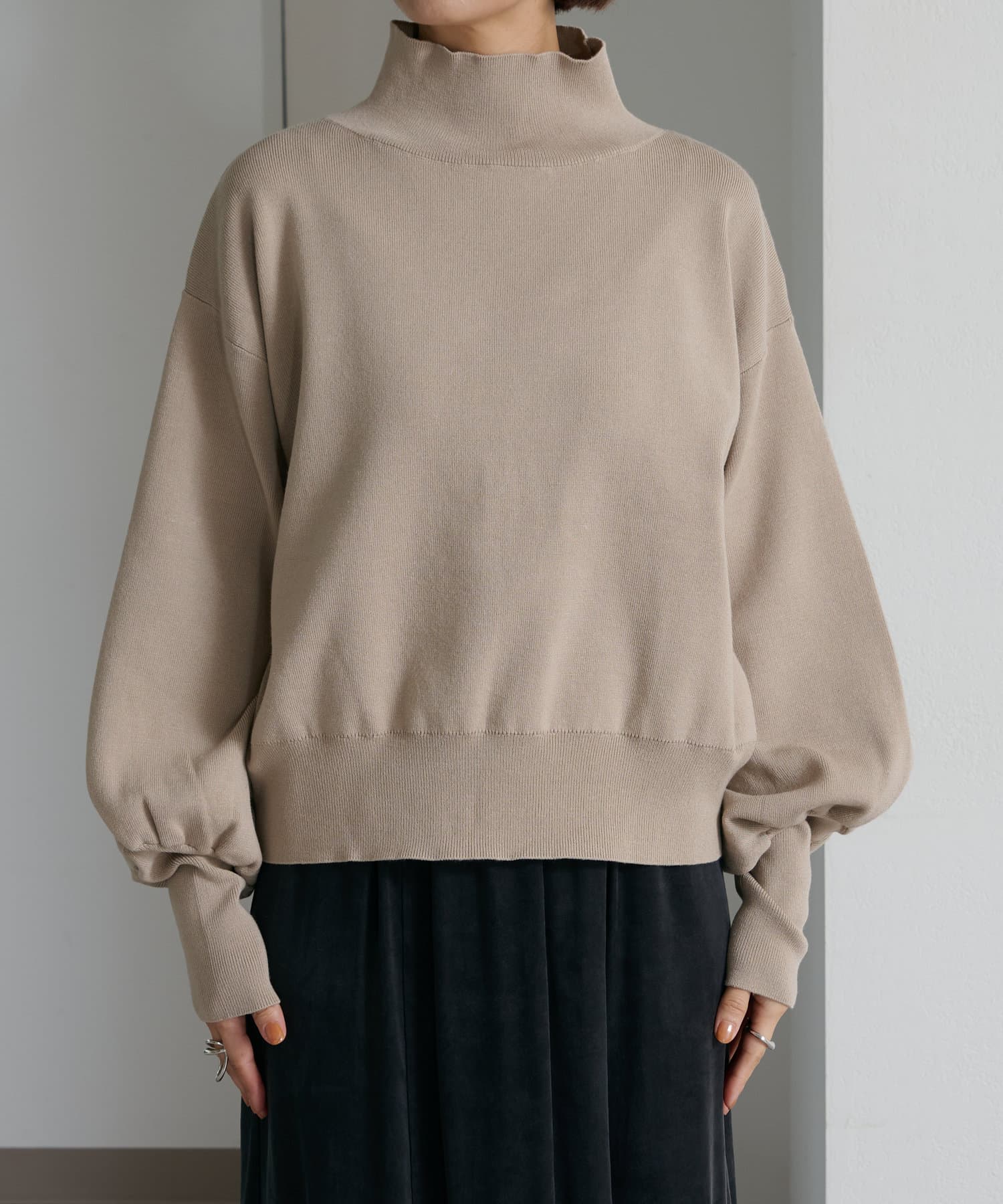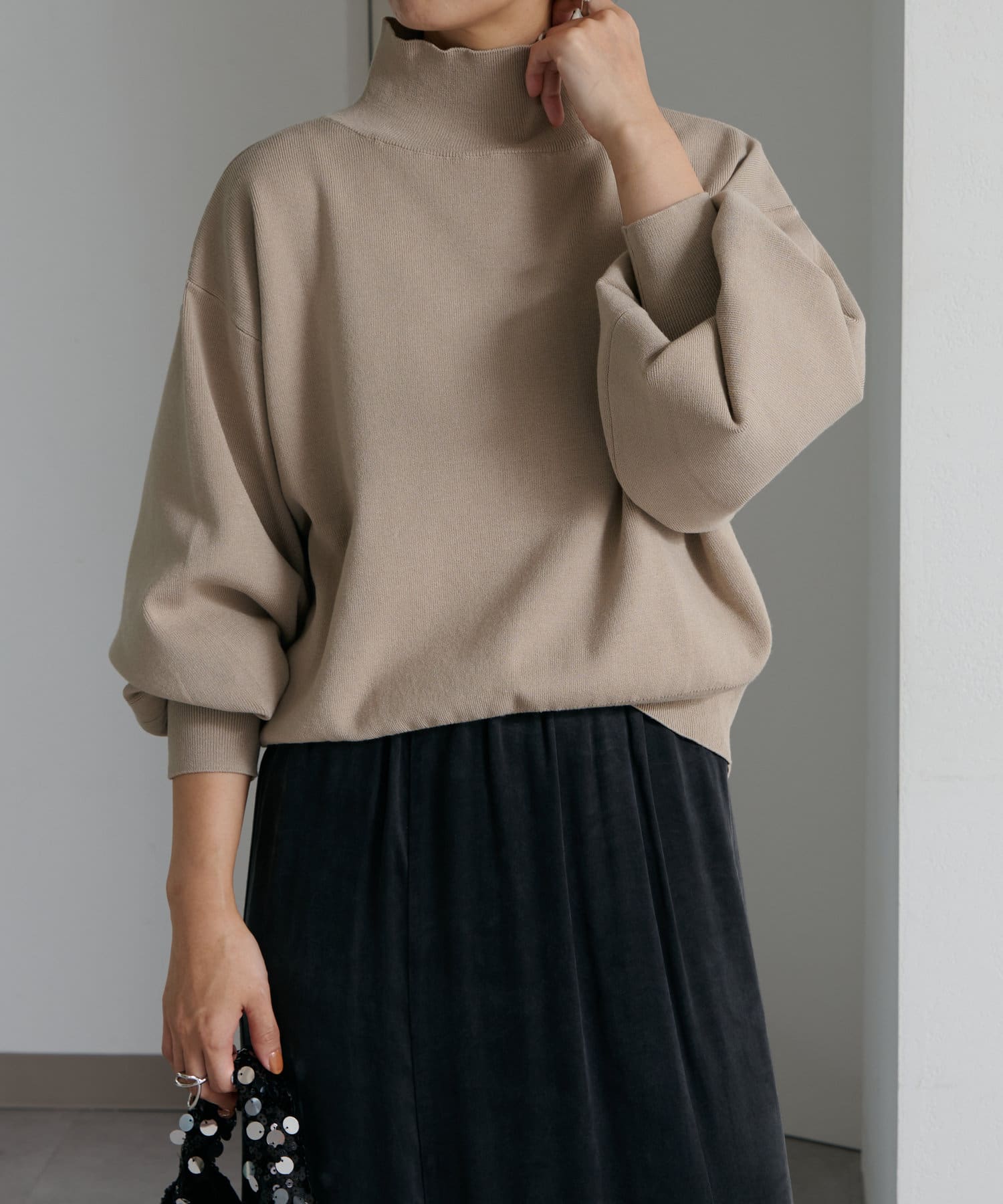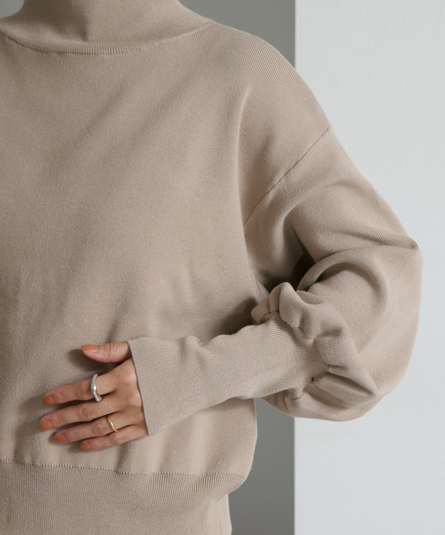 長めの袖口でボリュームスリーブが叶うタートルニットが登場!