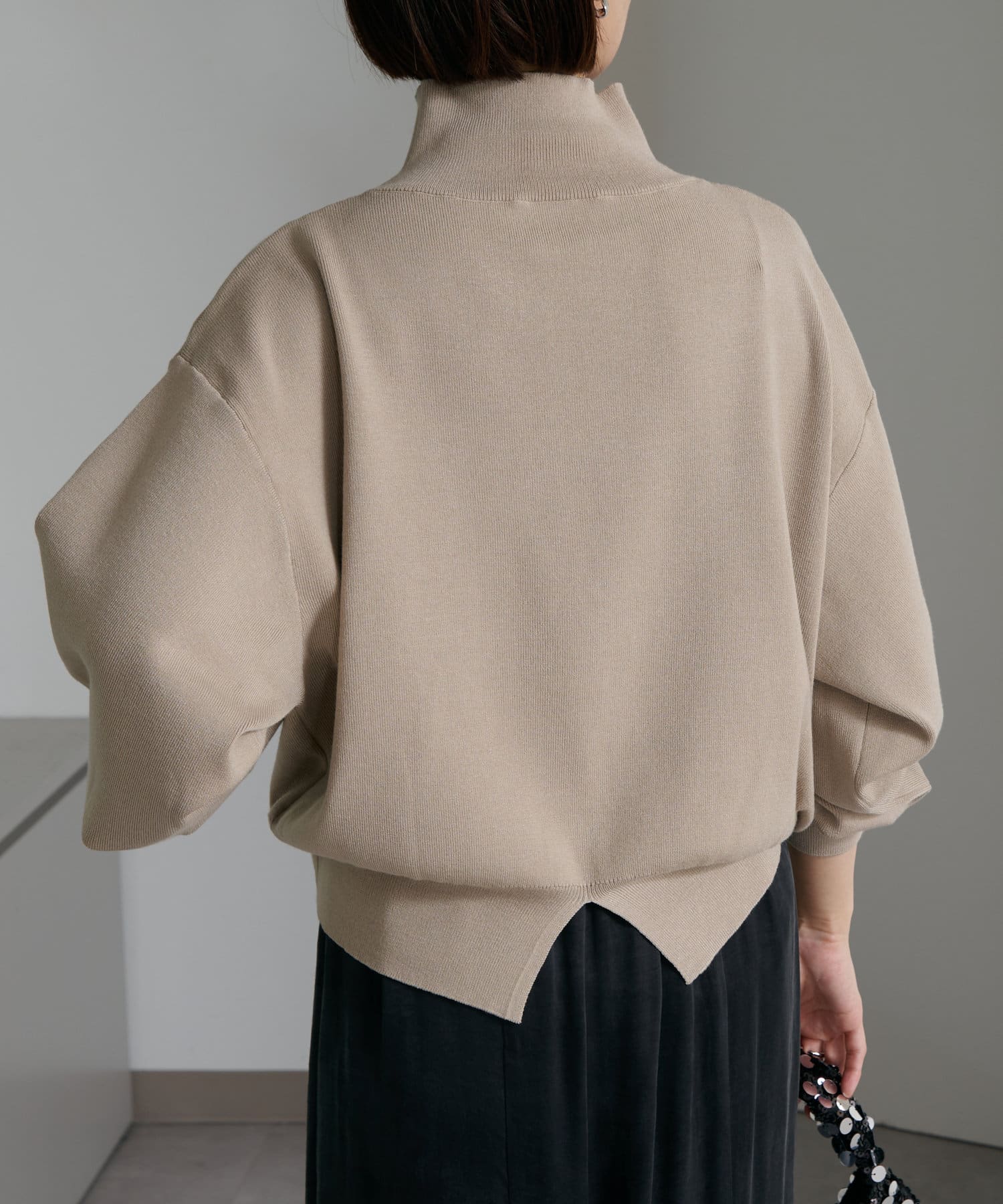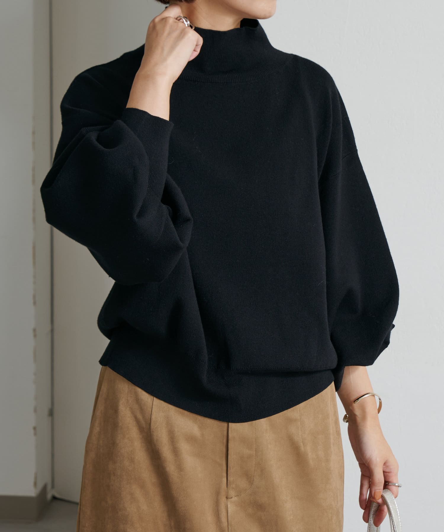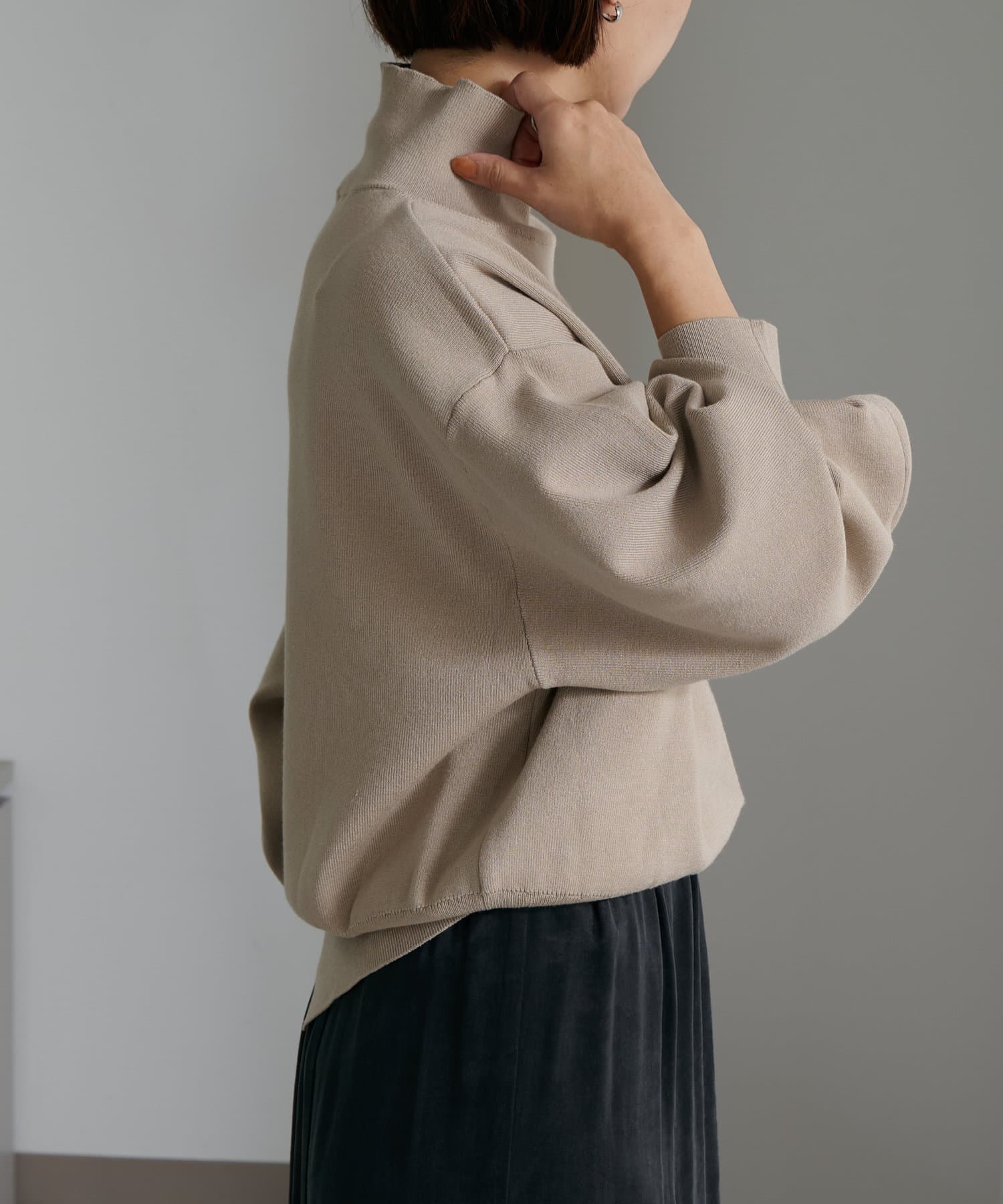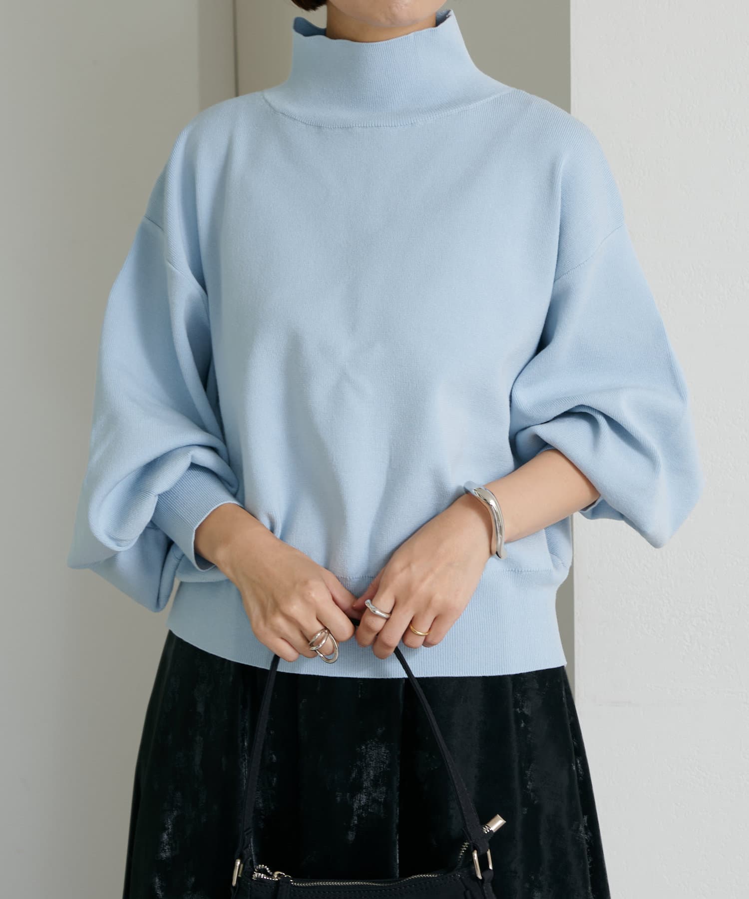 長めの袖口でボリュームスリーブが叶うタートルニットが登場!