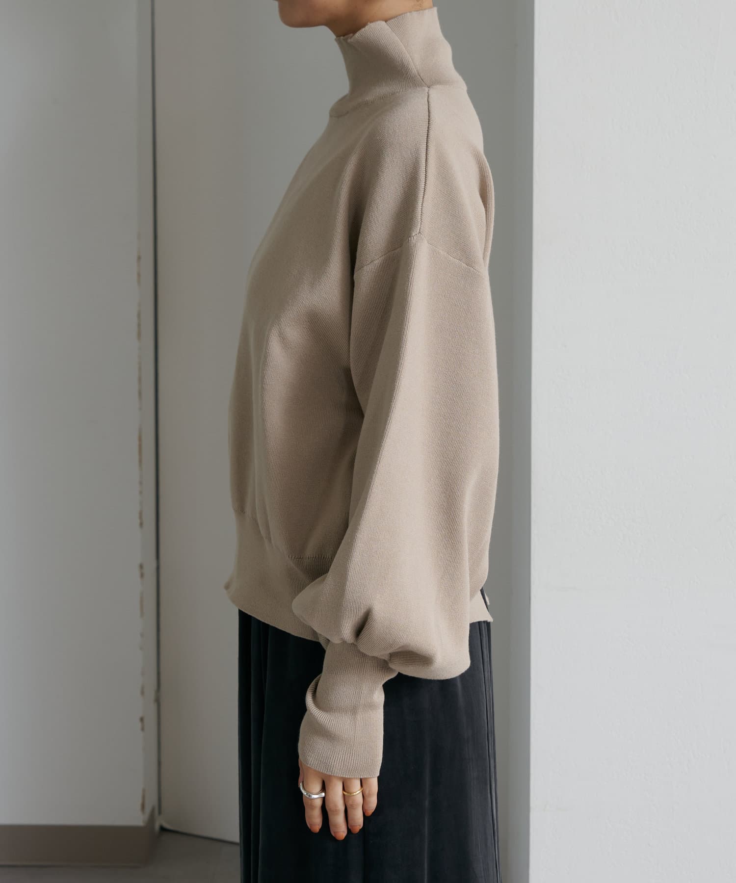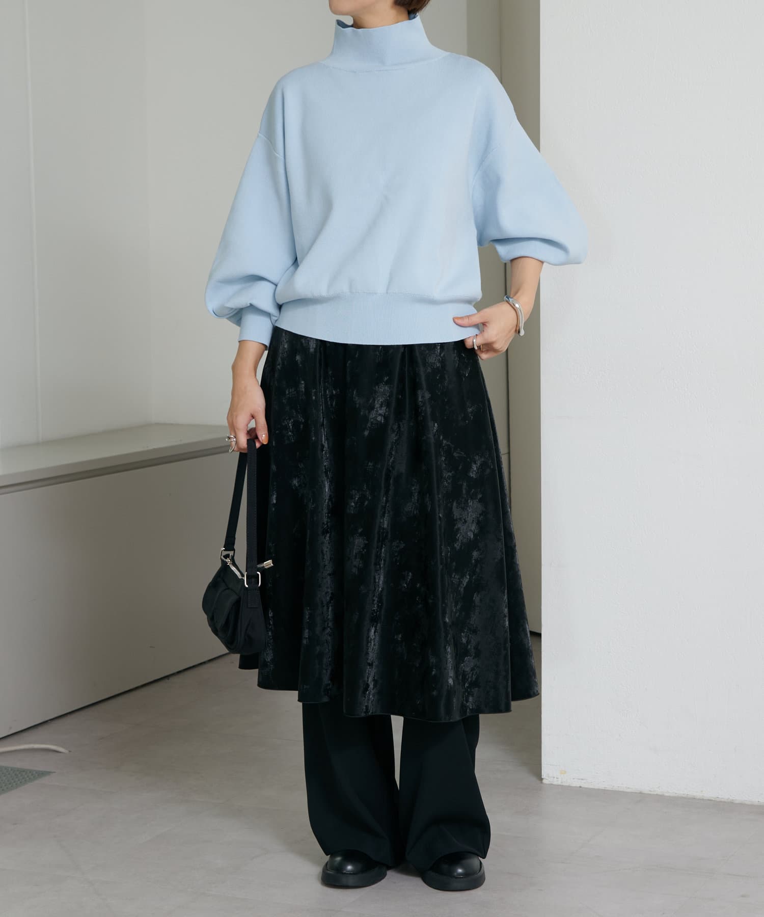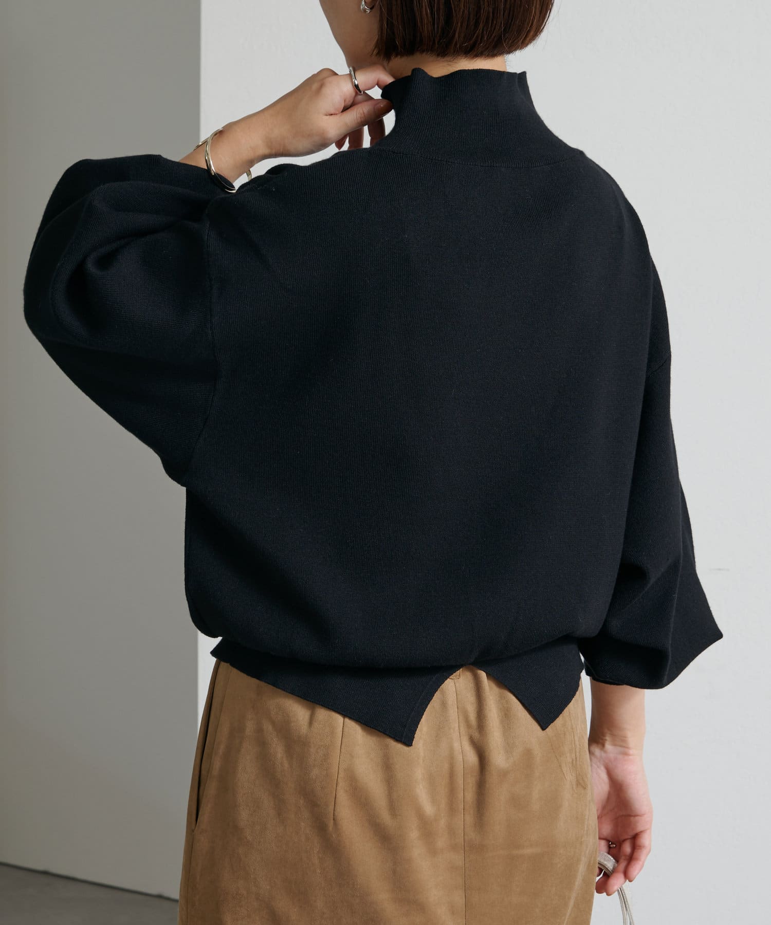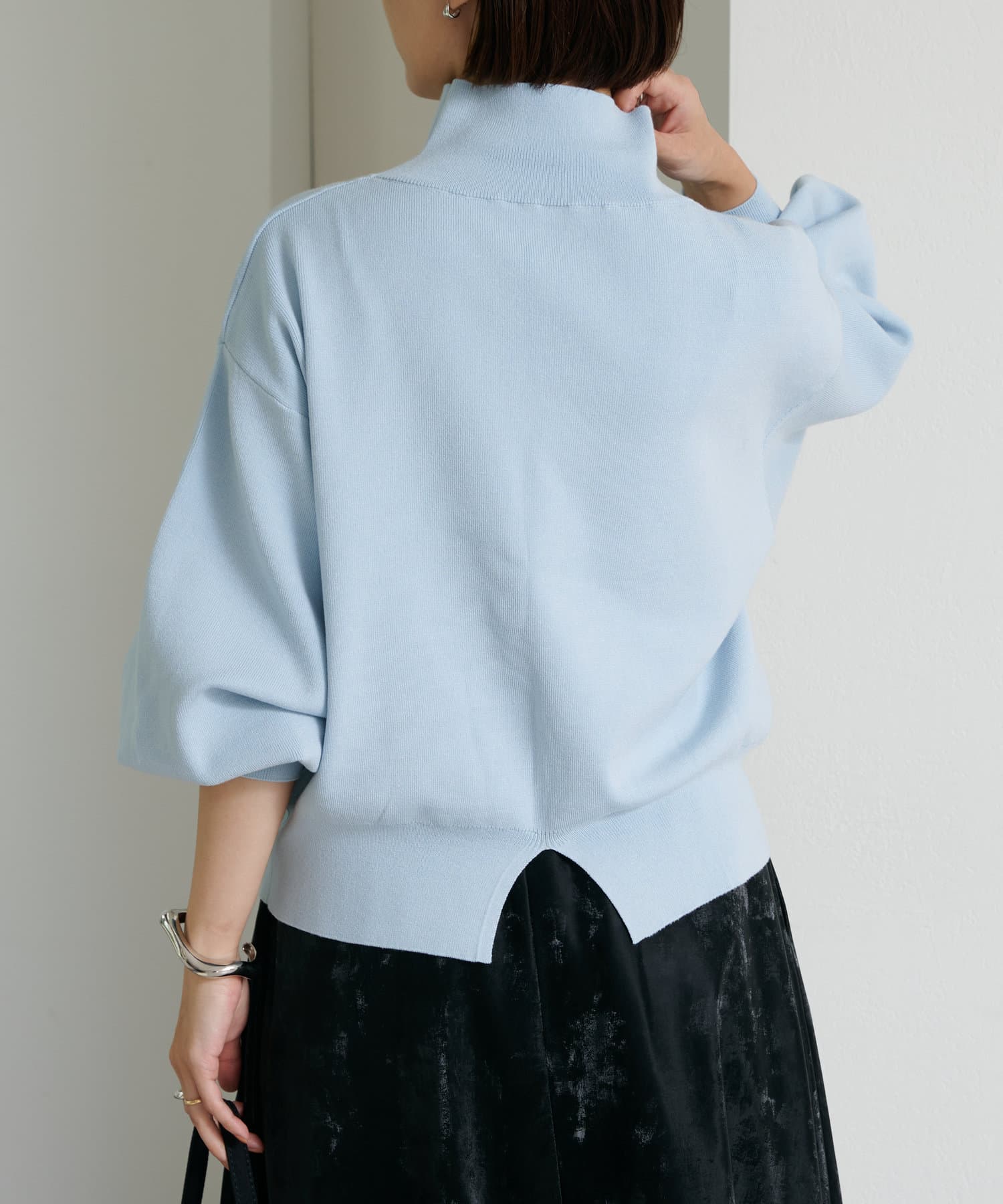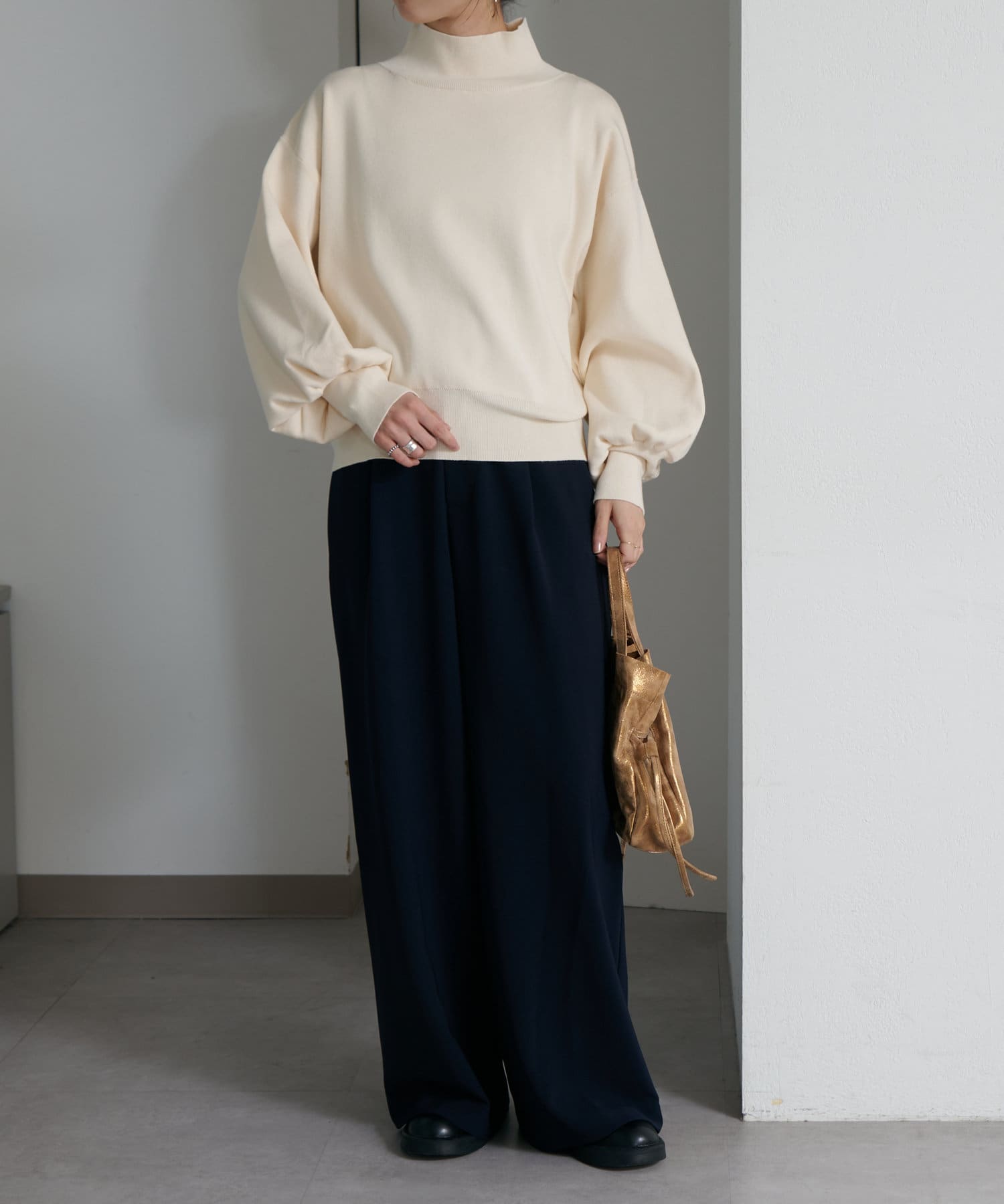 長めの袖口でボリュームスリーブが叶うタートルニットが登場!